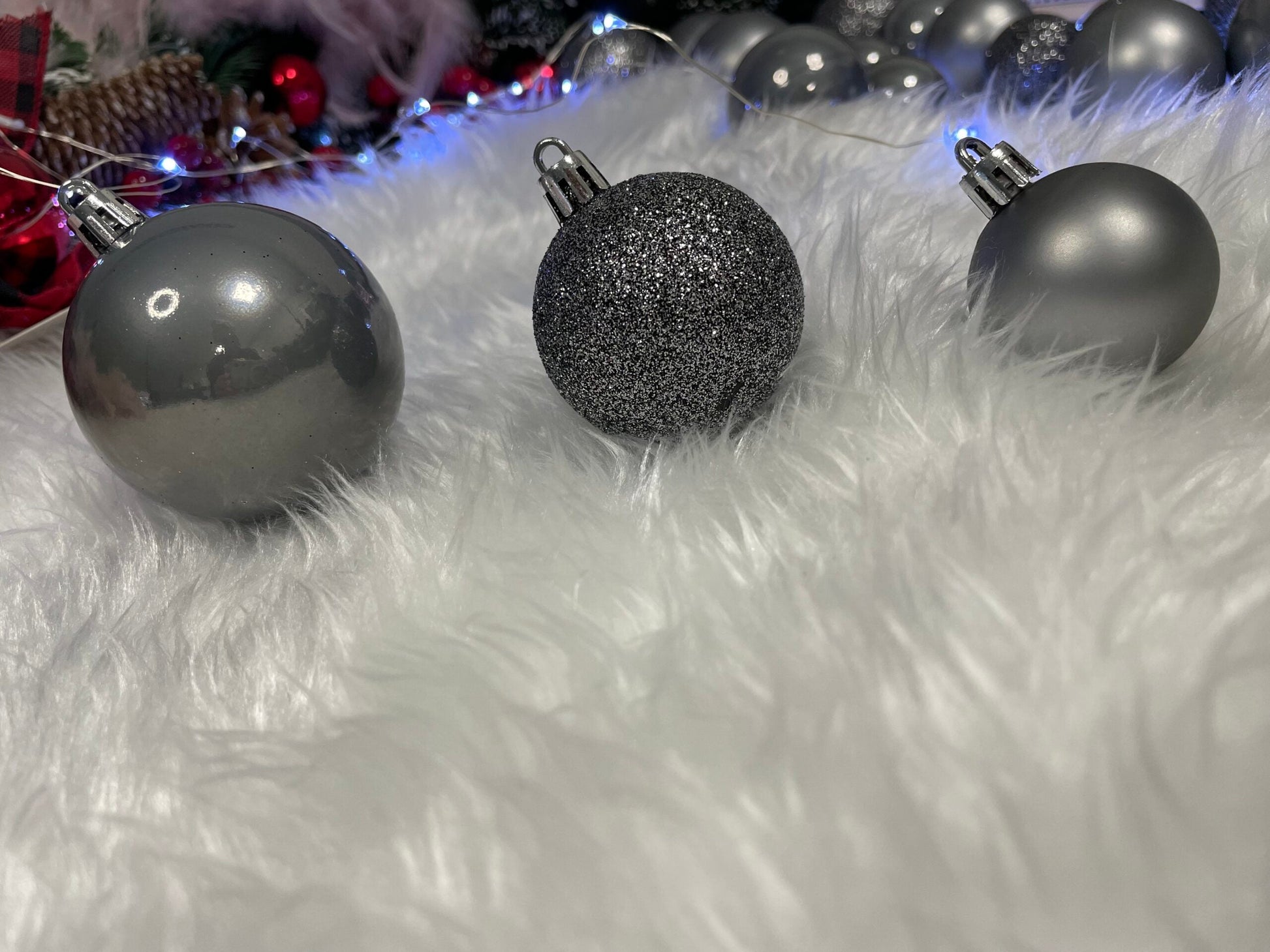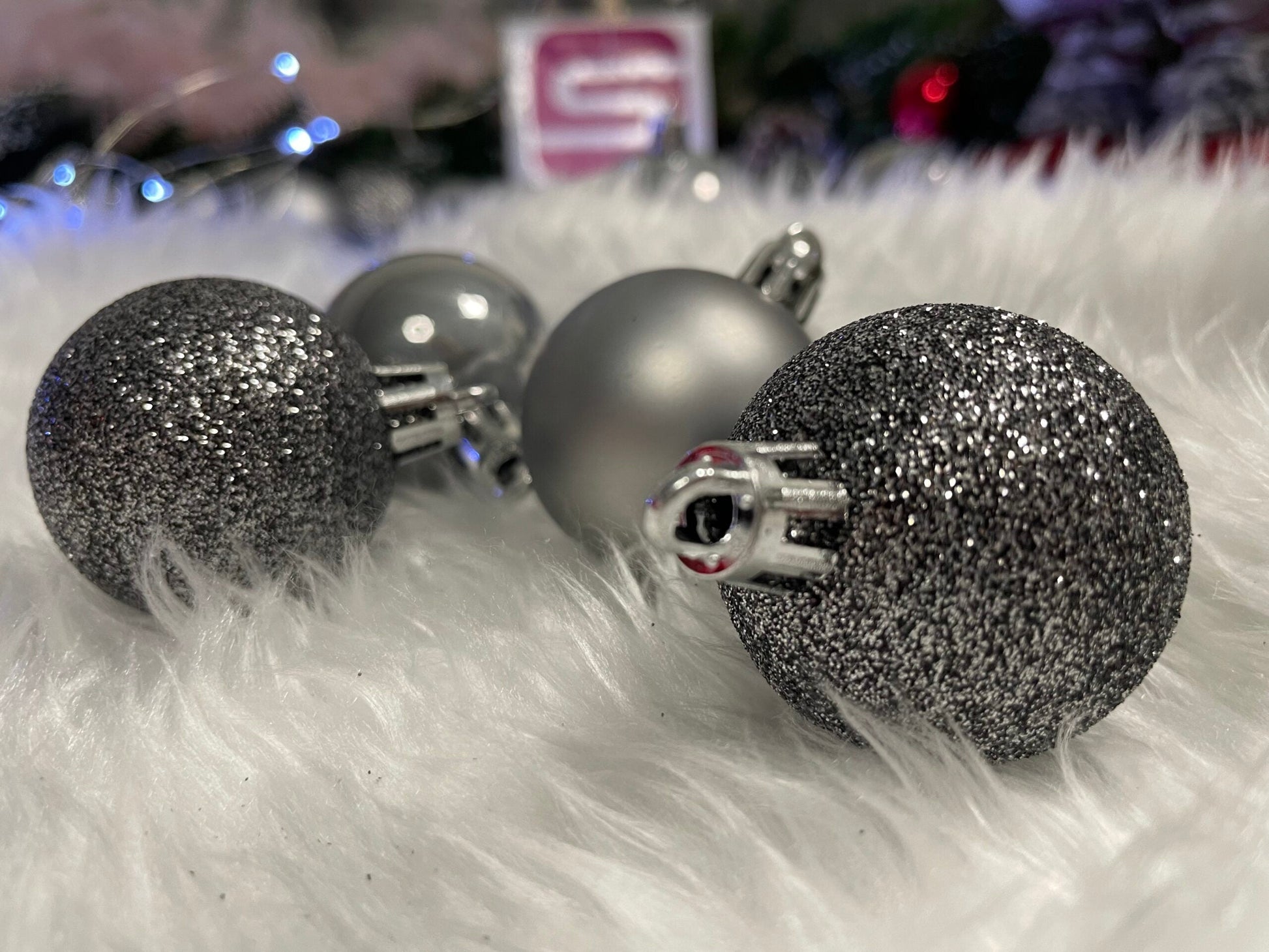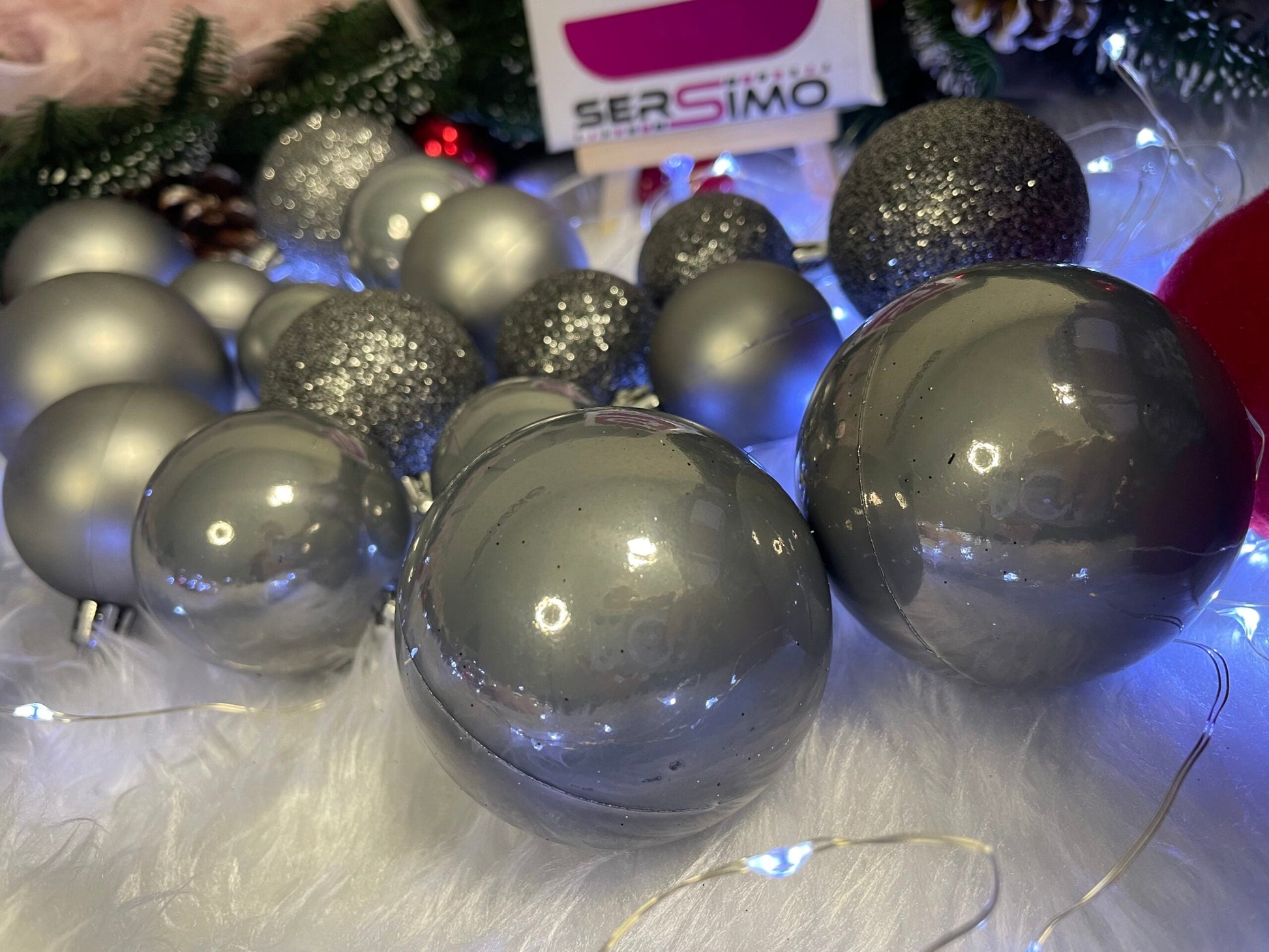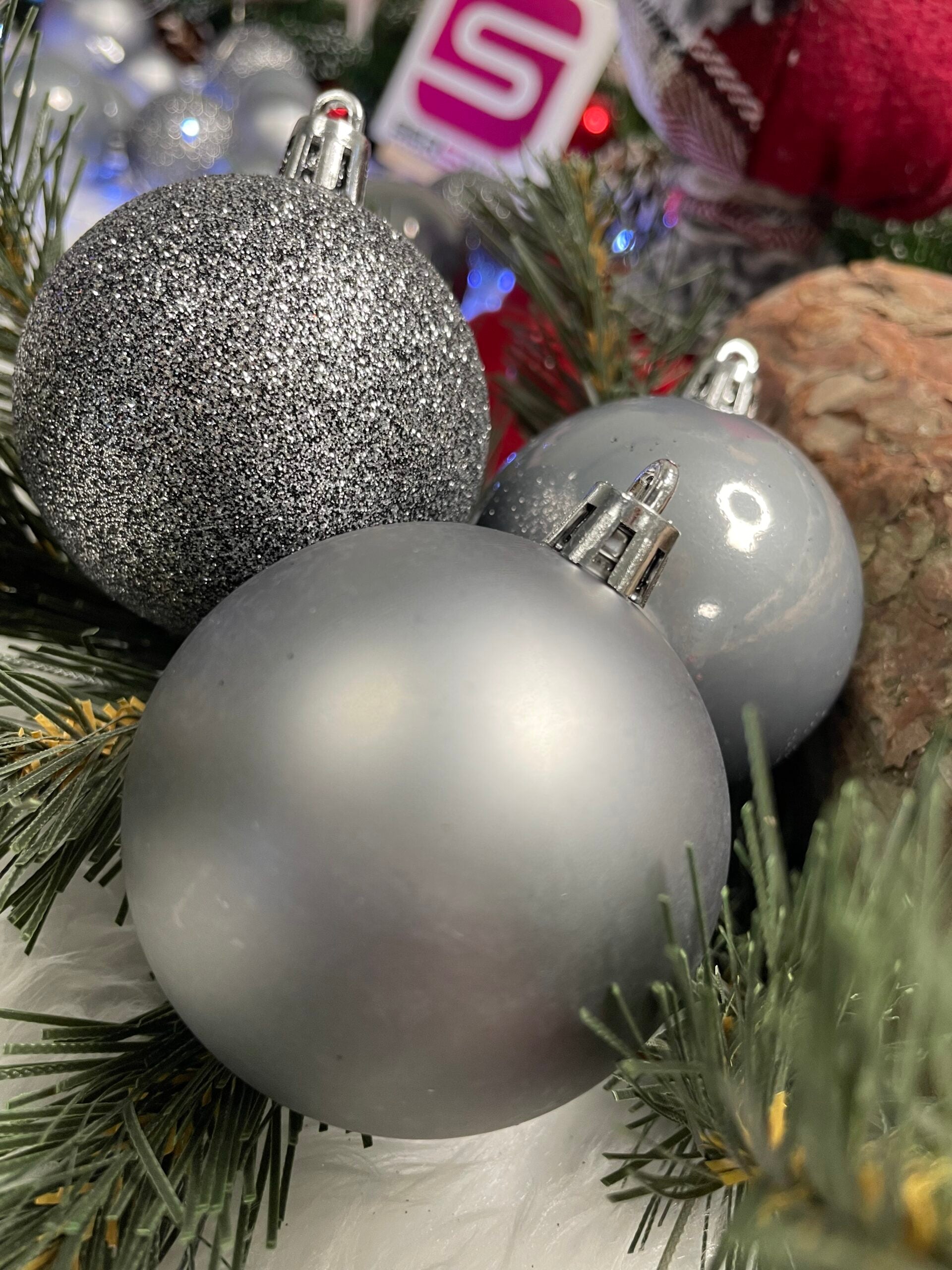 Set globuri de Craciun, 30 bucati, 3 modele, 4/5/6cm, gri argintiu