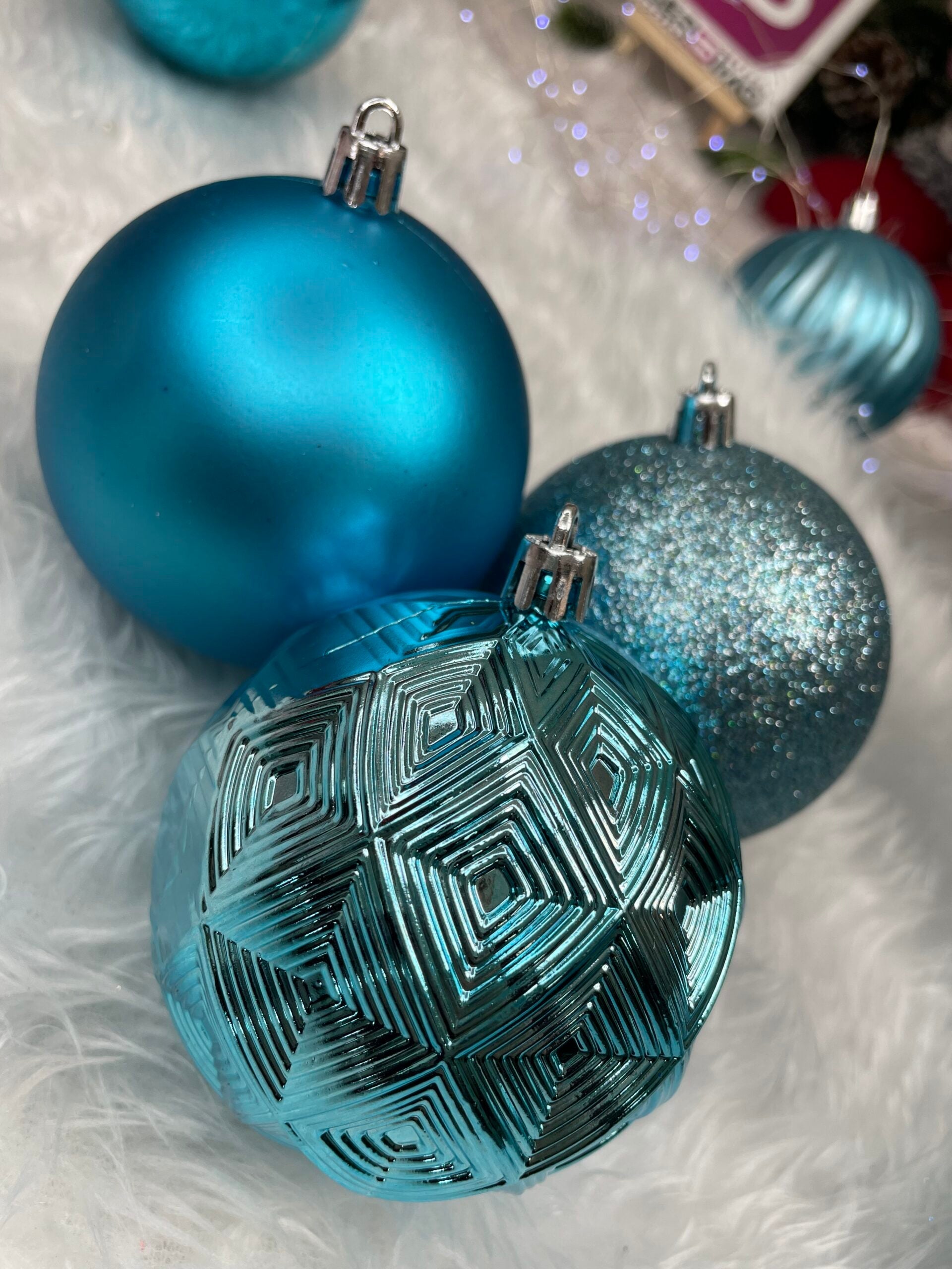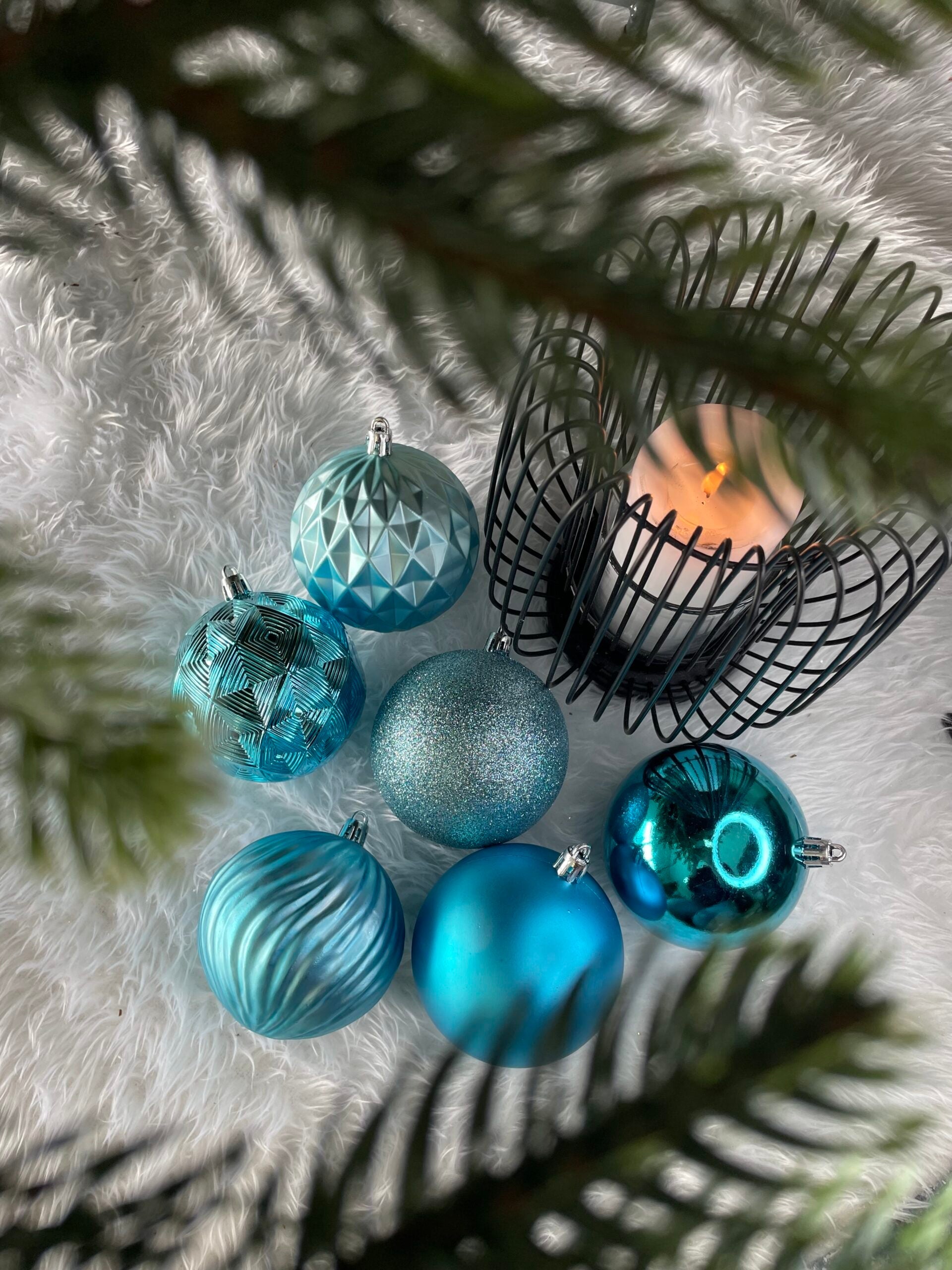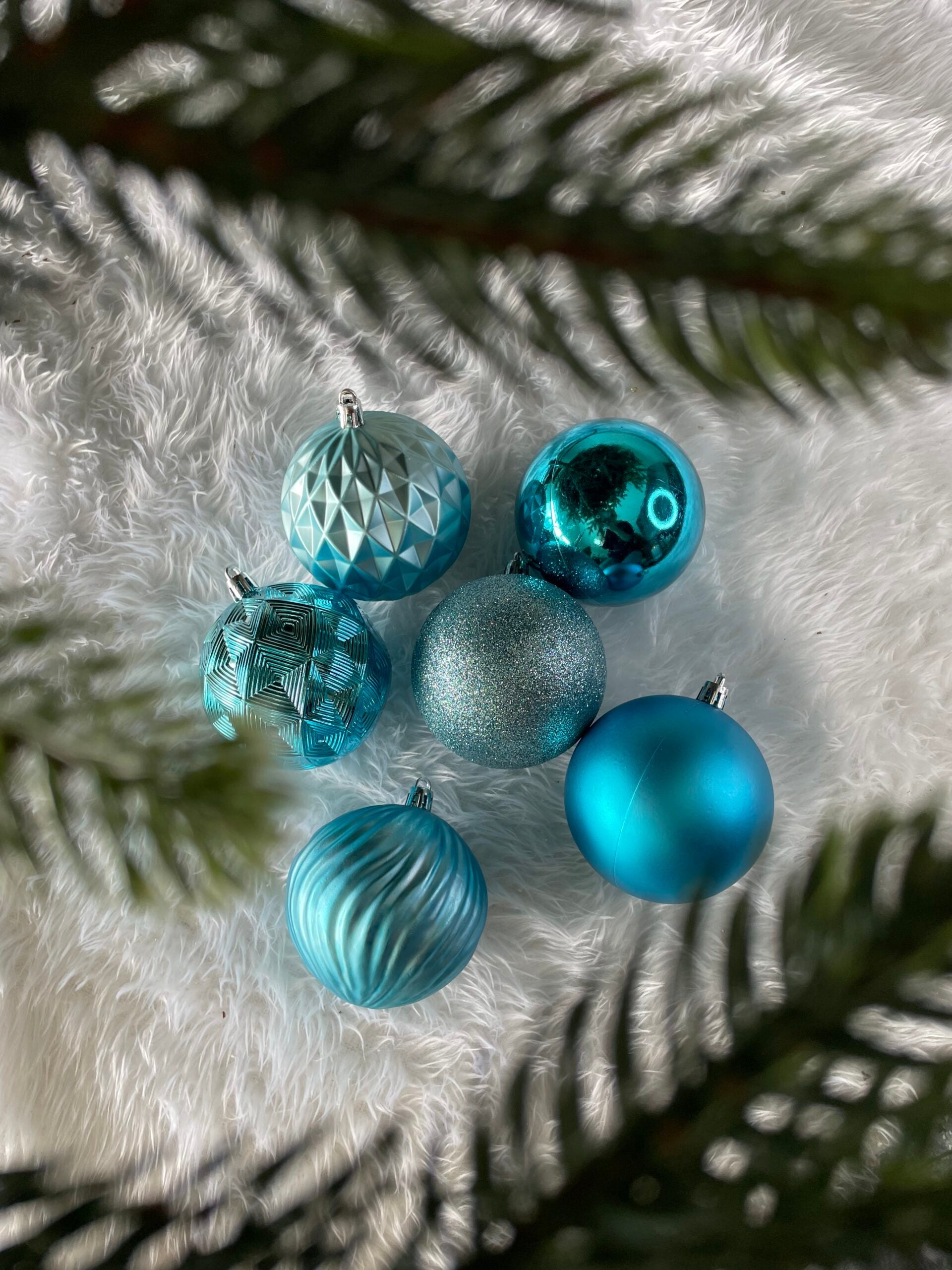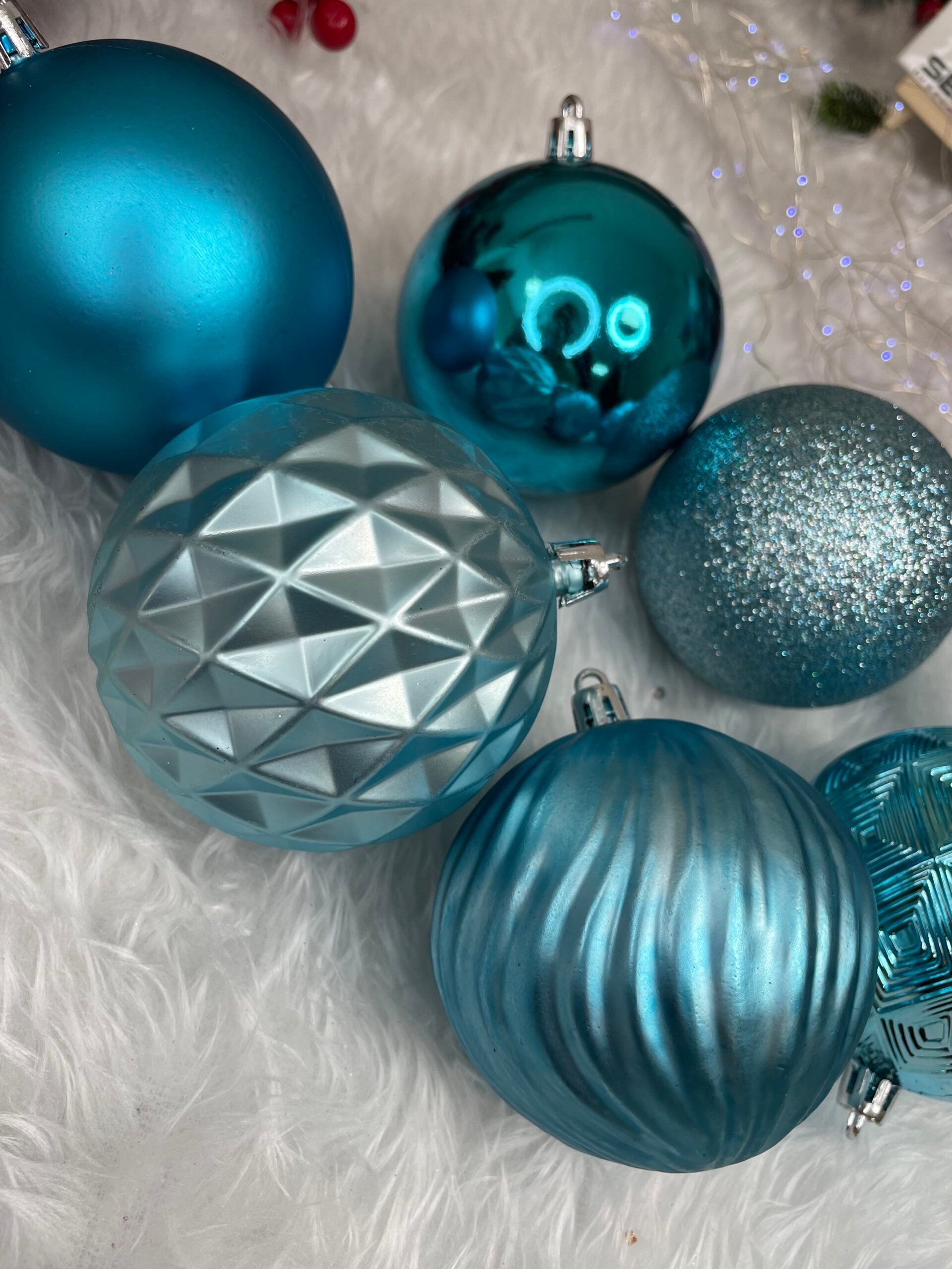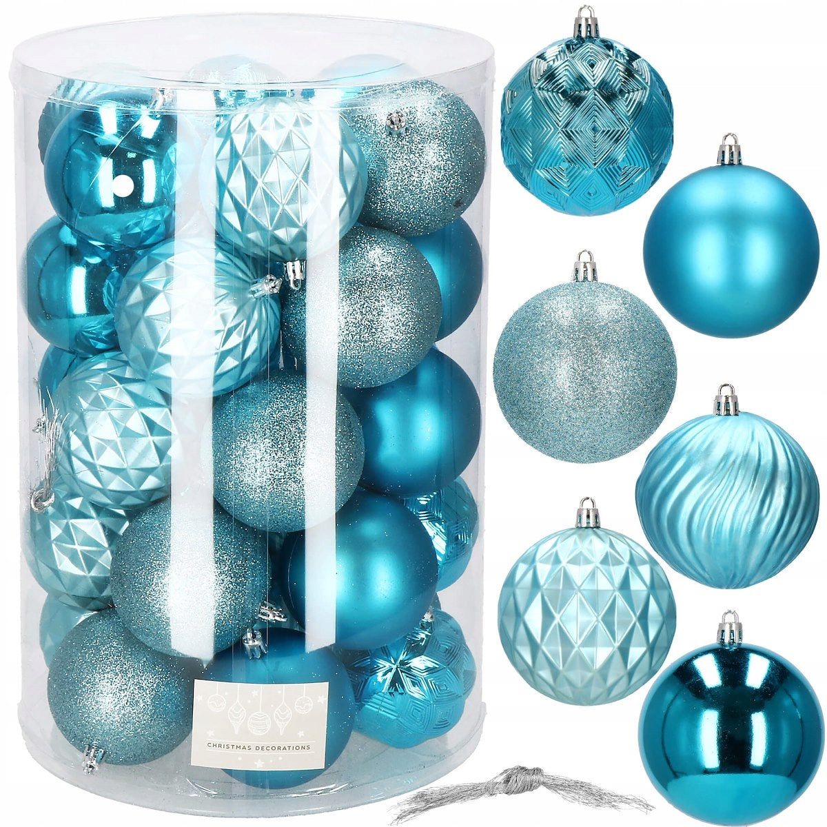 Set globuri de Craciun, 30 bucati, 6 modele, 8cm, albastru