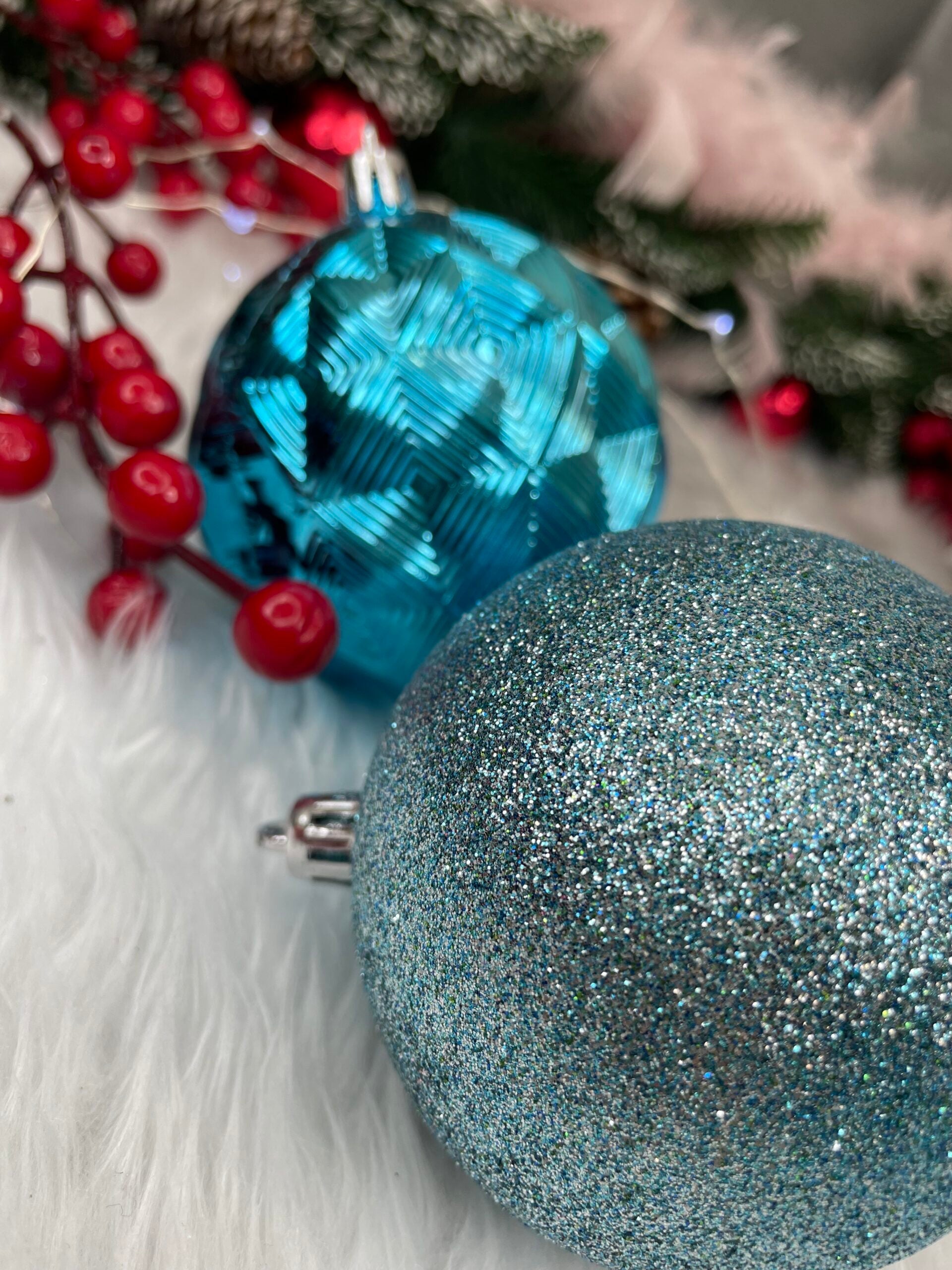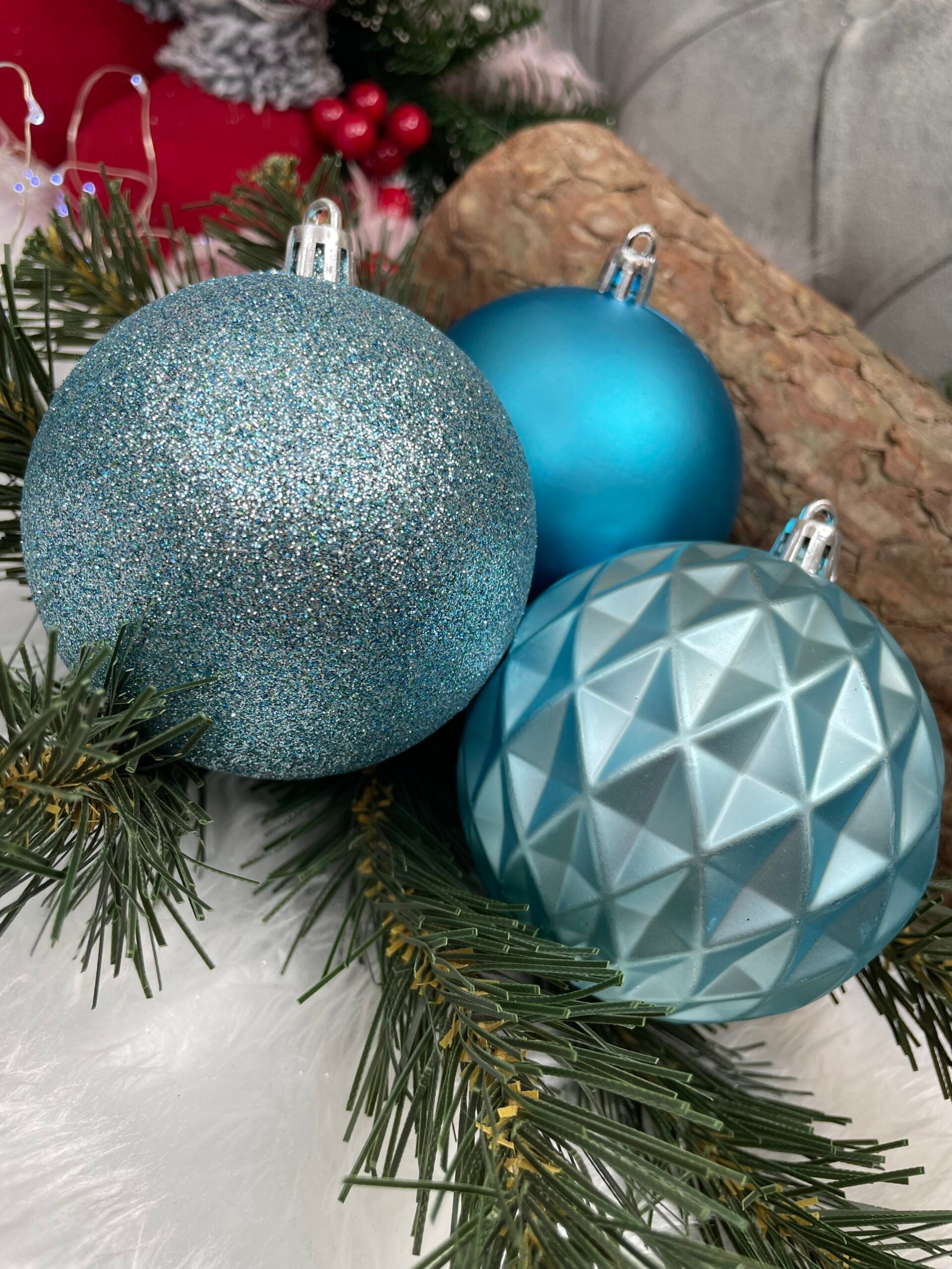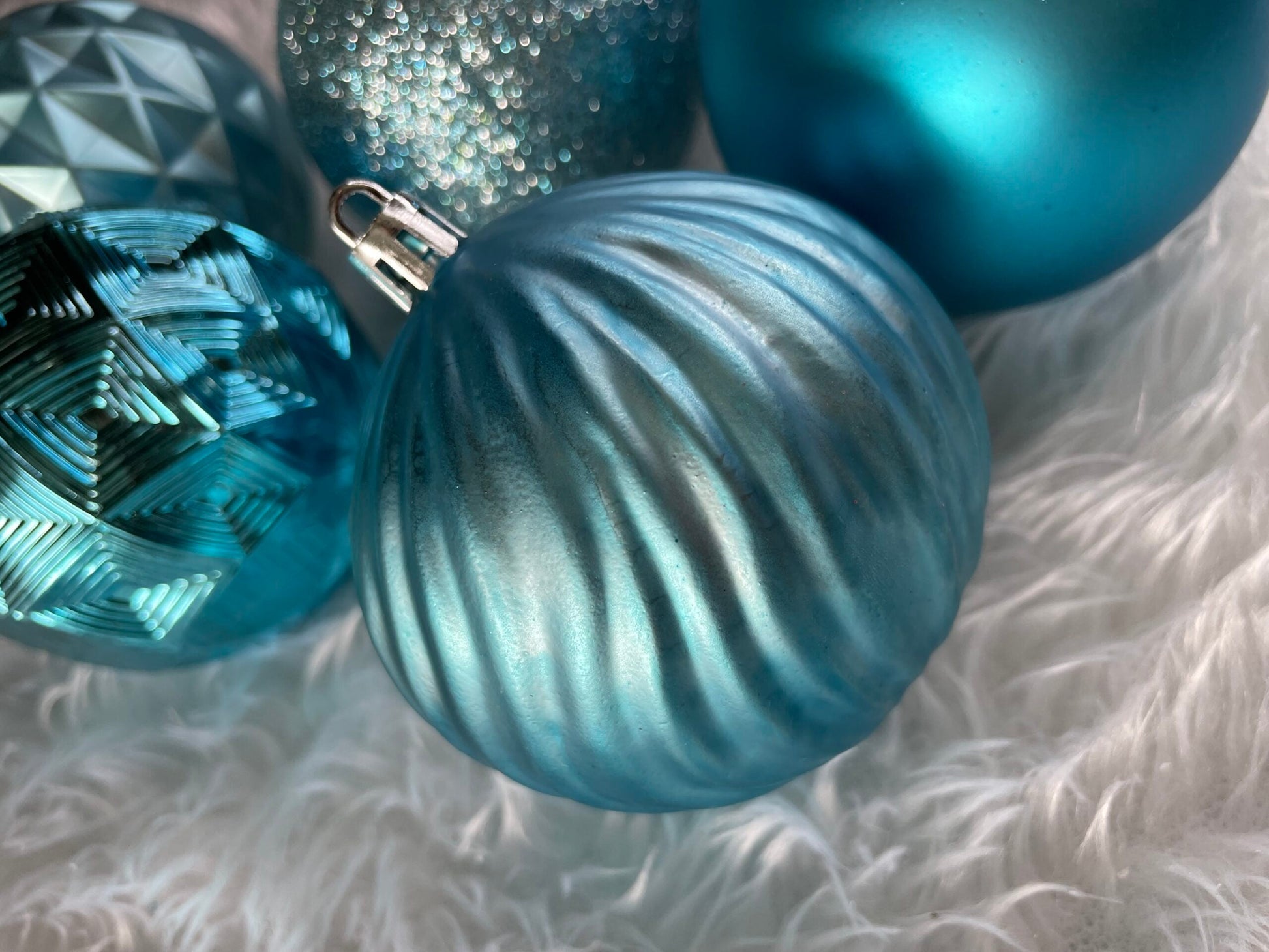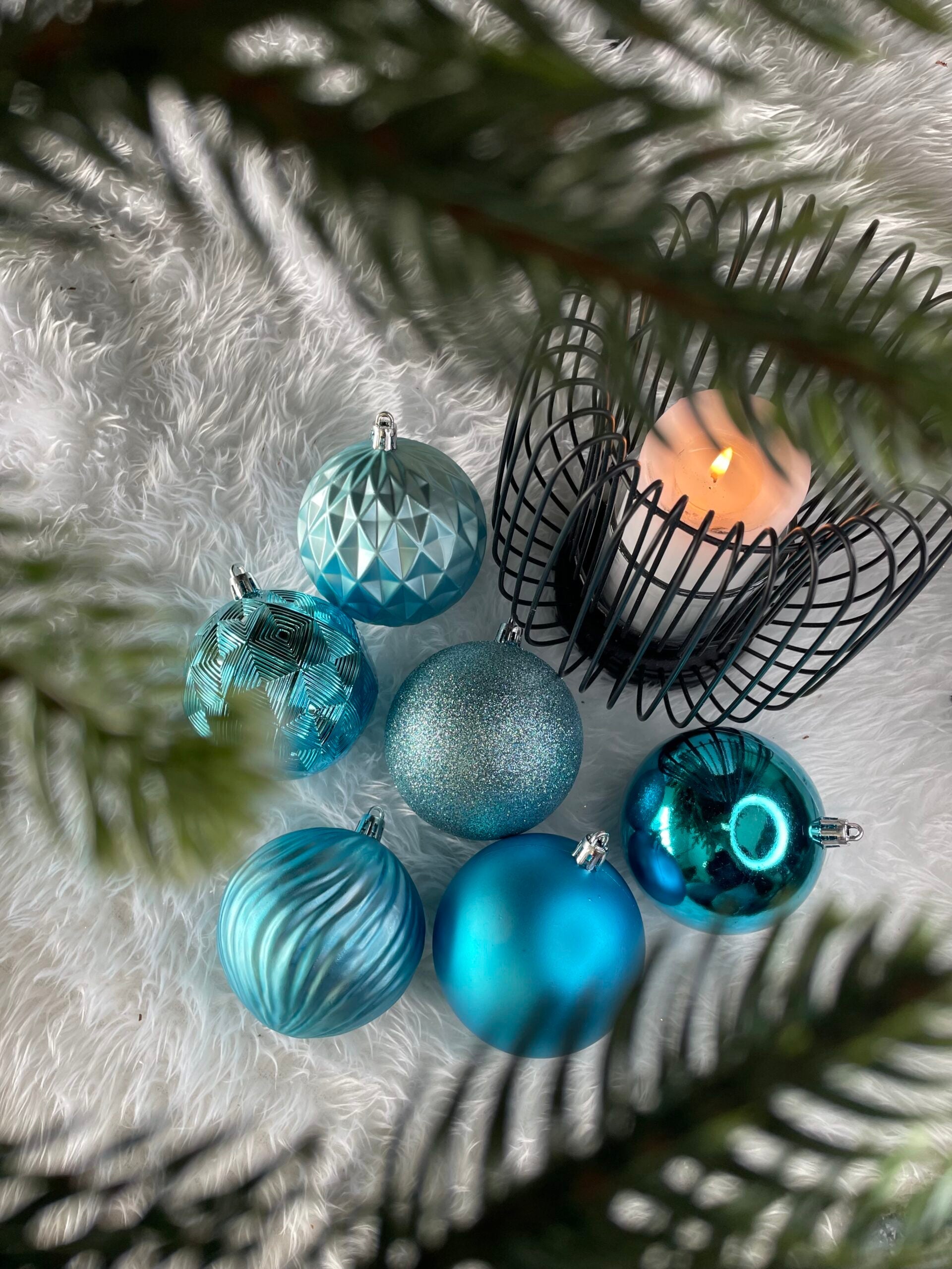 Set globuri de Craciun, 30 bucati, 6 modele, 8cm, albastru