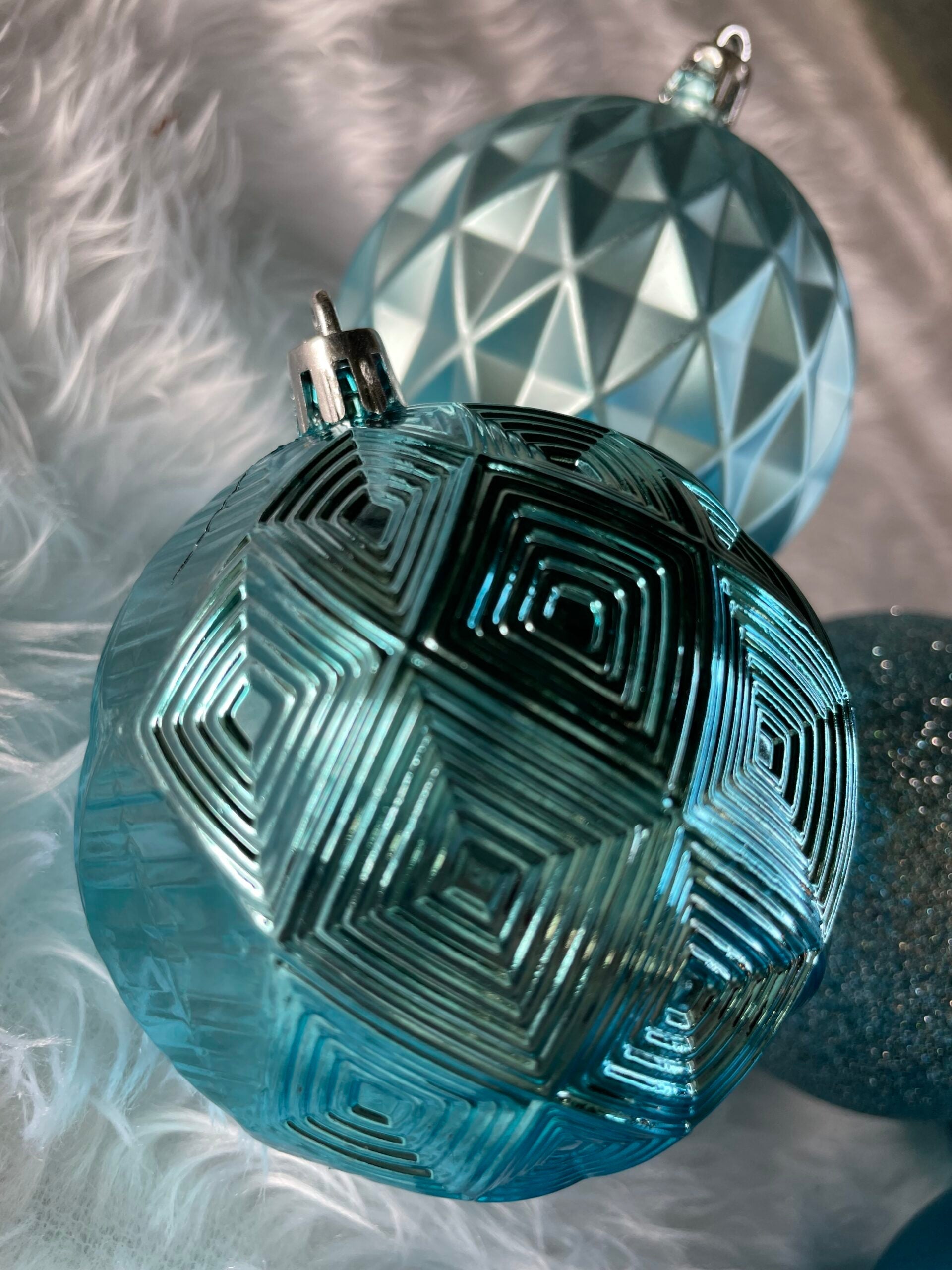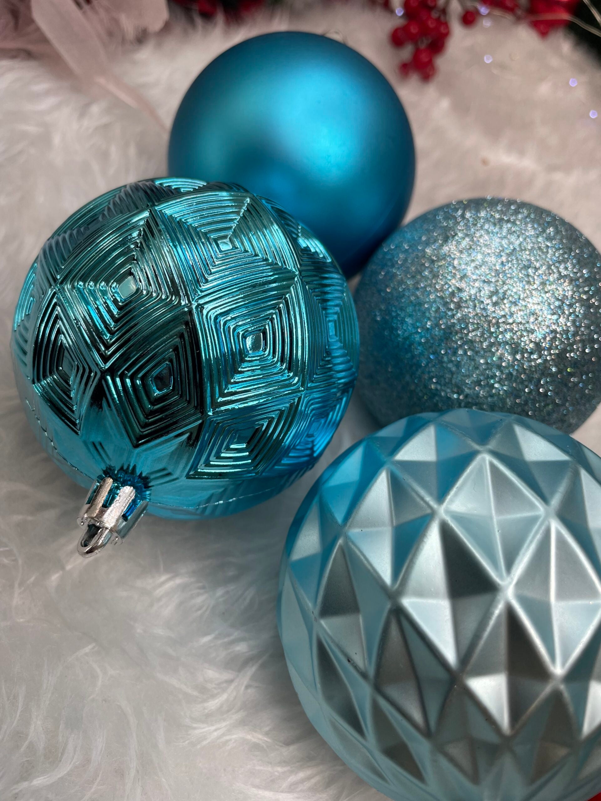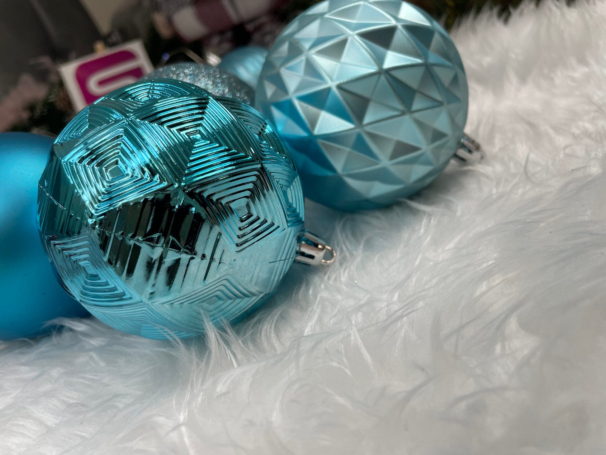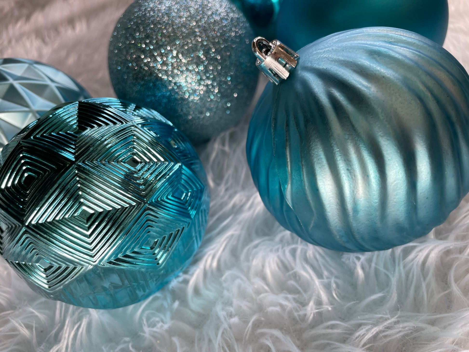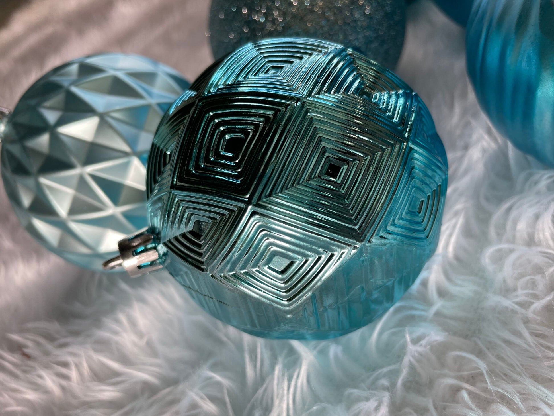 Set globuri de Craciun, 30 bucati, 6 modele, 8cm, albastru