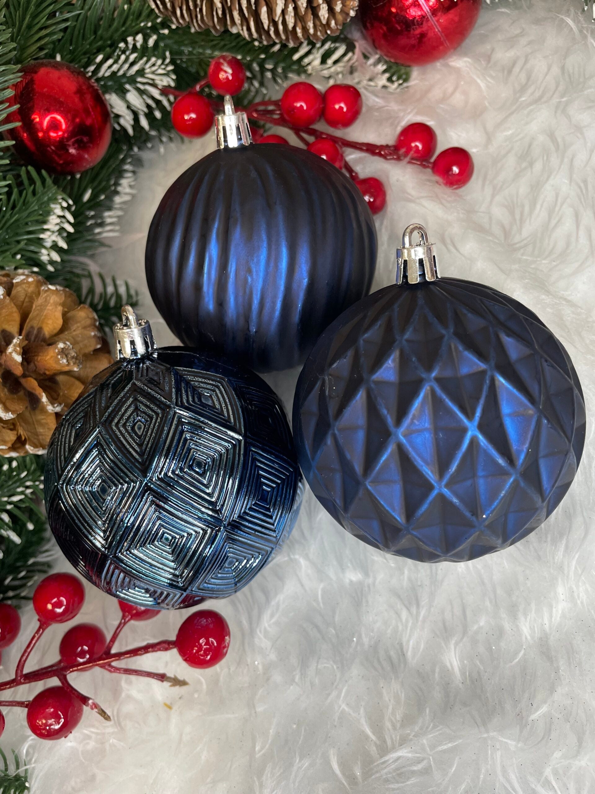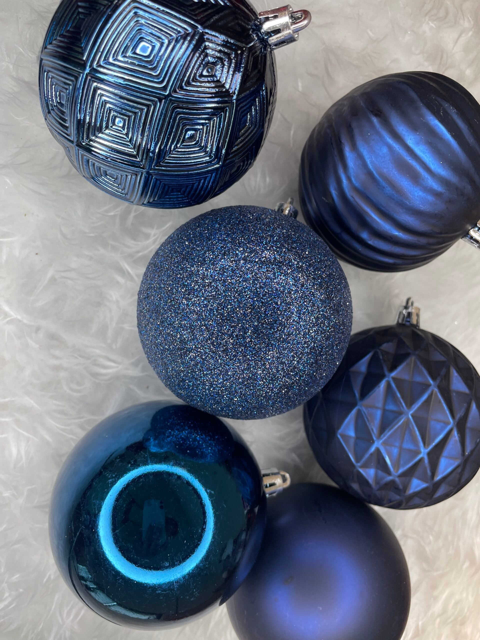 Set globuri de Craciun, 30 bucati, 6 modele, 8cm, albastru inchis
