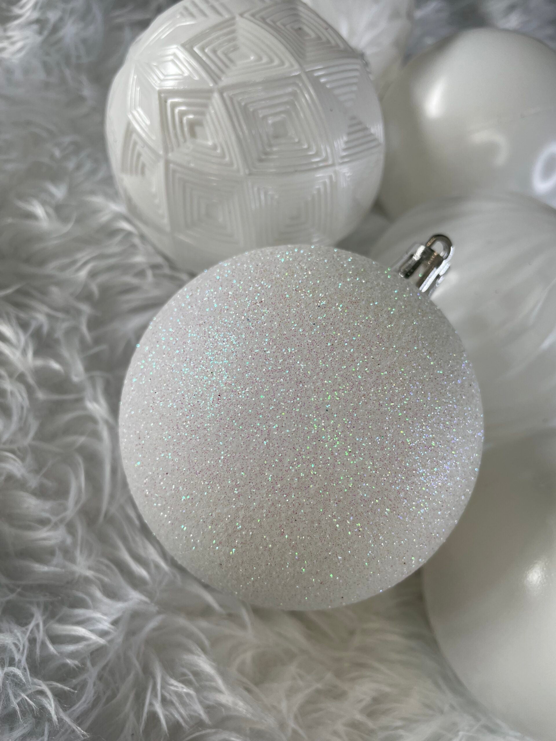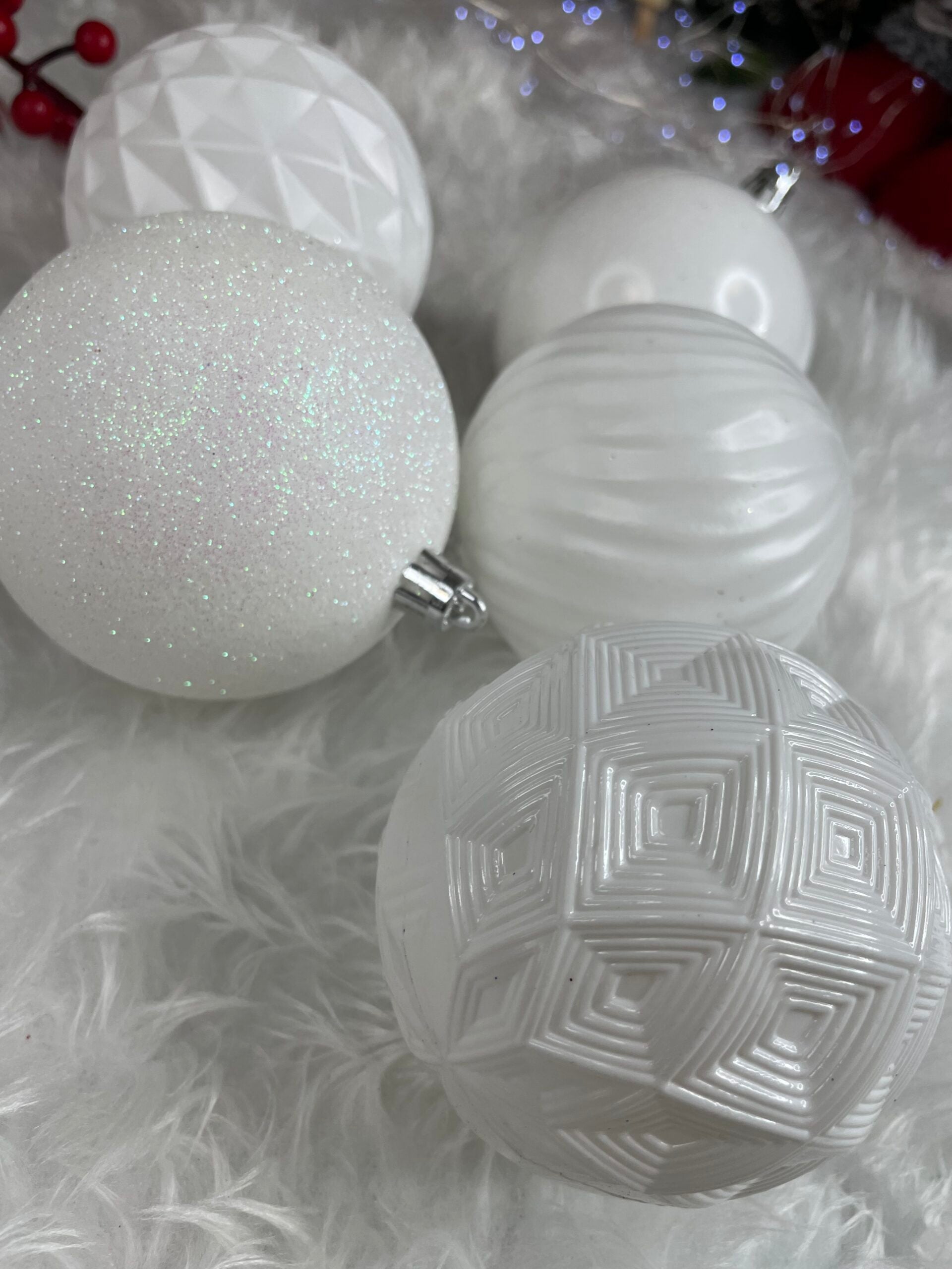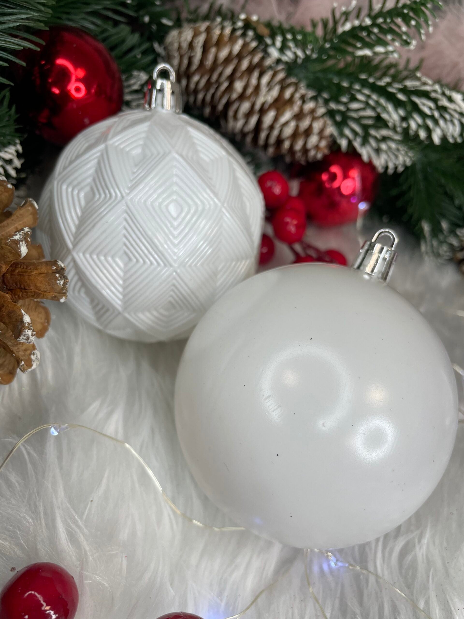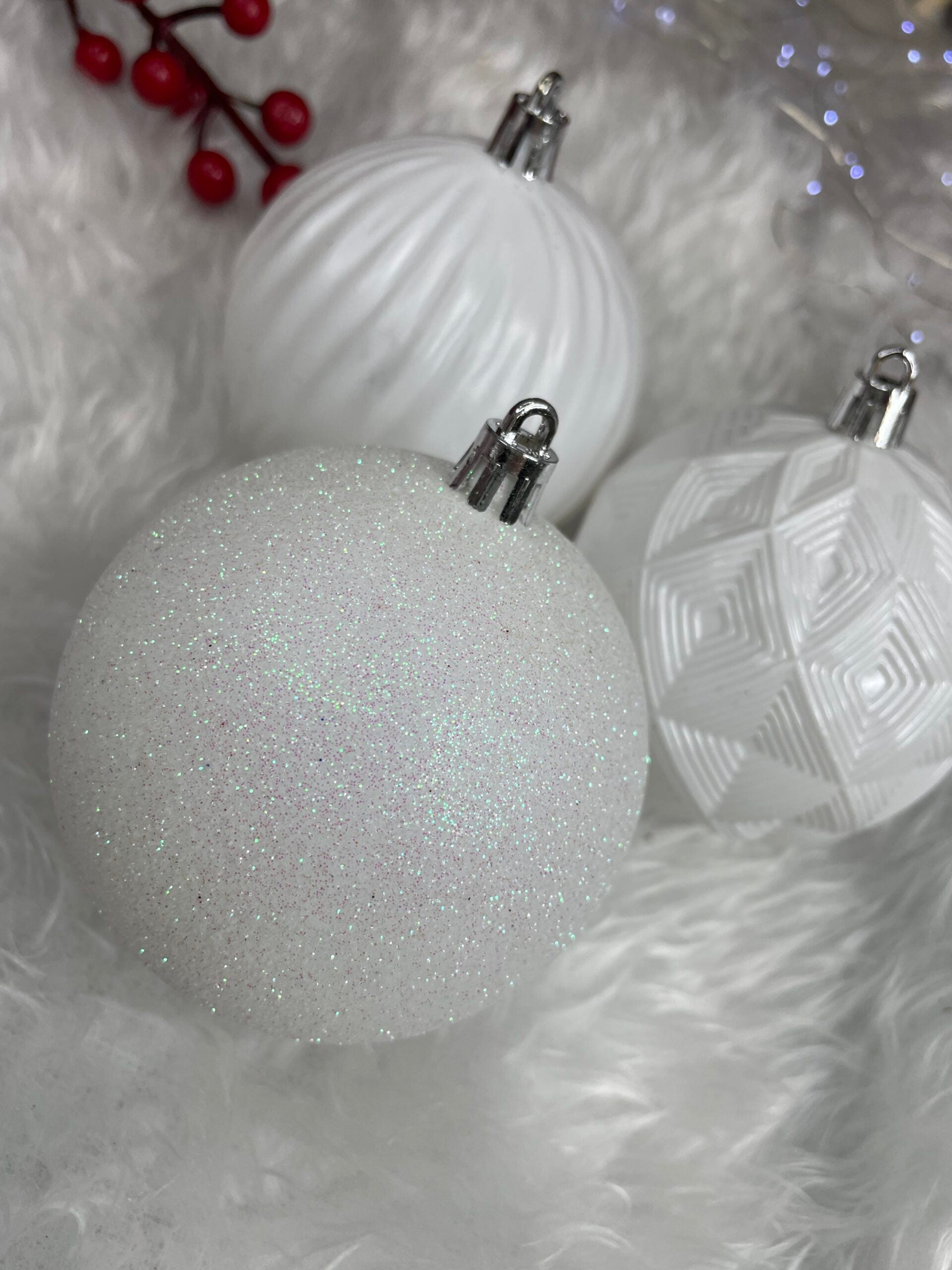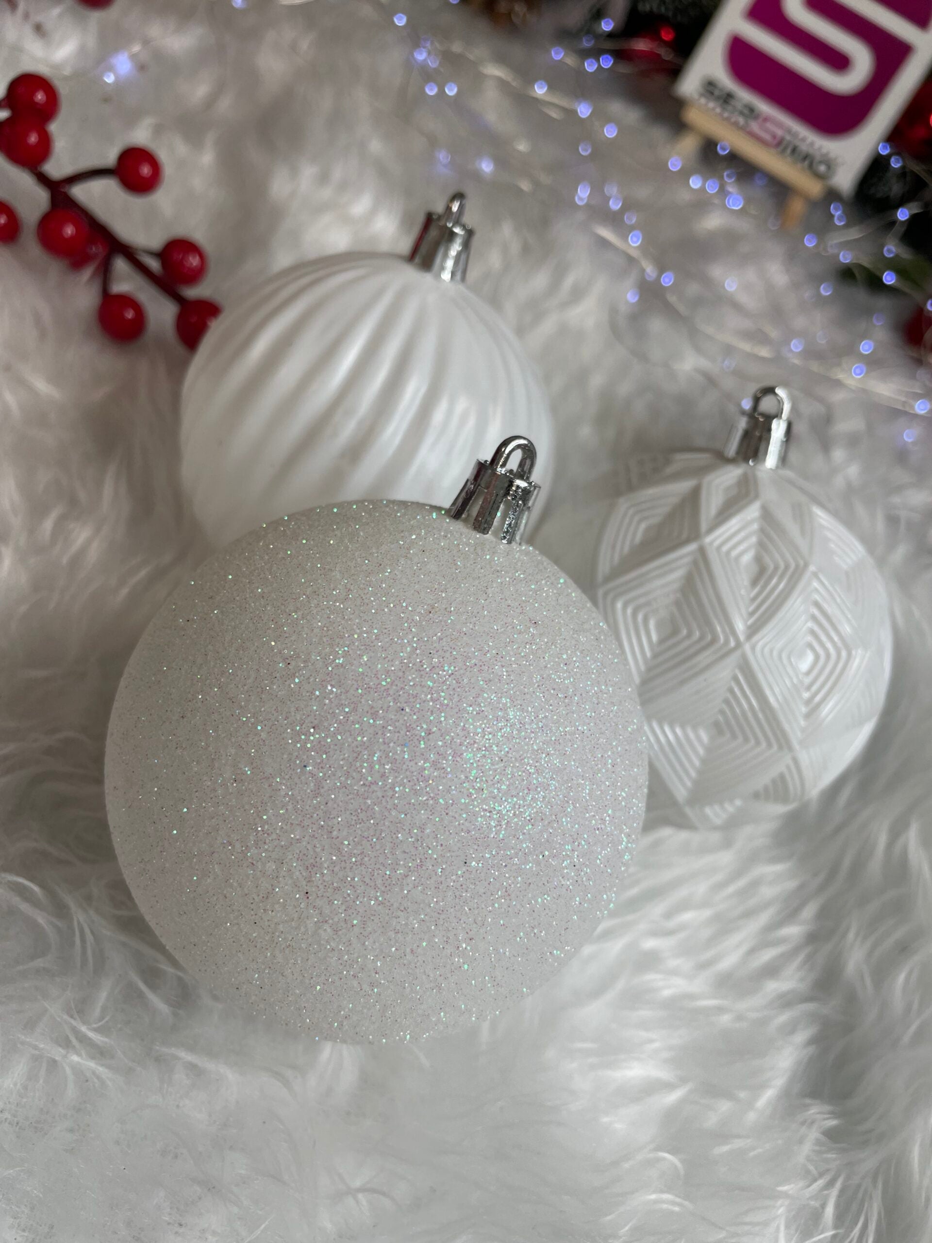 Set globuri de Craciun, 30 bucati, 8cm, 6 modele, alb