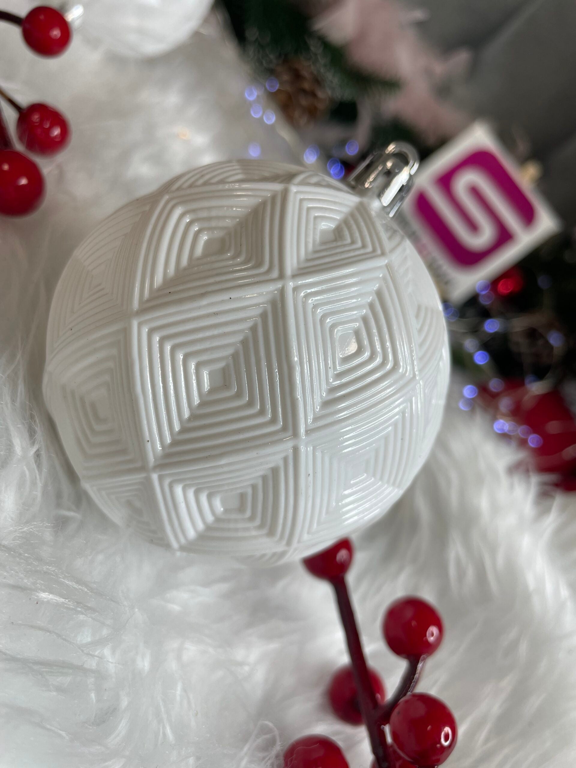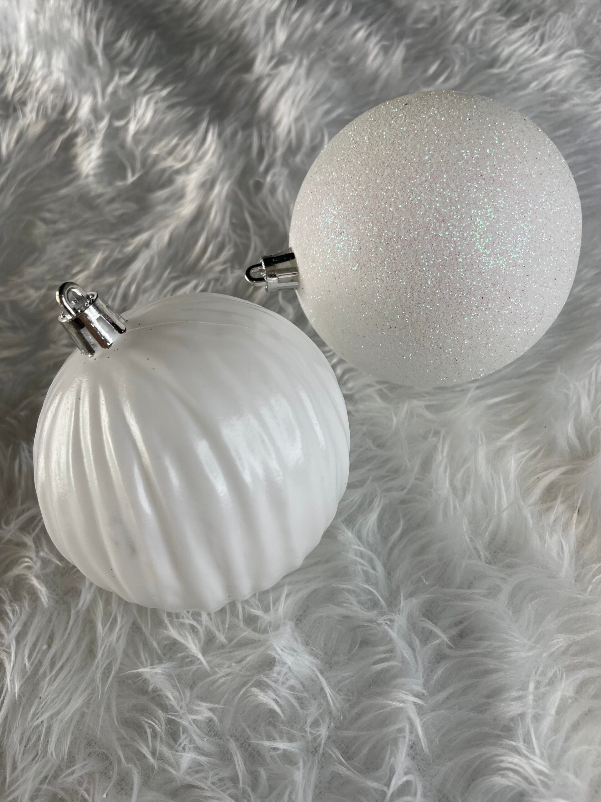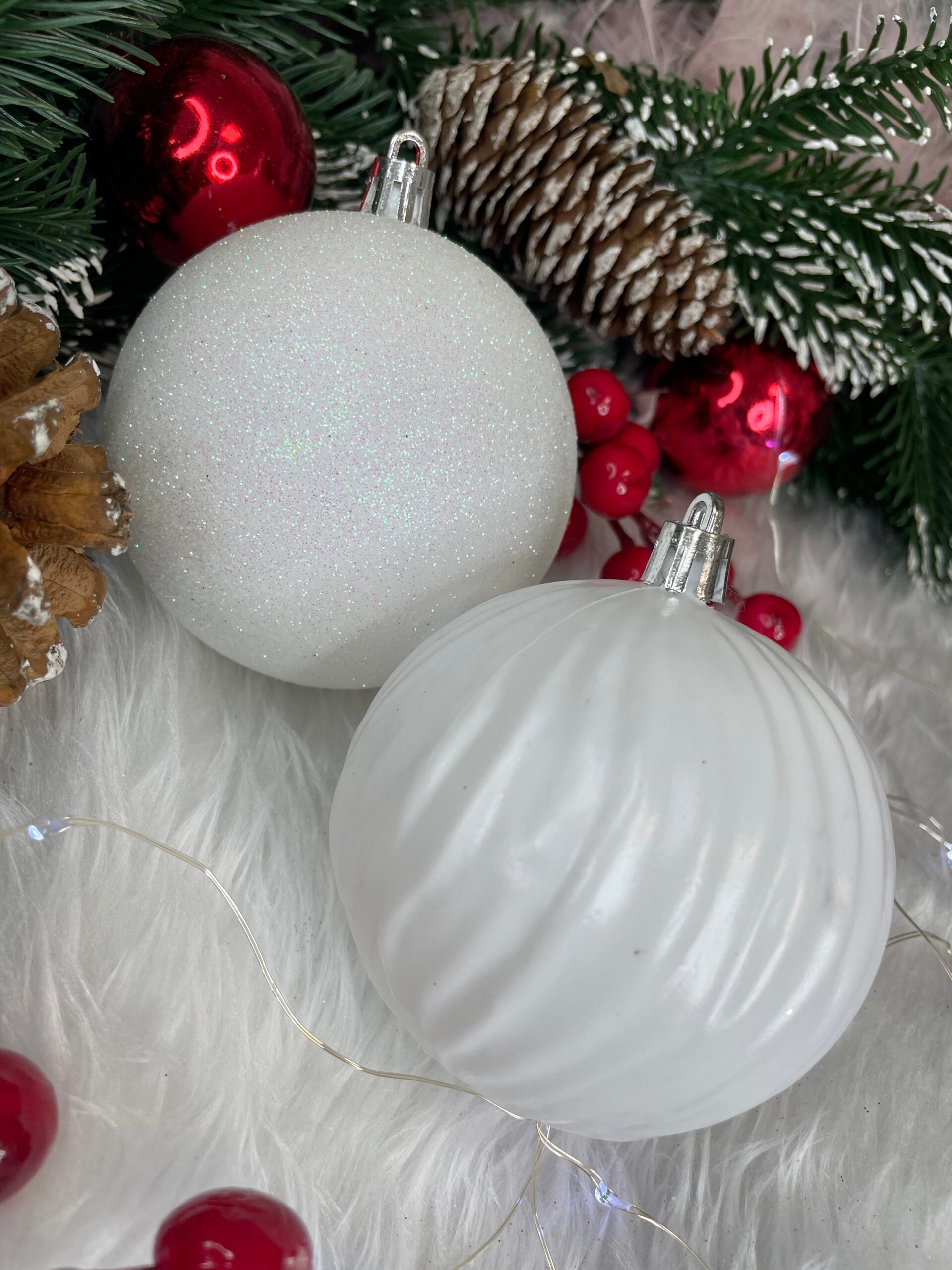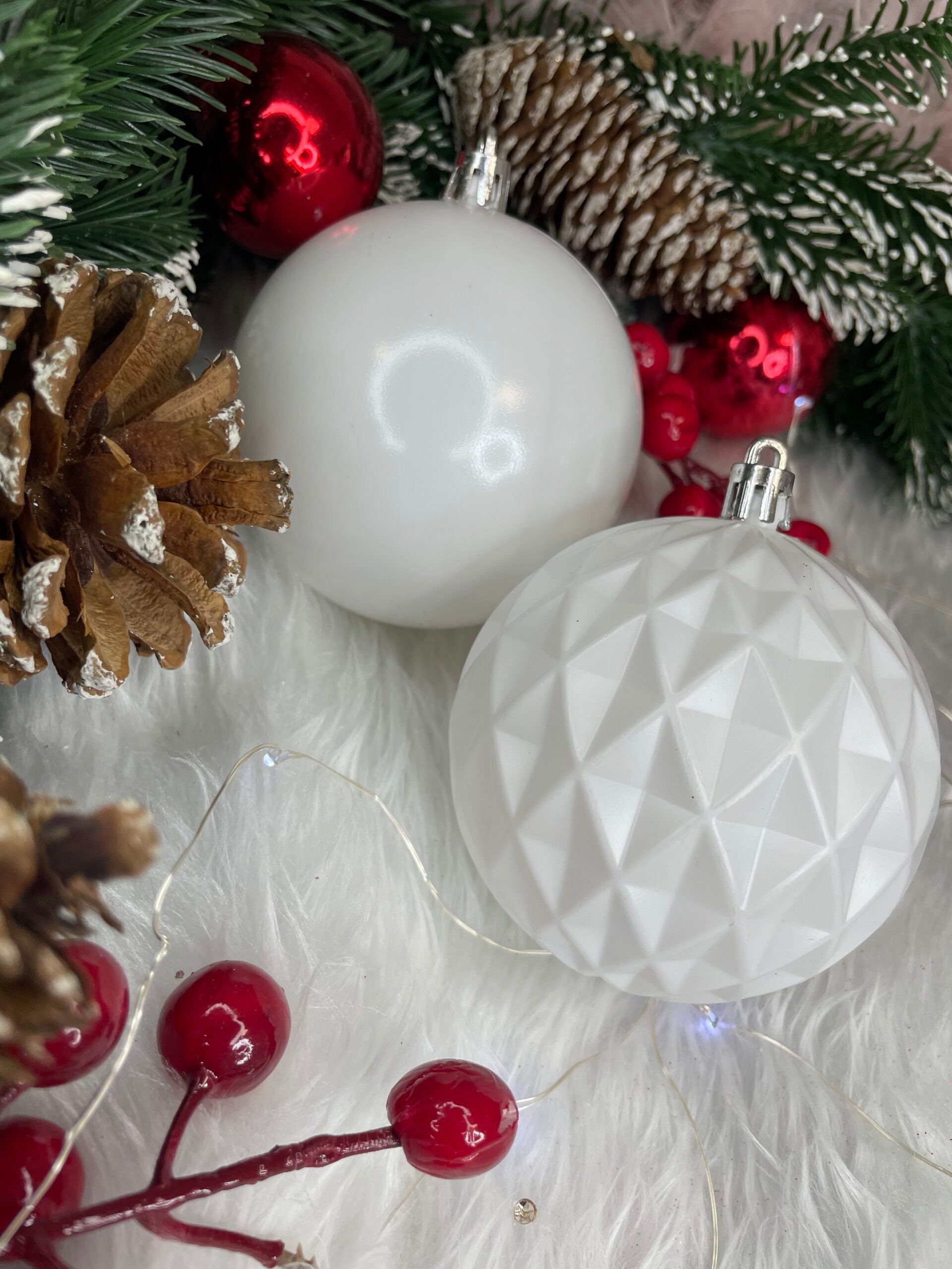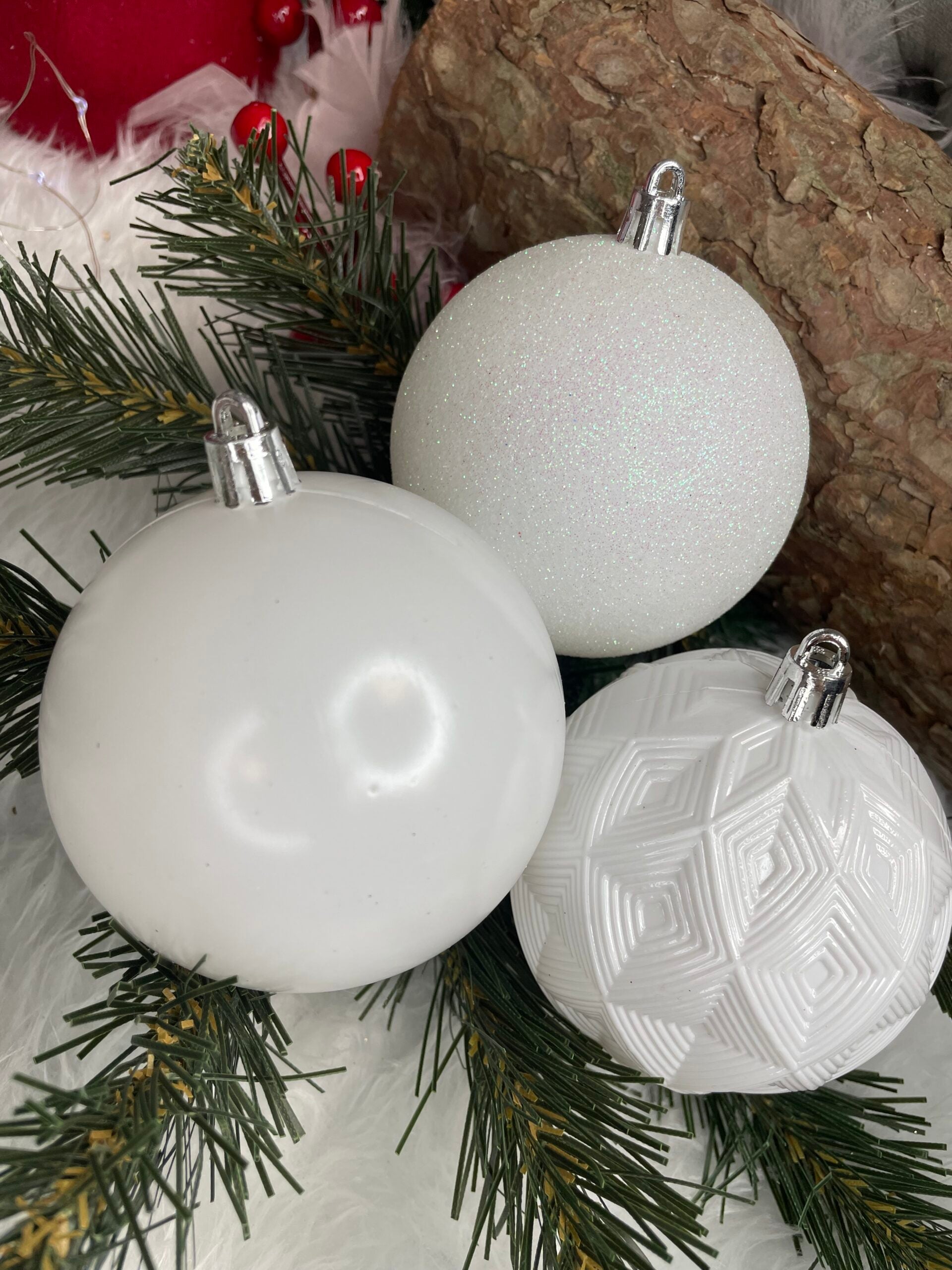 Set globuri de Craciun, 30 bucati, 8cm, 6 modele, alb