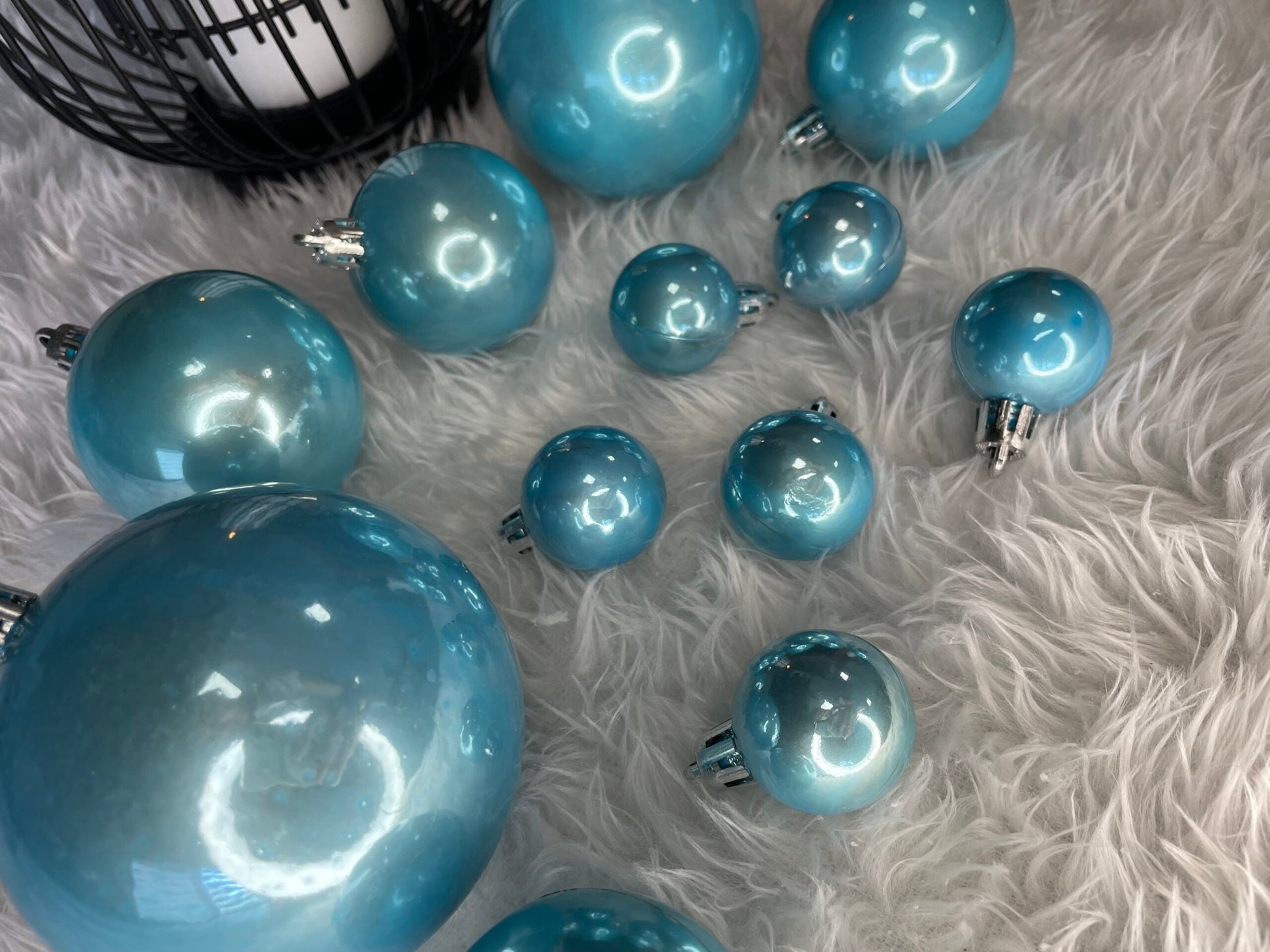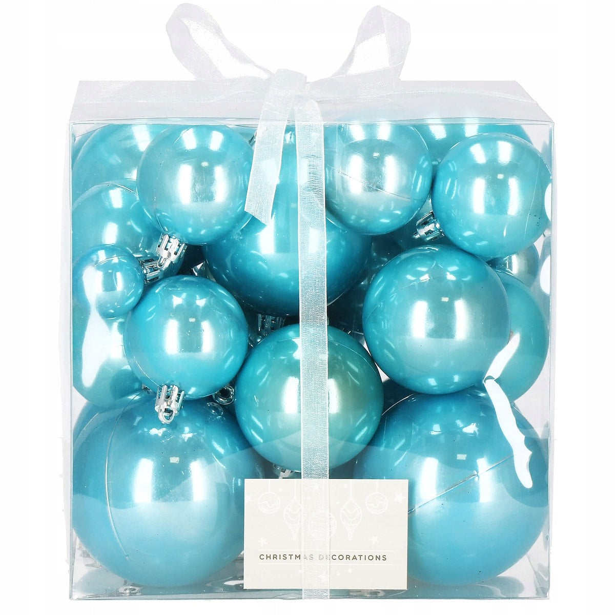 Set globuri de Craciun, 37 bucati, 3-8cm, albastru perla