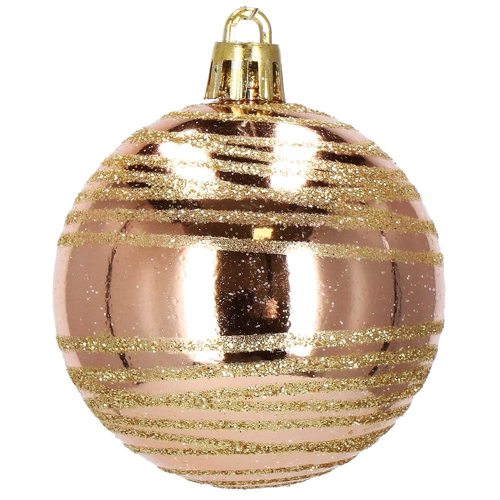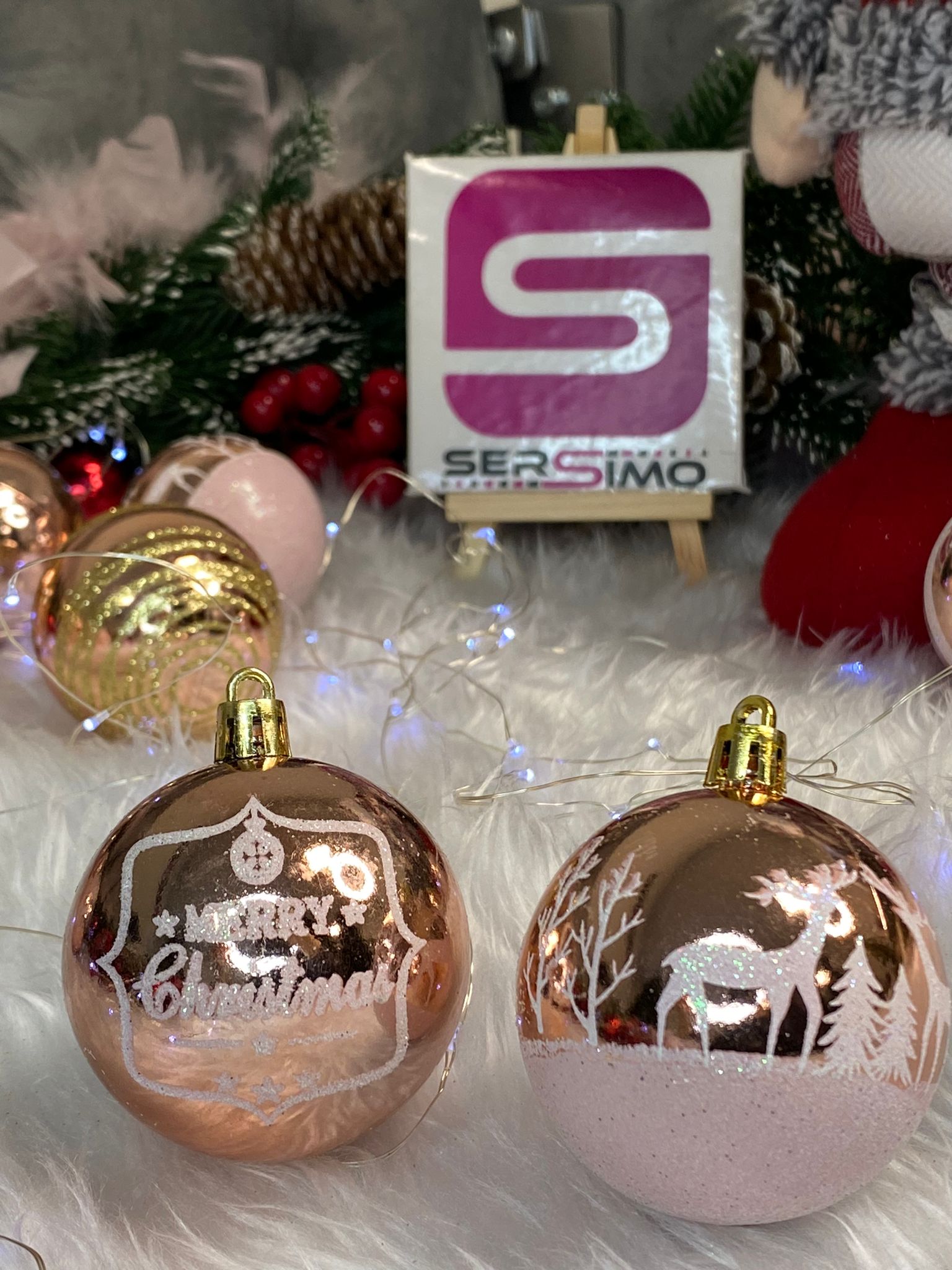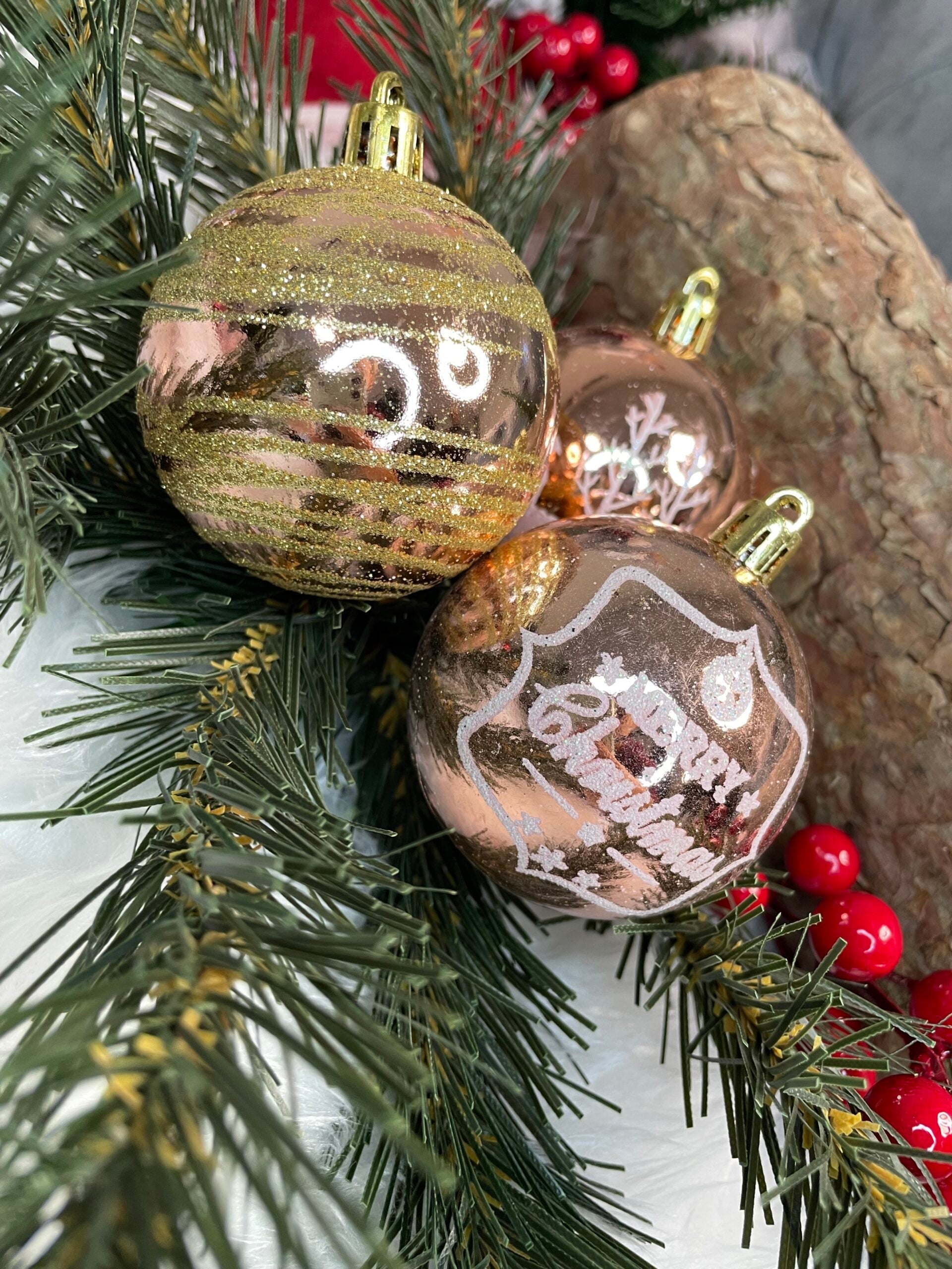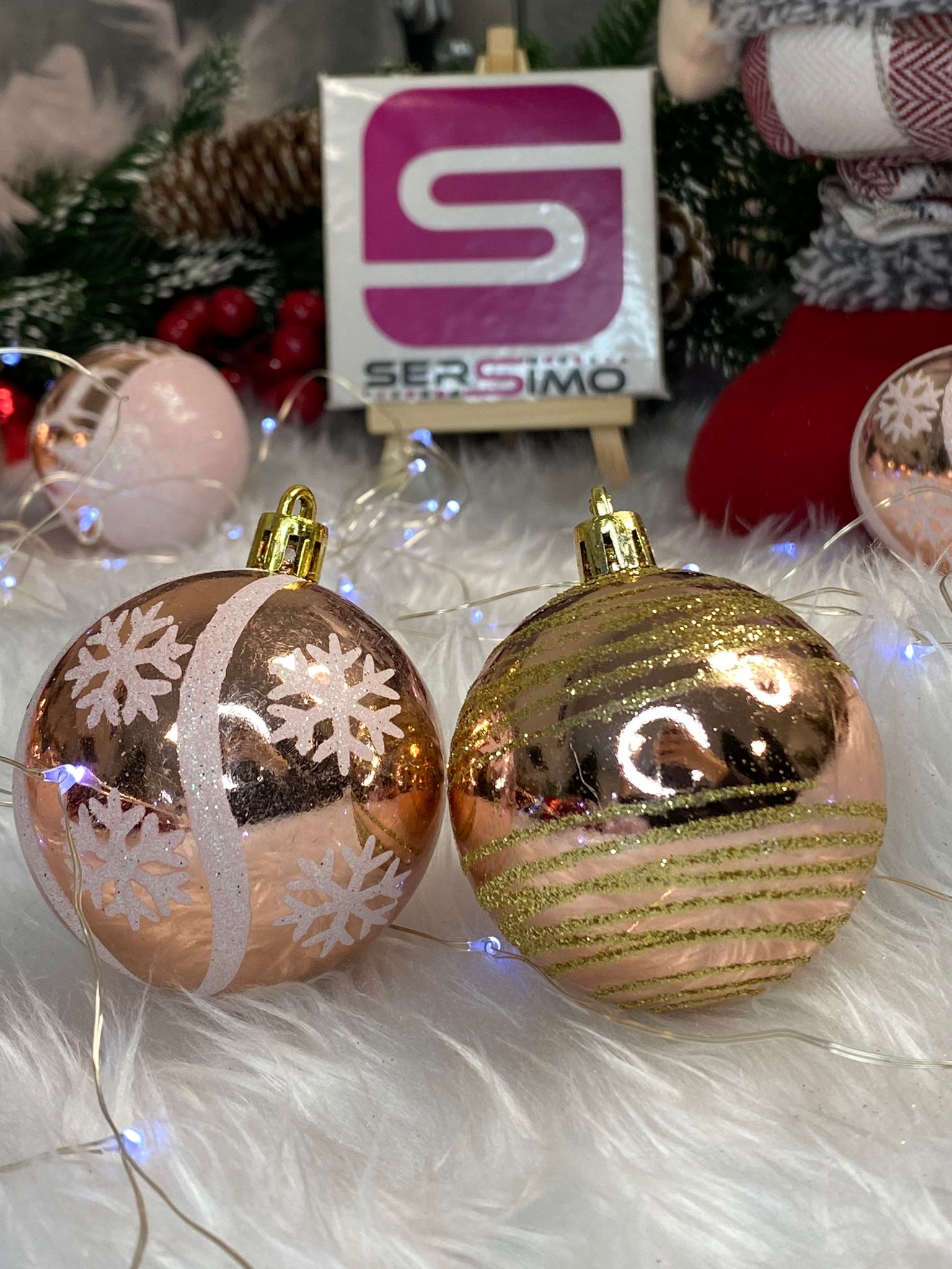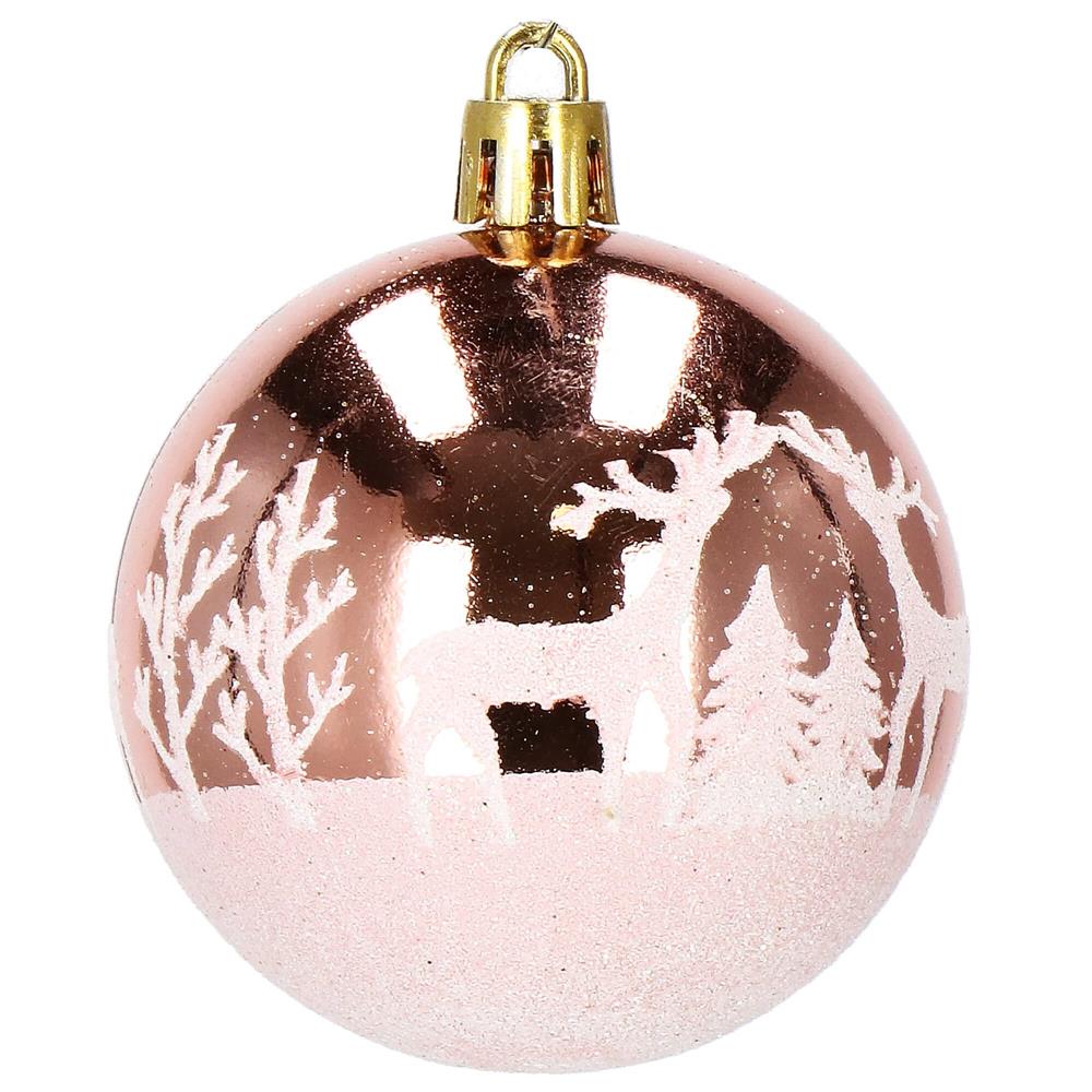 Set globuri de Craciun cu modele de sarbatori, 24 bucati, 6cm, rose