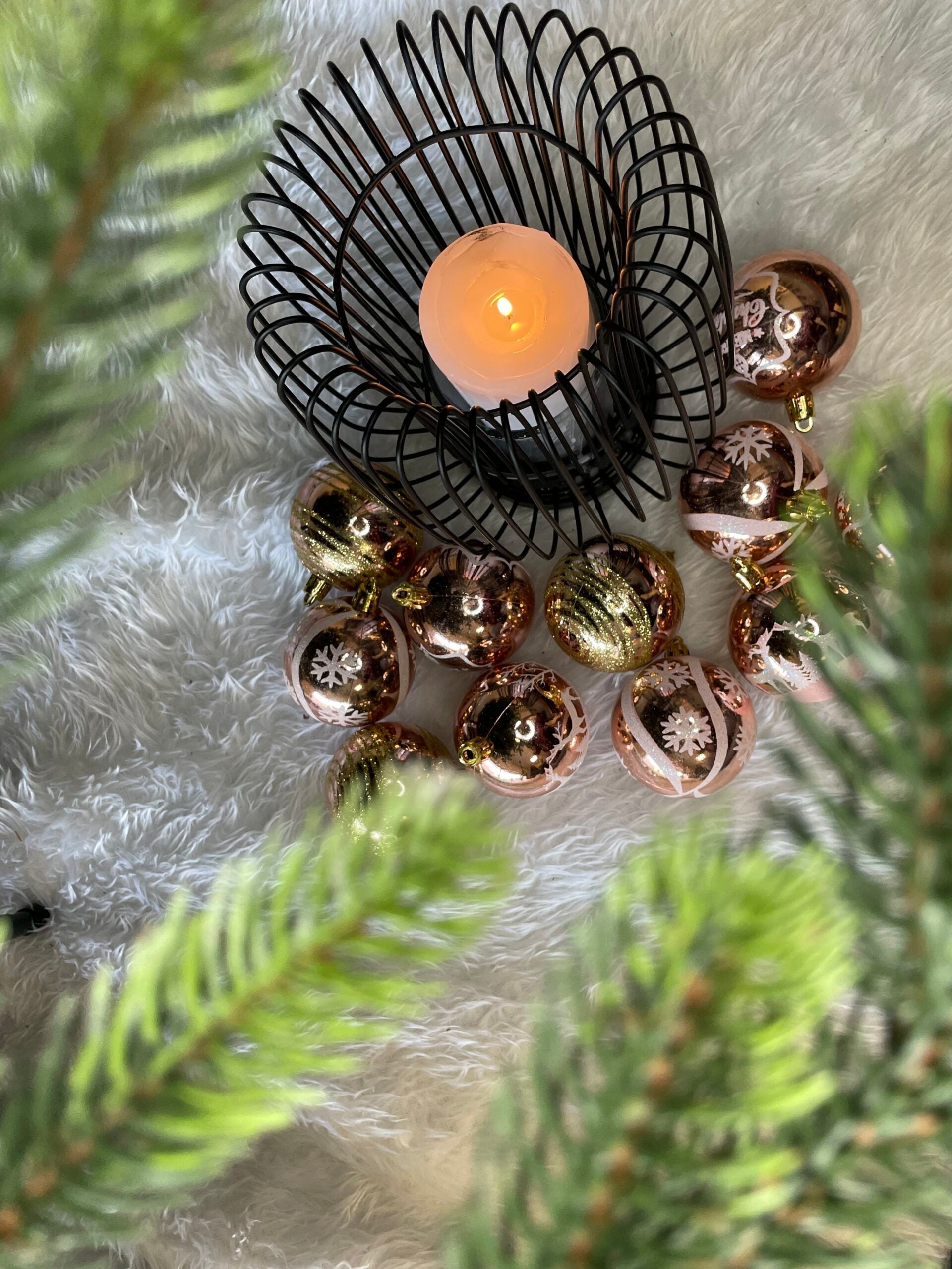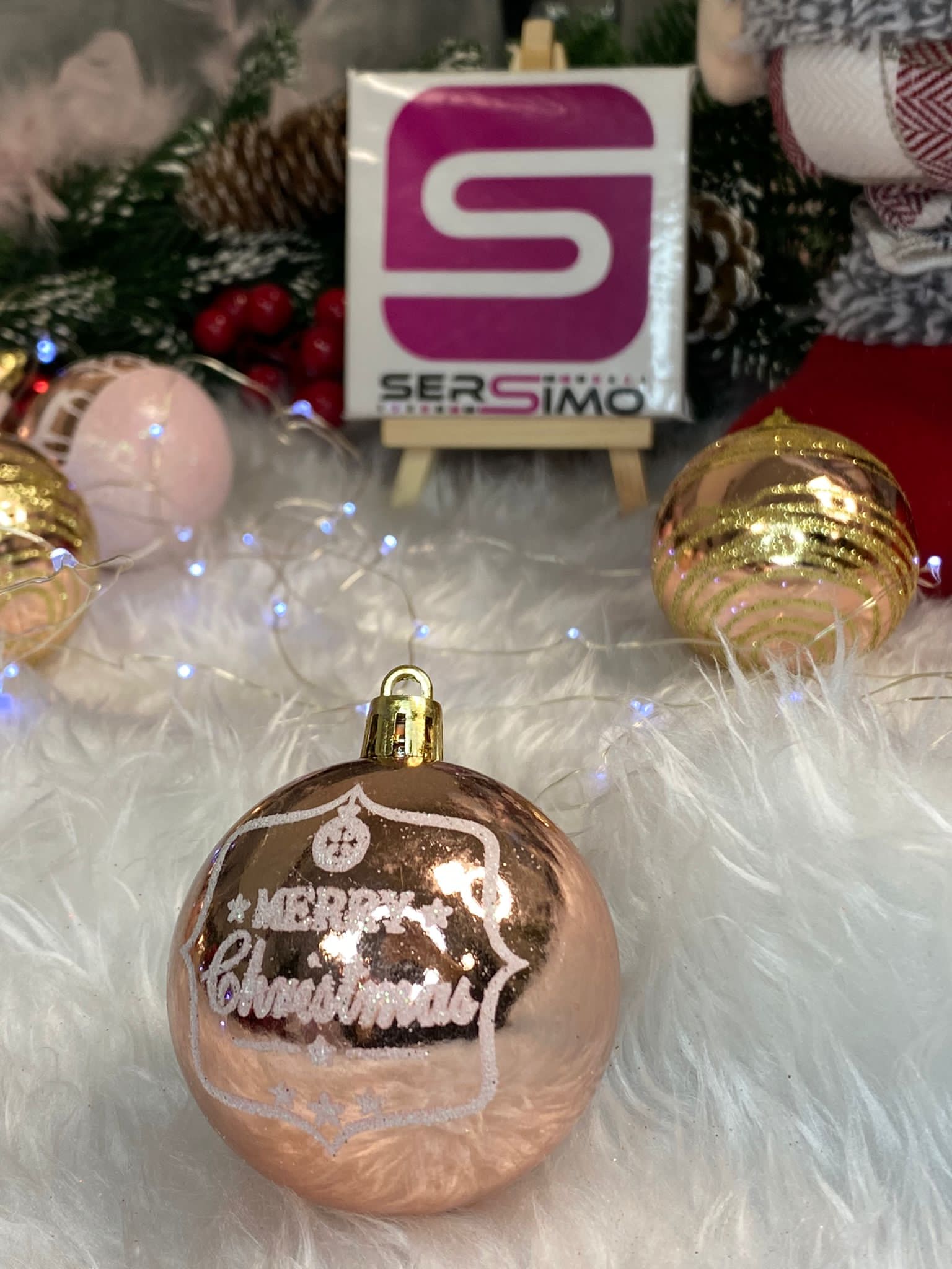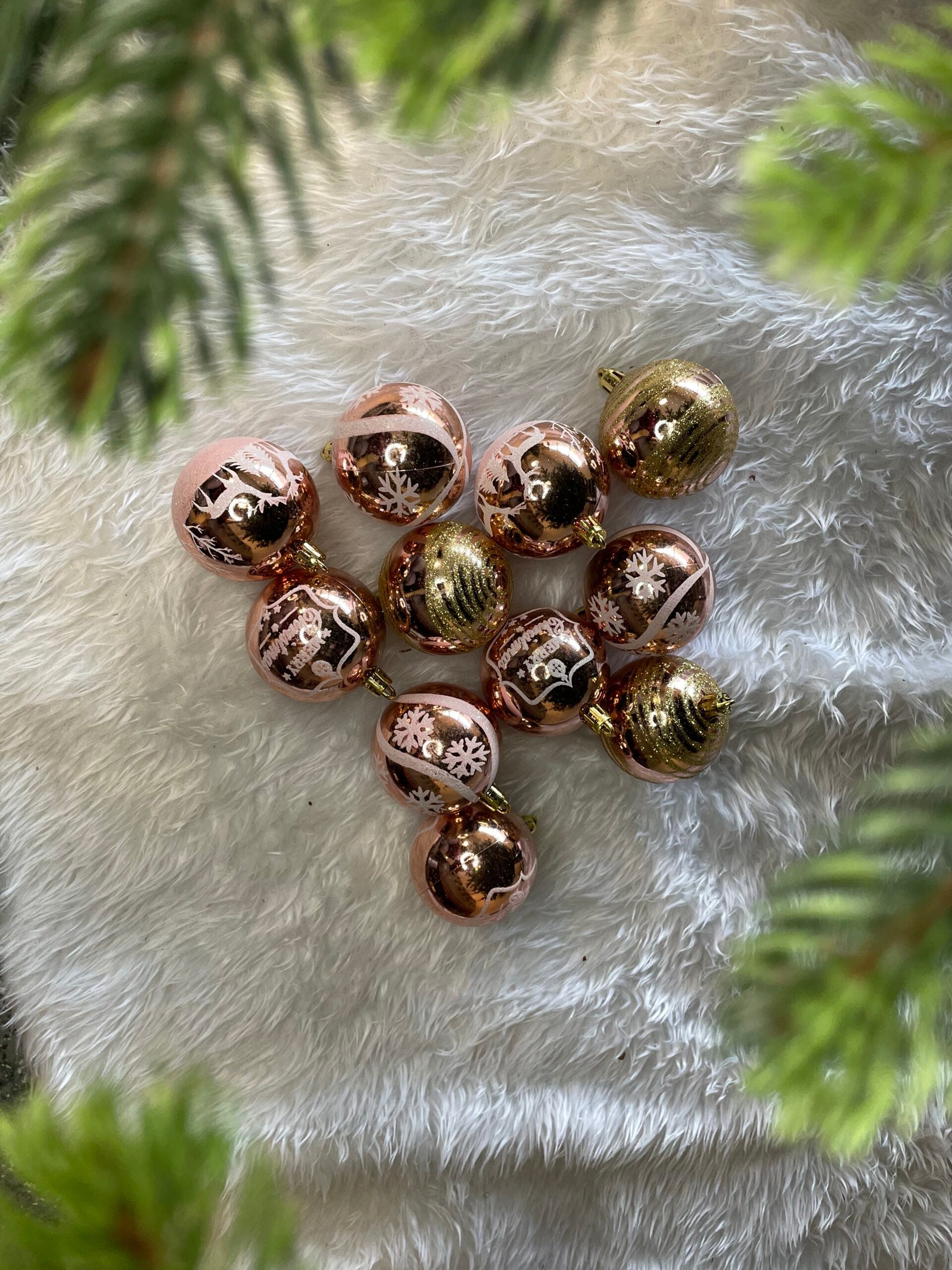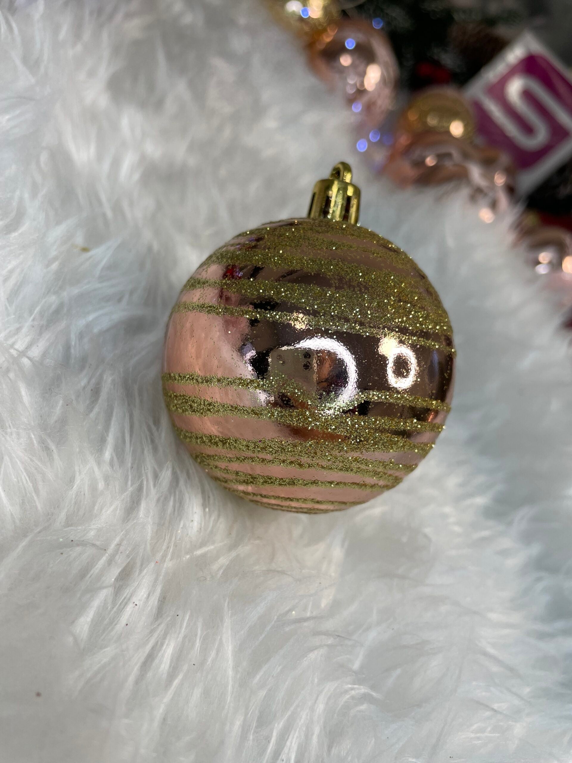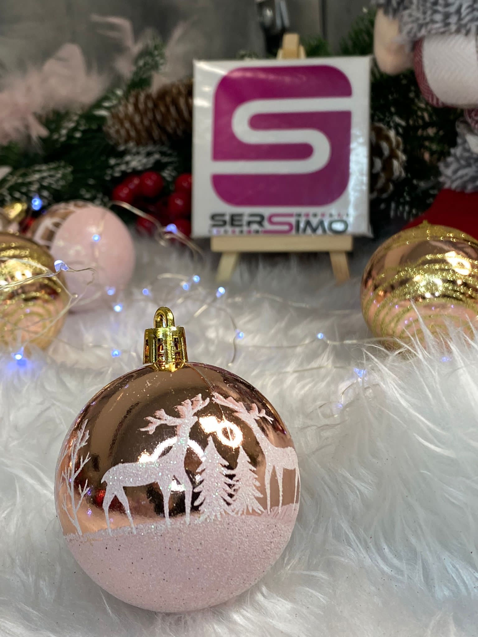 Set globuri de Craciun cu modele de sarbatori, 24 bucati, 6cm, rose