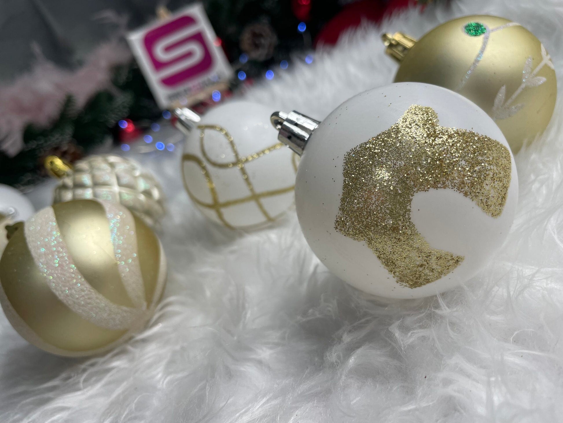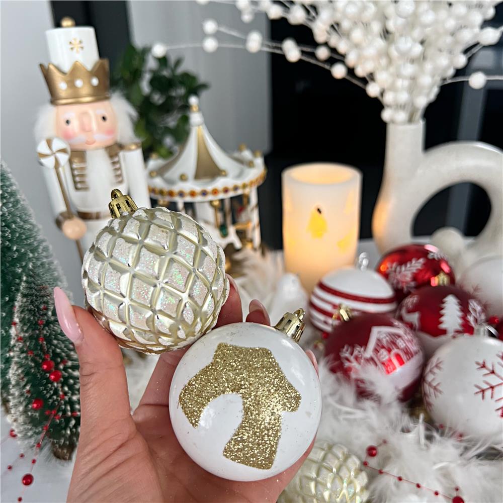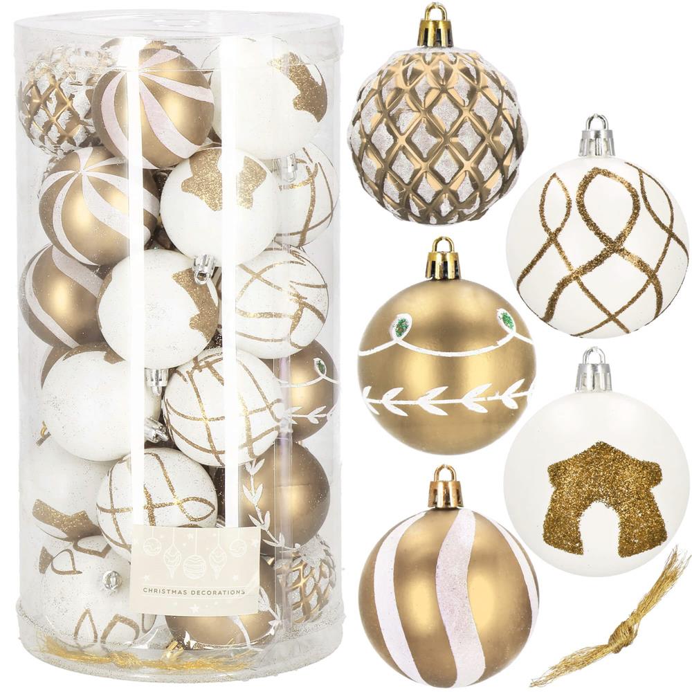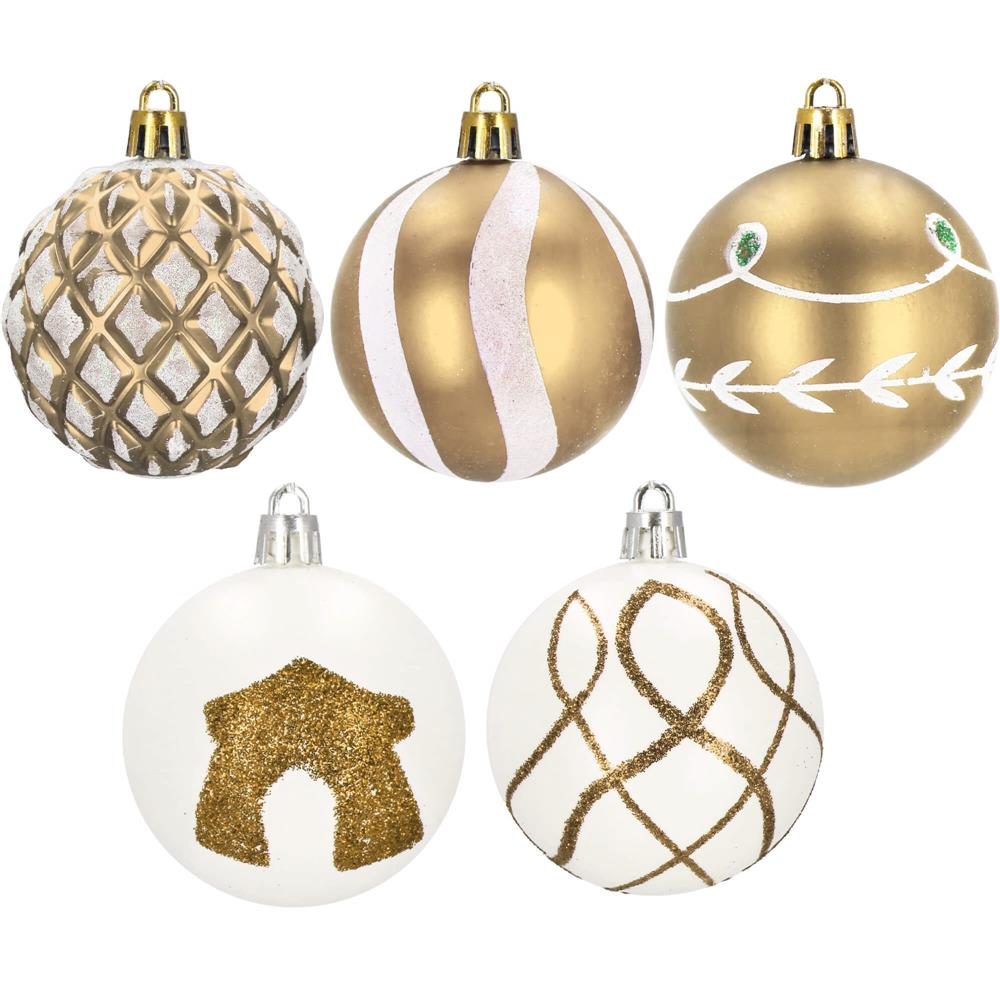 Set globuri de Craciun cu modele de sarbatori, 30 bucati, 6cm, auriu