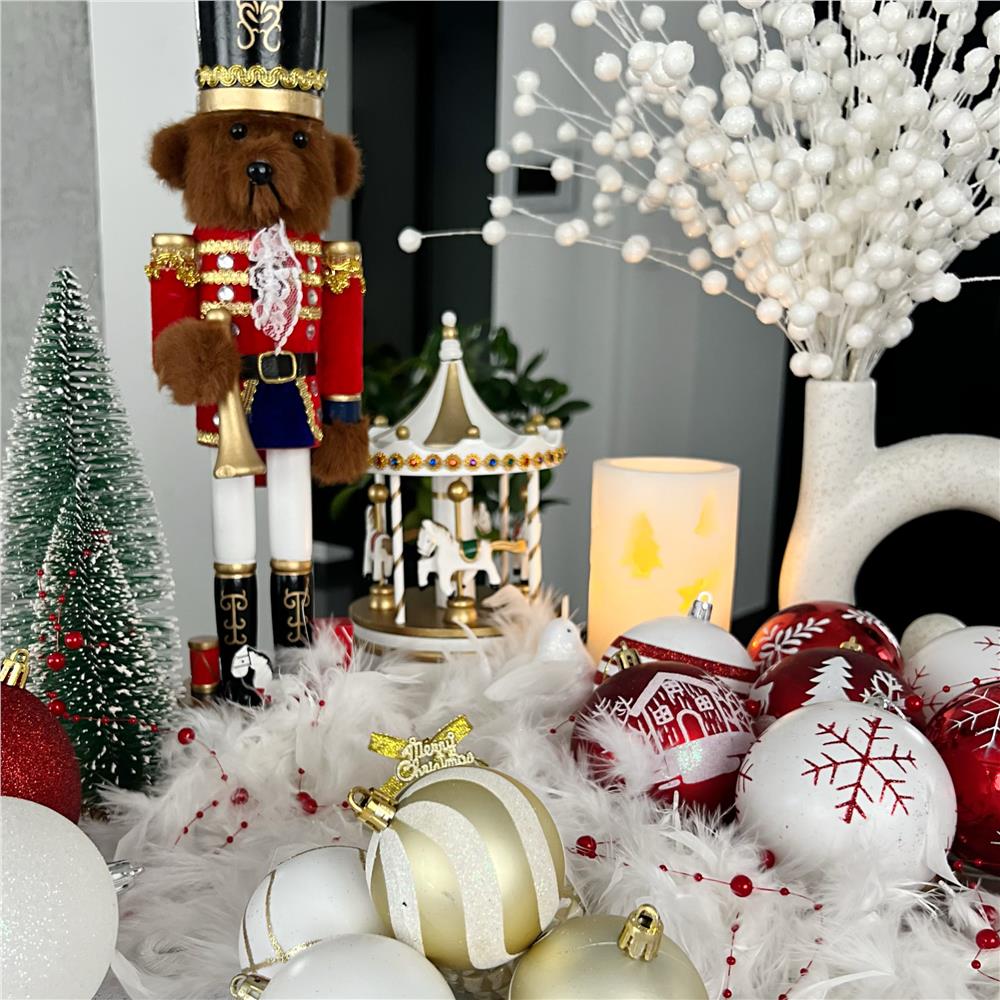 Set globuri de Craciun cu modele de sarbatori, 30 bucati, 6cm, auriu — design modern și finisaje de calitate. Culoare: auriu, alb Material: plastic Dimensiune: 6 cm Cantitate: 30 de bucati Modele: 5x modele diferite Incasabil, snururi aurii pentru agatat Craciunul, ca si intreaga perioada de iarna, este o perioada magica, plina de caldura si de o atmosfera unica, creata datorita unui spectacol de decoratiuni fabuloase si constelatii luminoase incantatoare. Designul din plastic creste siguranta datorita materialului incasabil. Alegerea lor in locul globurilor de sticla va contribui la siguranta celor mici din casa. Globuletele pentru bradul de Craciun arata la fel ca cele din sticla. Datorita suprafetei lor netede ca o oglinda si a finisajului cu sclipici, acestea reflecta lumina in mod fantastic, sporind efectul de decoratiuni sclipitoare si stralucitoare, care aduc in minte asocieri cu un peisaj de iarna rece si inzapezit. Globuletele pentru bradul de Craciun va vor permite sa va decorati casa de Craciun intr-un mod nelimitat. Puteti crea din ele: Aranjamente unice pentru bradul de Craciun Aranjamente de masa si de pervaz Decoratiuni pentru usi si ornamente pentru rame de usa Cadouri practice de Craciun pentru cei dragi Impachetari unice pentru cadouri - folositi mai multe in loc de funda Ideal pentru amenajări elegante. Livrare rapidă în toată România.
