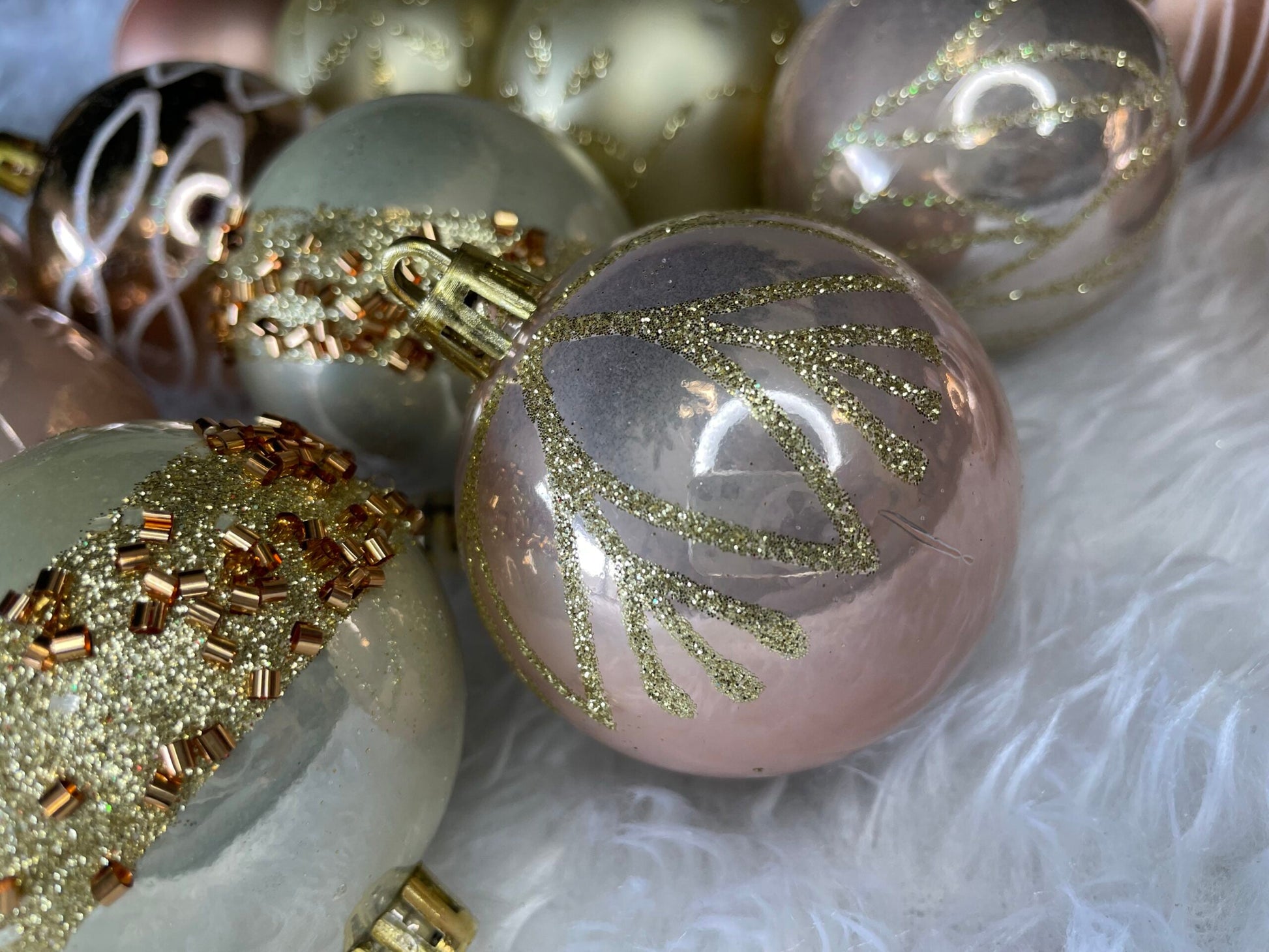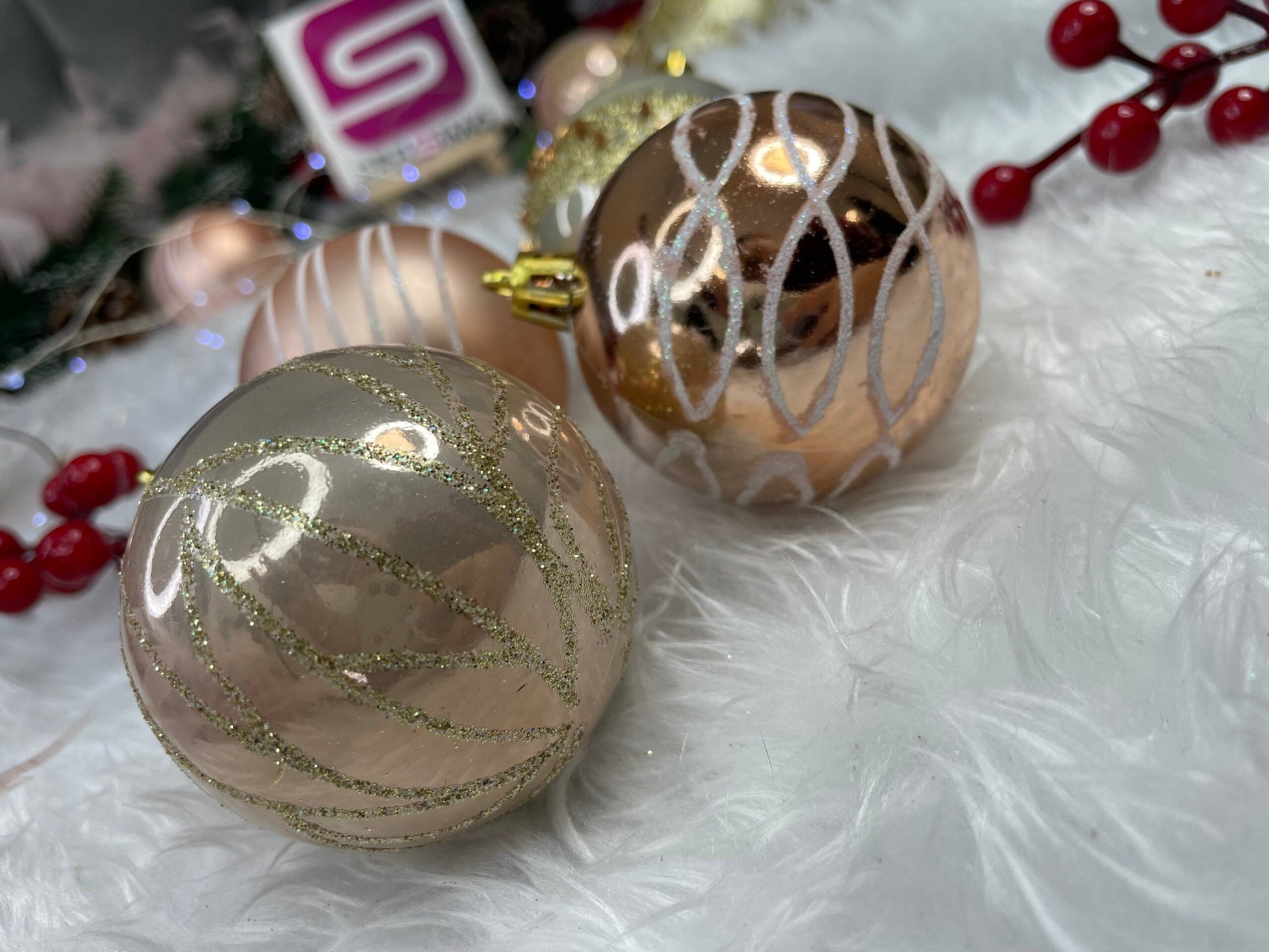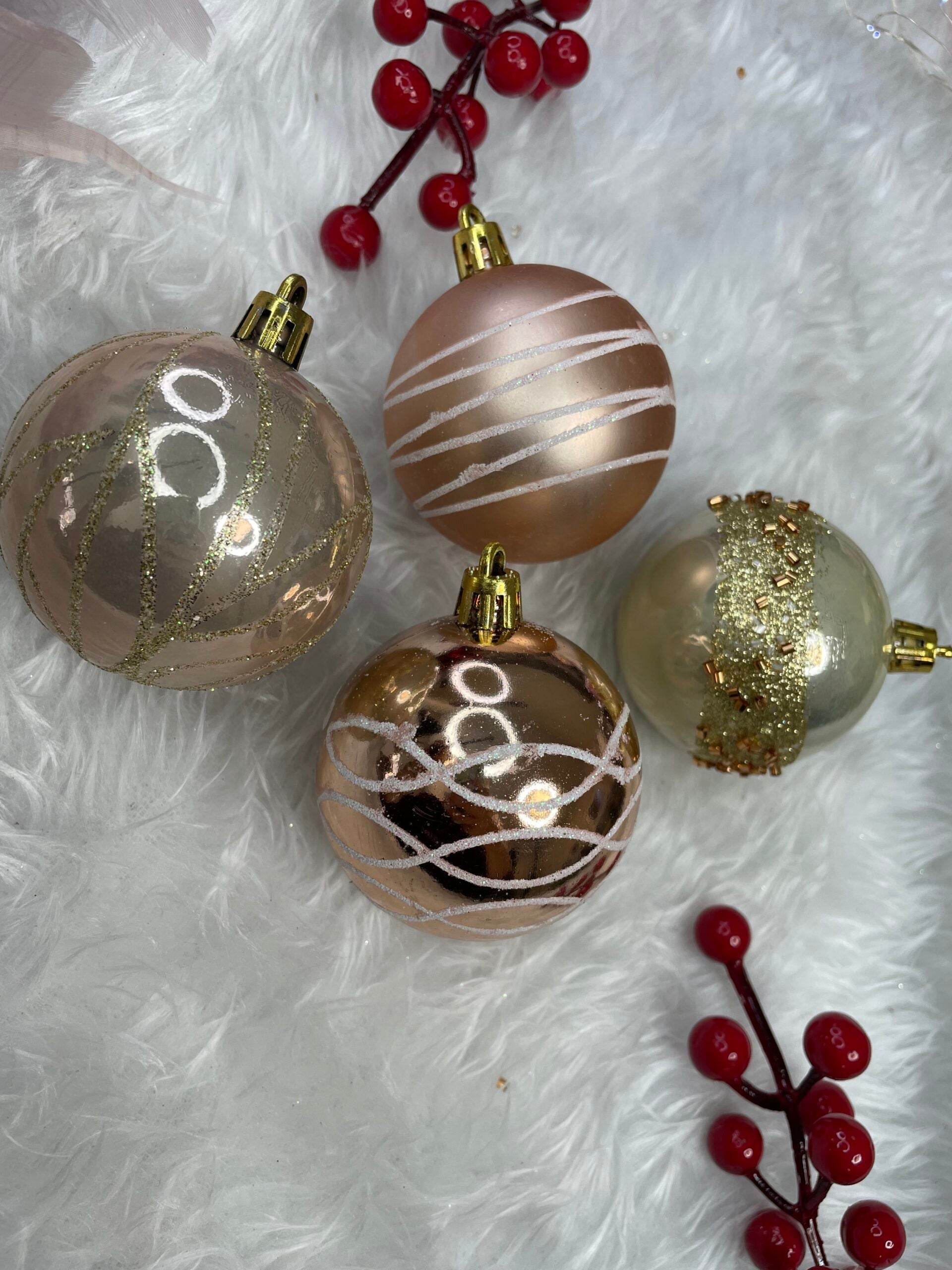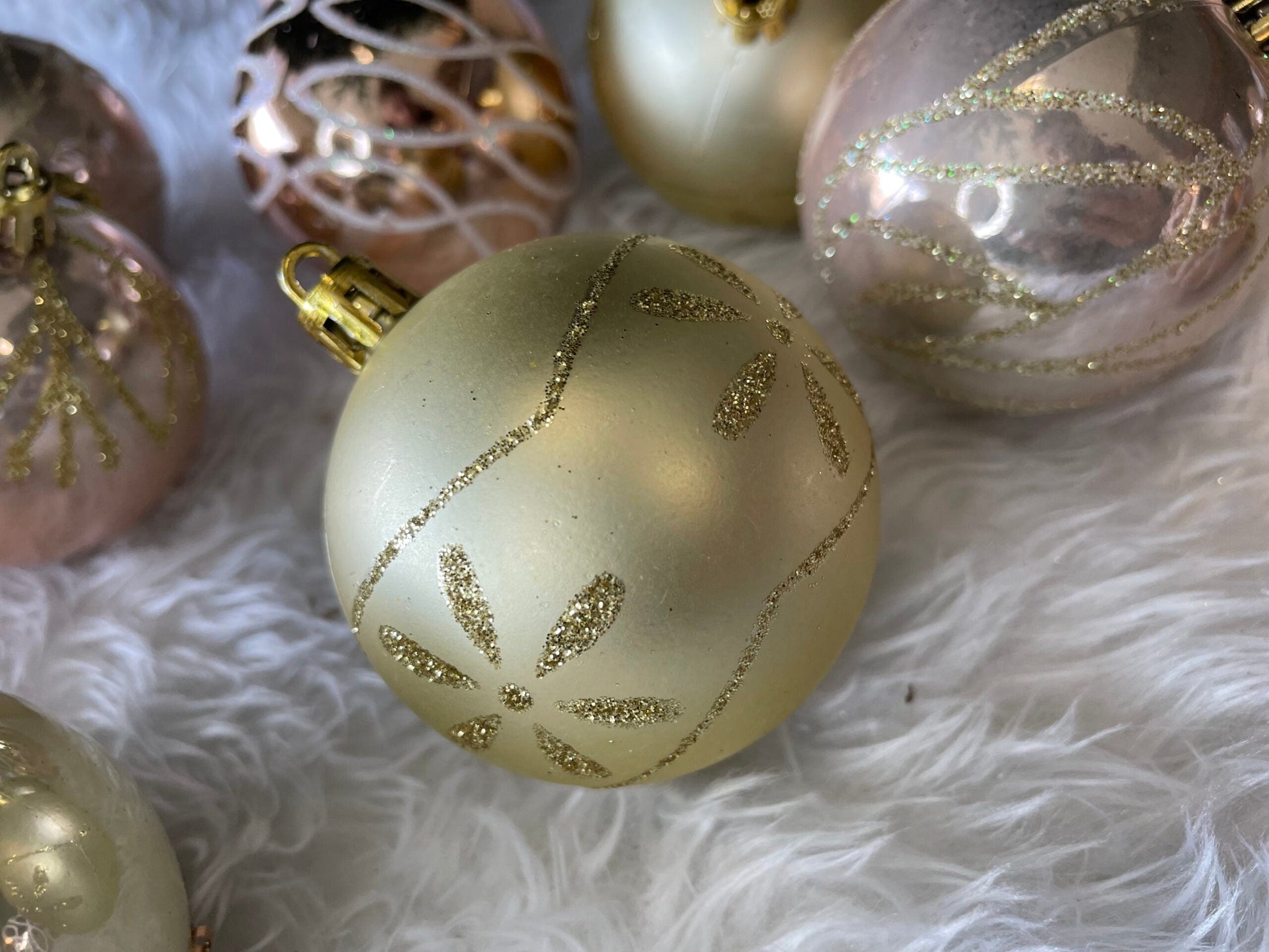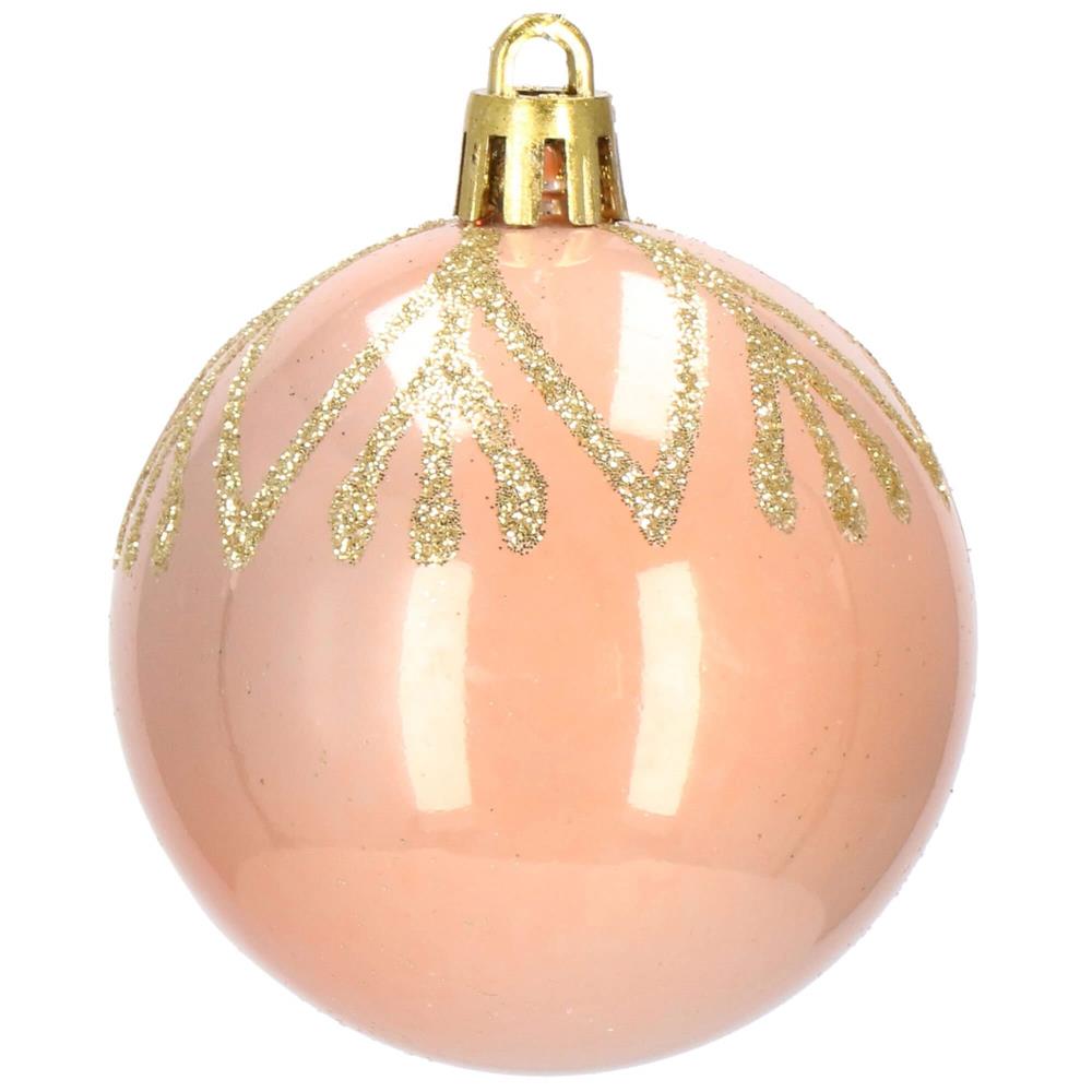 Set globuri de Craciun cu modele de sarbatori, 30 bucati, 6cm, roz si auriu