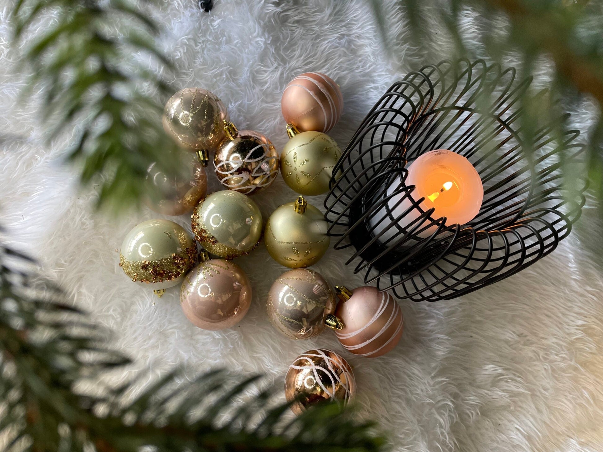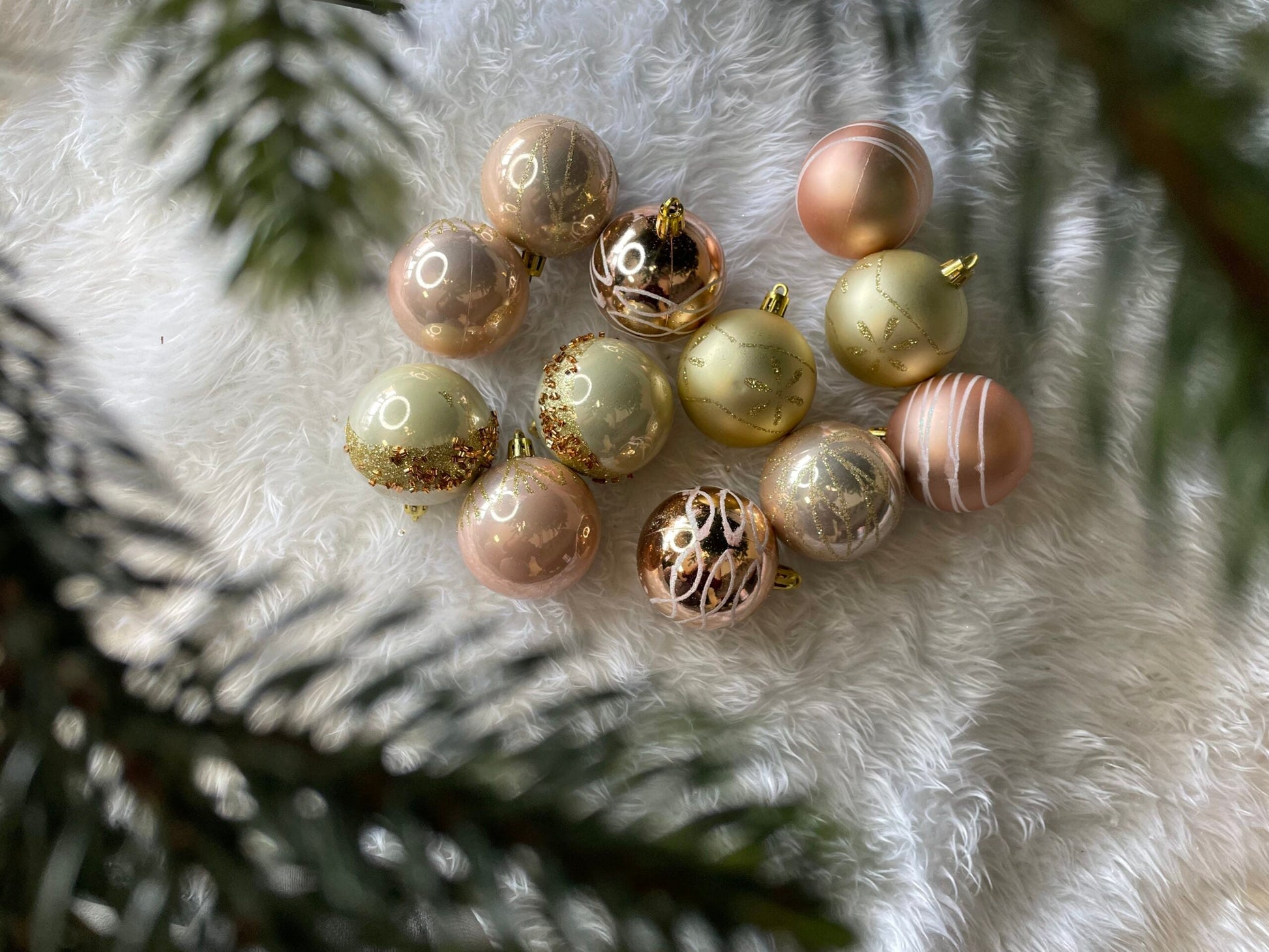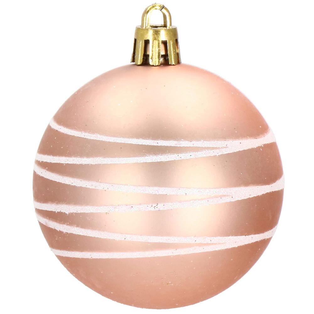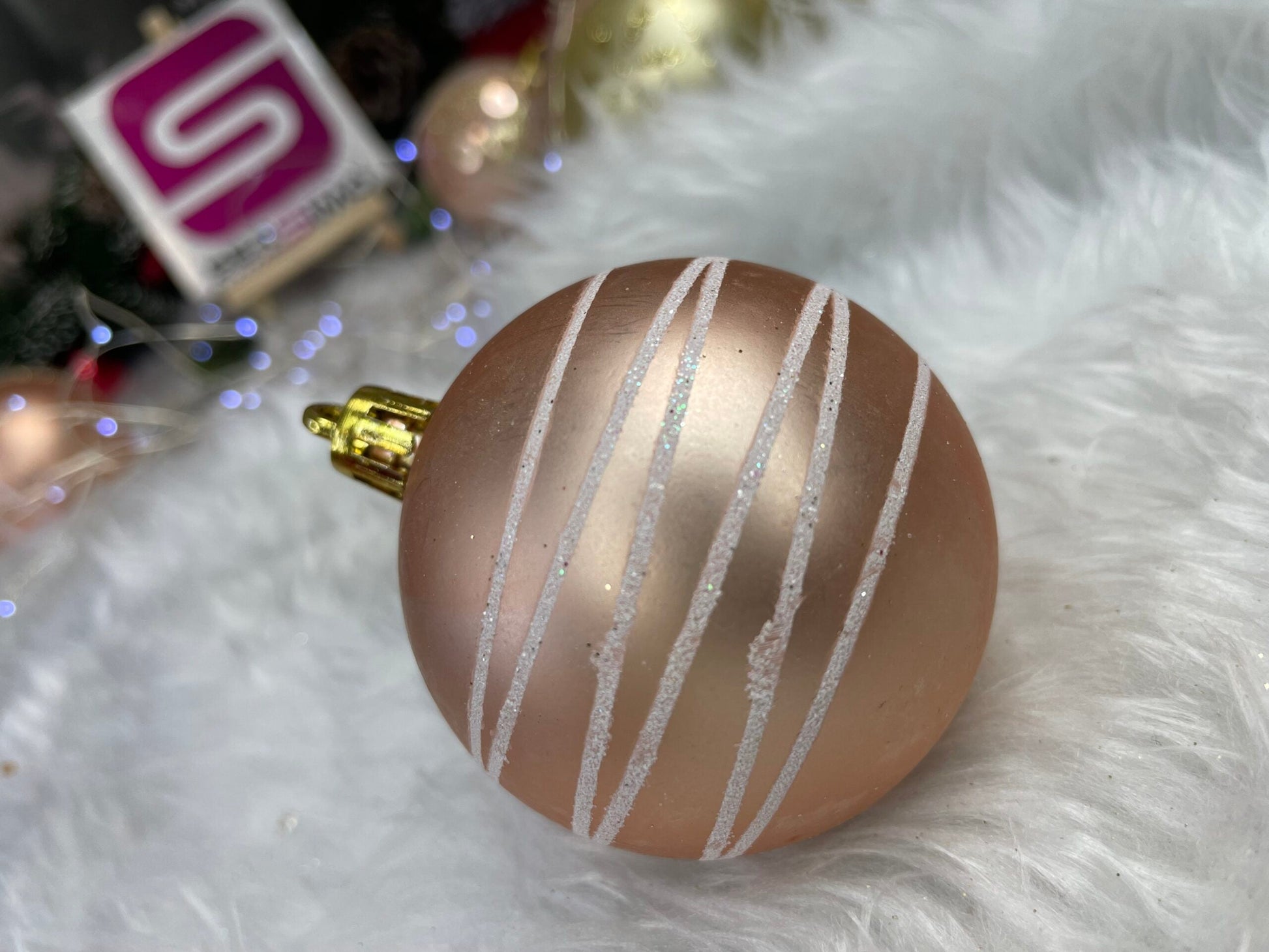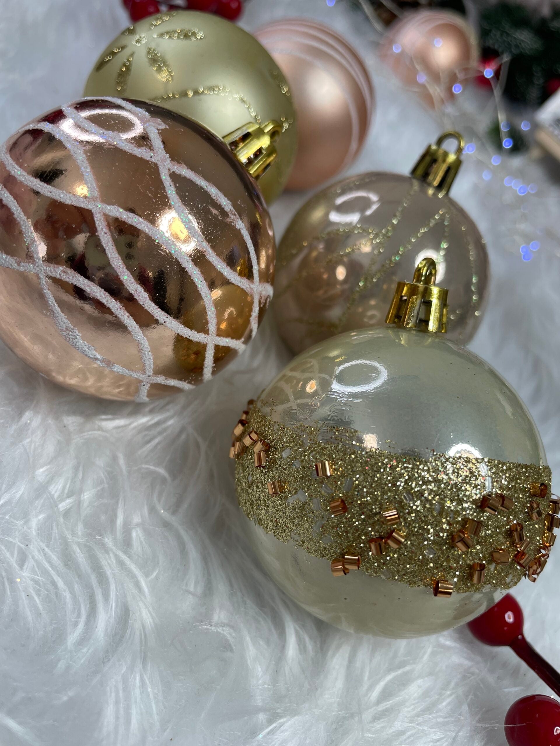 Set globuri de Craciun cu modele de sarbatori, 30 bucati, 6cm, roz si auriu