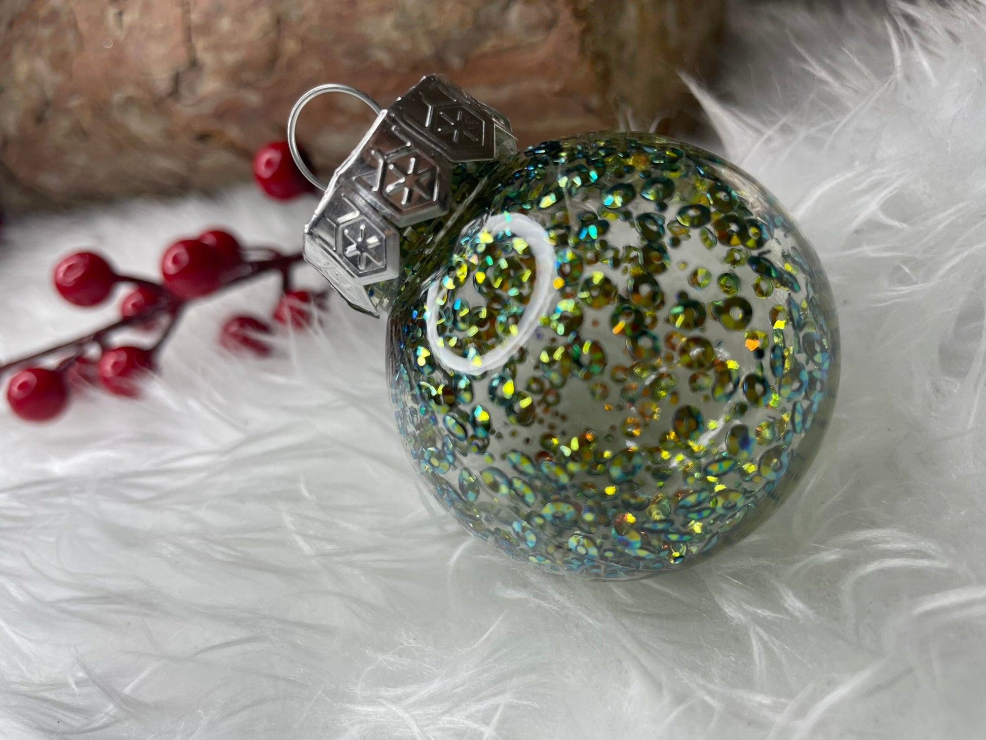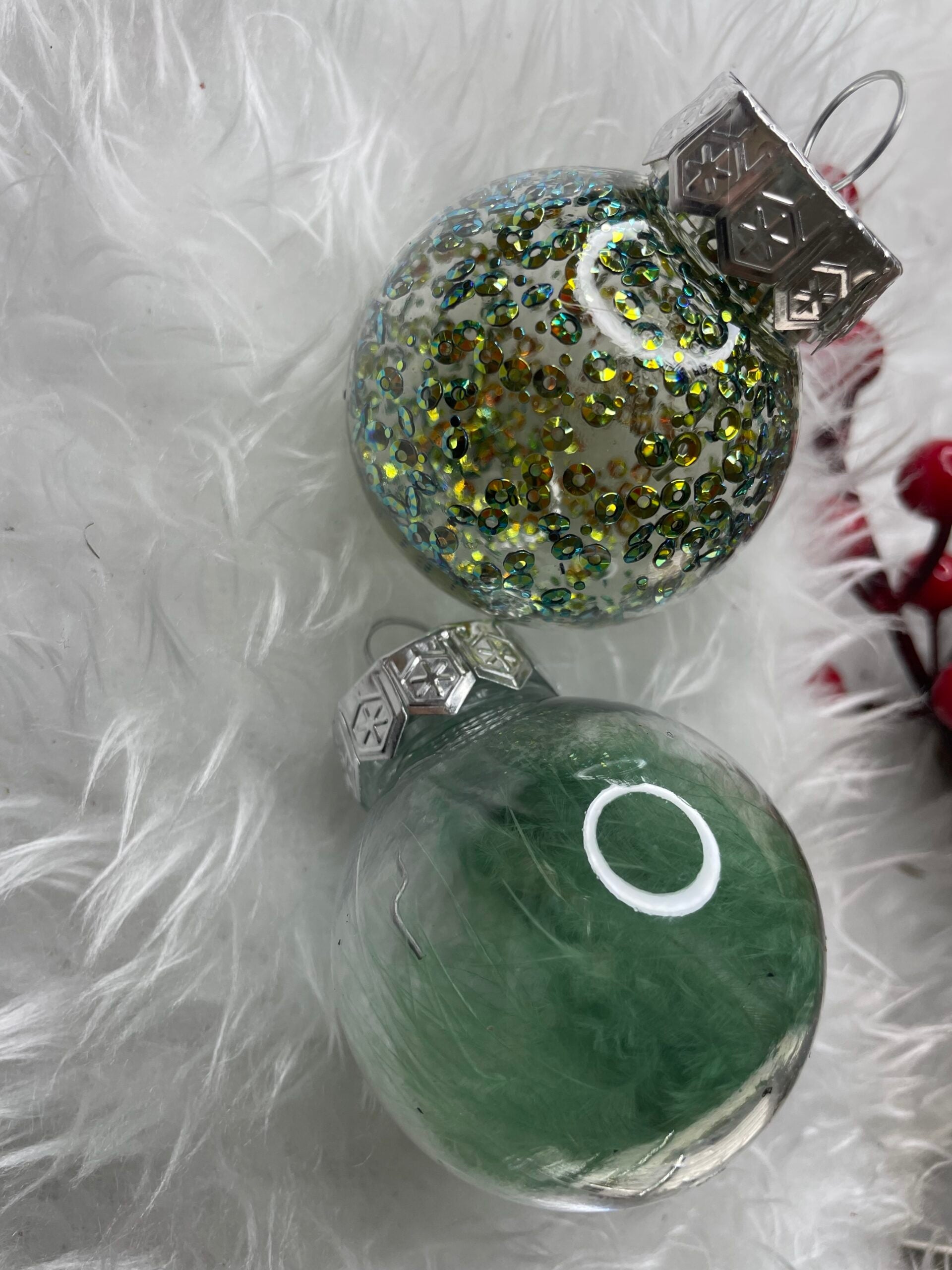 Set globuri de Craciun Inedit, 24 bucati, 5cm, transparente si verde