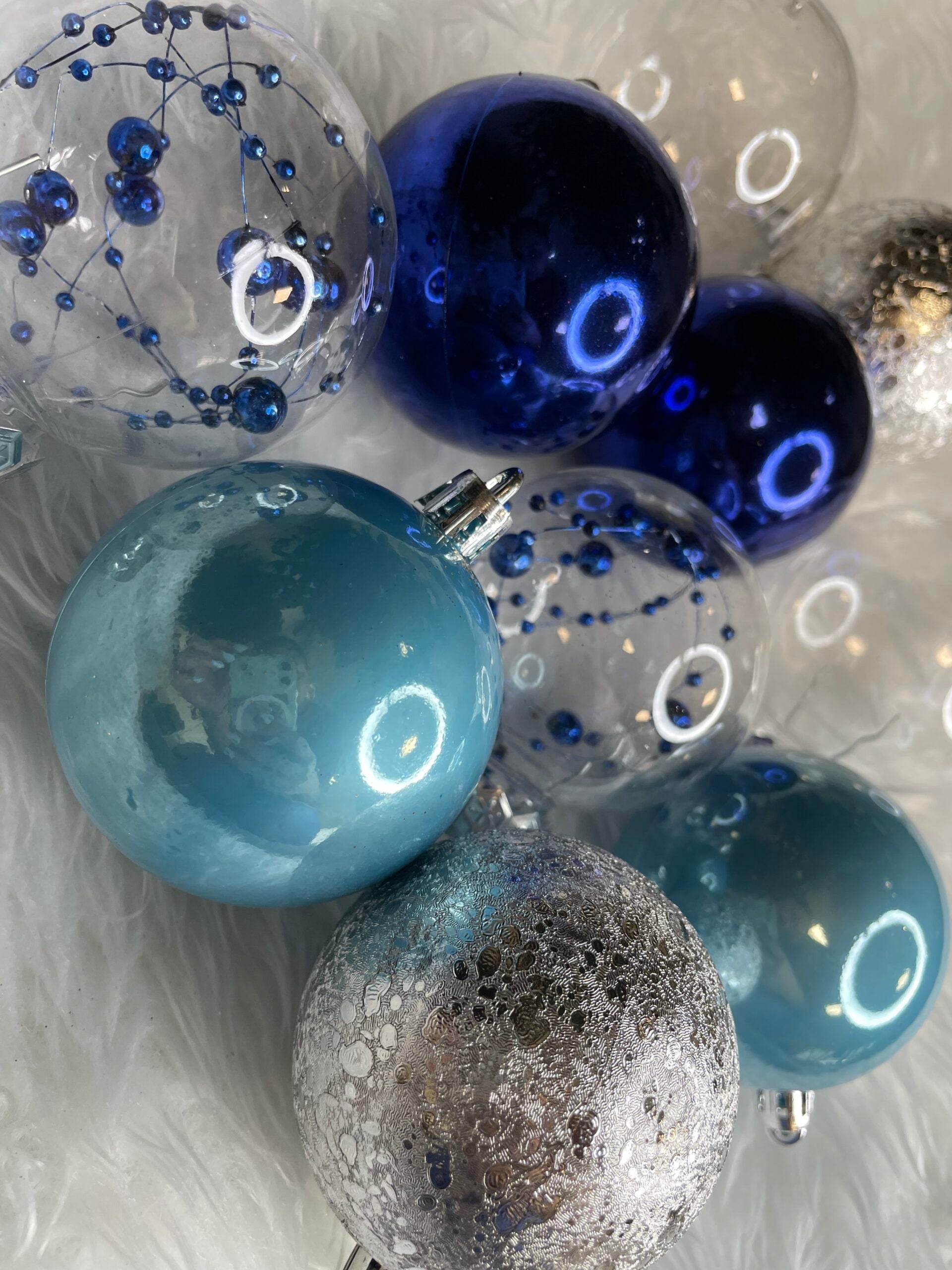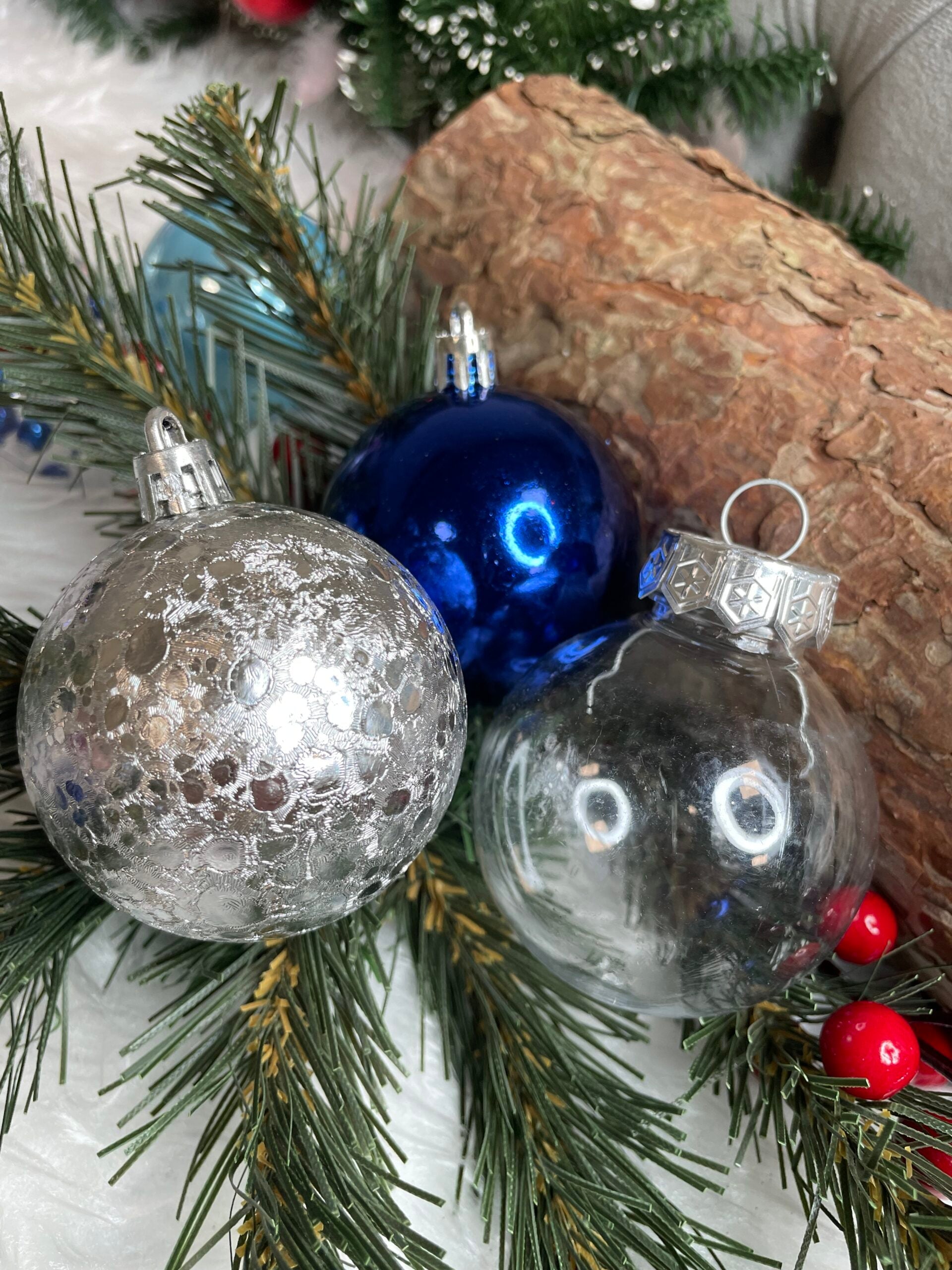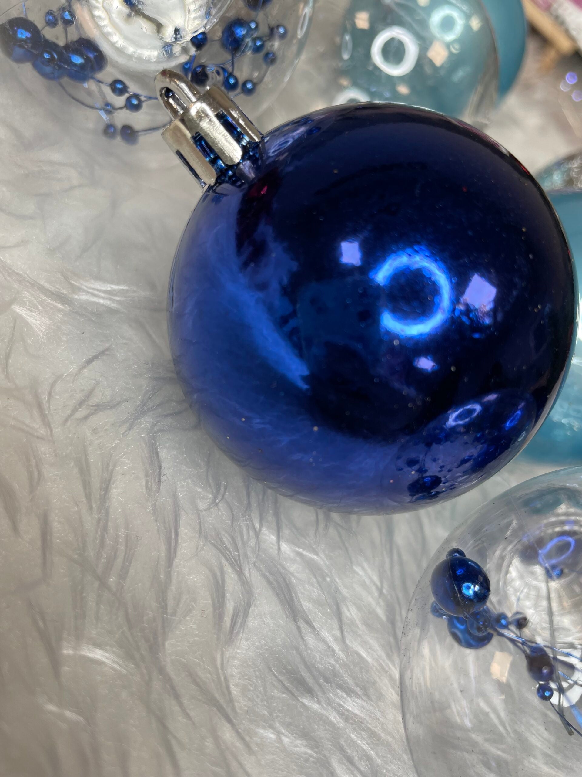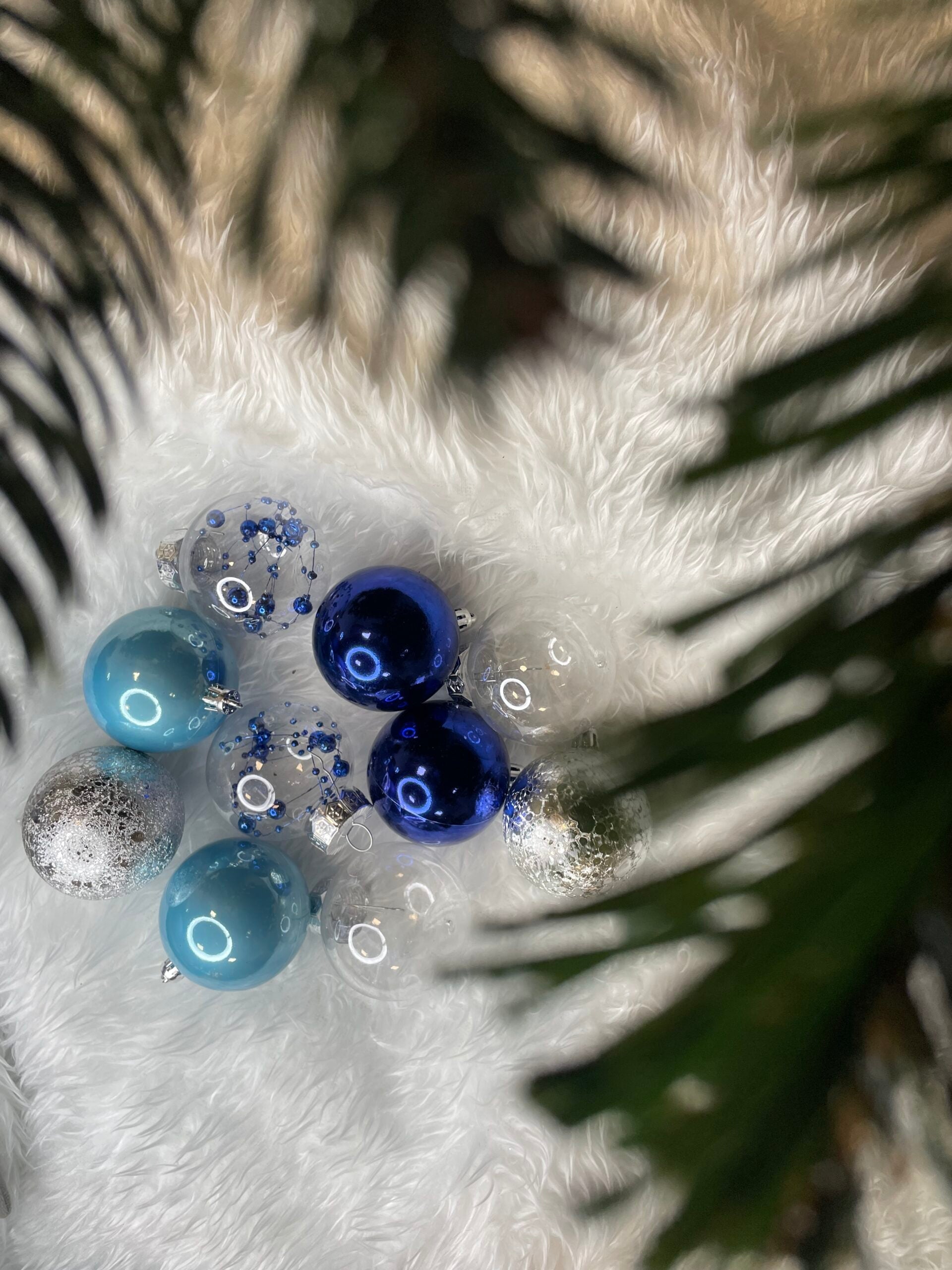 Set globuri de Craciun Inedit, 30 bucati, 6cm, transparente si albastru
