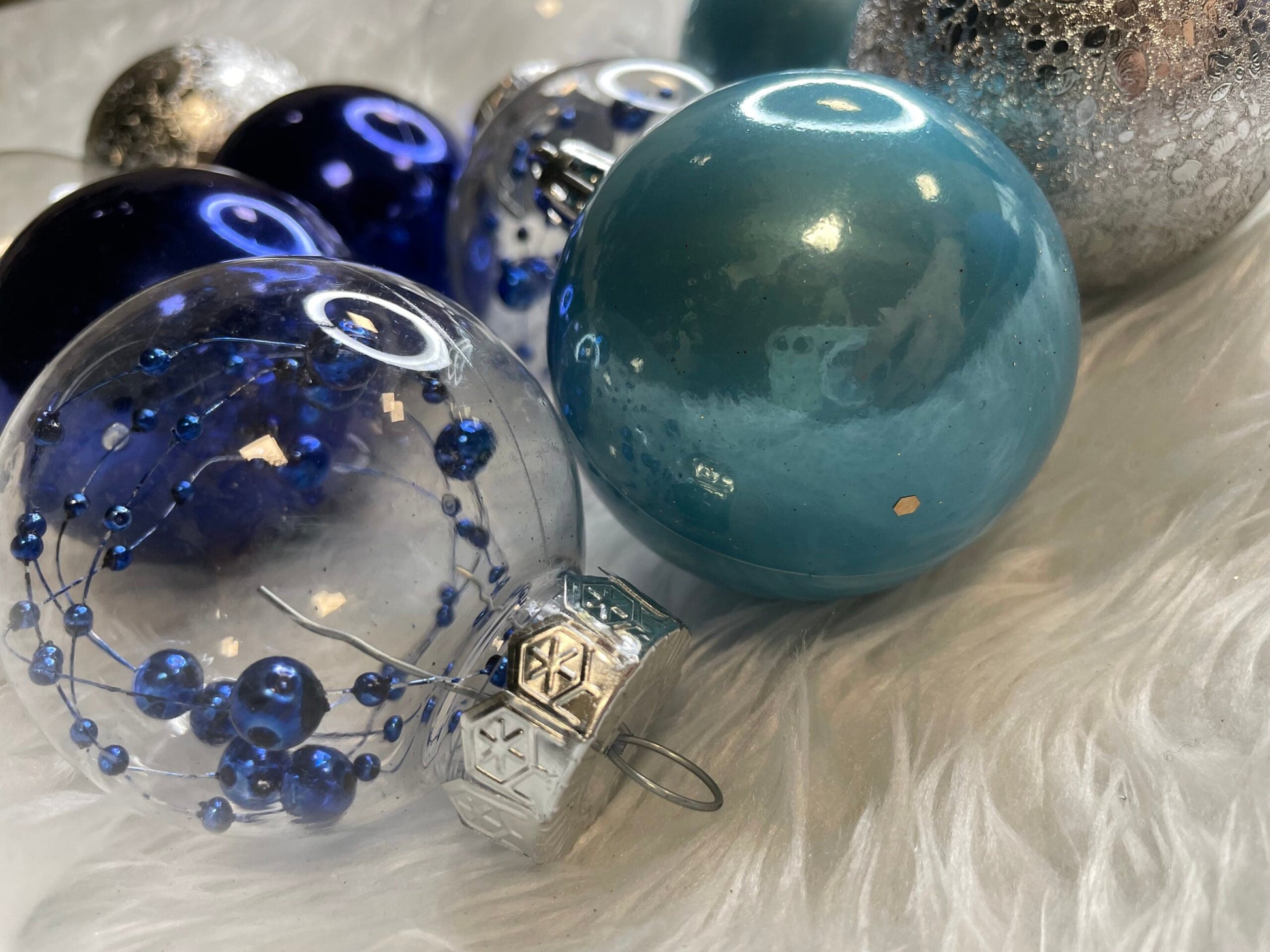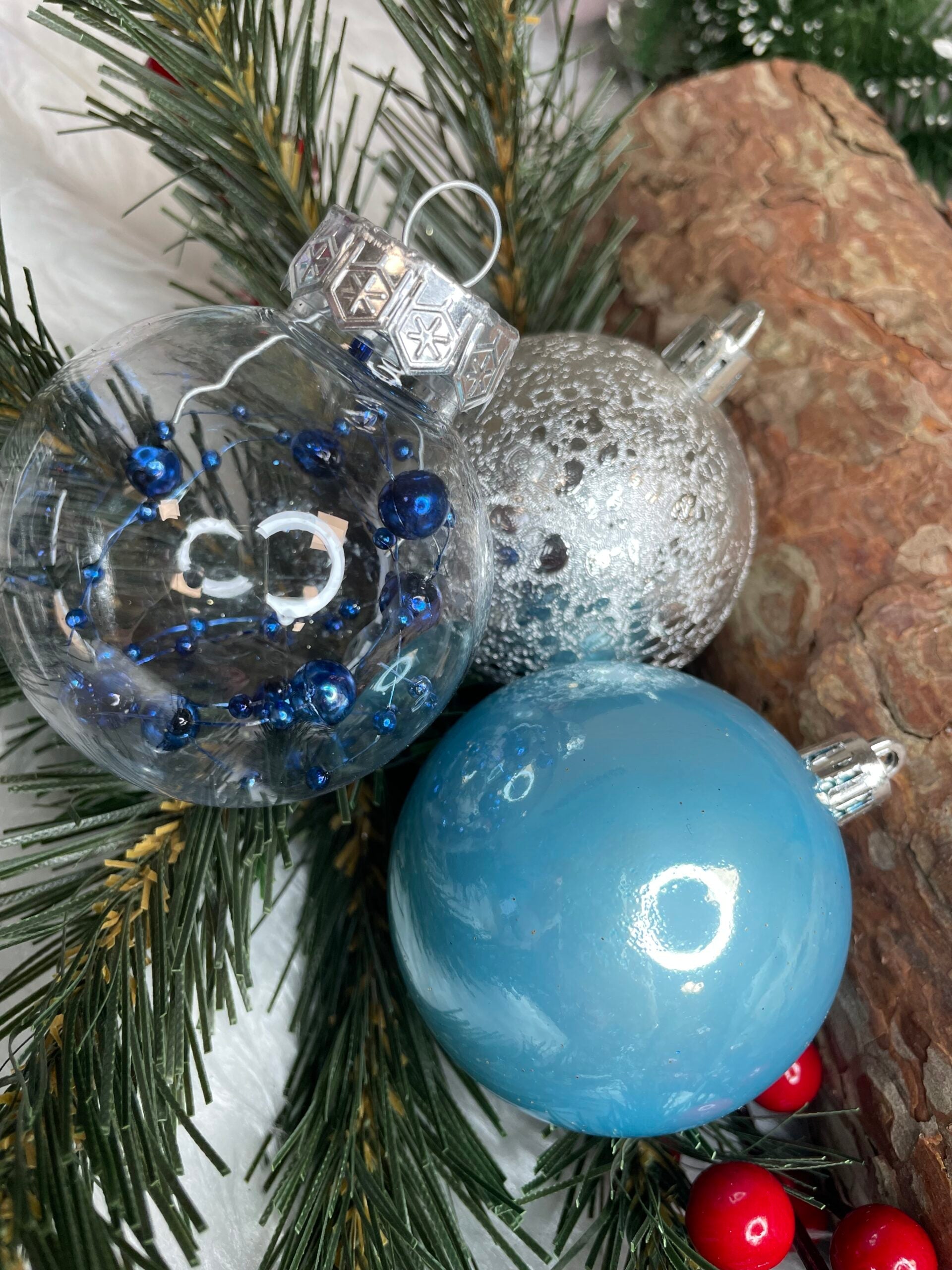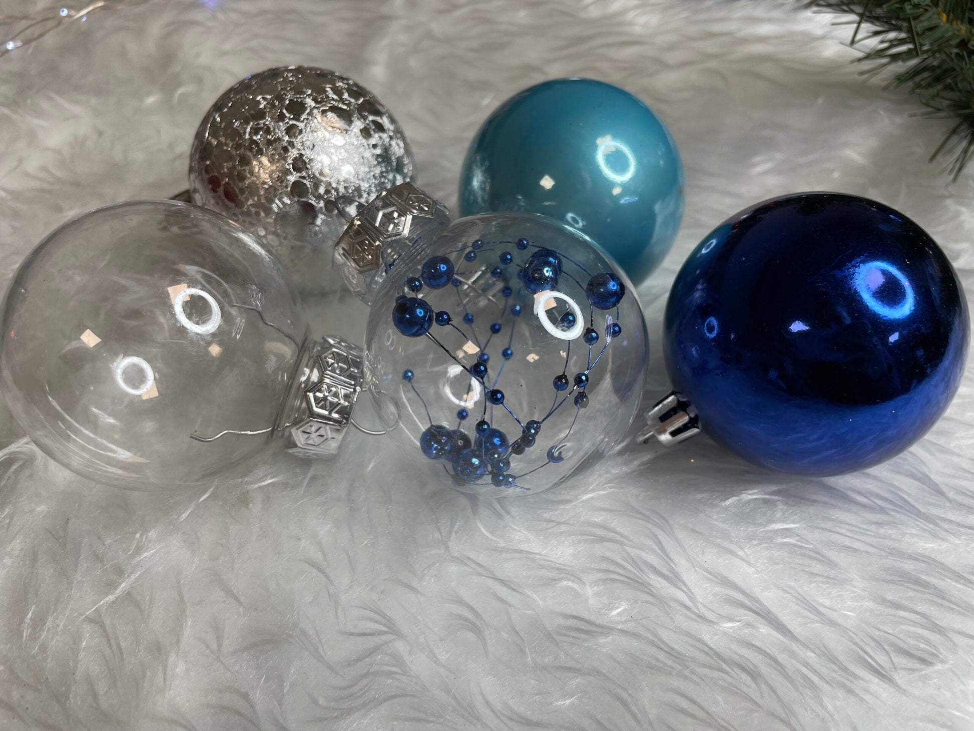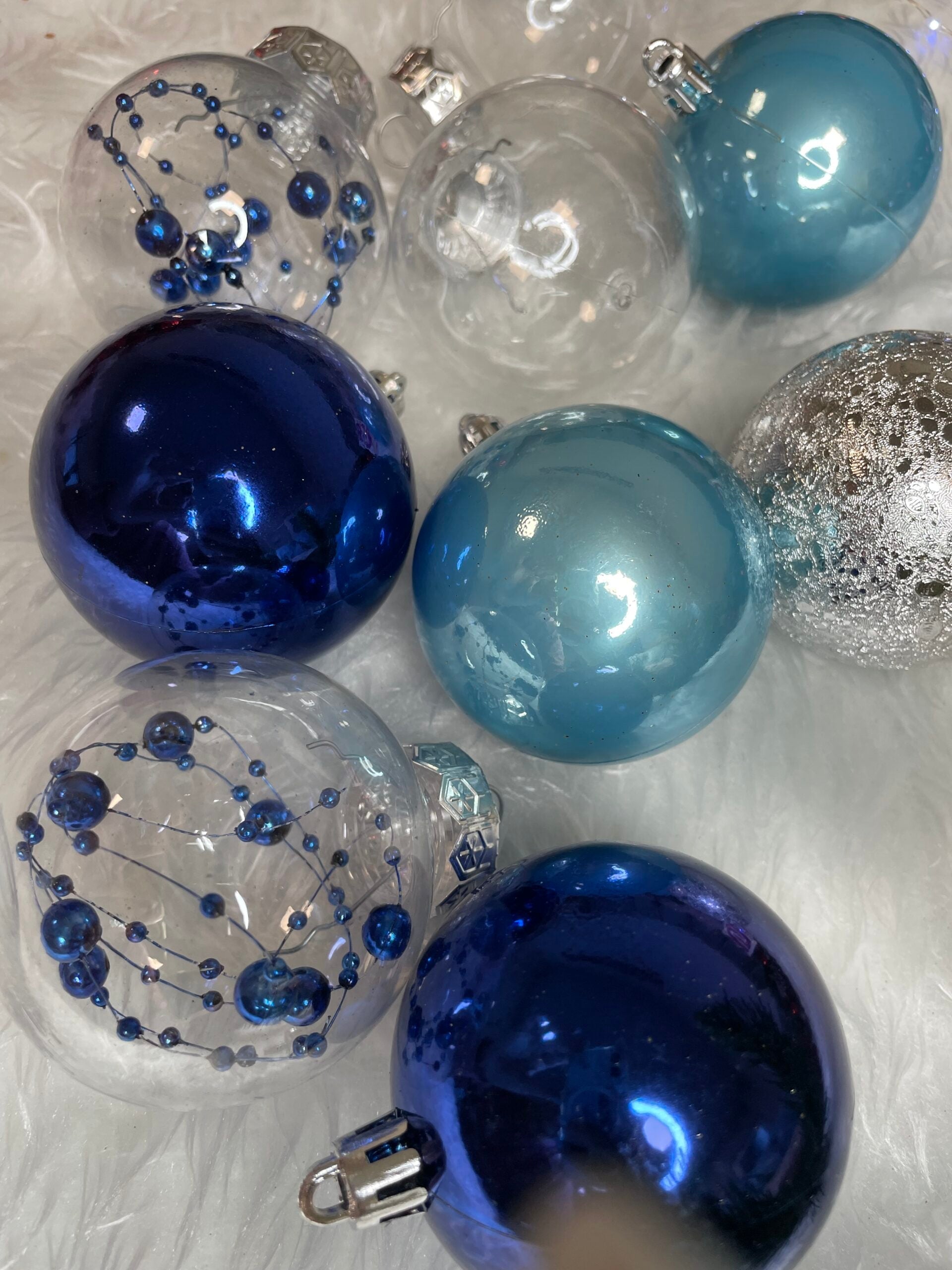 Set globuri de Craciun Inedit, 30 bucati, 6cm, transparente si albastru