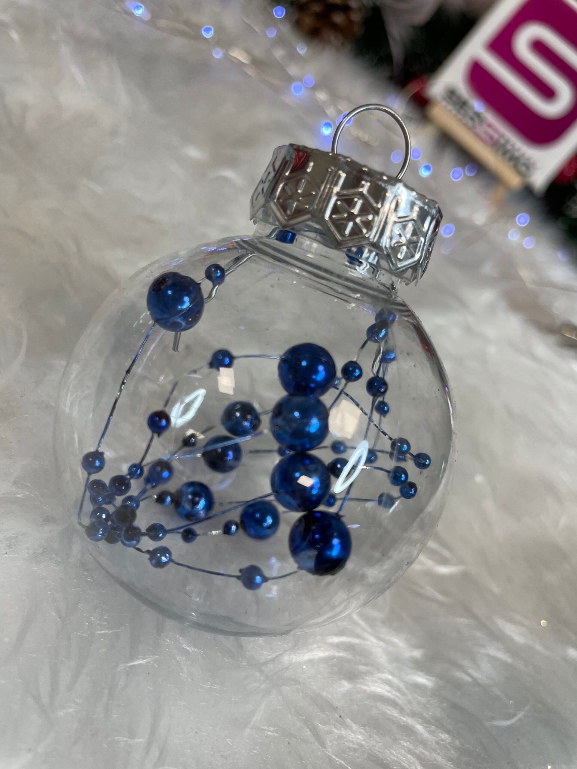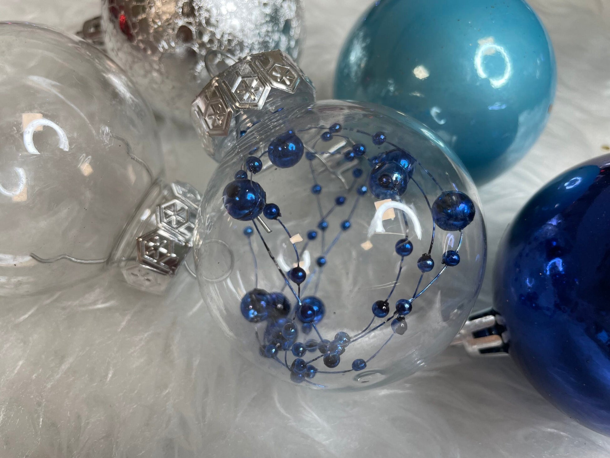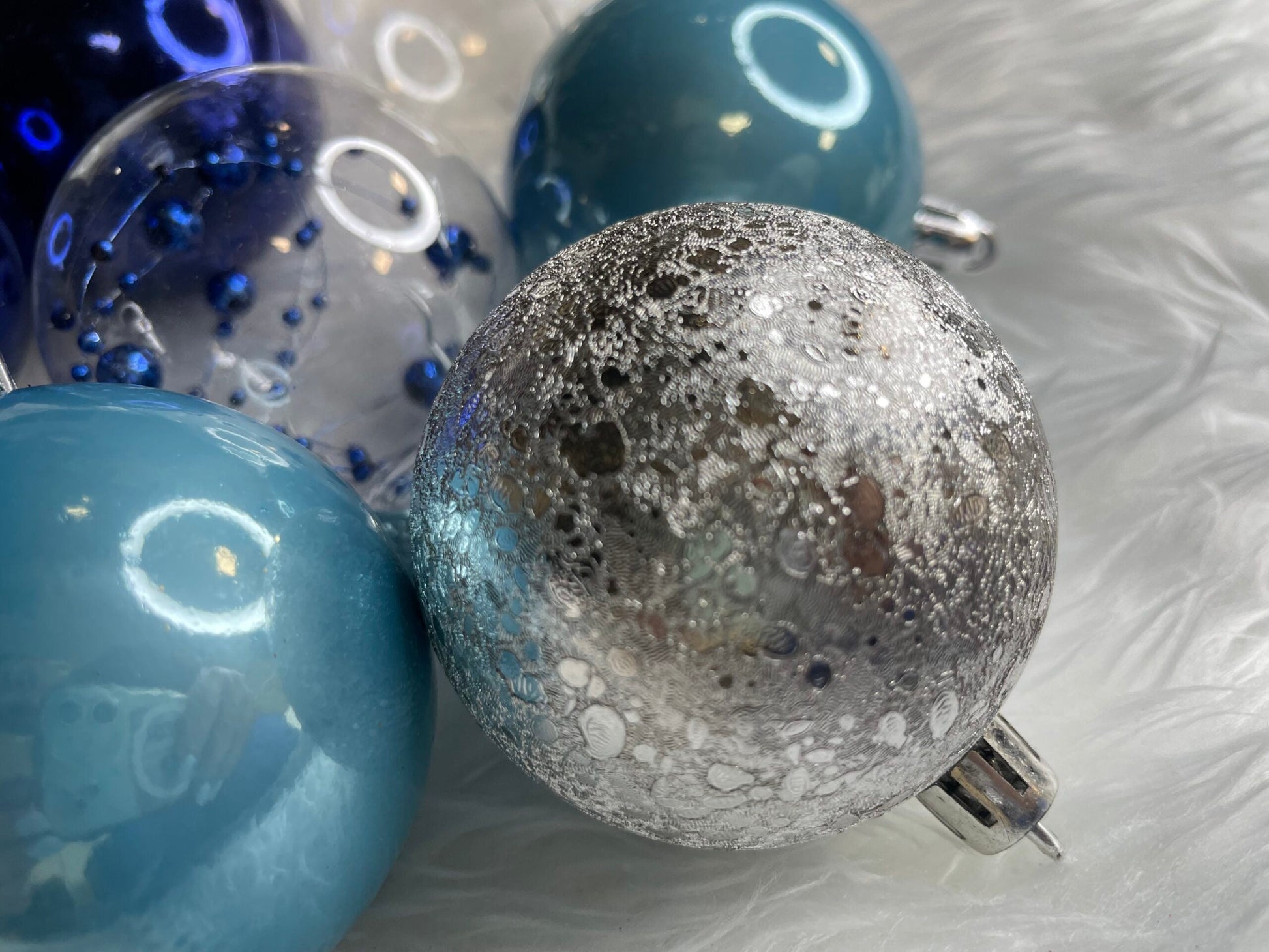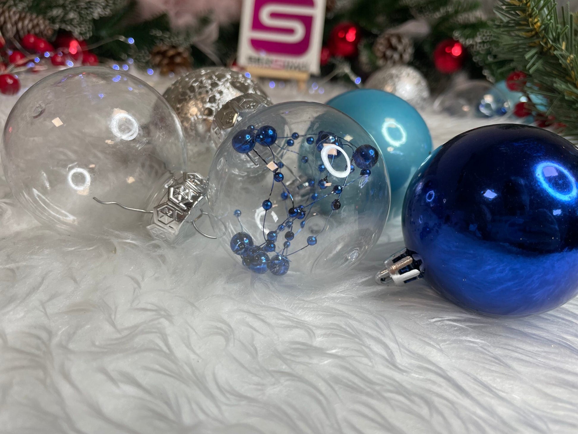 Set globuri de Craciun Inedit, 30 bucati, 6cm, transparente si albastru