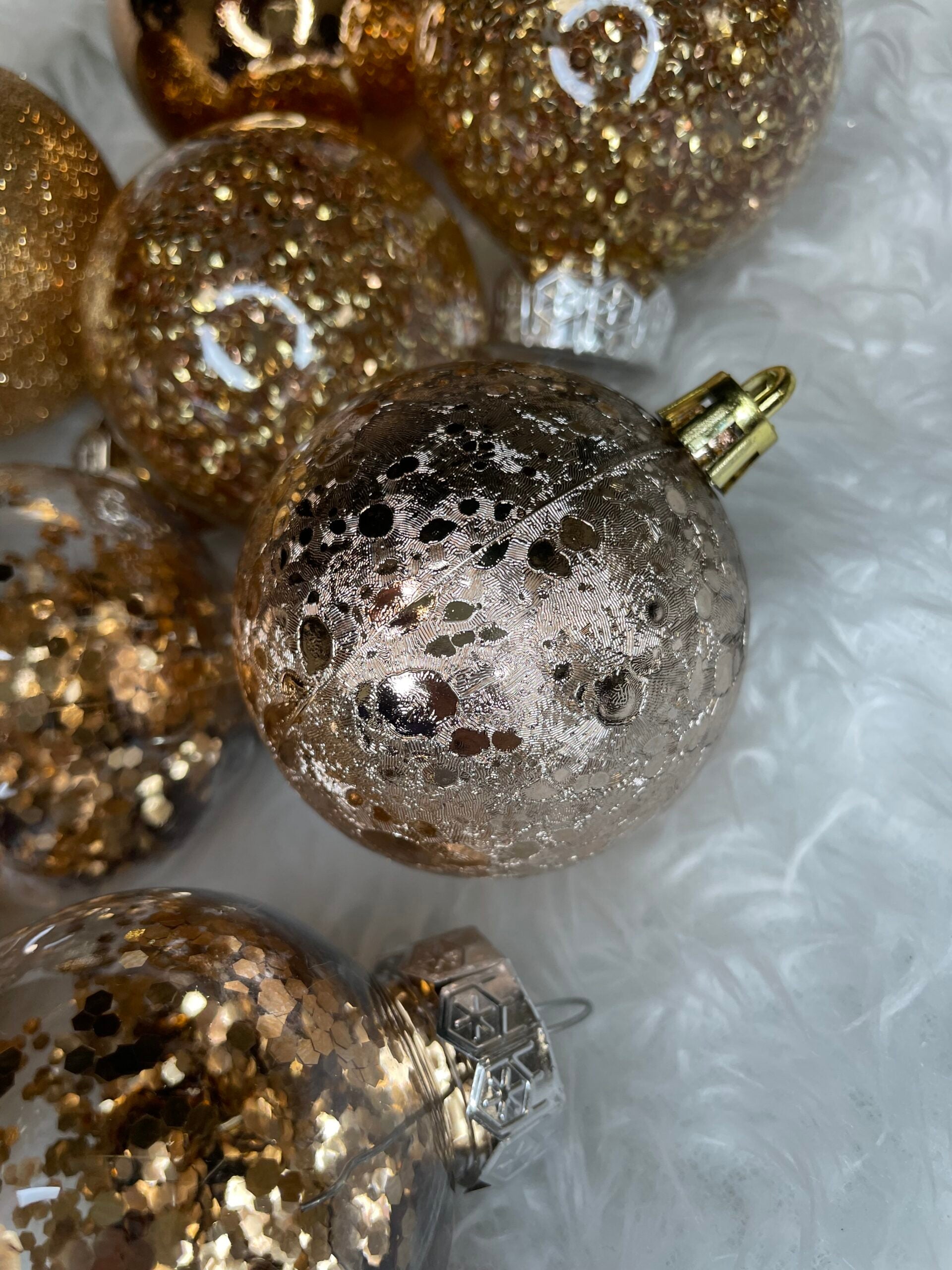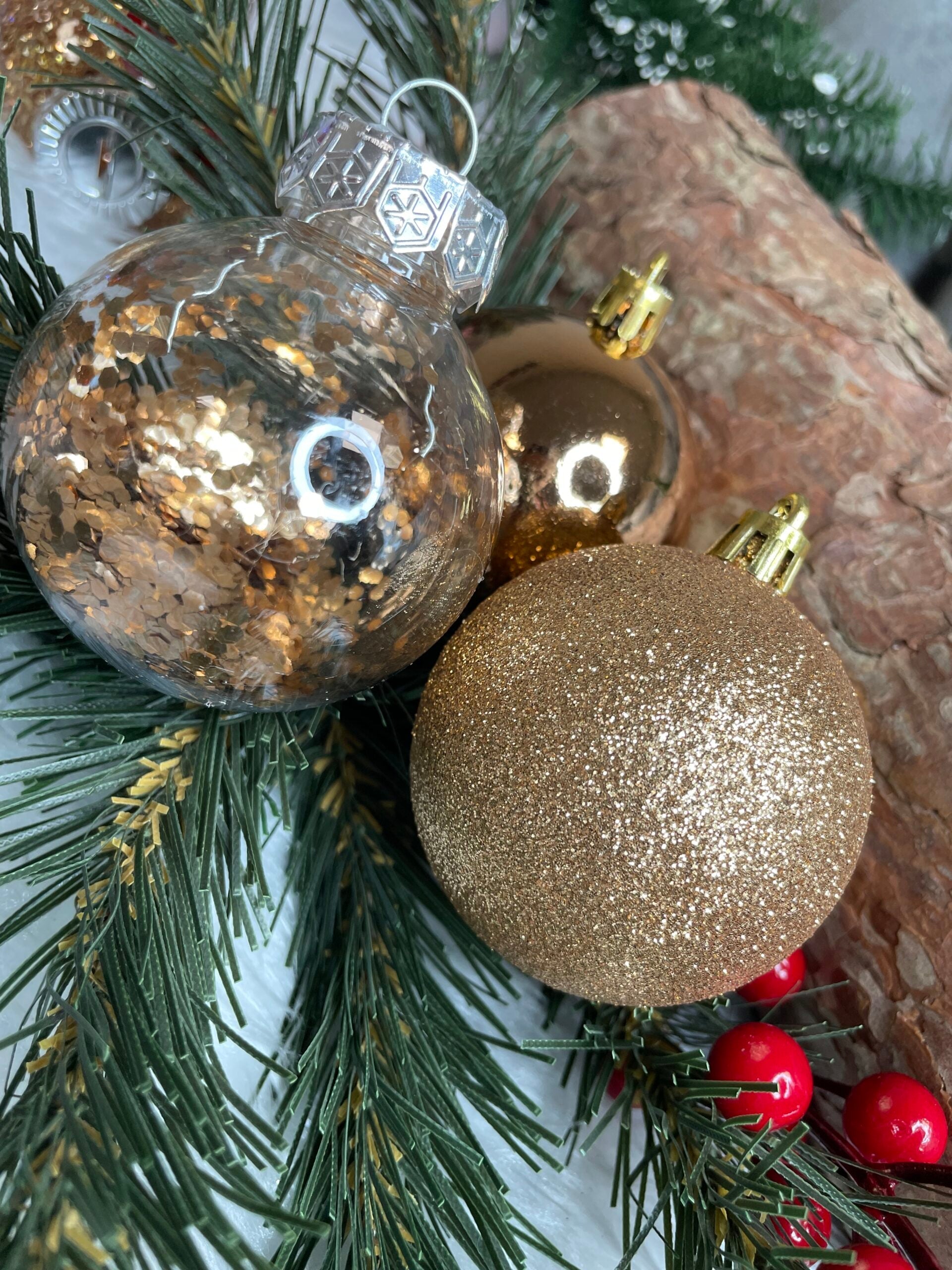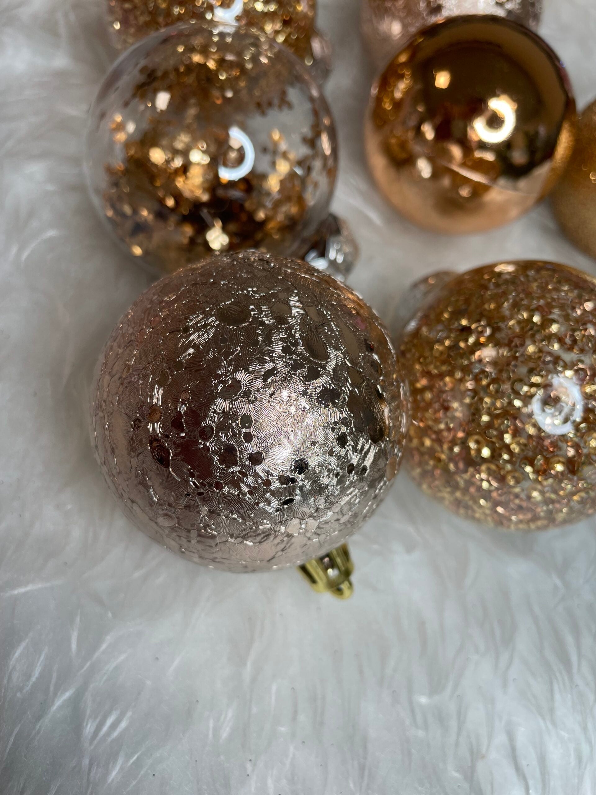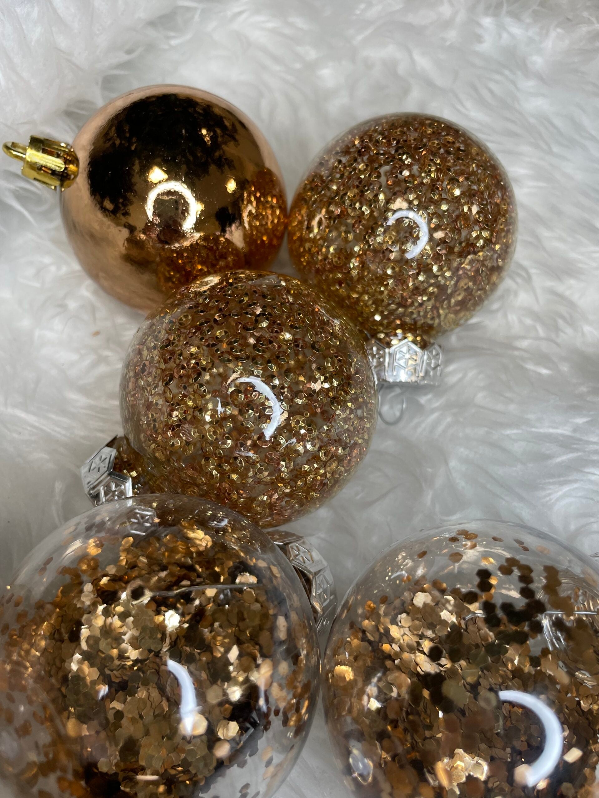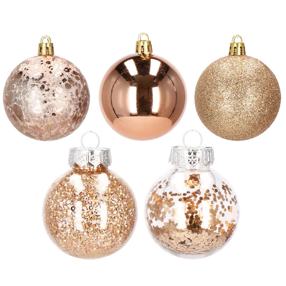 Set globuri de Craciun Inedit, 30 bucati, 6cm, transparente si aramiu