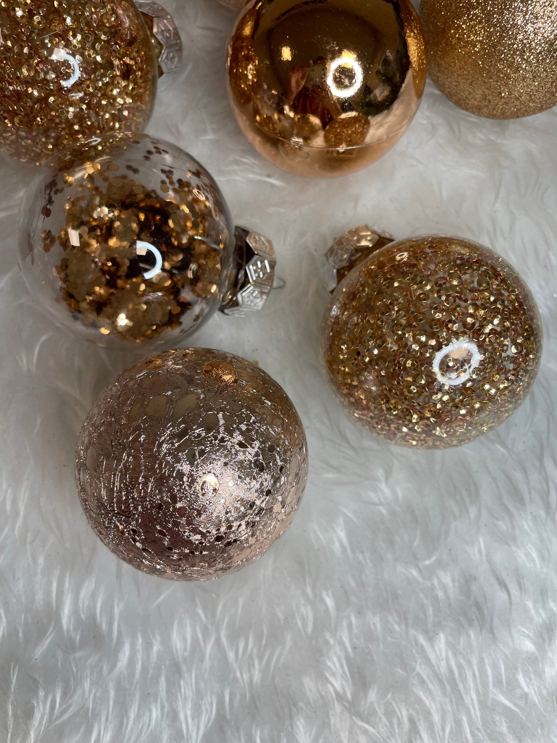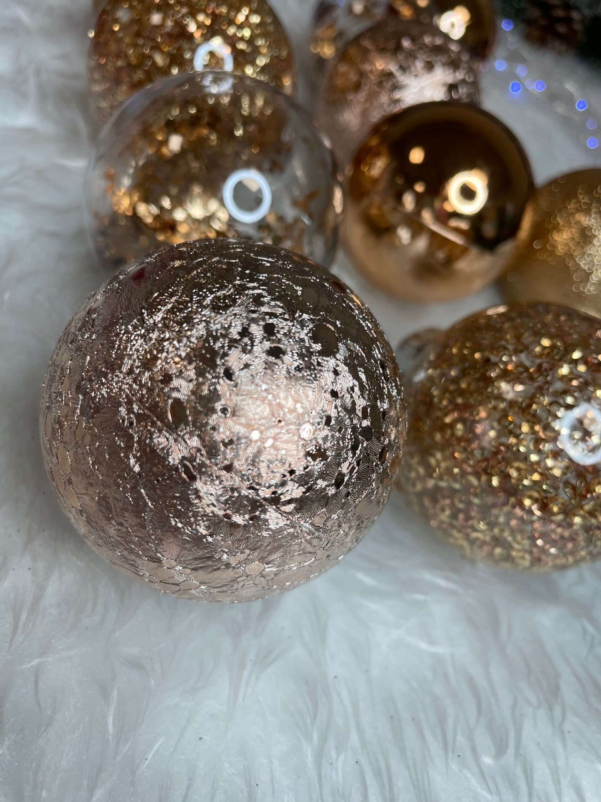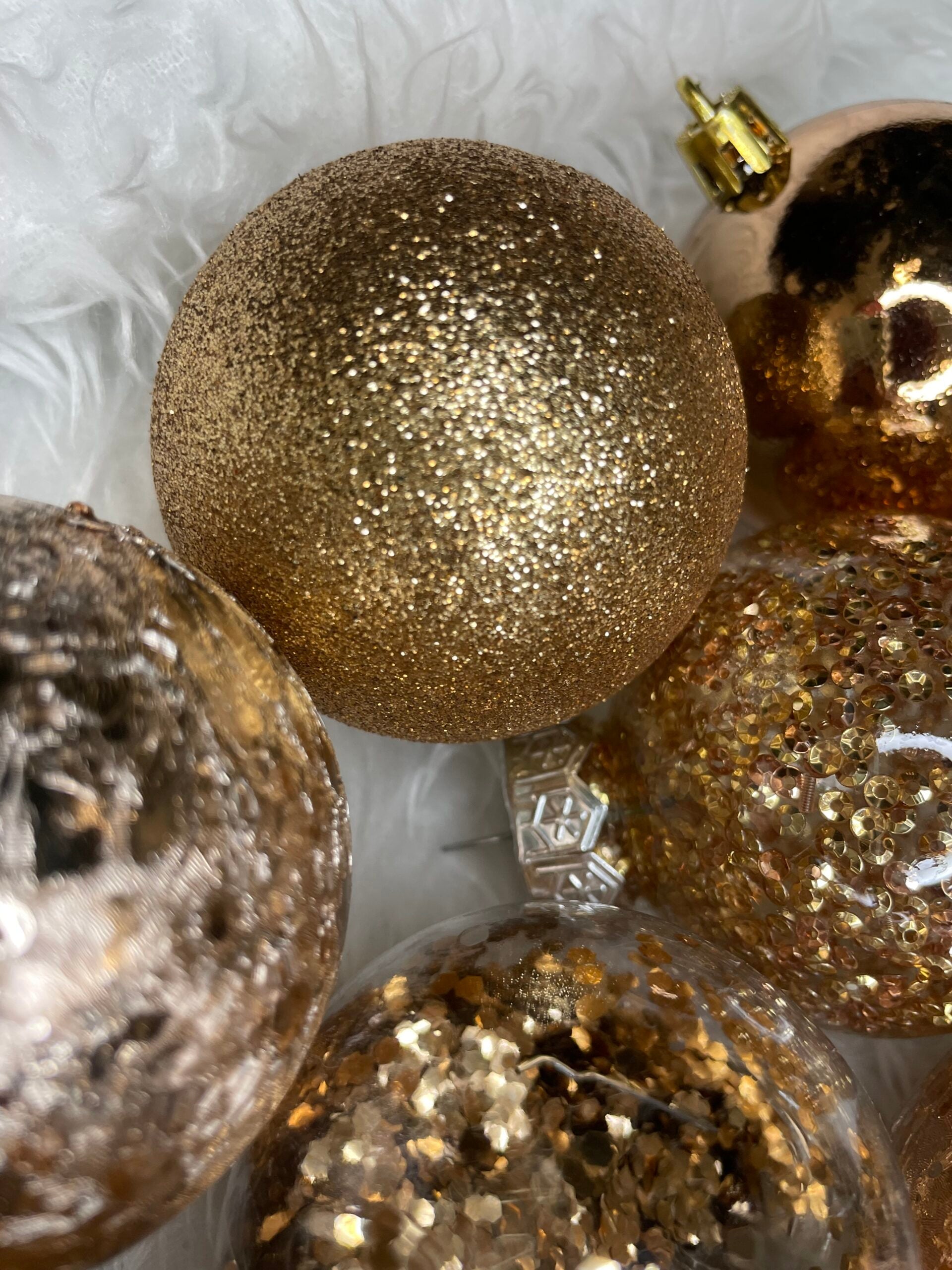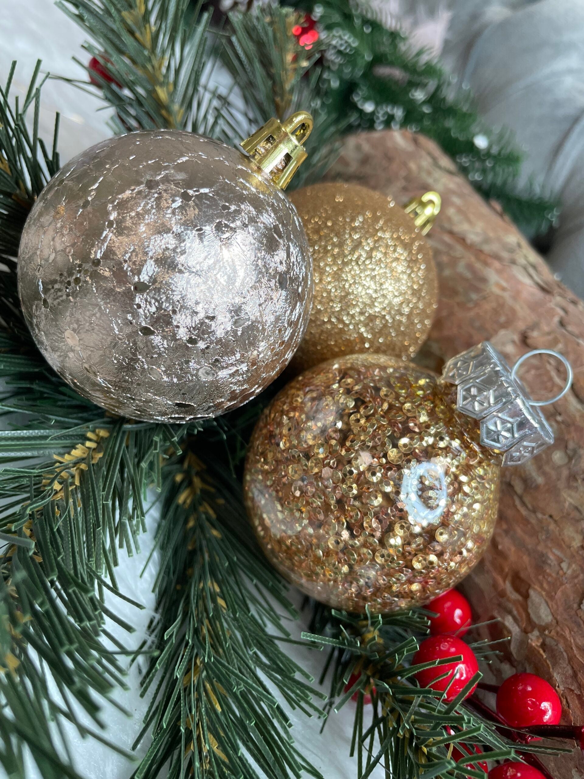 Set globuri de Craciun Inedit, 30 bucati, 6cm, transparente si aramiu