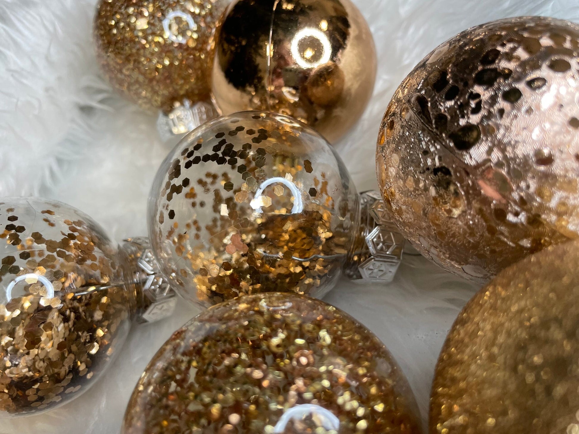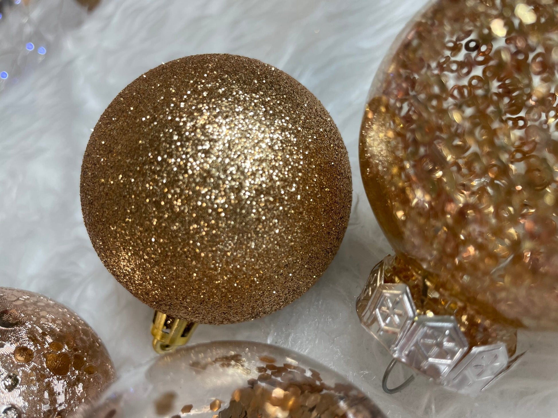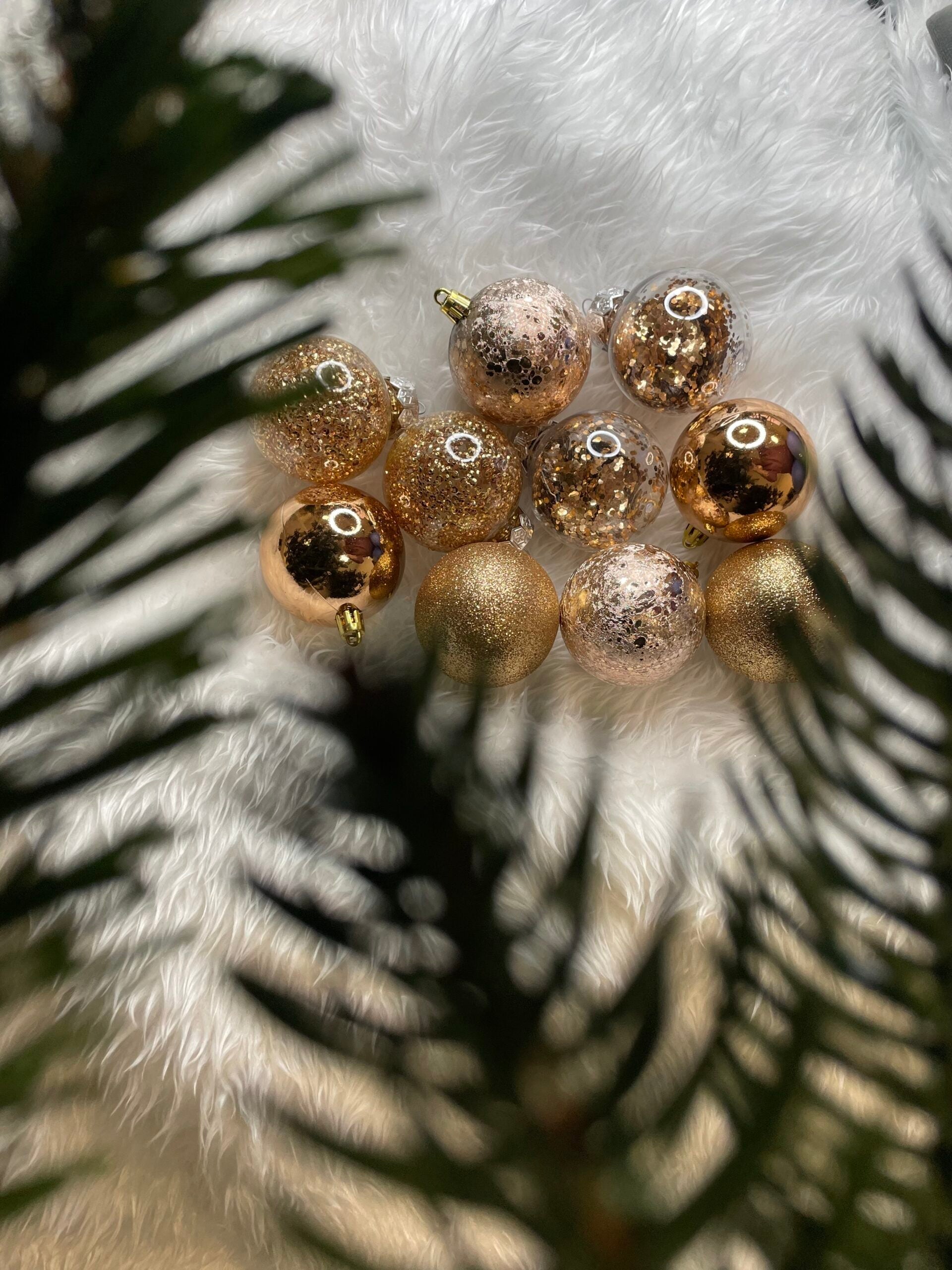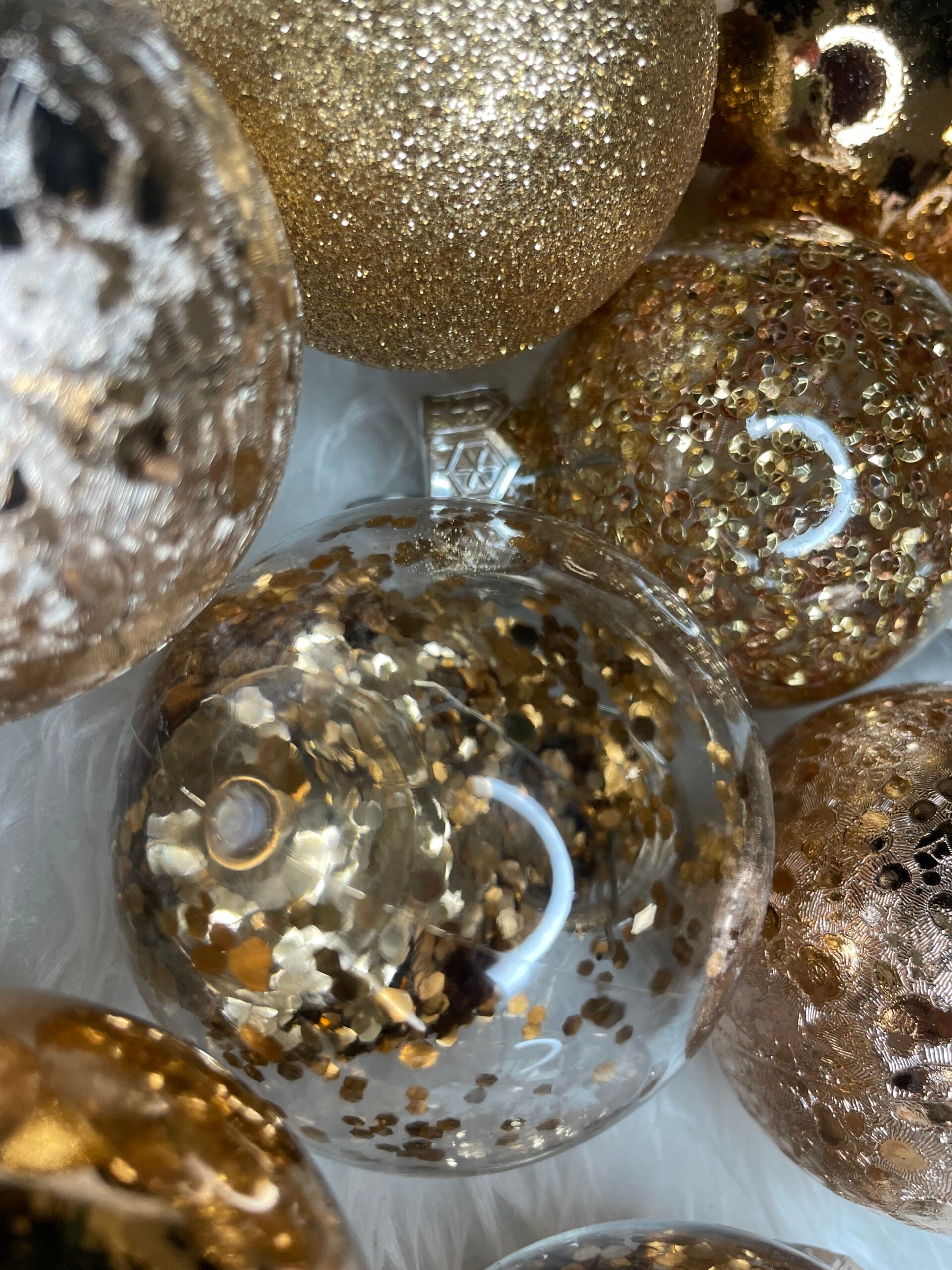 Set globuri de Craciun Inedit, 30 bucati, 6cm, transparente si aramiu