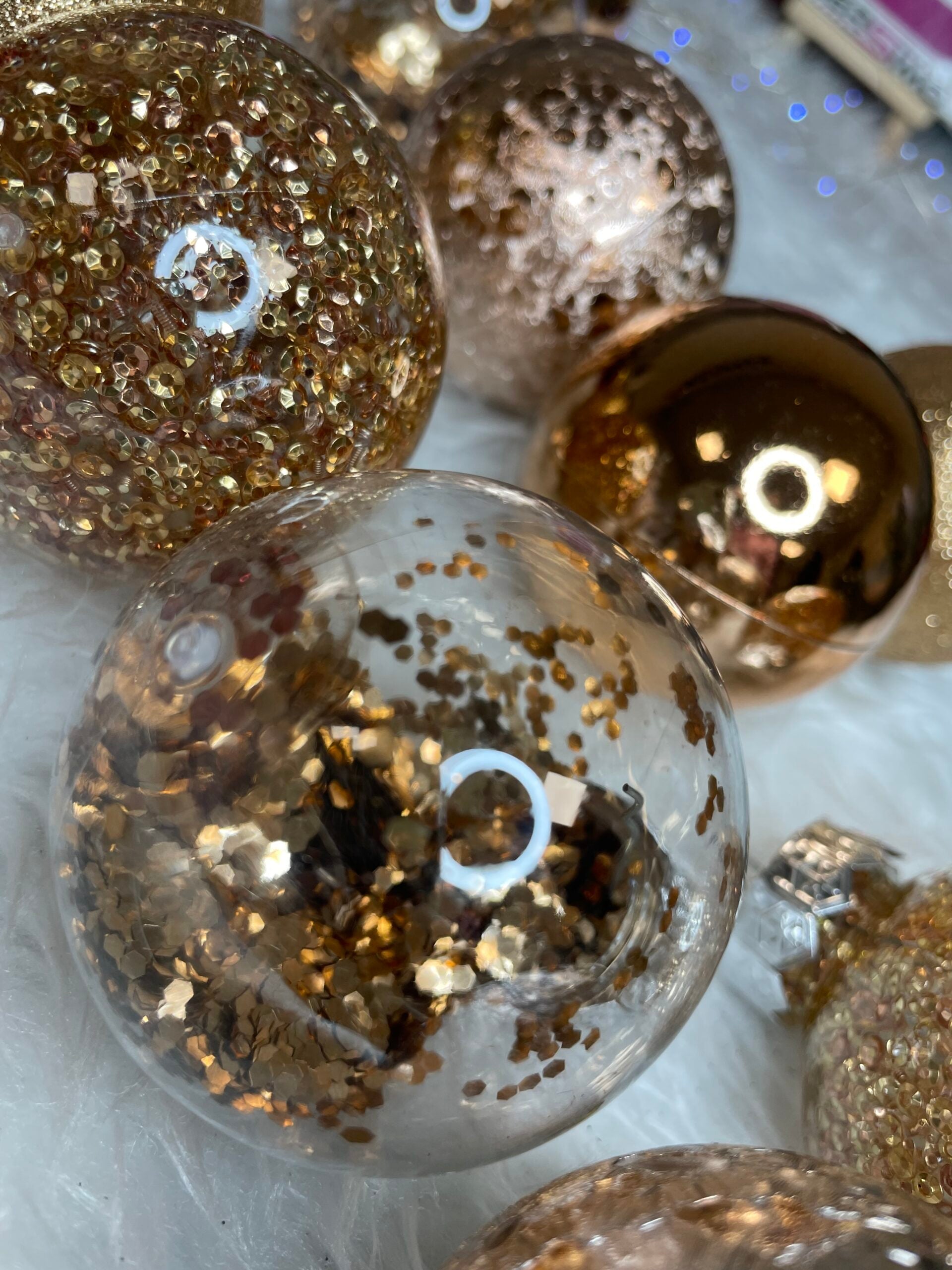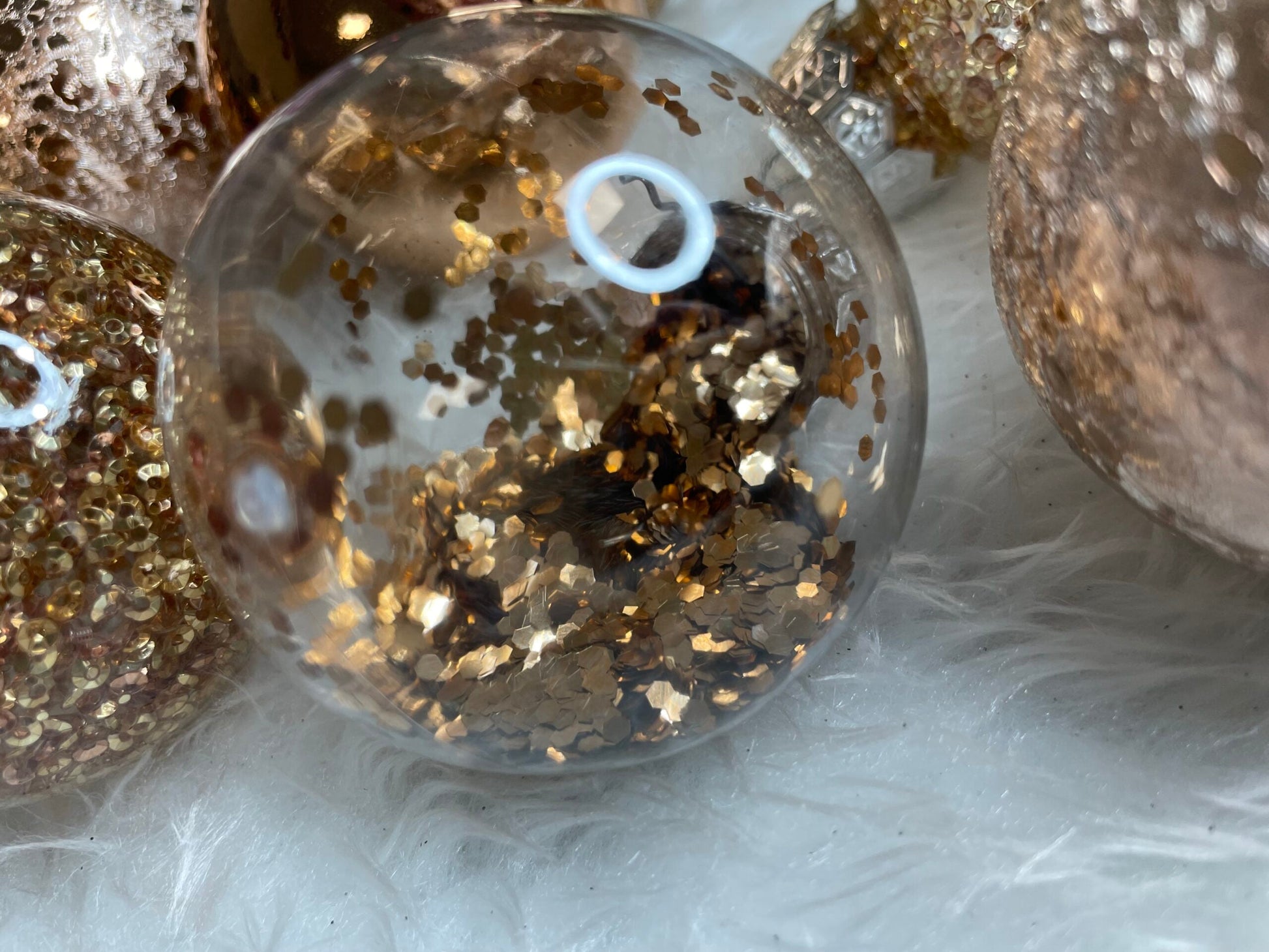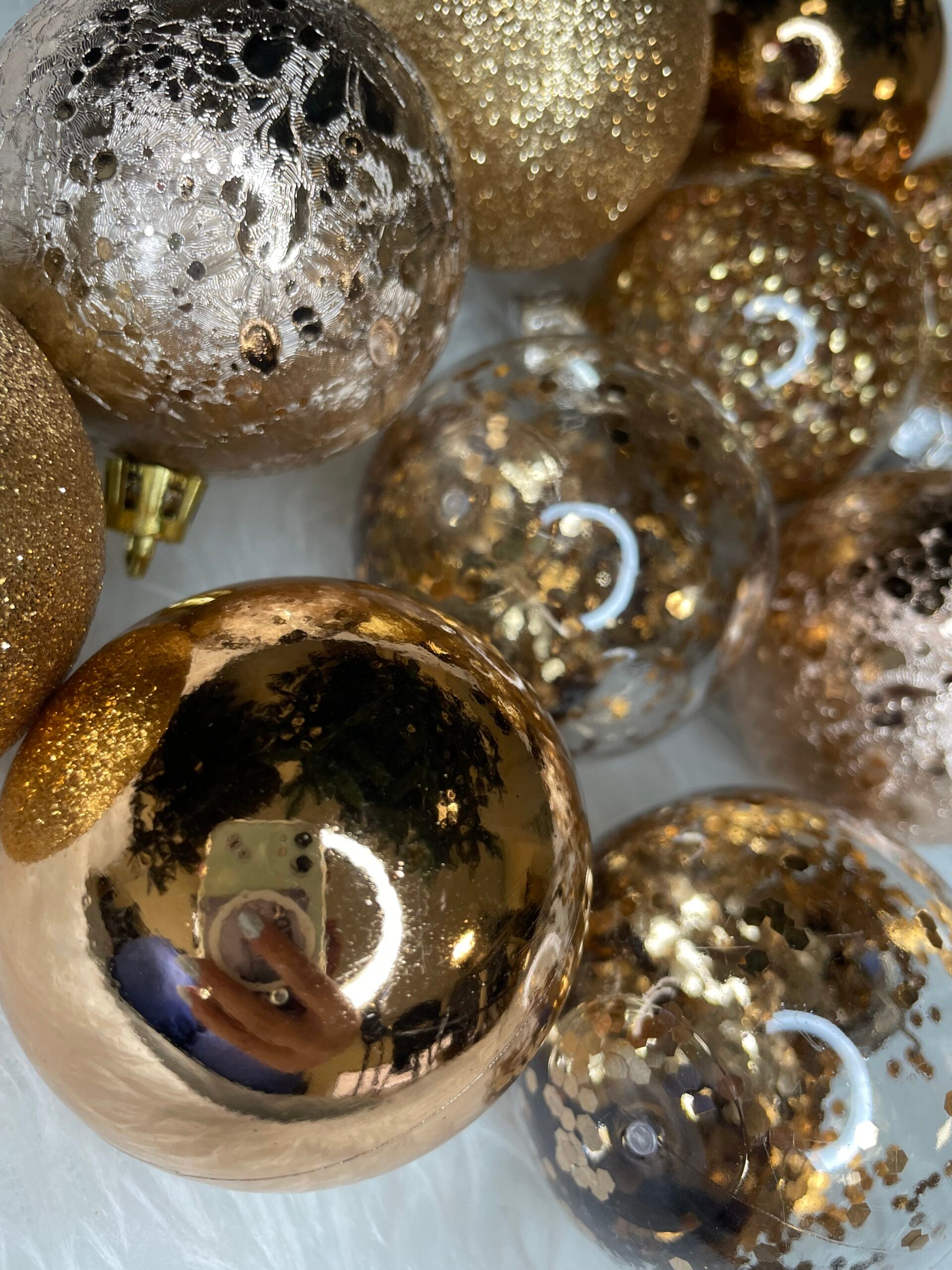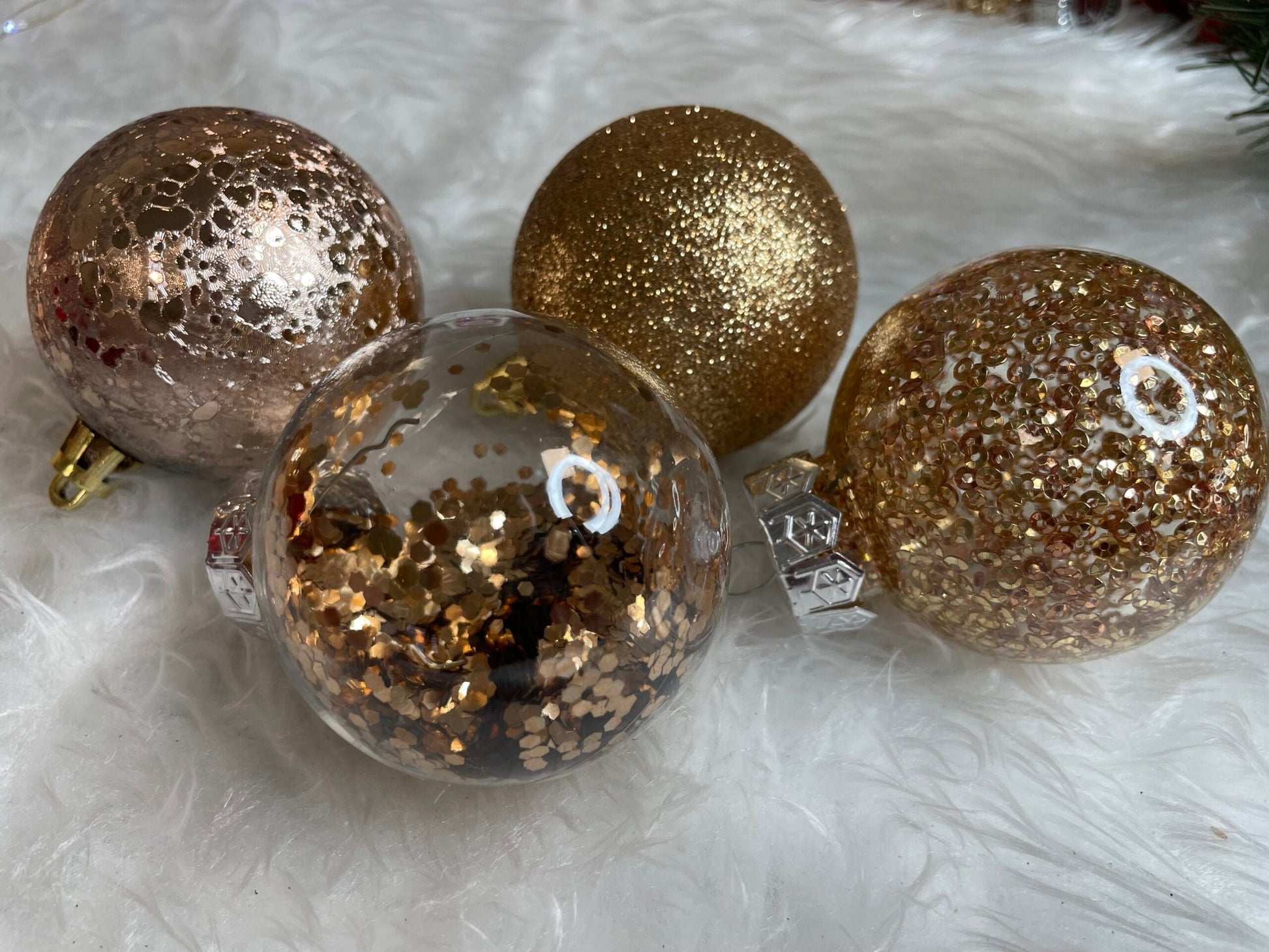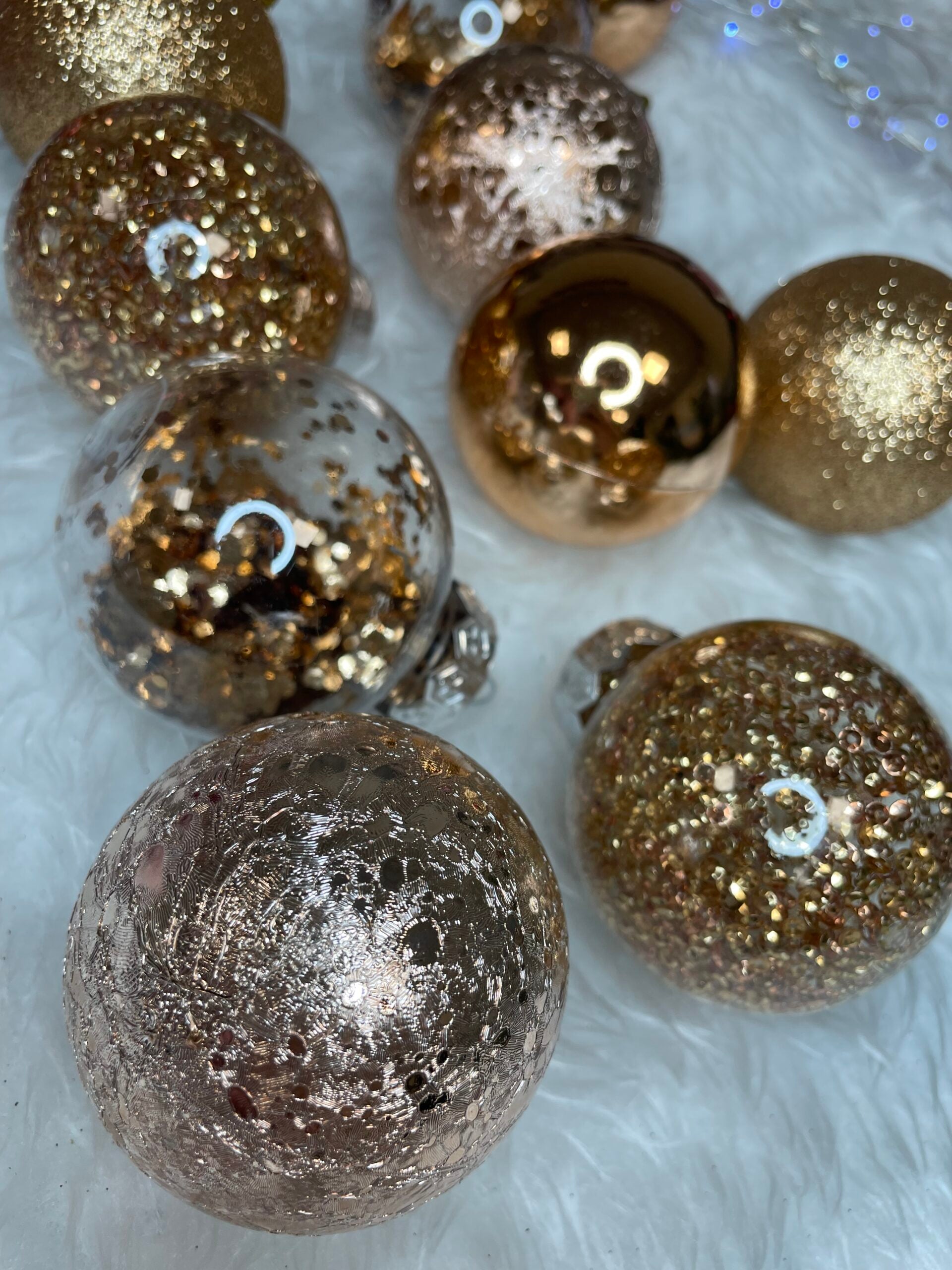 Set globuri de Craciun Inedit, 30 bucati, 6cm, transparente si aramiu