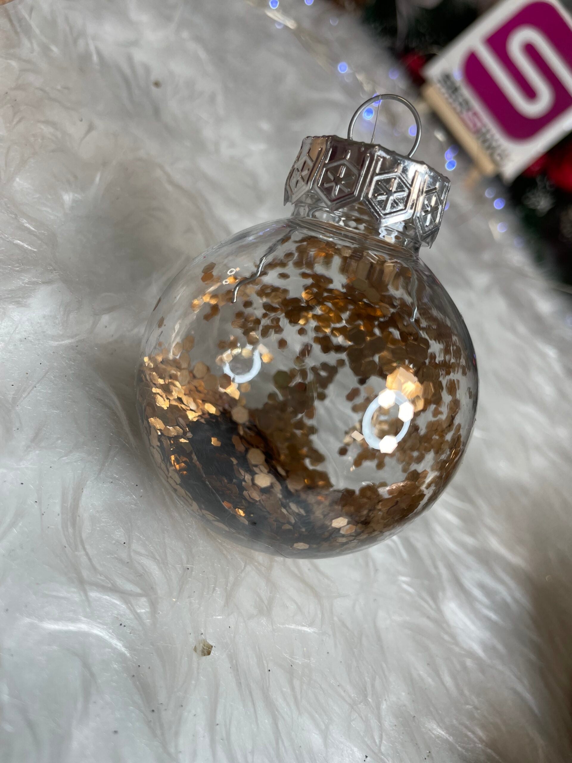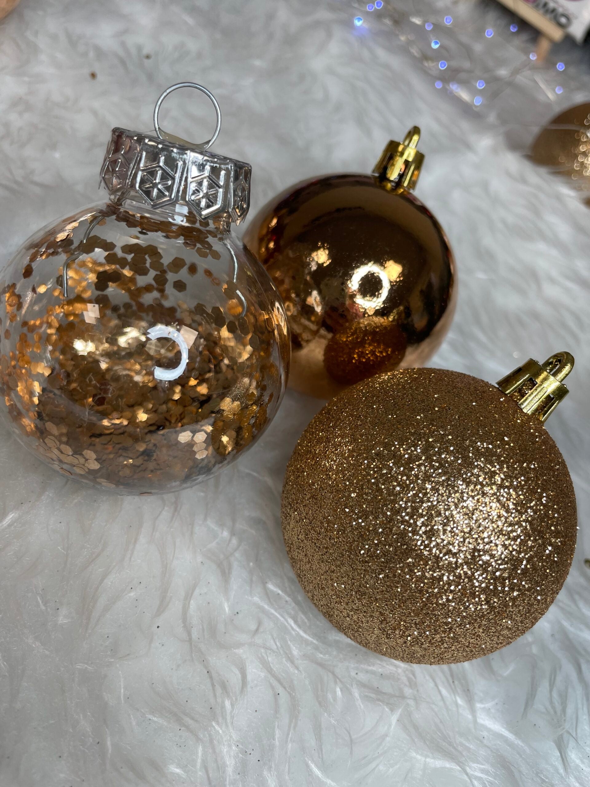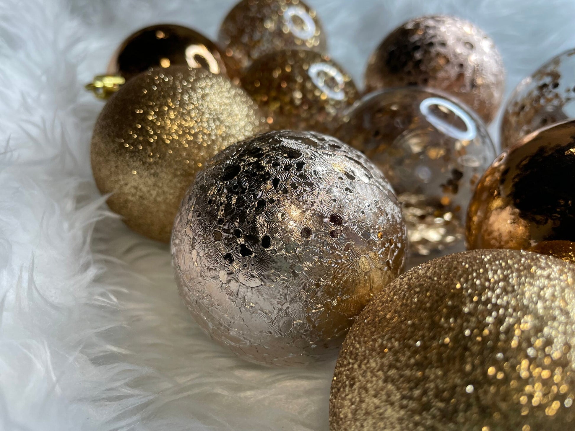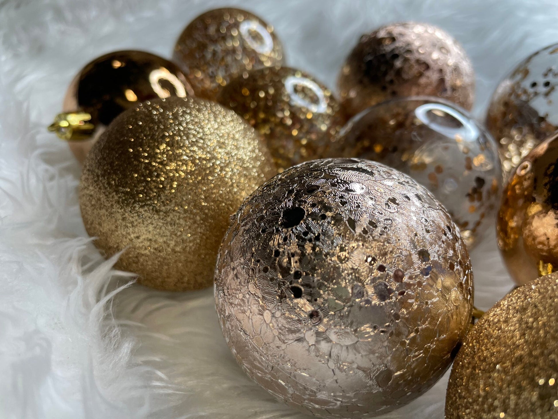 Set globuri de Craciun Inedit, 30 bucati, 6cm, transparente si aramiu