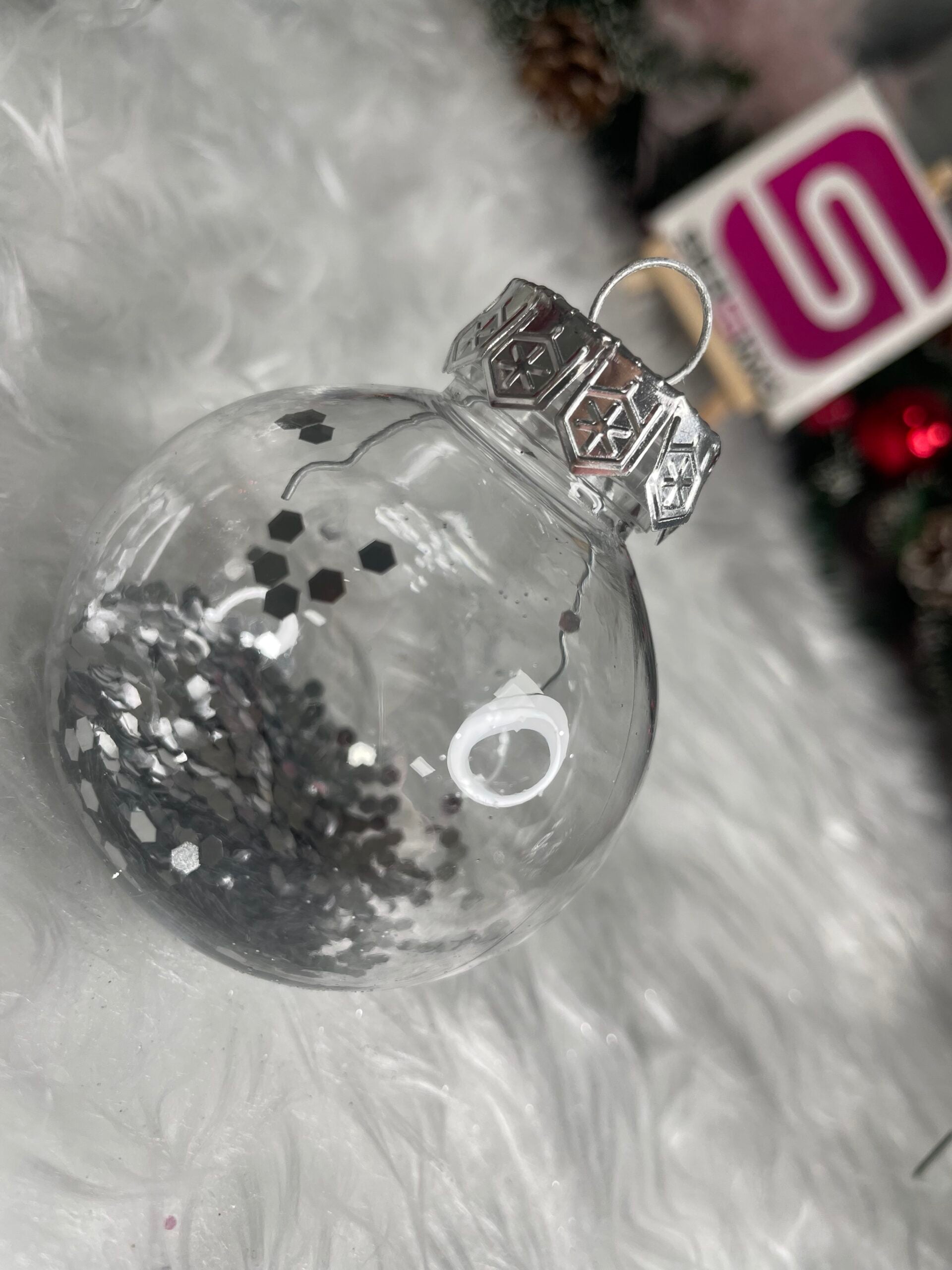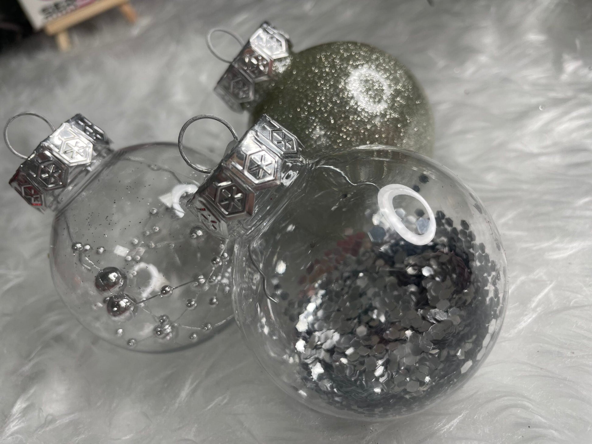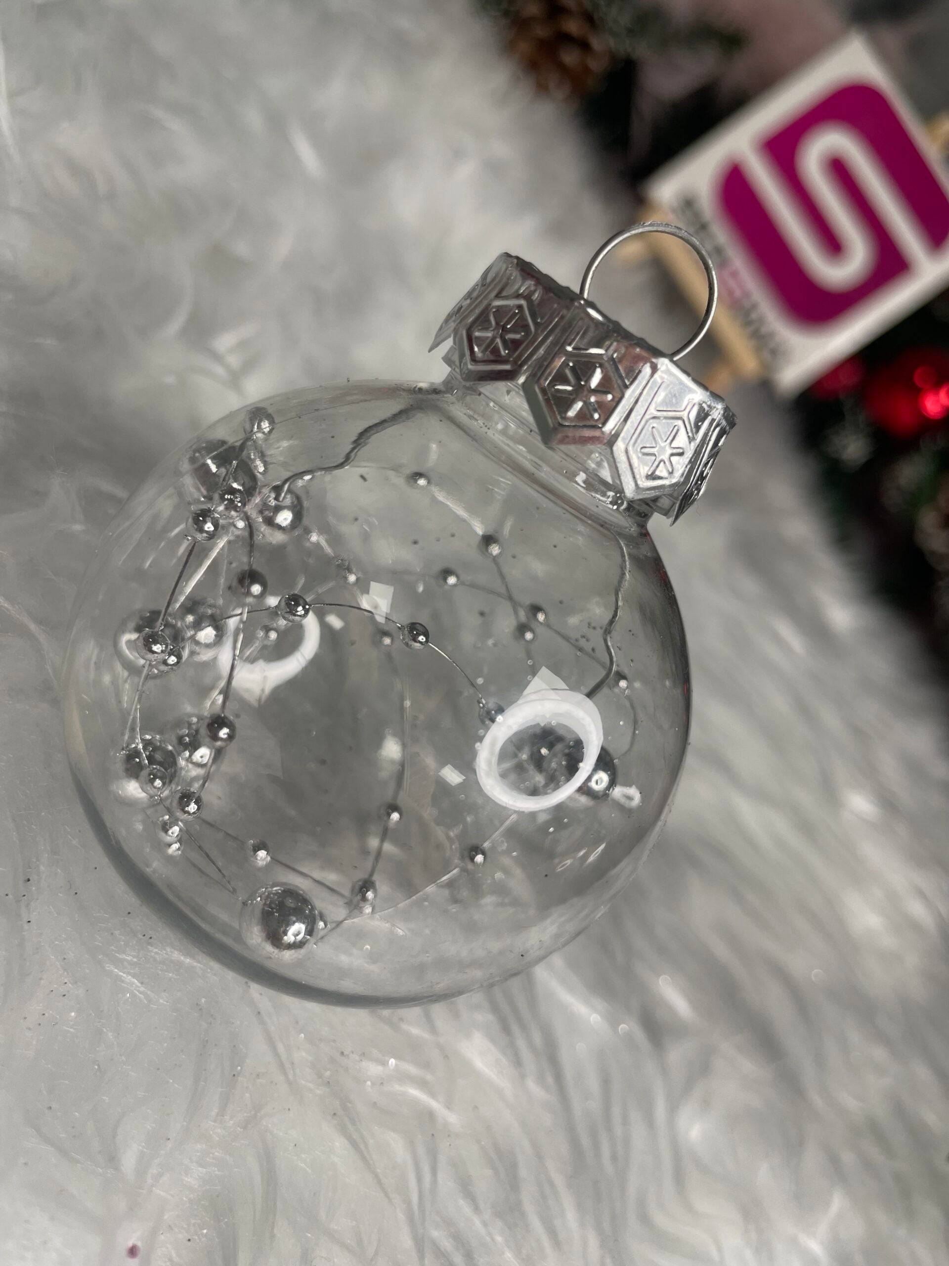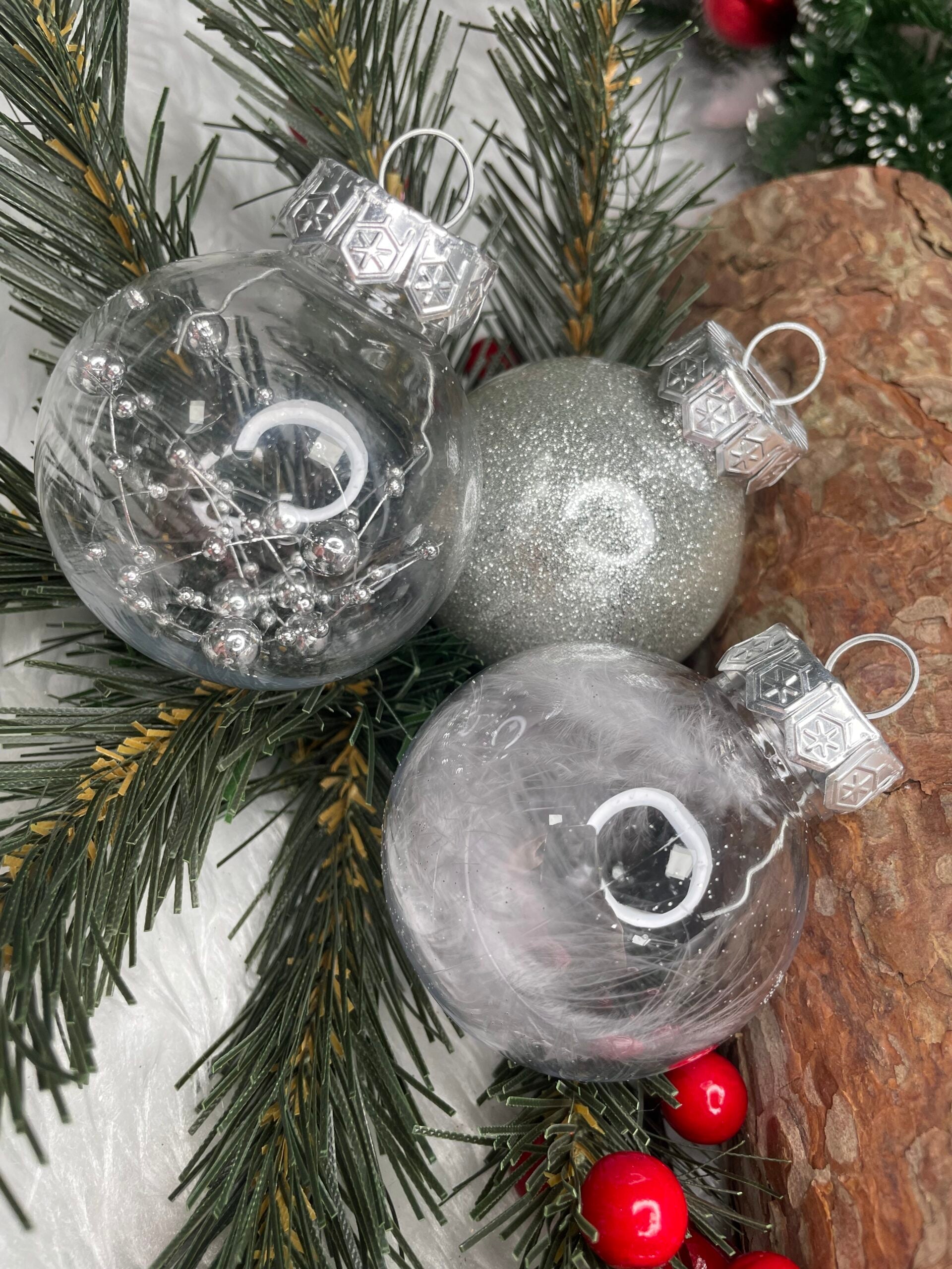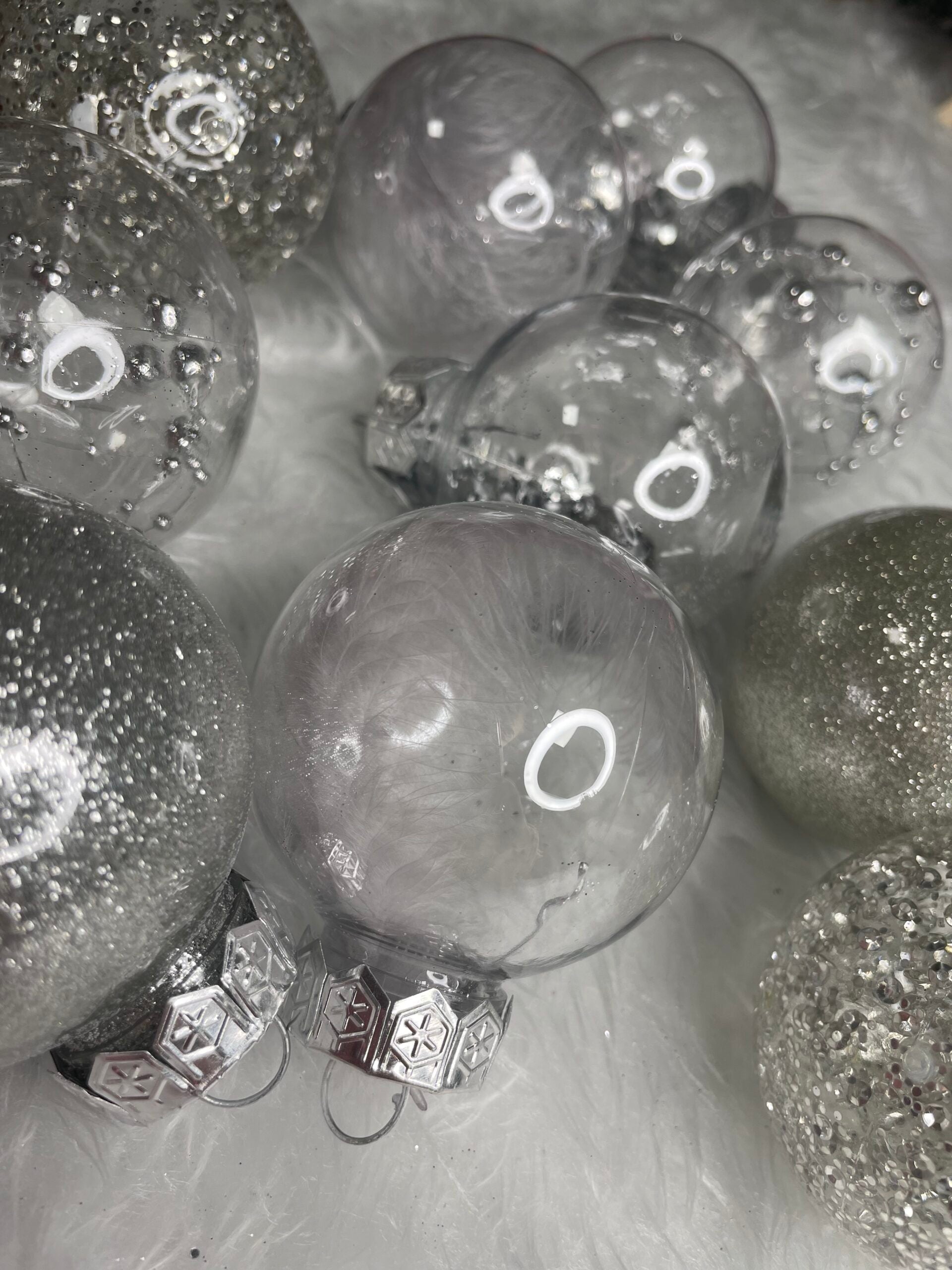 Set globuri de Craciun Inedit, 30 bucati, 6cm, transparente si argintiu