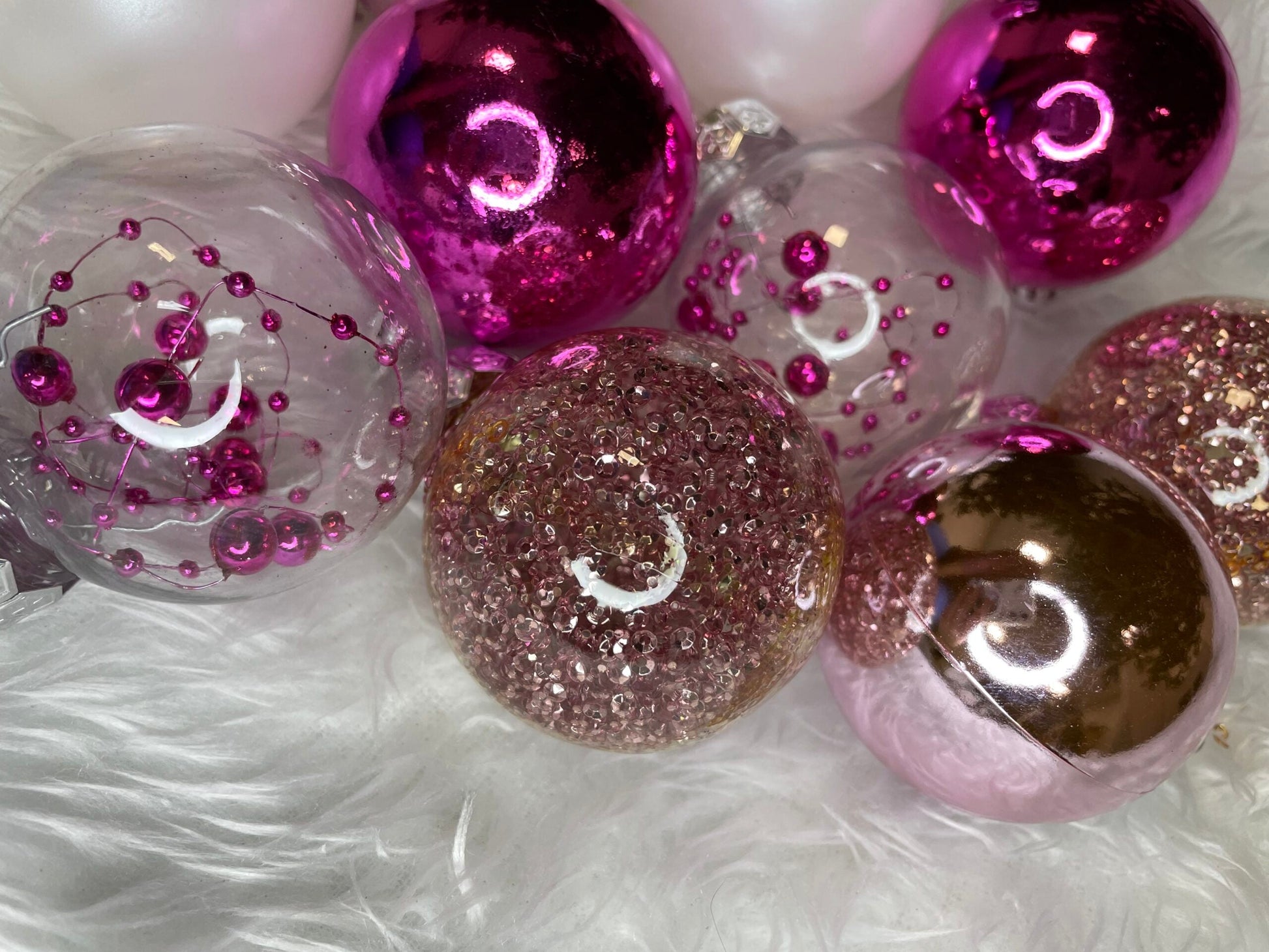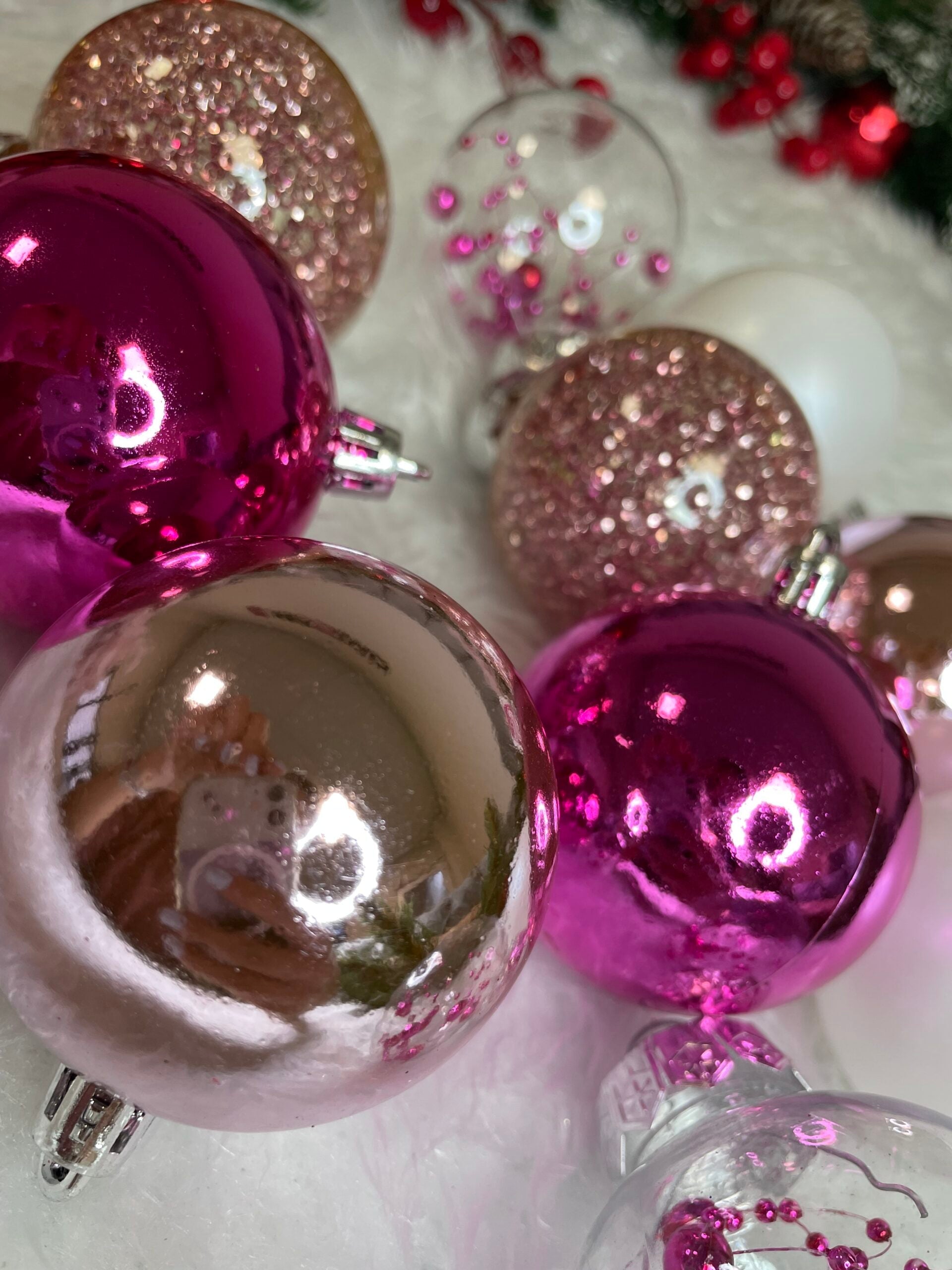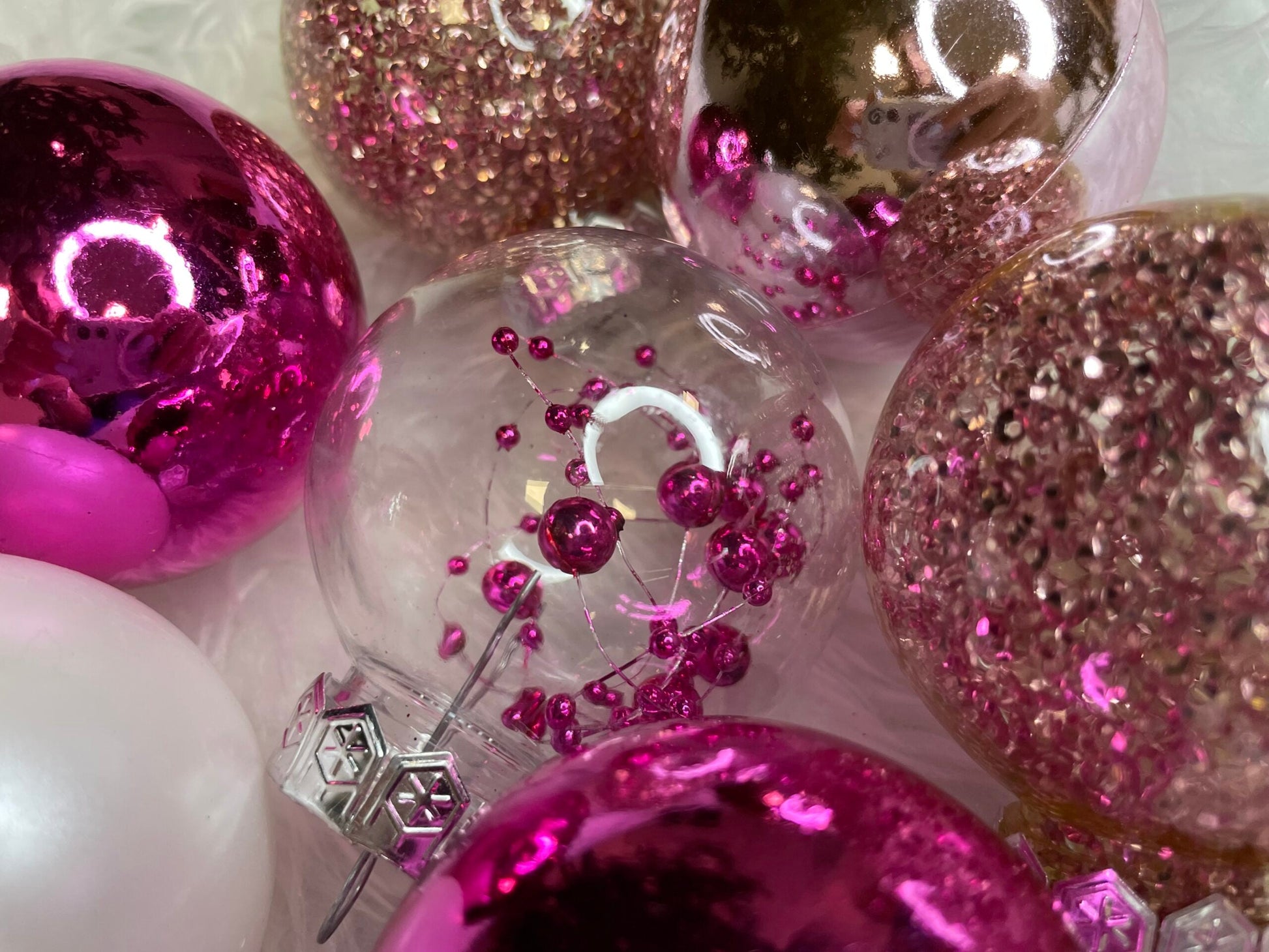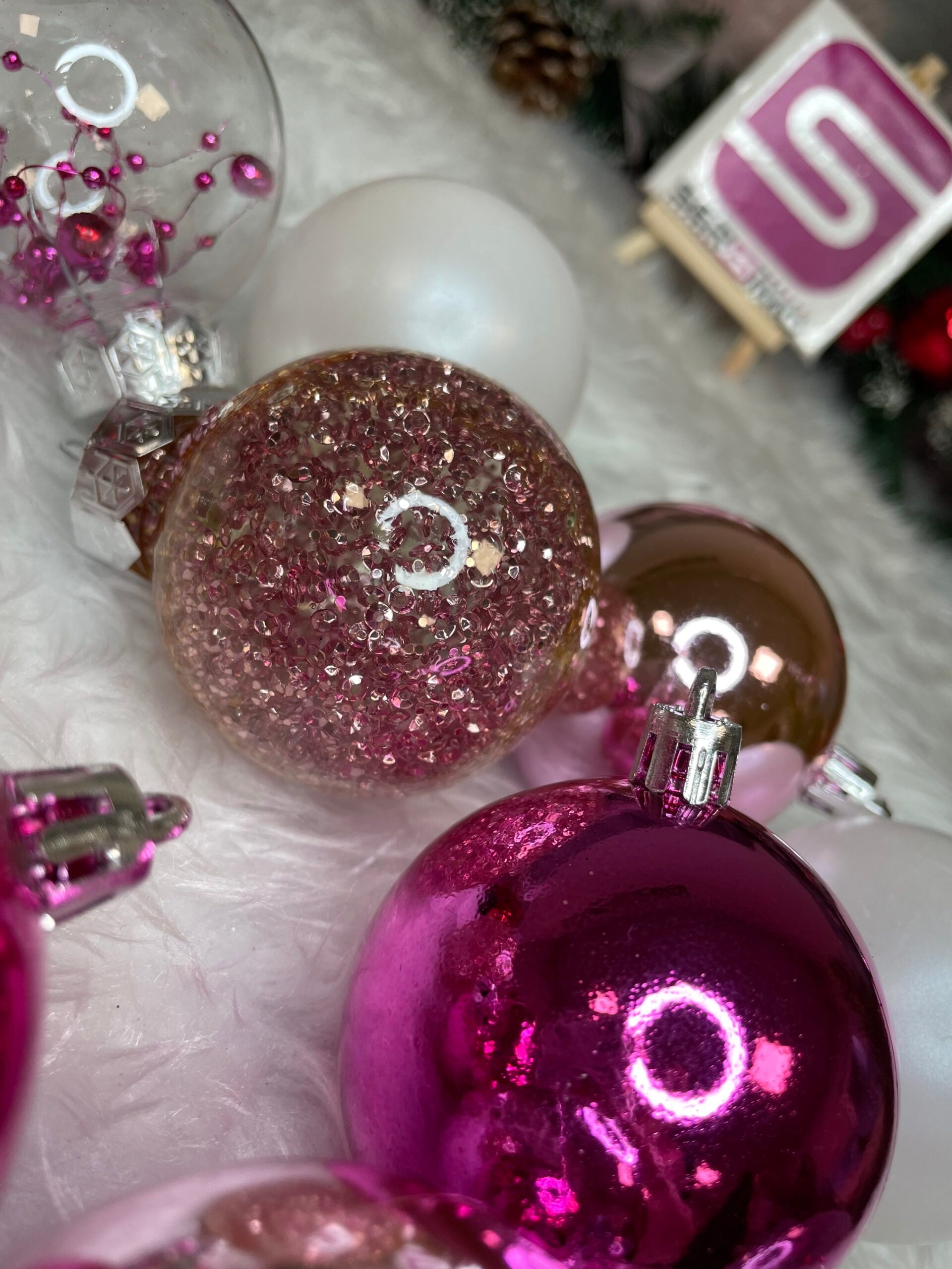 Set globuri de Craciun Inedit, 30 bucati, 6cm, transparente si roz