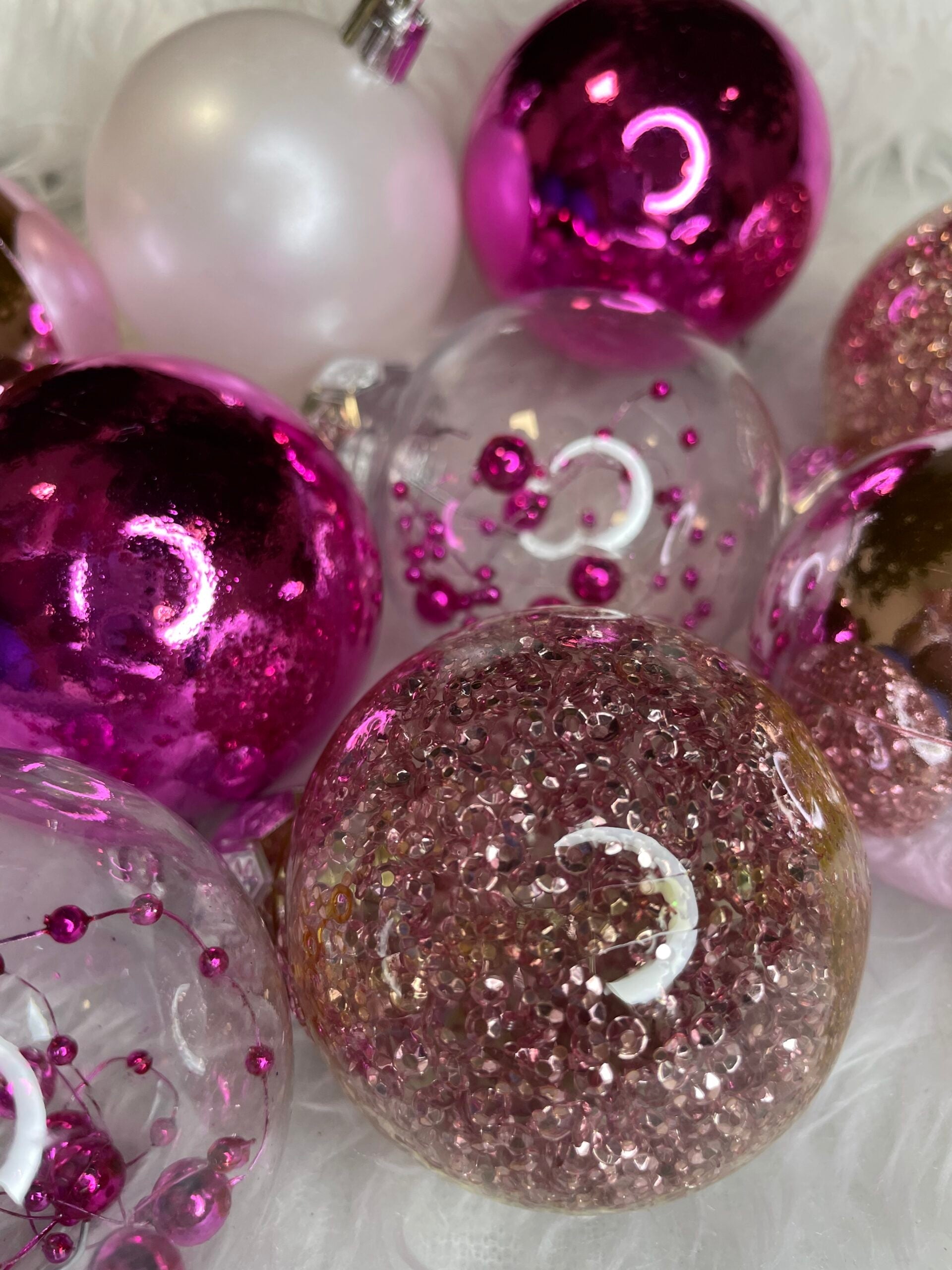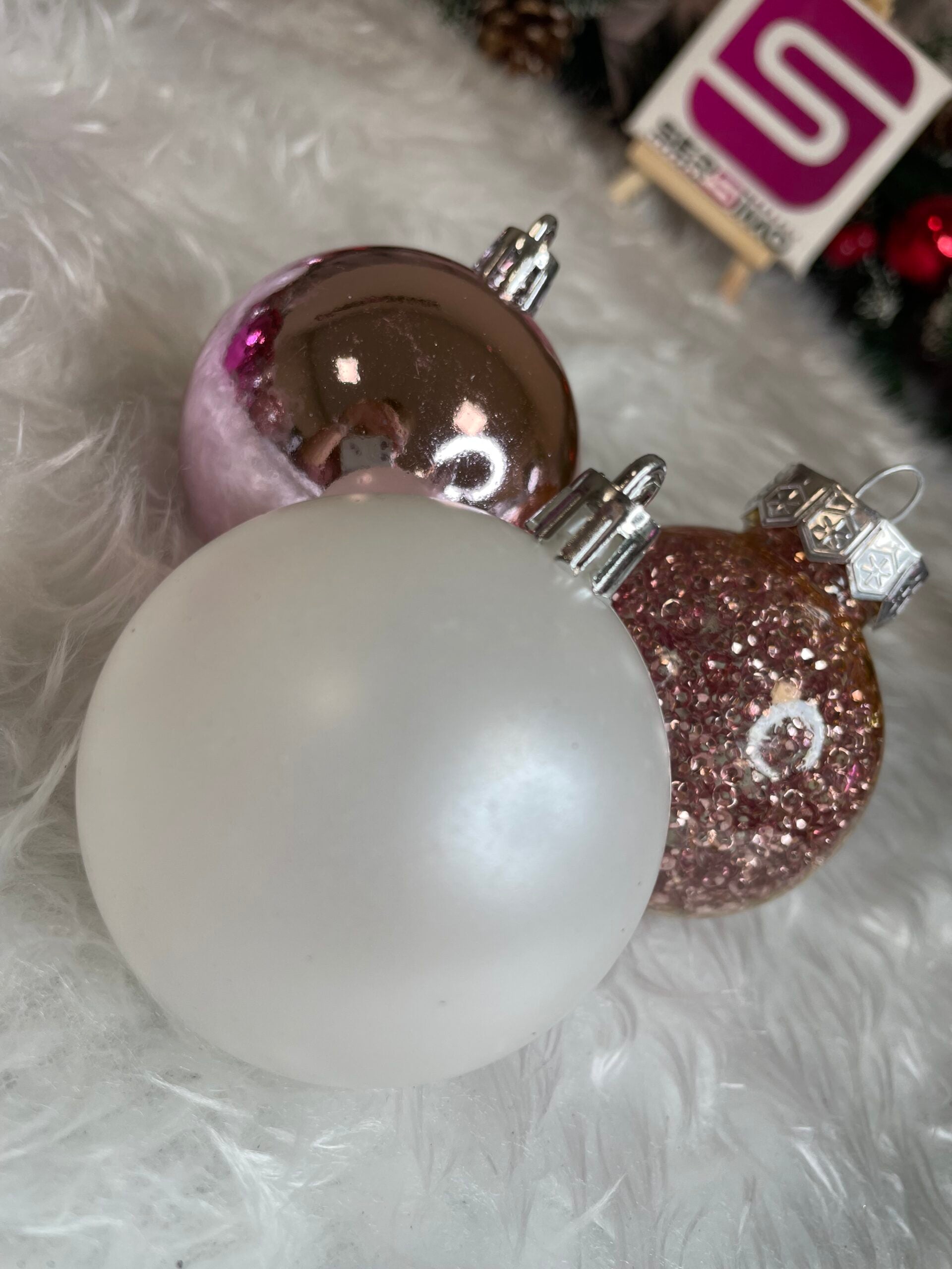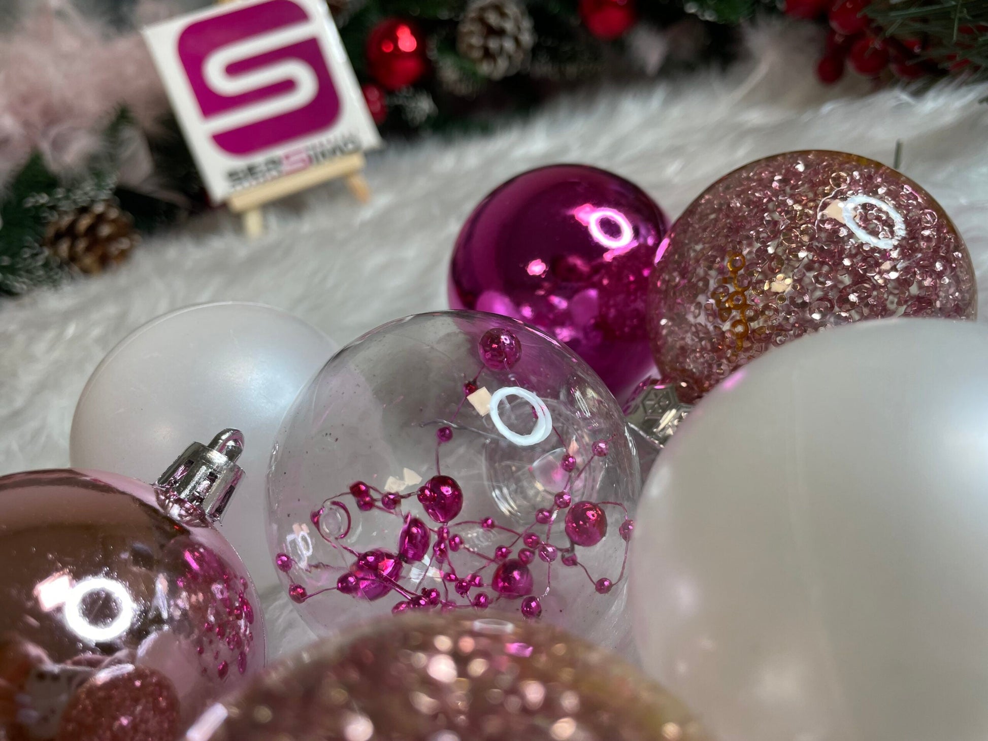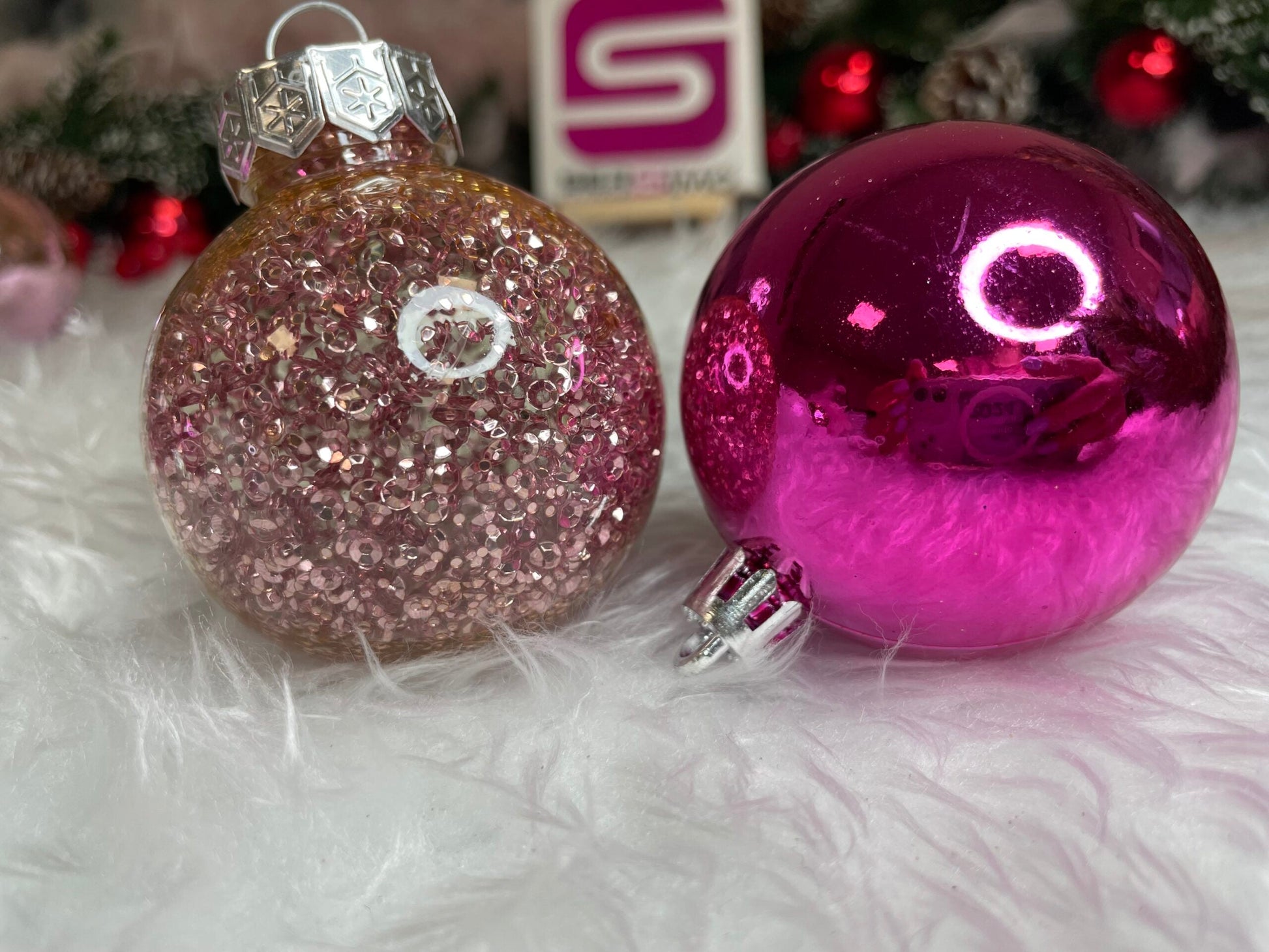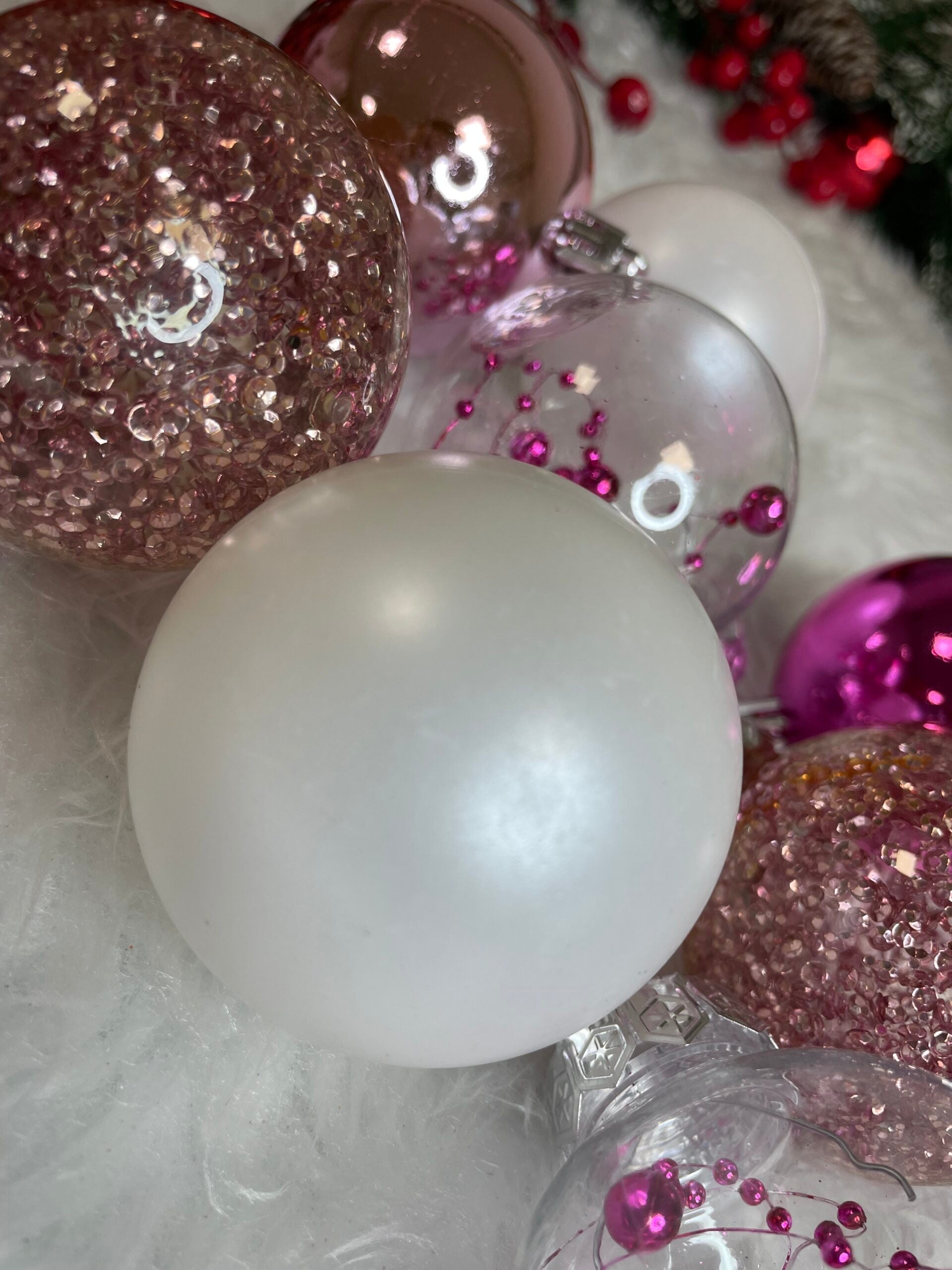 Set globuri de Craciun Inedit, 30 bucati, 6cm, transparente si roz