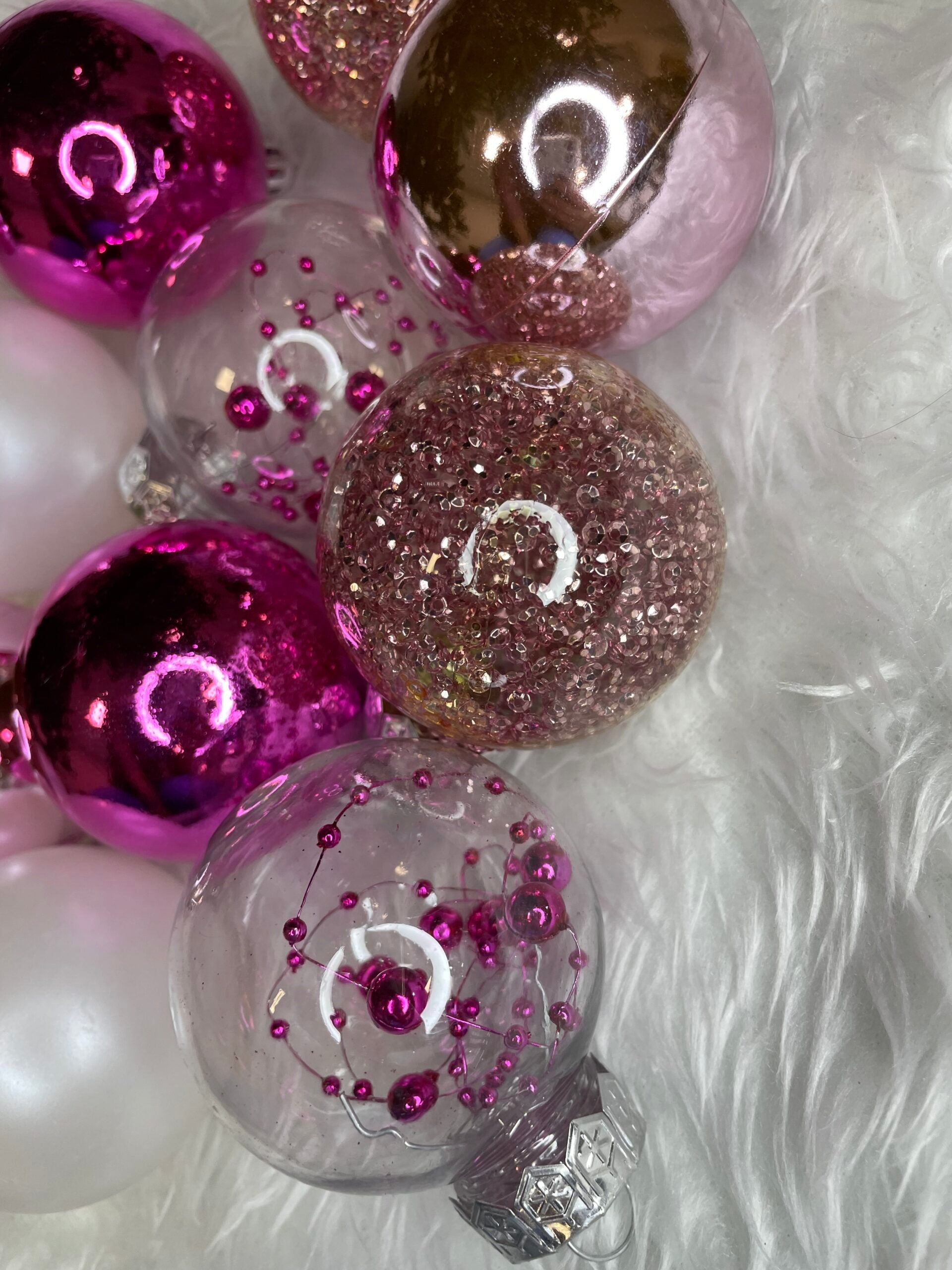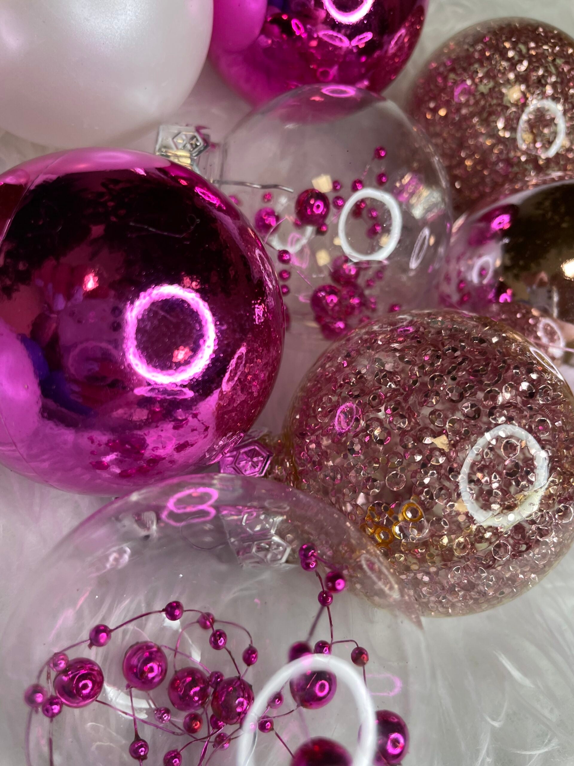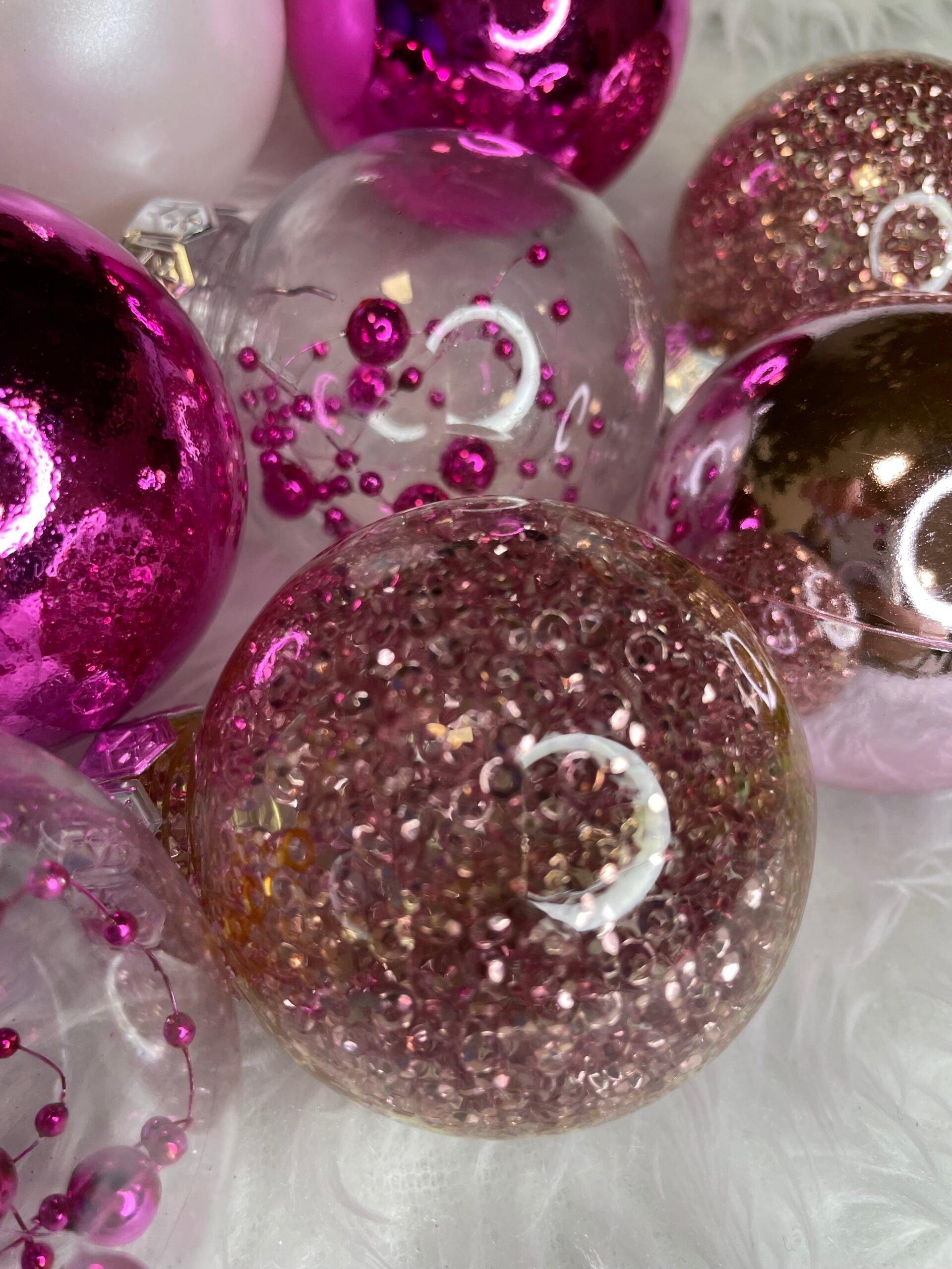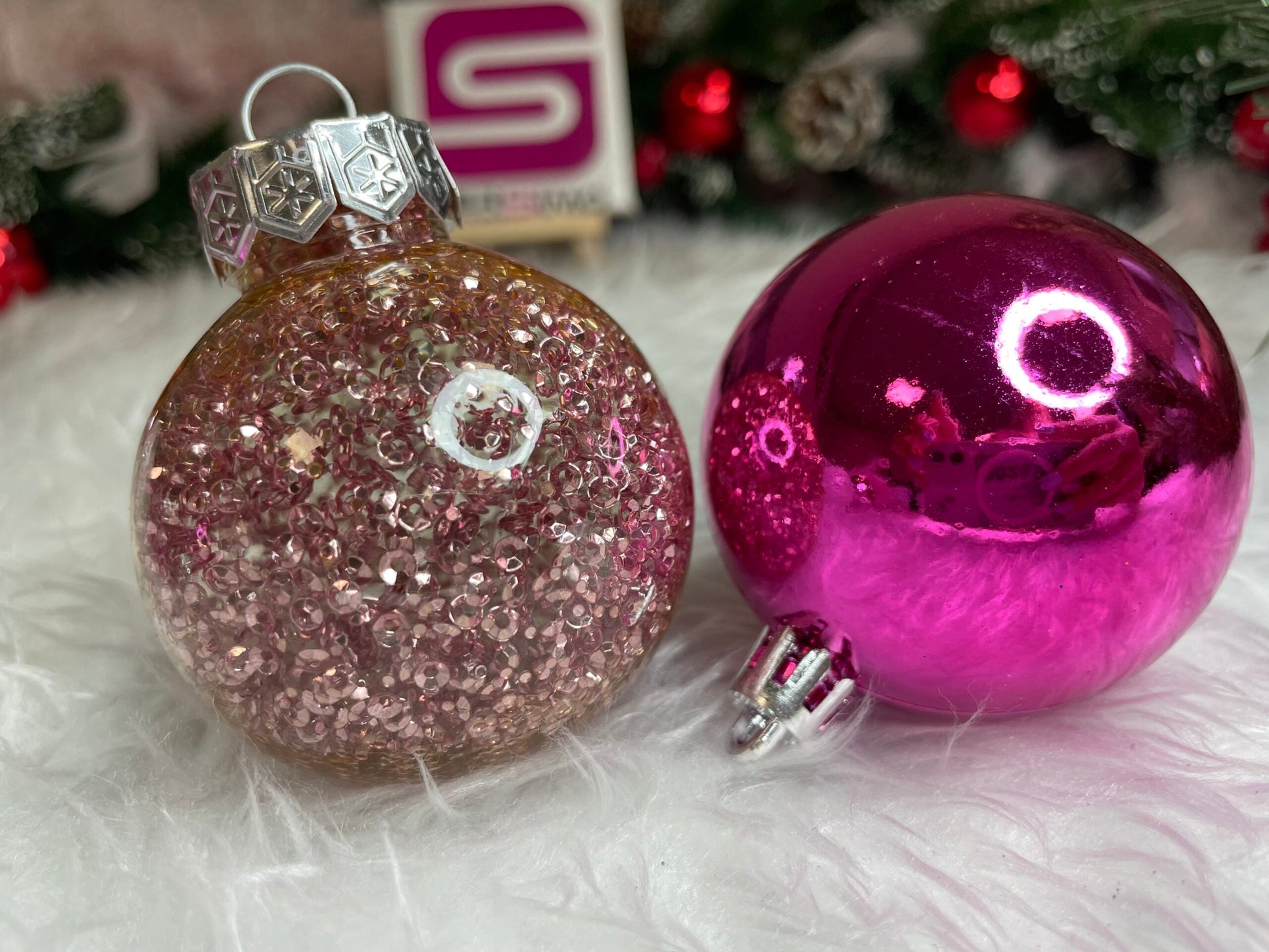 Set globuri de Craciun Inedit, 30 bucati, 6cm, transparente si roz