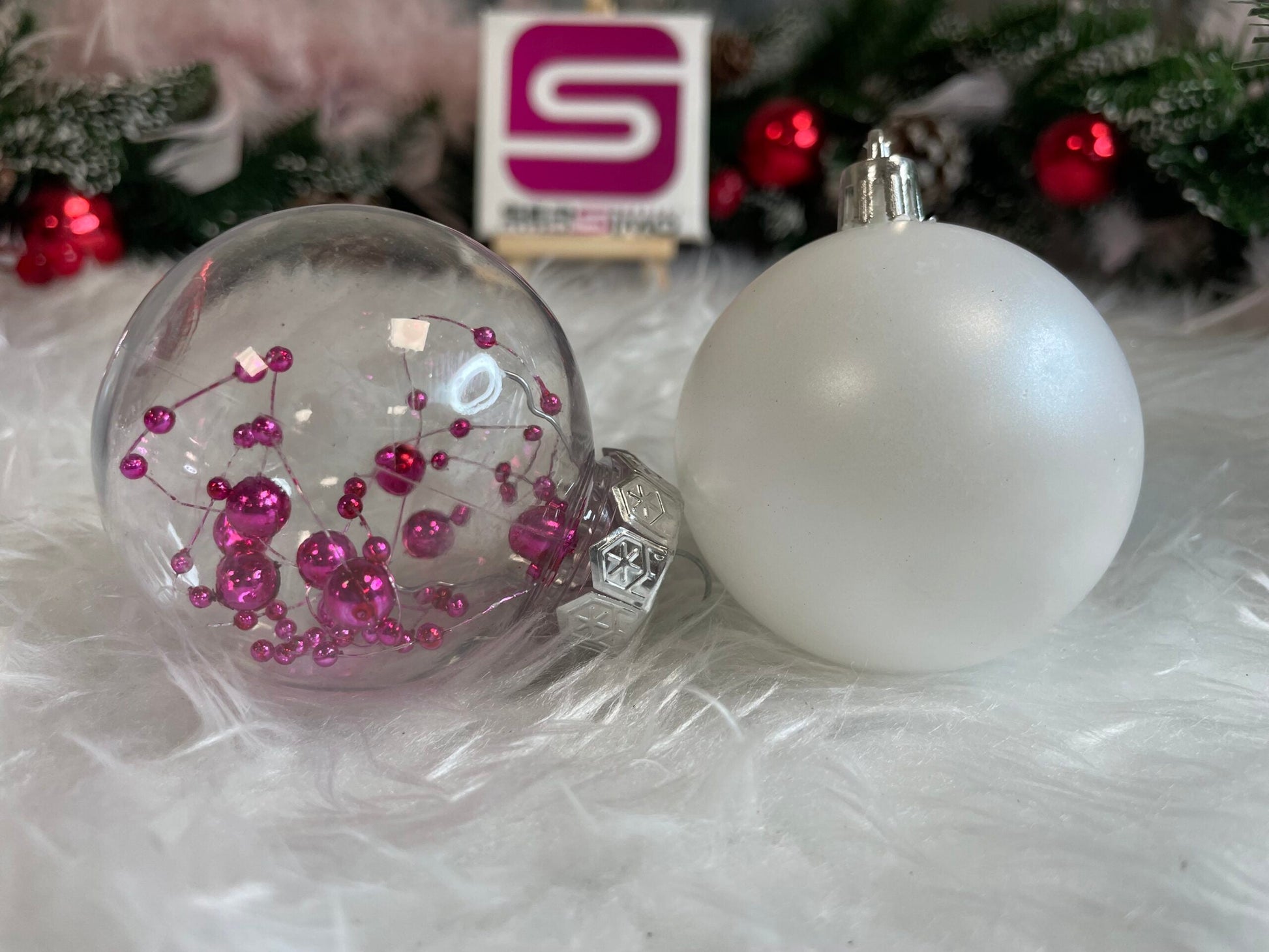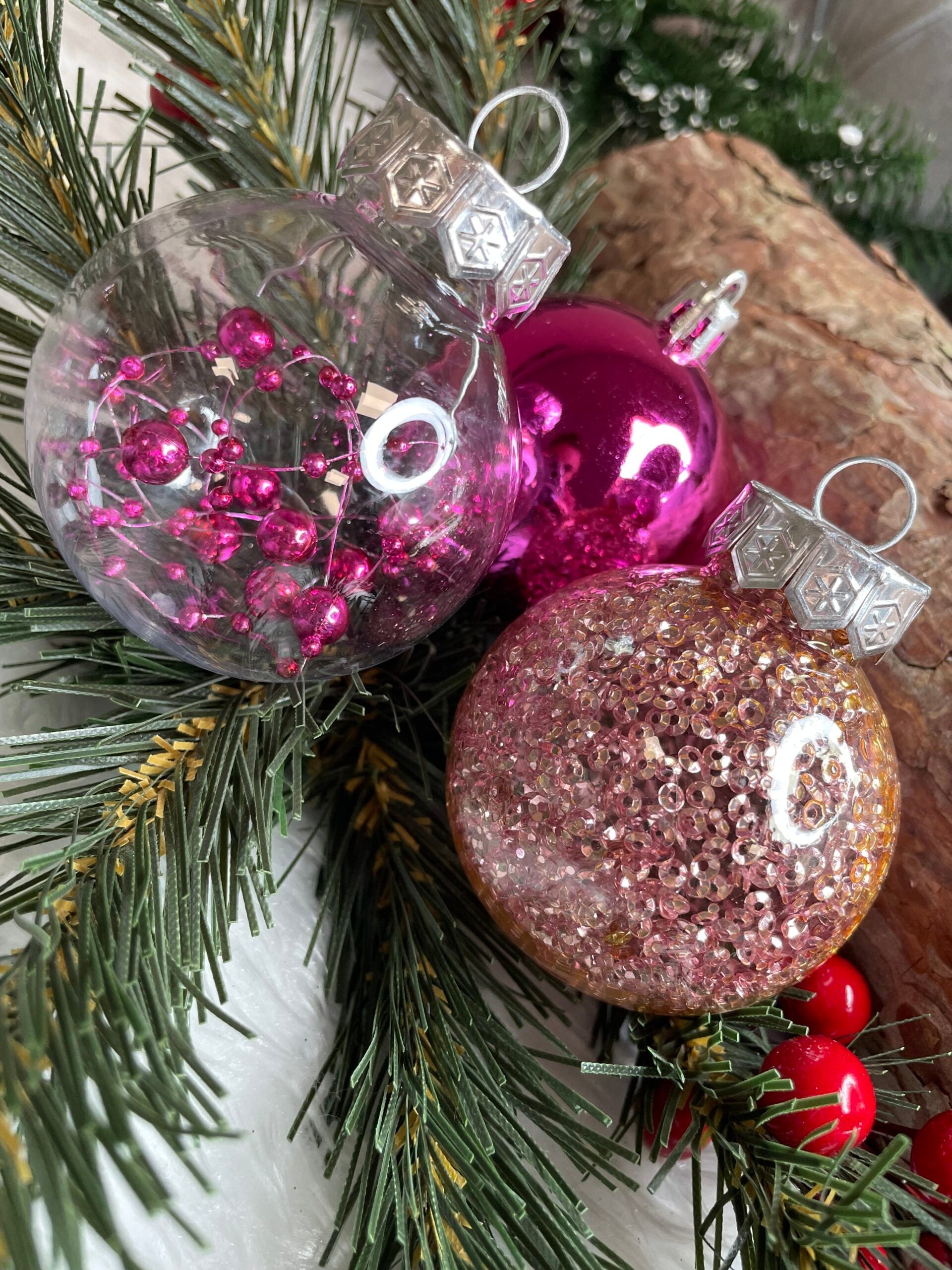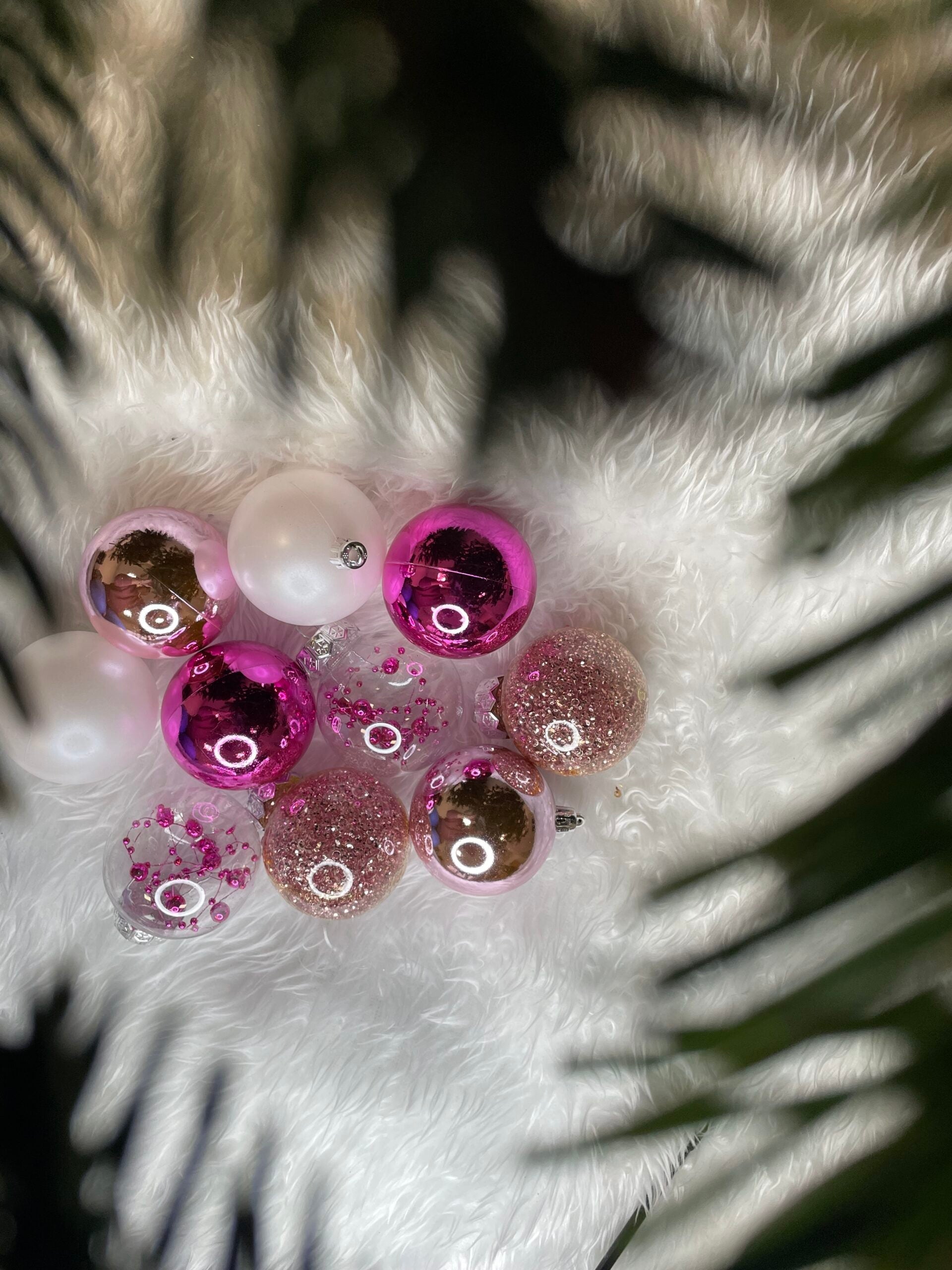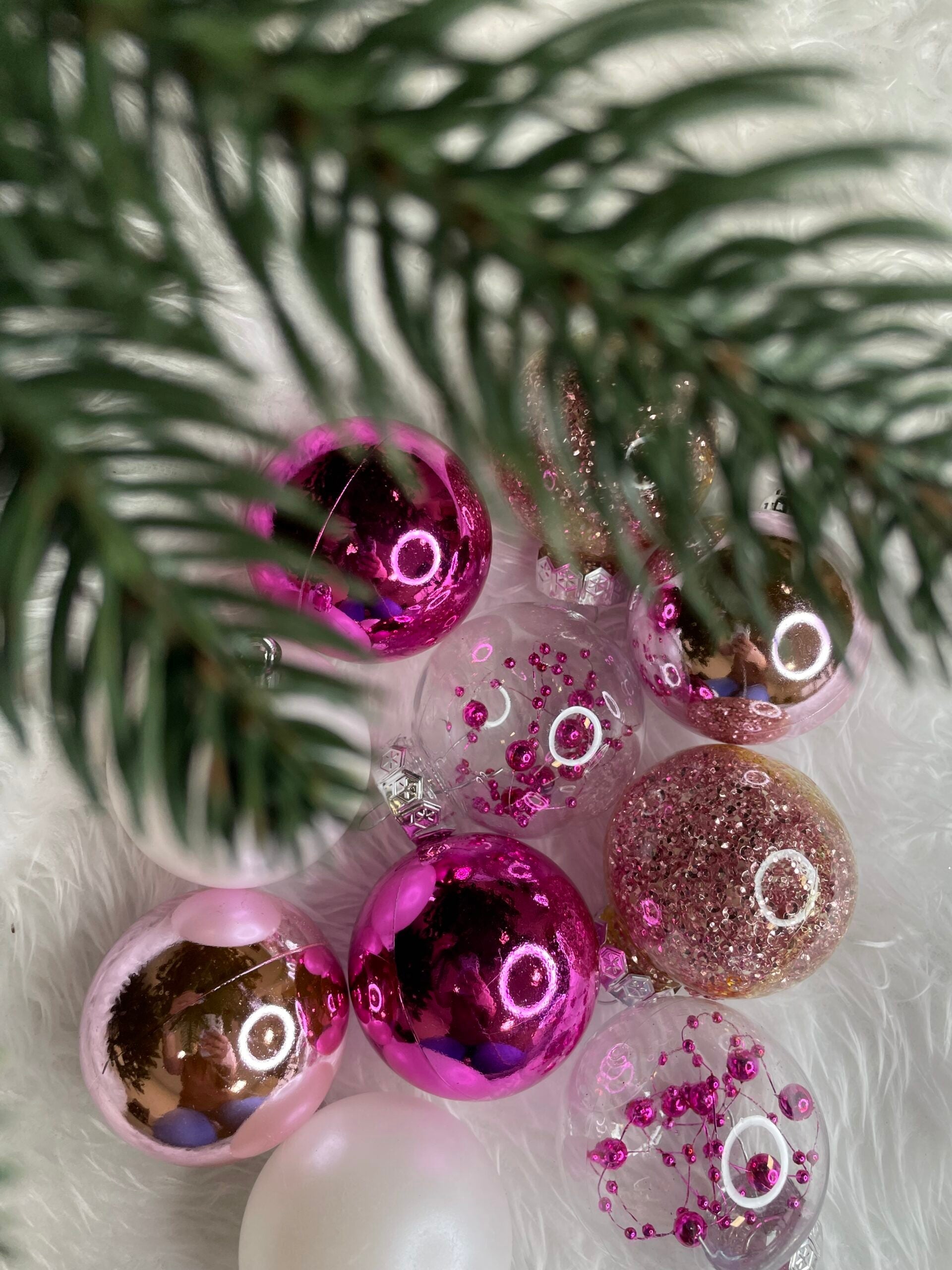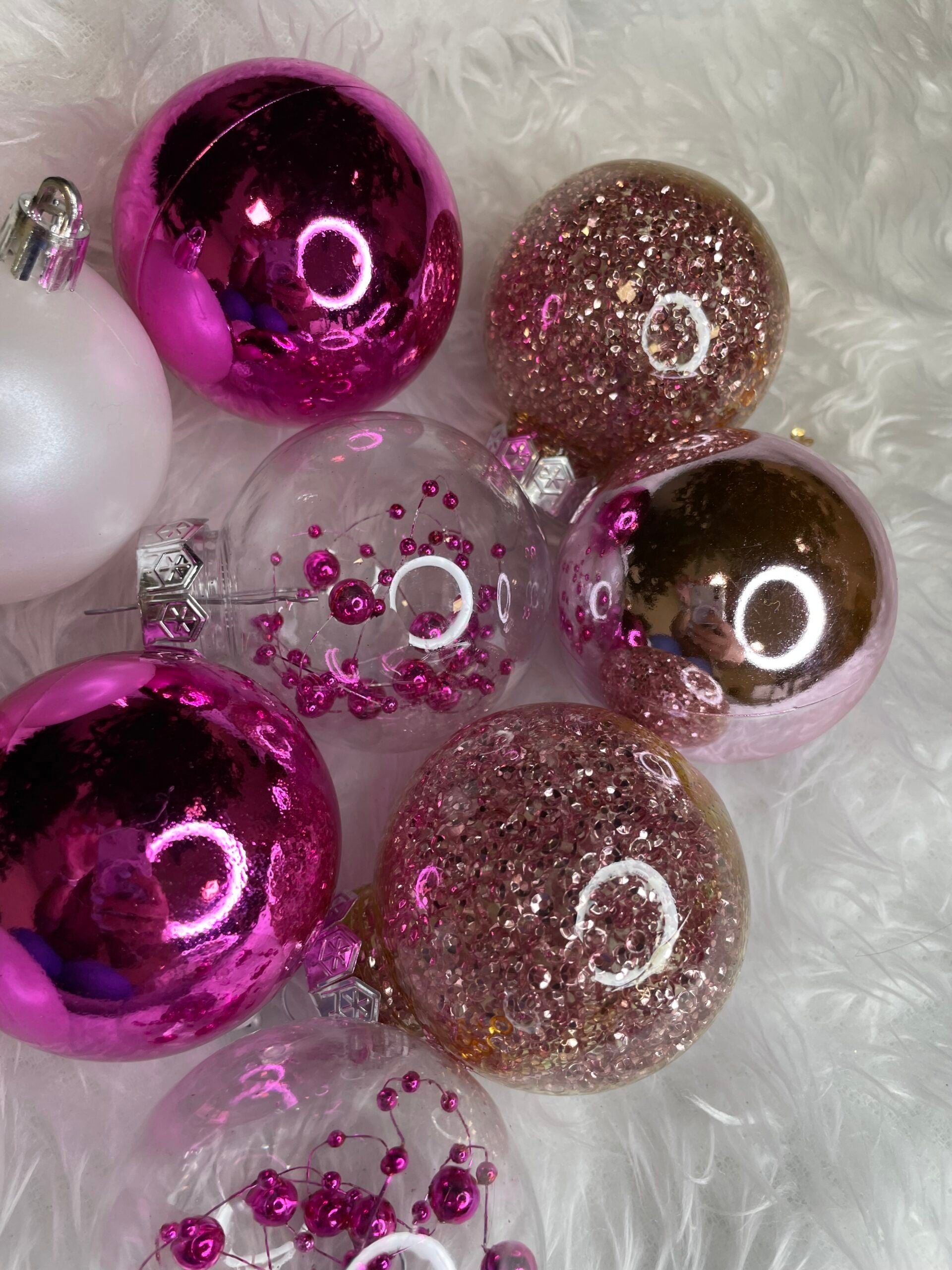 Set globuri de Craciun Inedit, 30 bucati, 6cm, transparente si roz