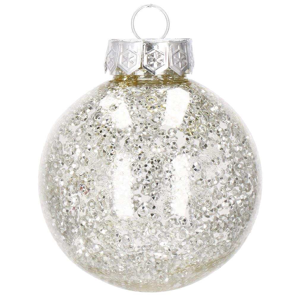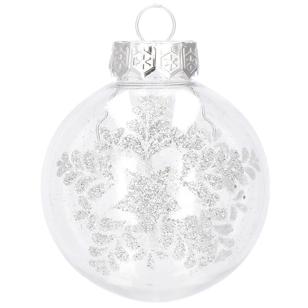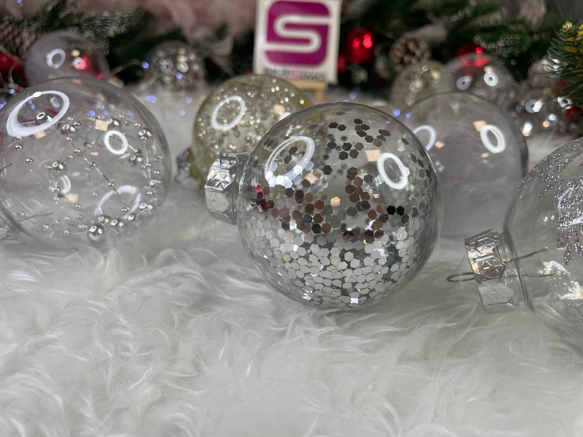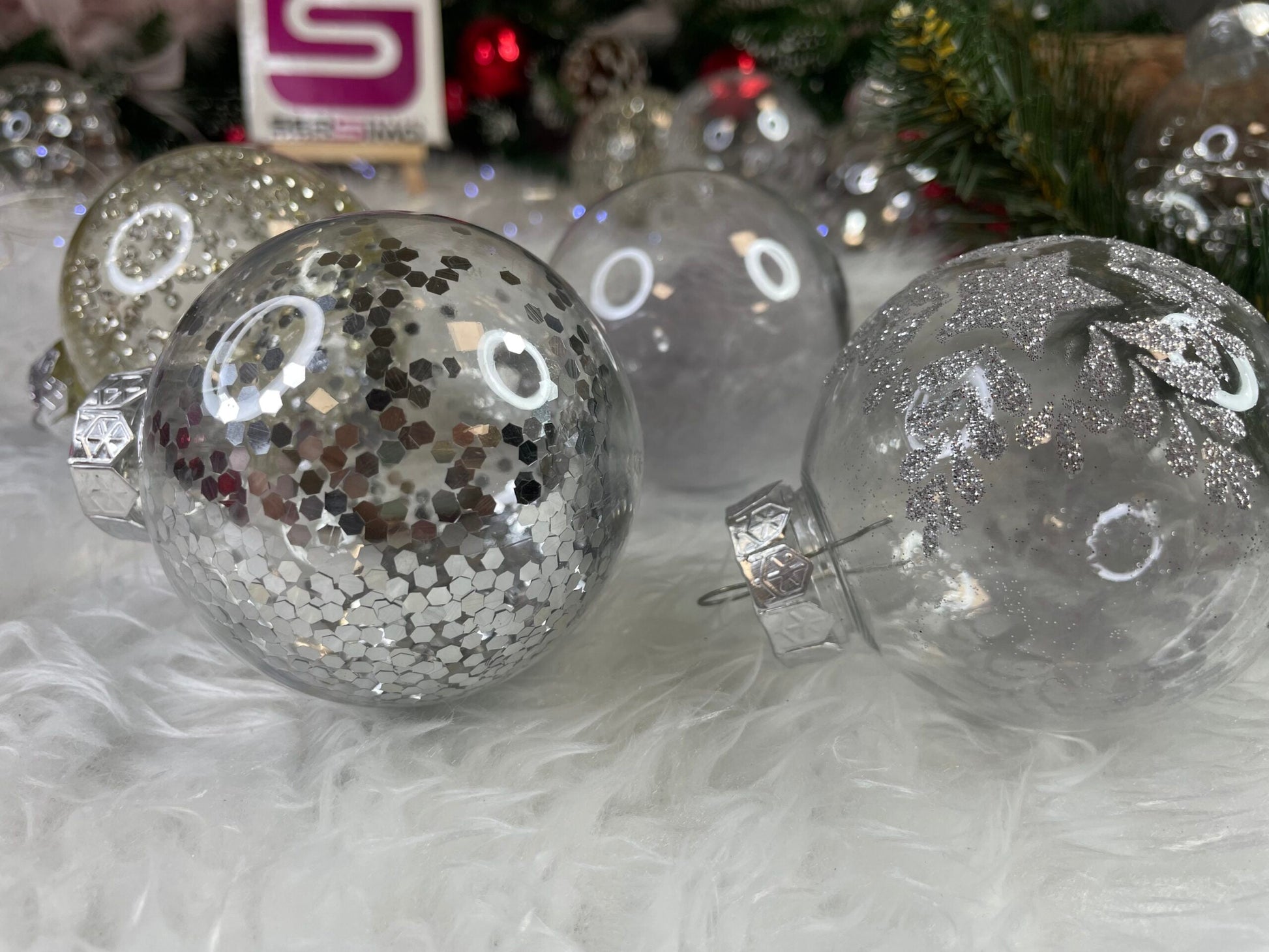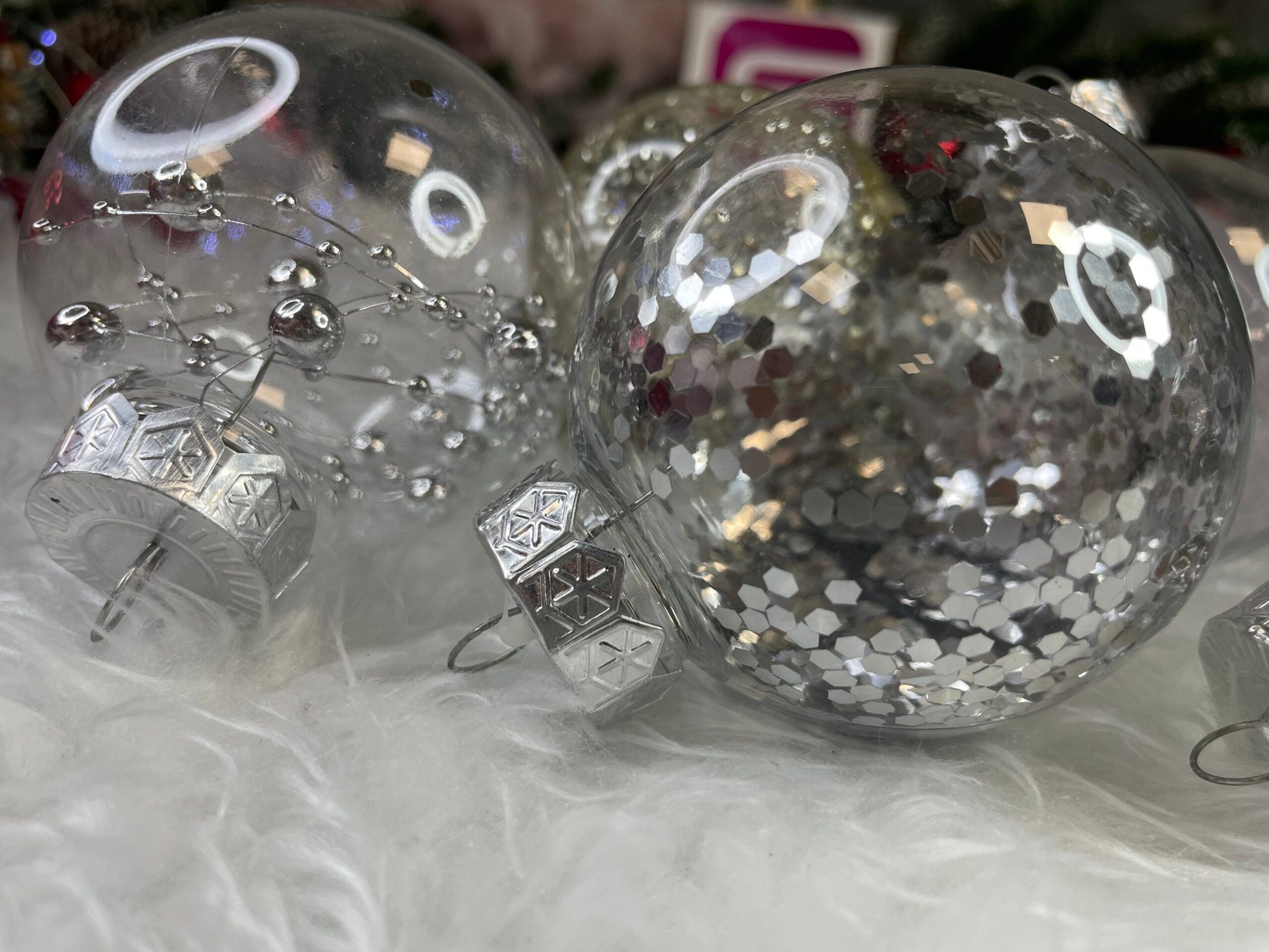 Set globuri de Craciun Inedit, 30 bucati, 7cm, transparente si argintiu
