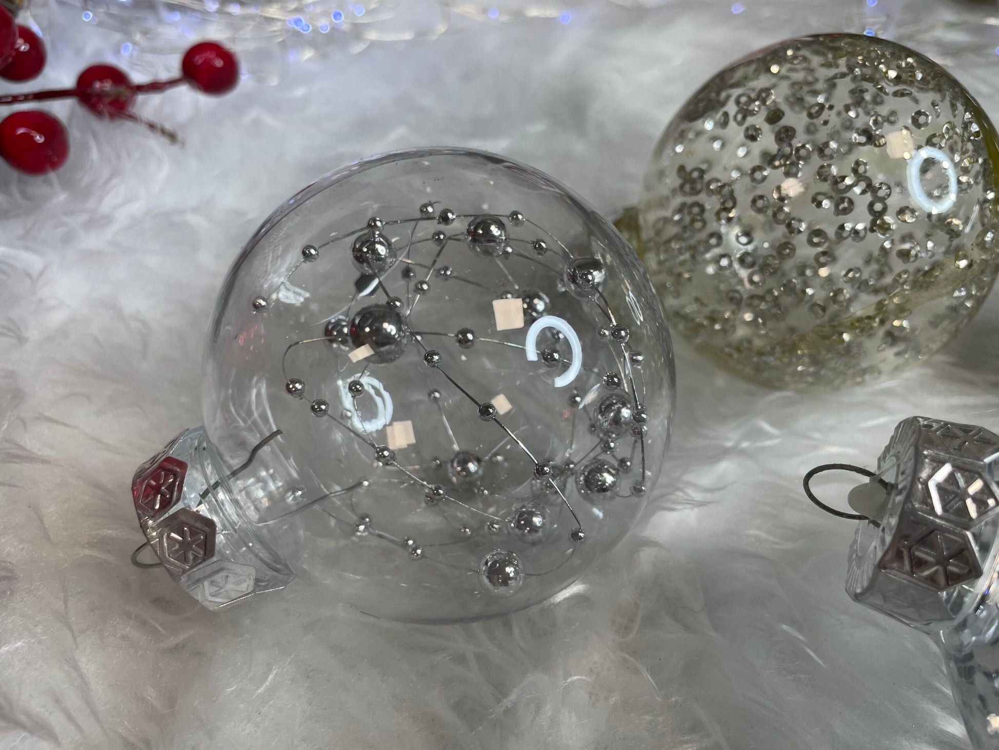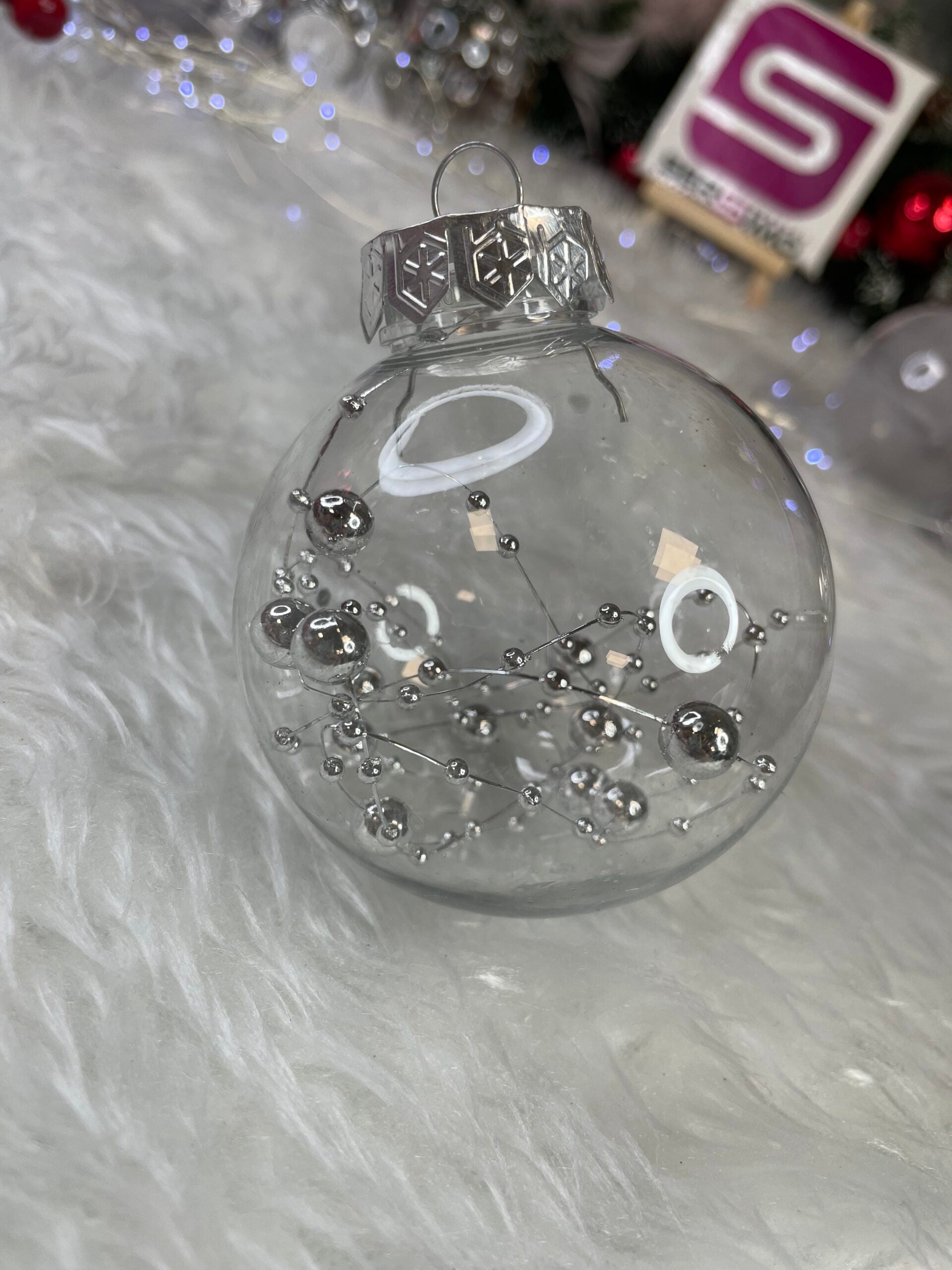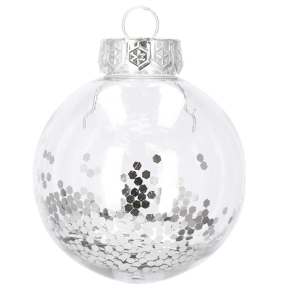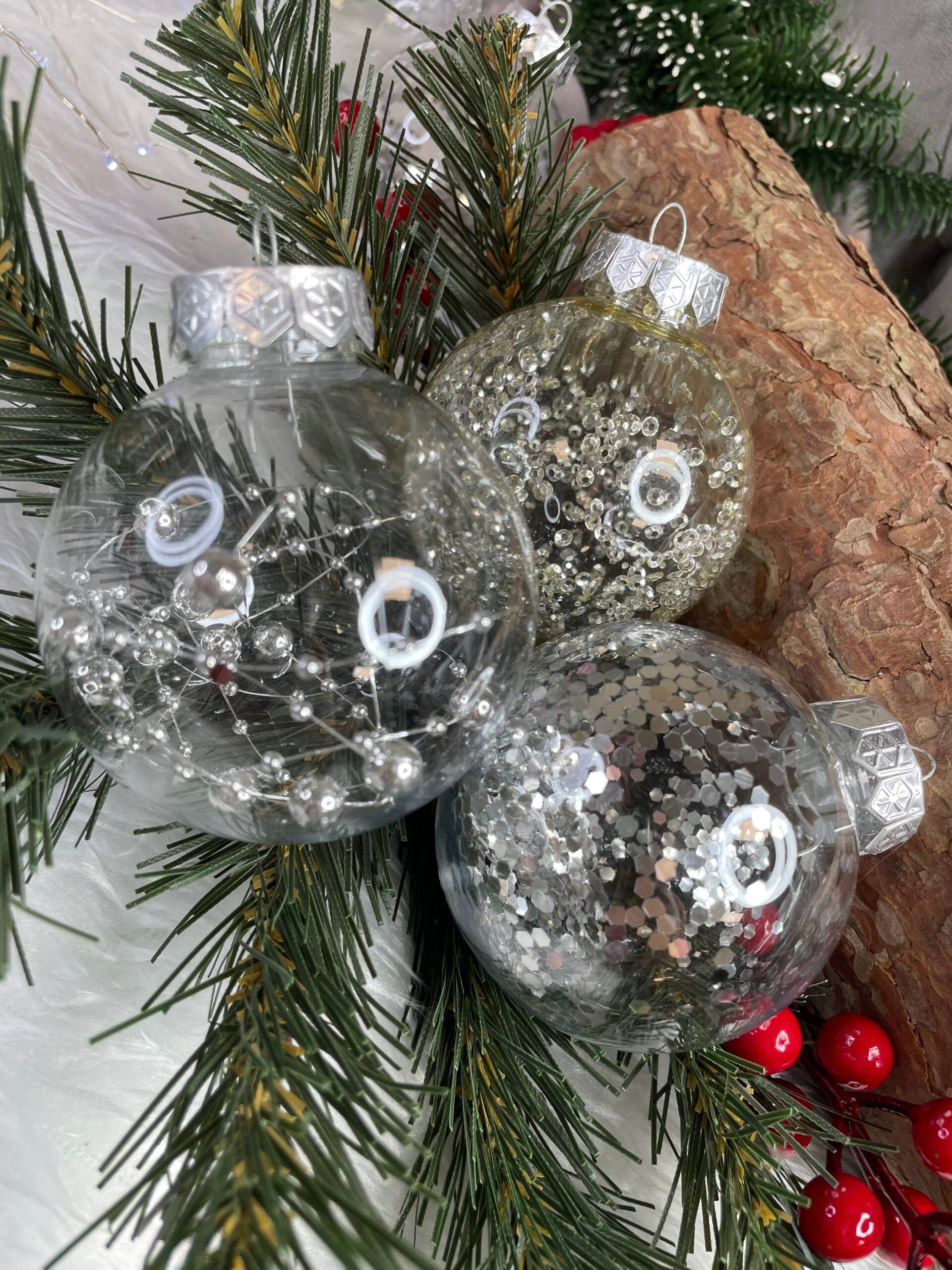 Set globuri de Craciun Inedit, 30 bucati, 7cm, transparente si argintiu