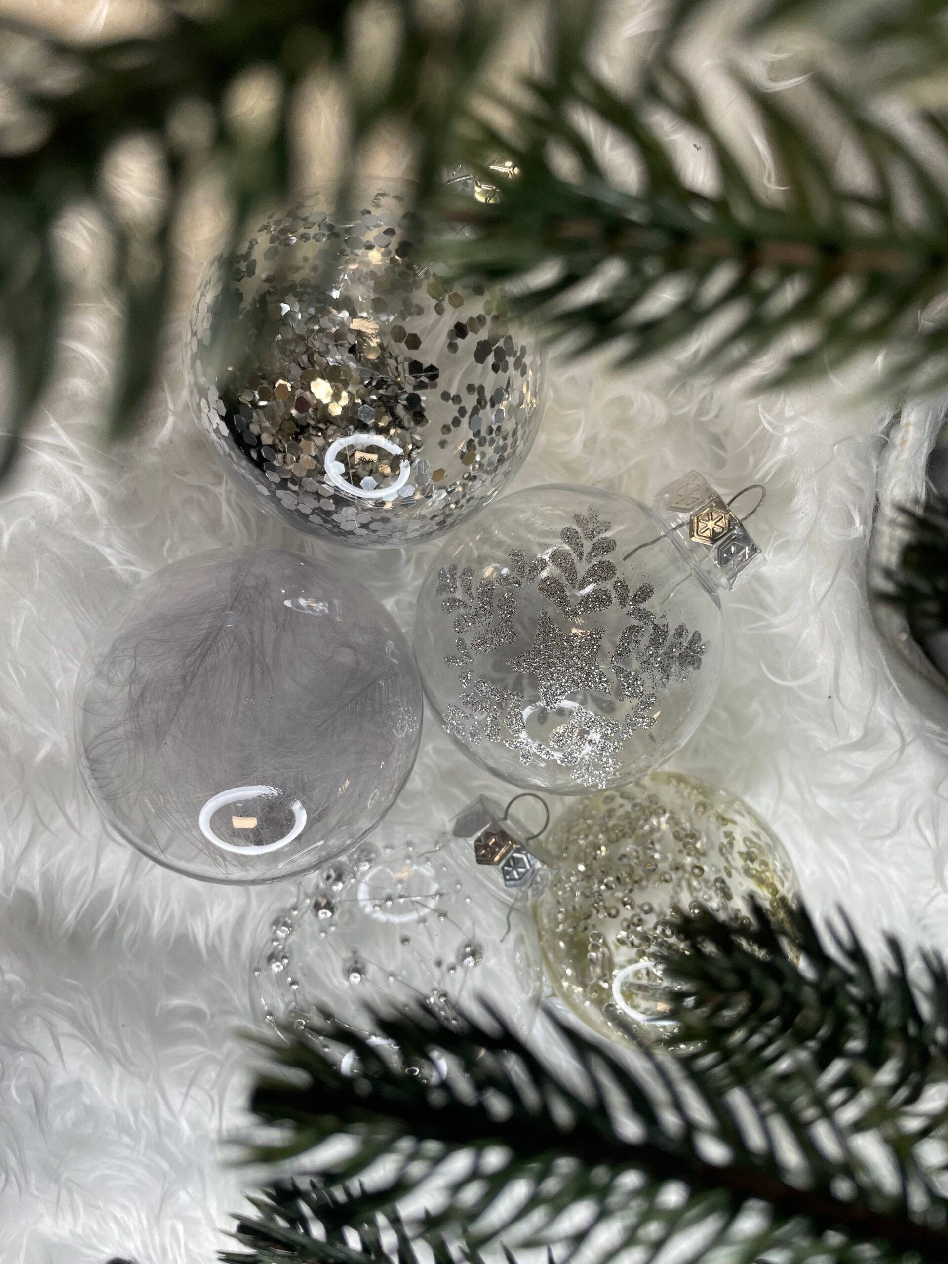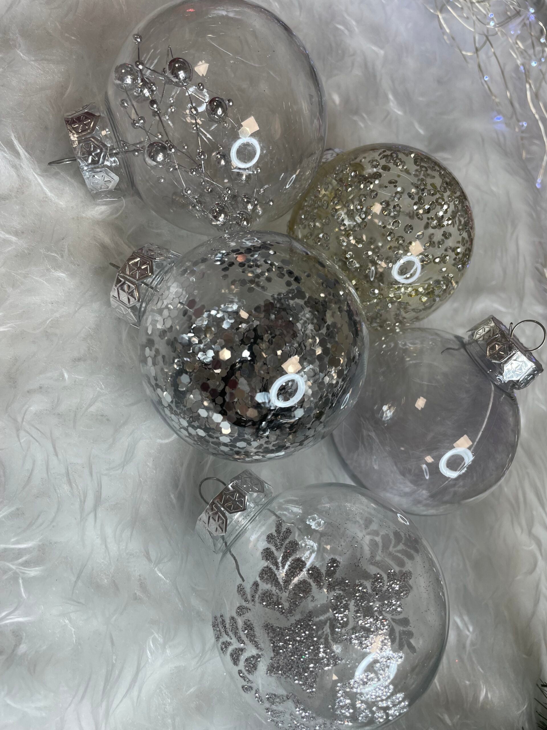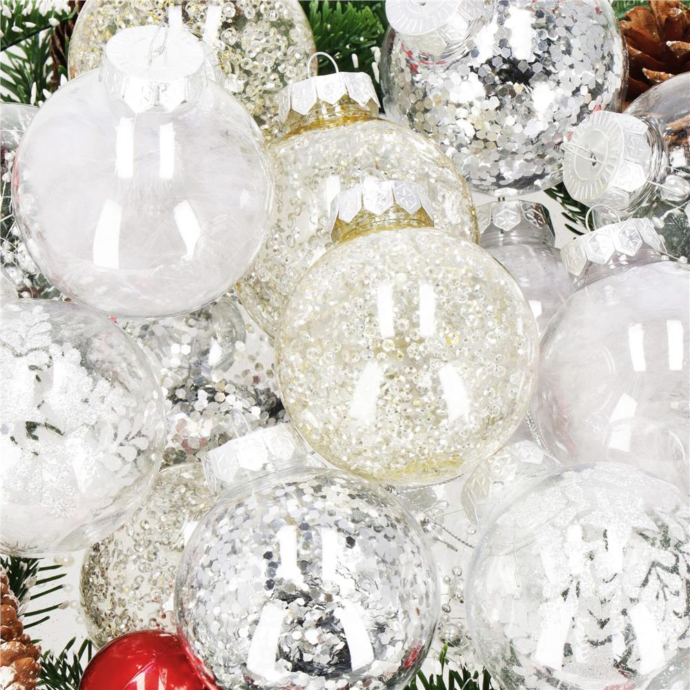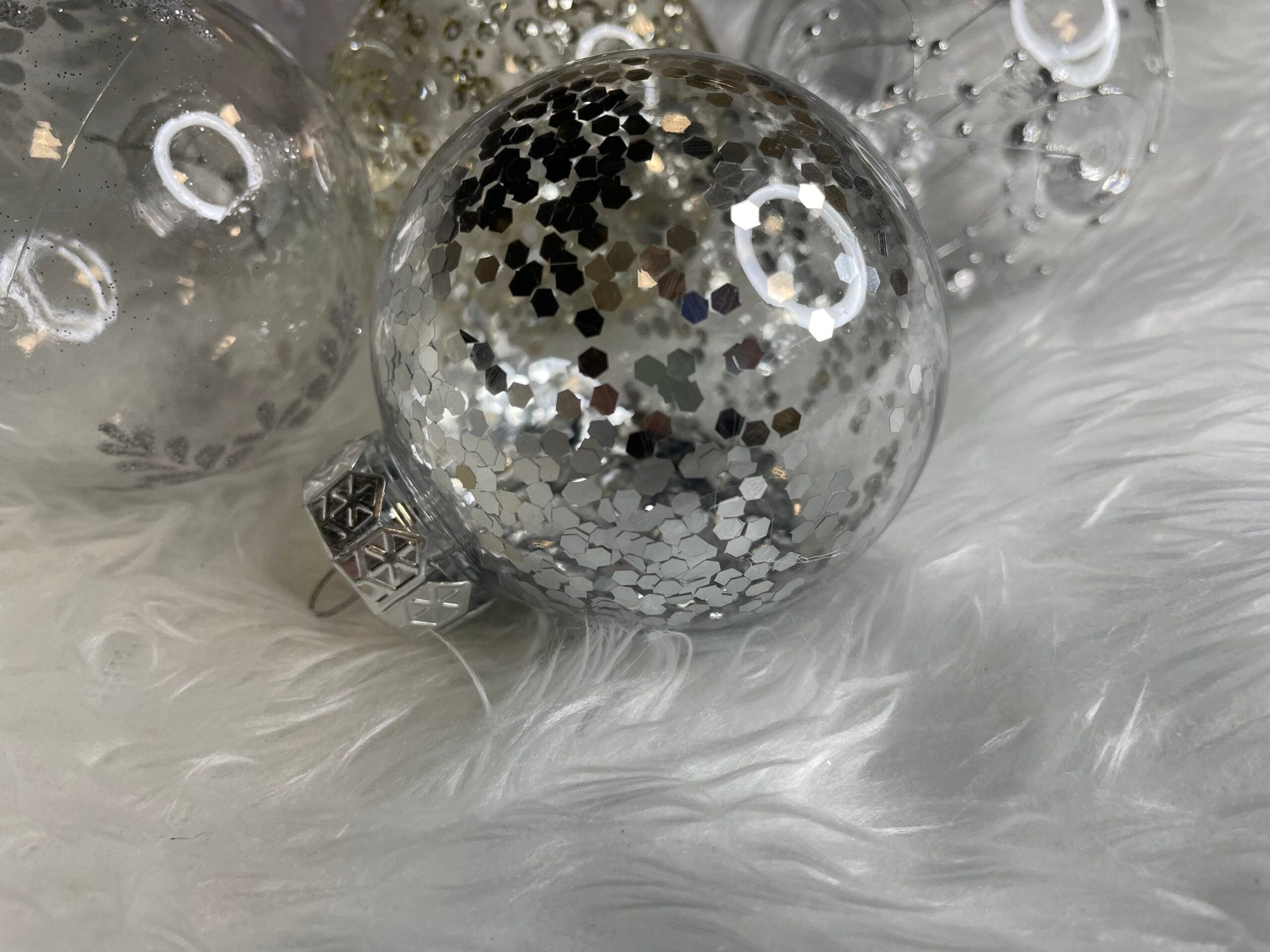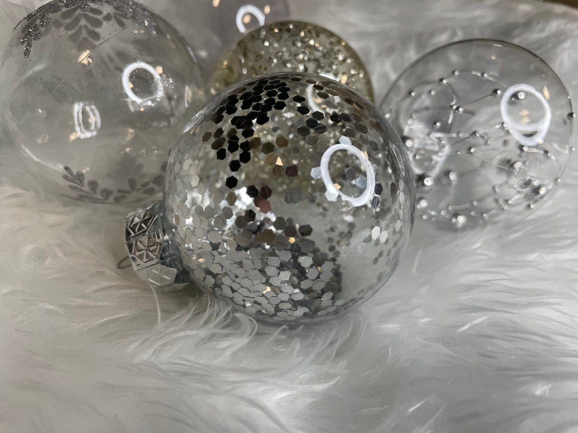 Set globuri de Craciun Inedit, 30 bucati, 7cm, transparente si argintiu