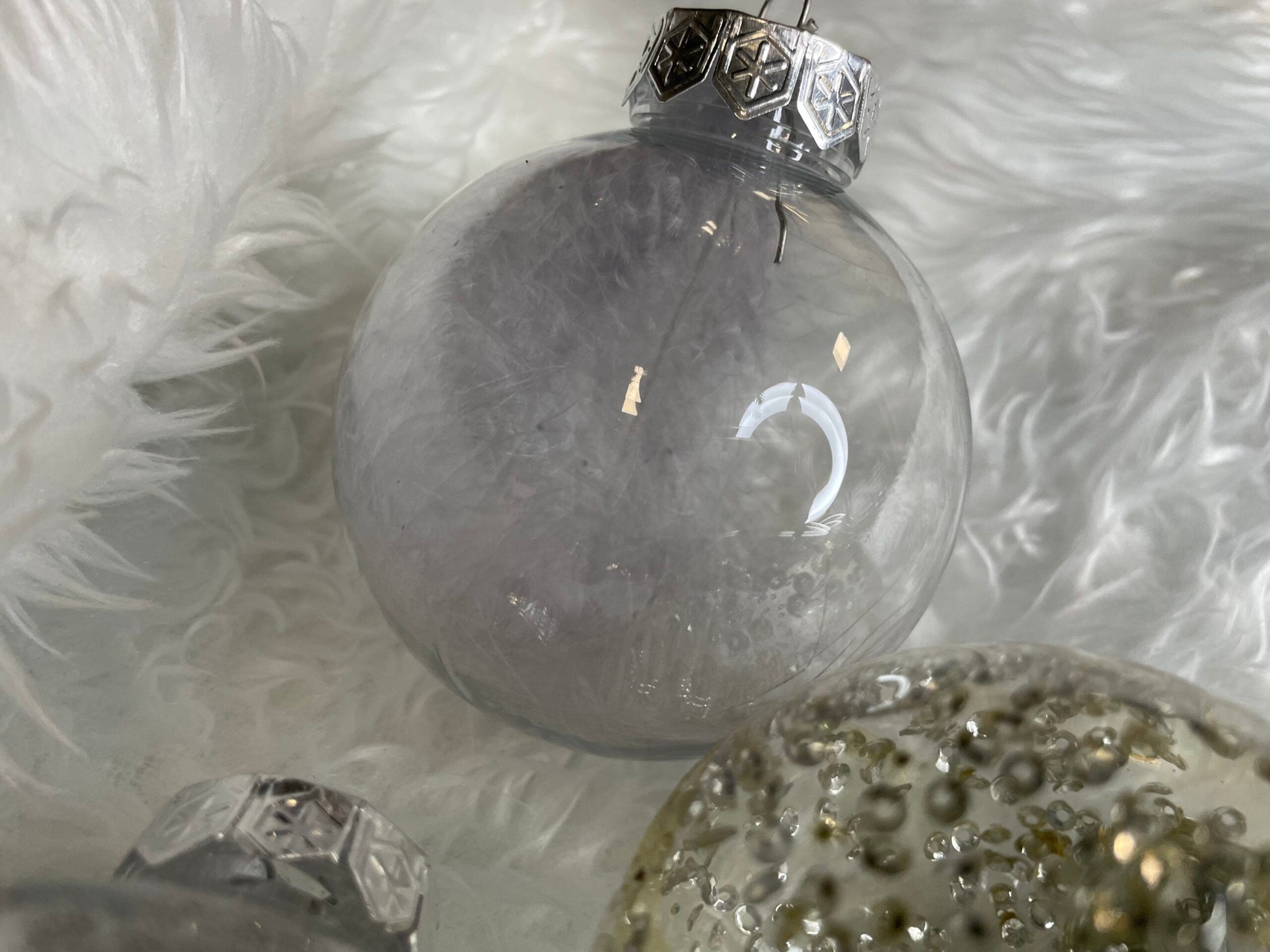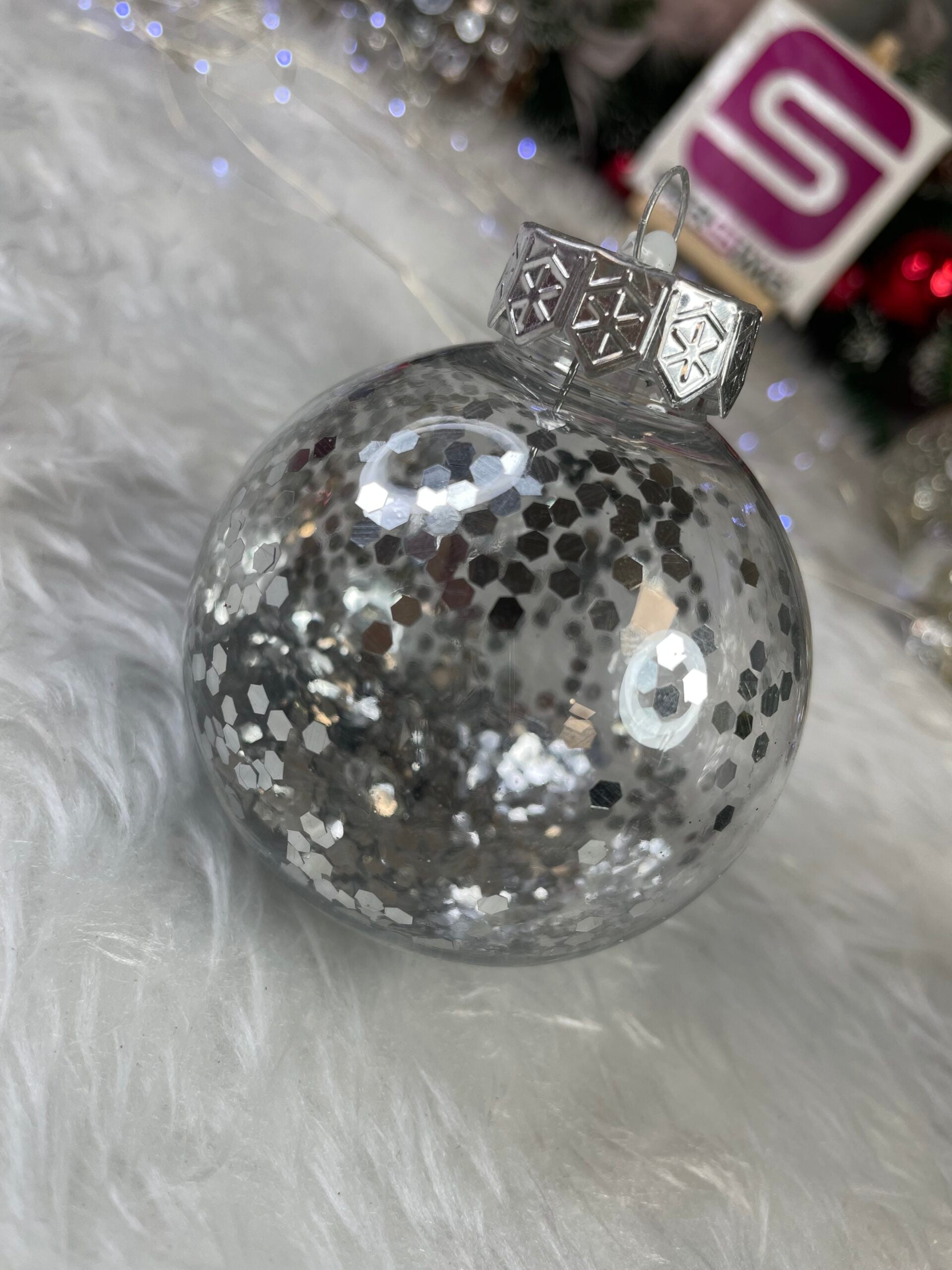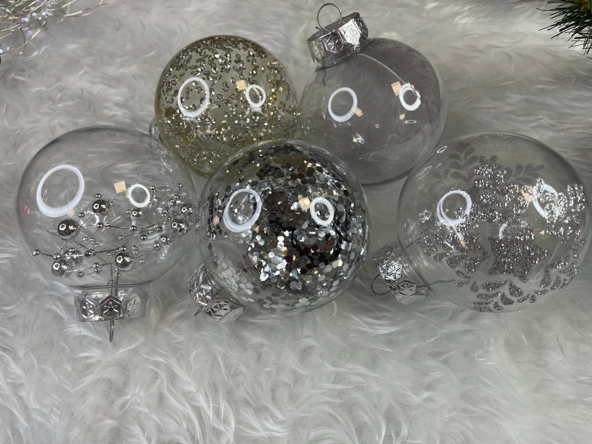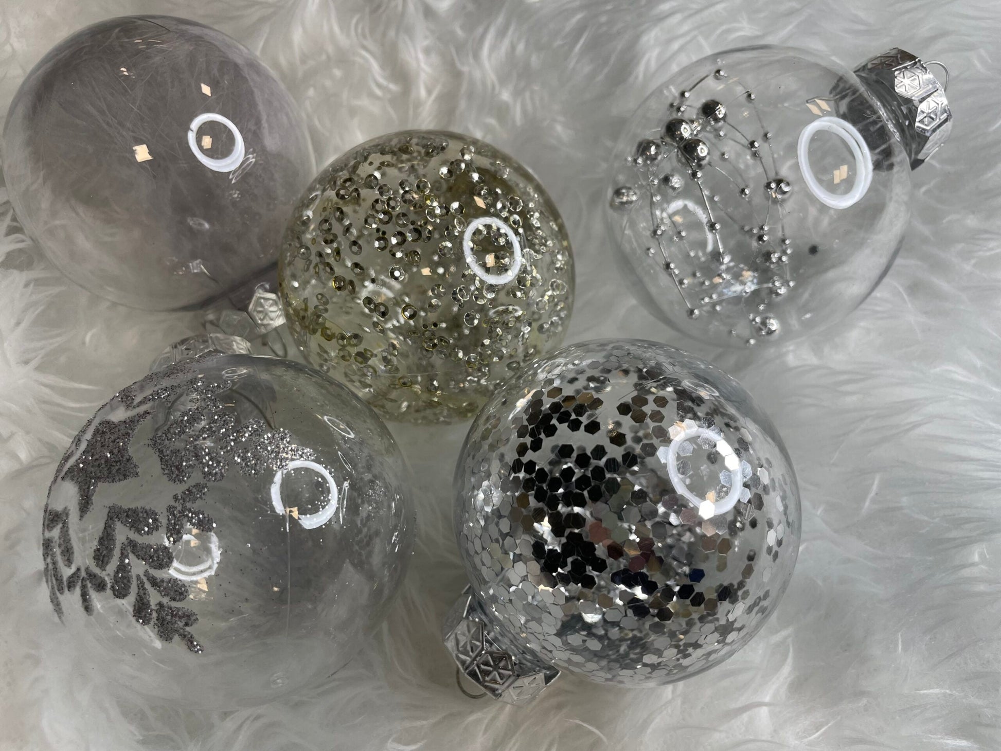 Set globuri de Craciun Inedit, 30 bucati, 7cm, transparente si argintiu