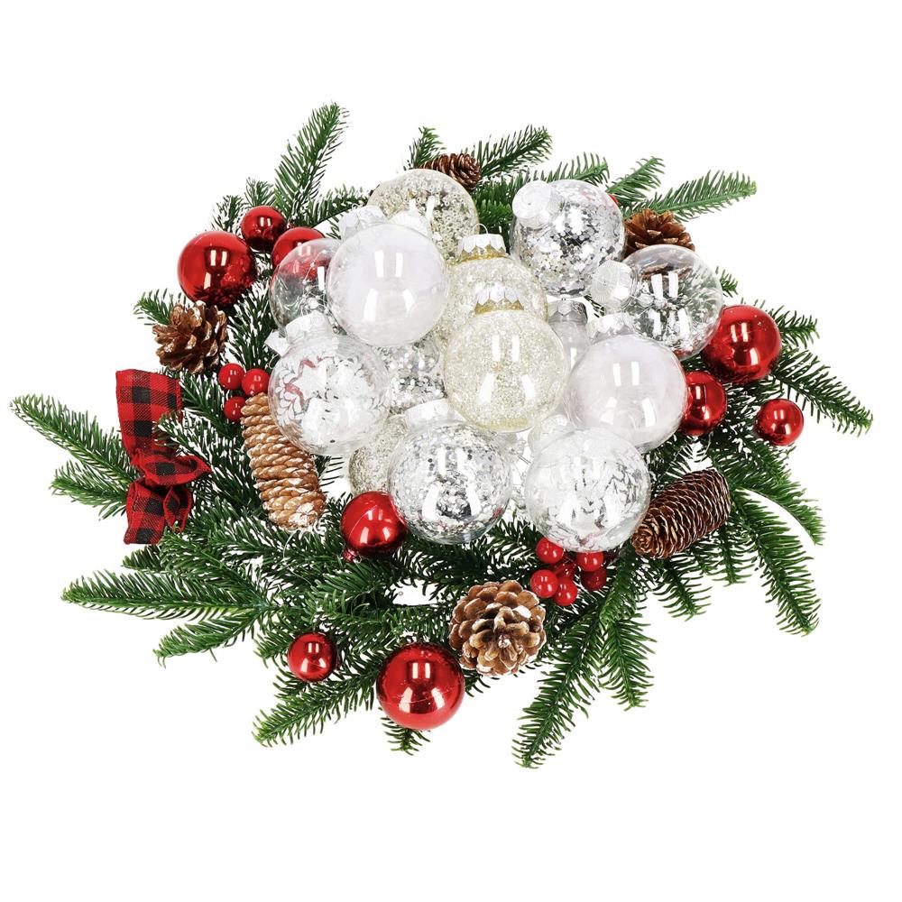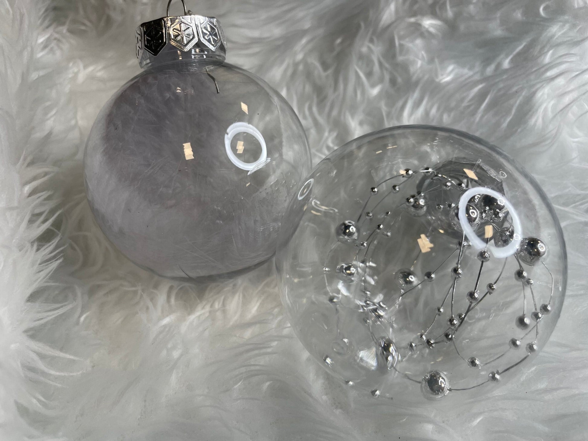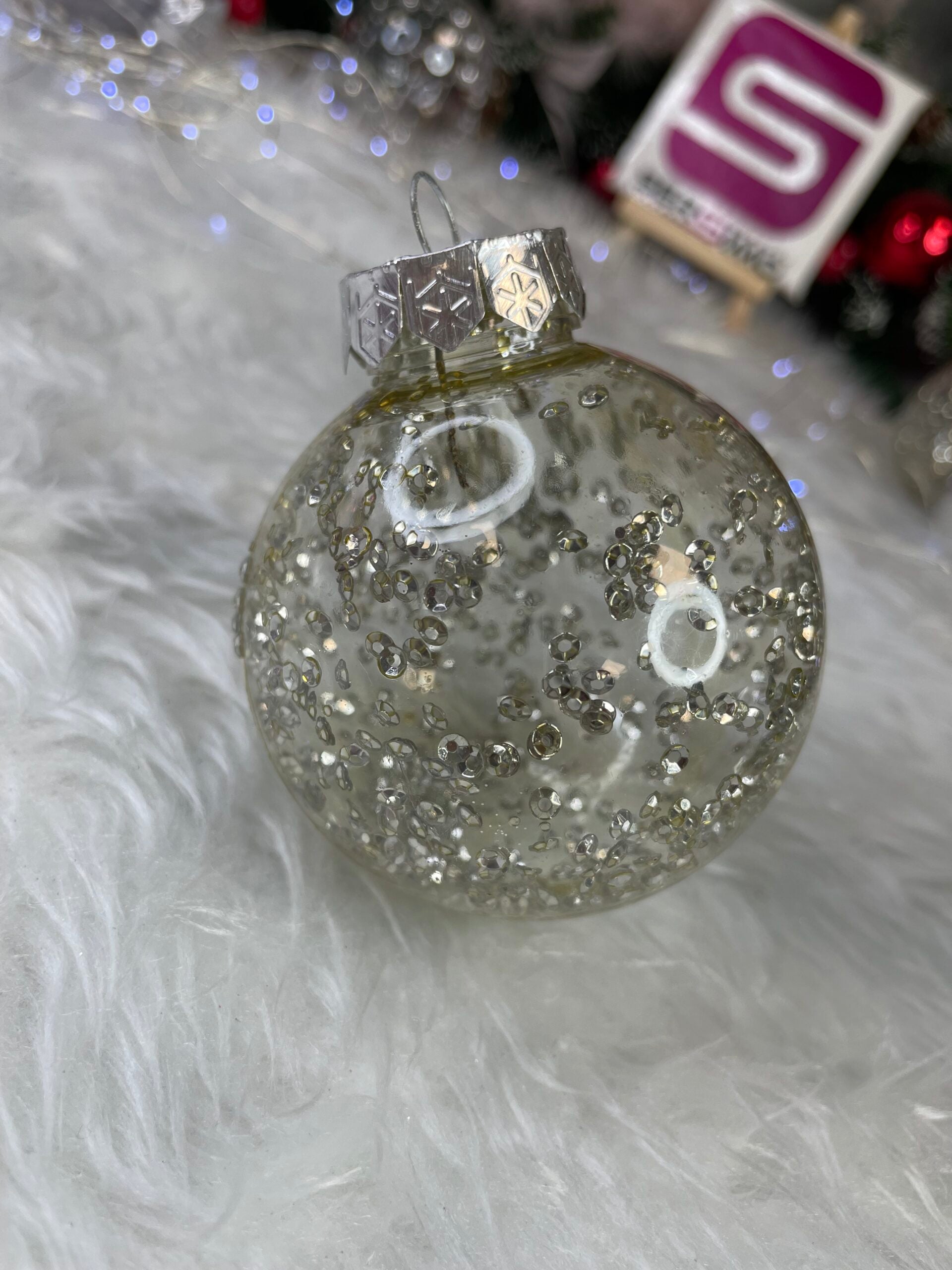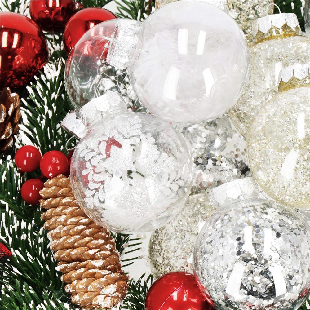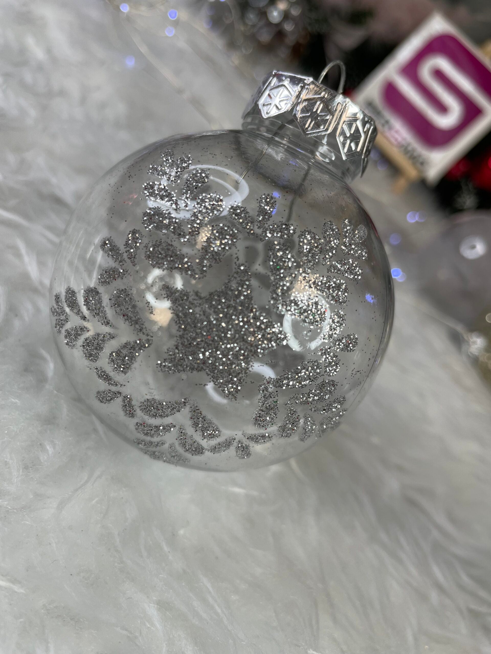Set globuri de Craciun Inedit, 30 bucati, 7cm, transparente si argintiu