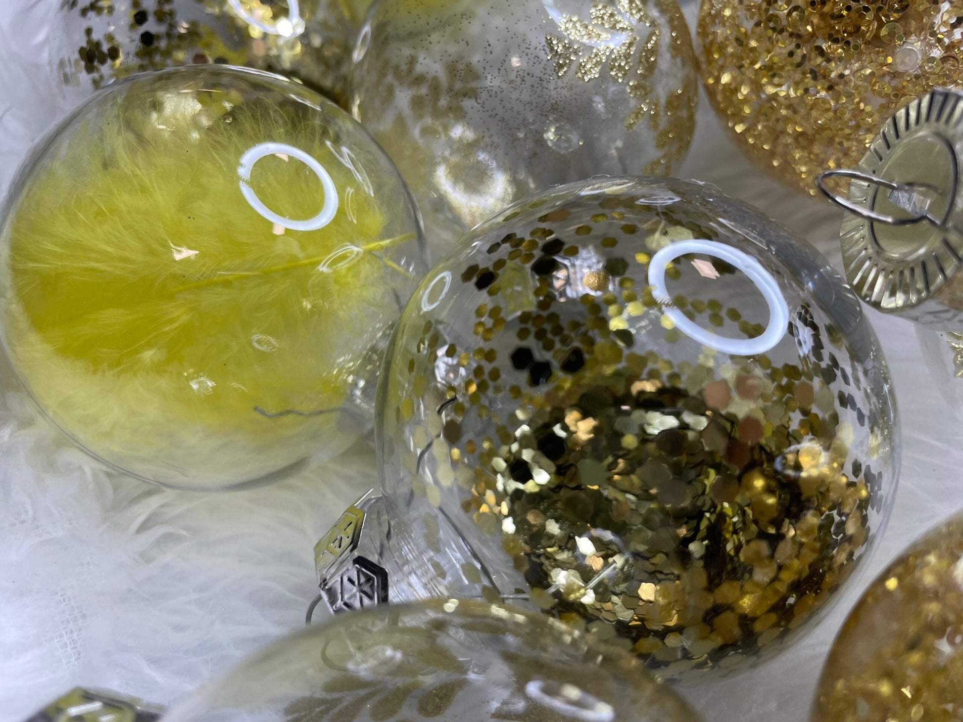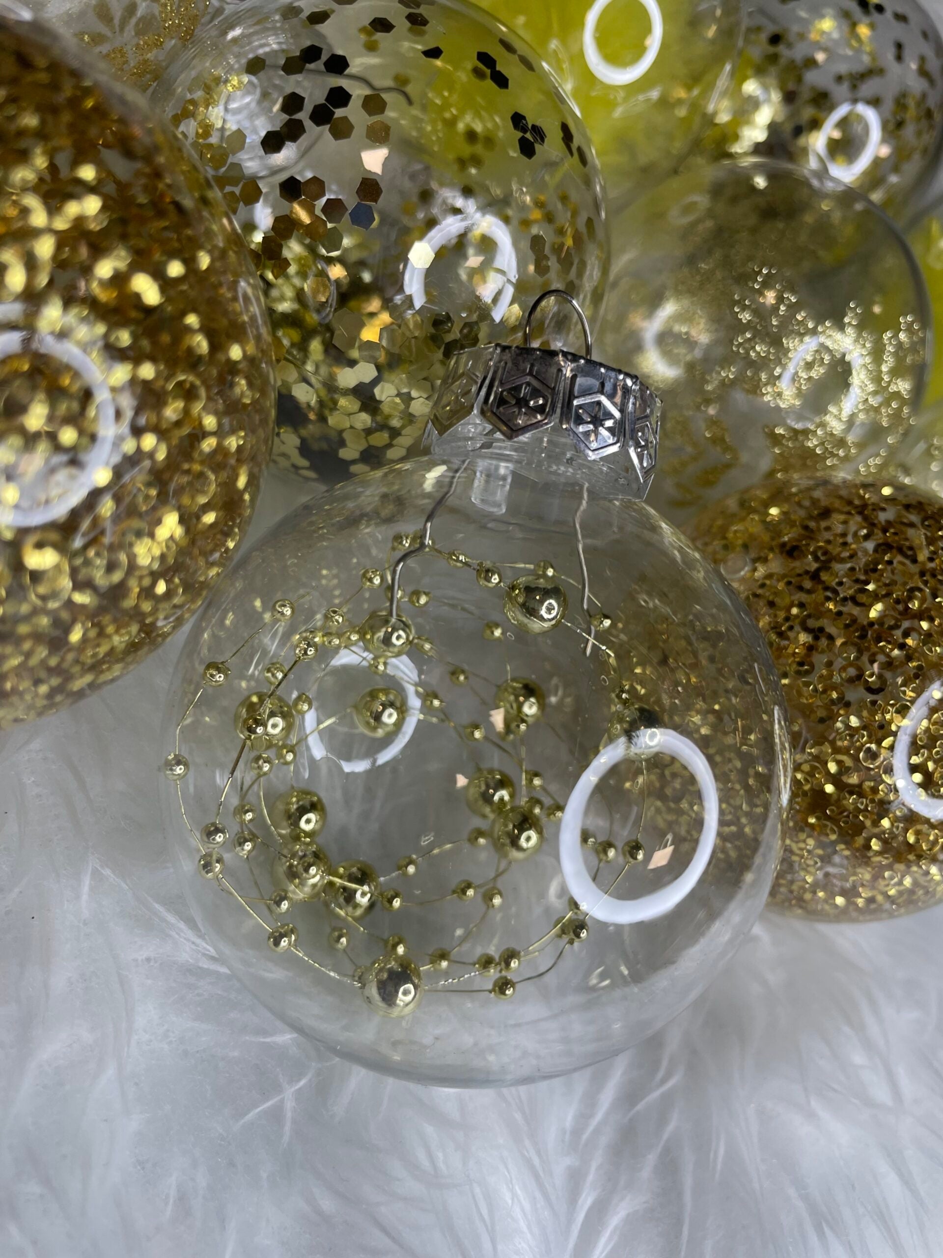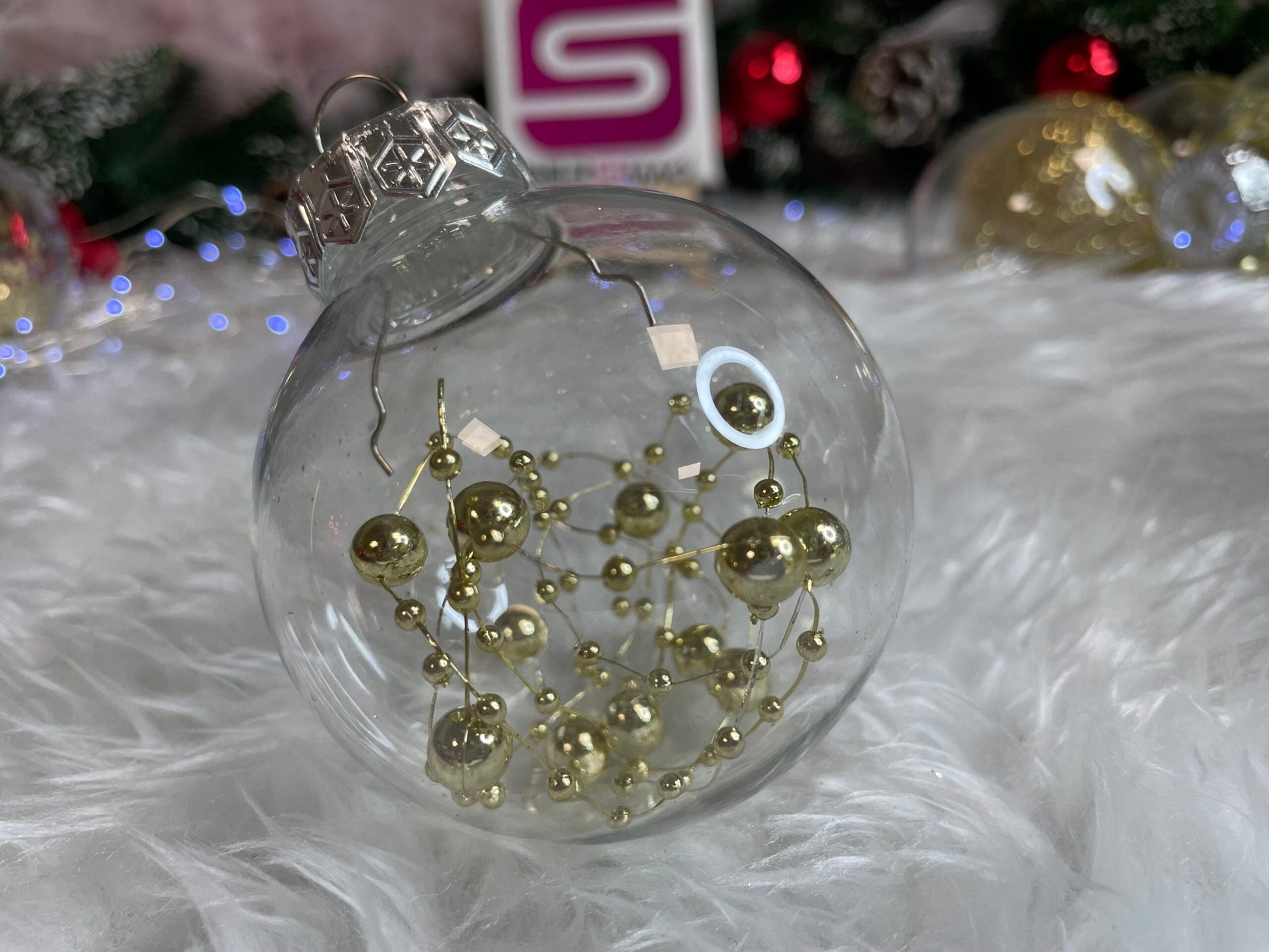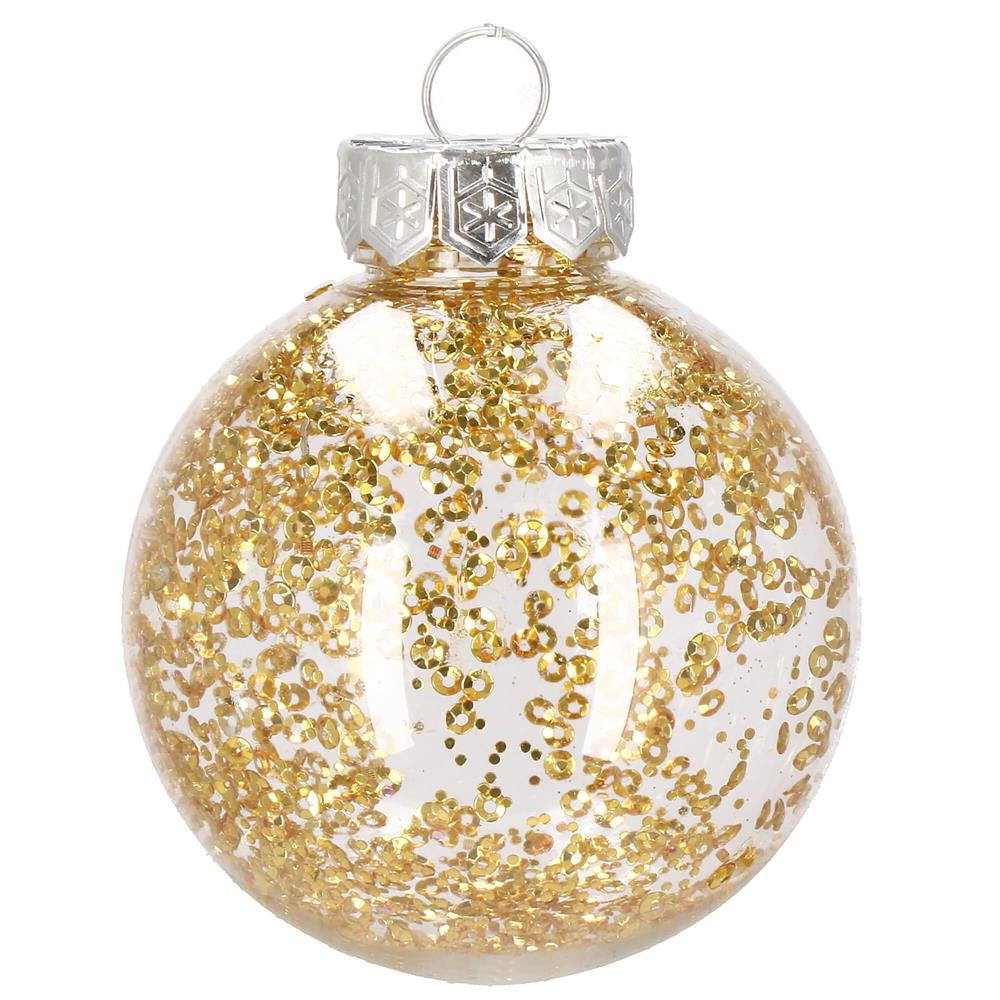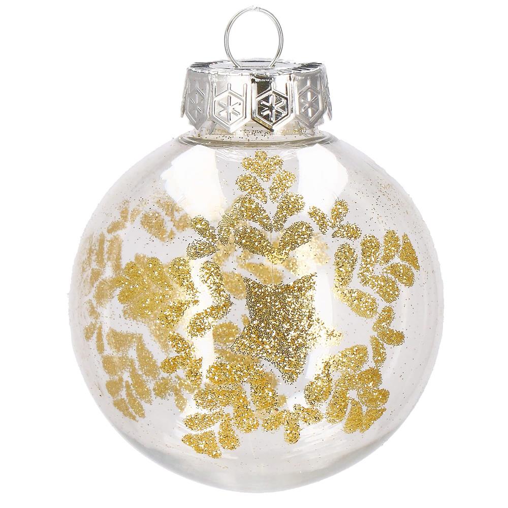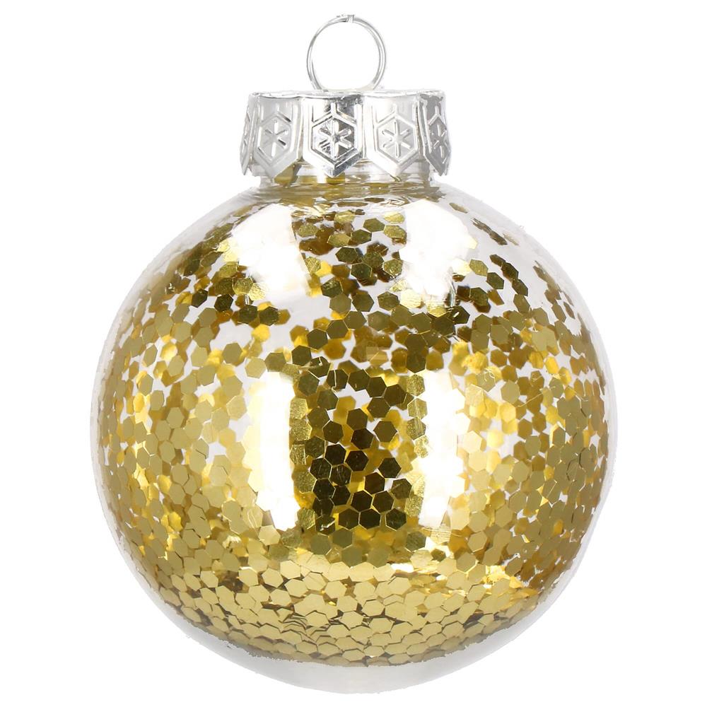 Set globuri de Craciun Inedit, 30 bucati, 7cm, transparente si auriu