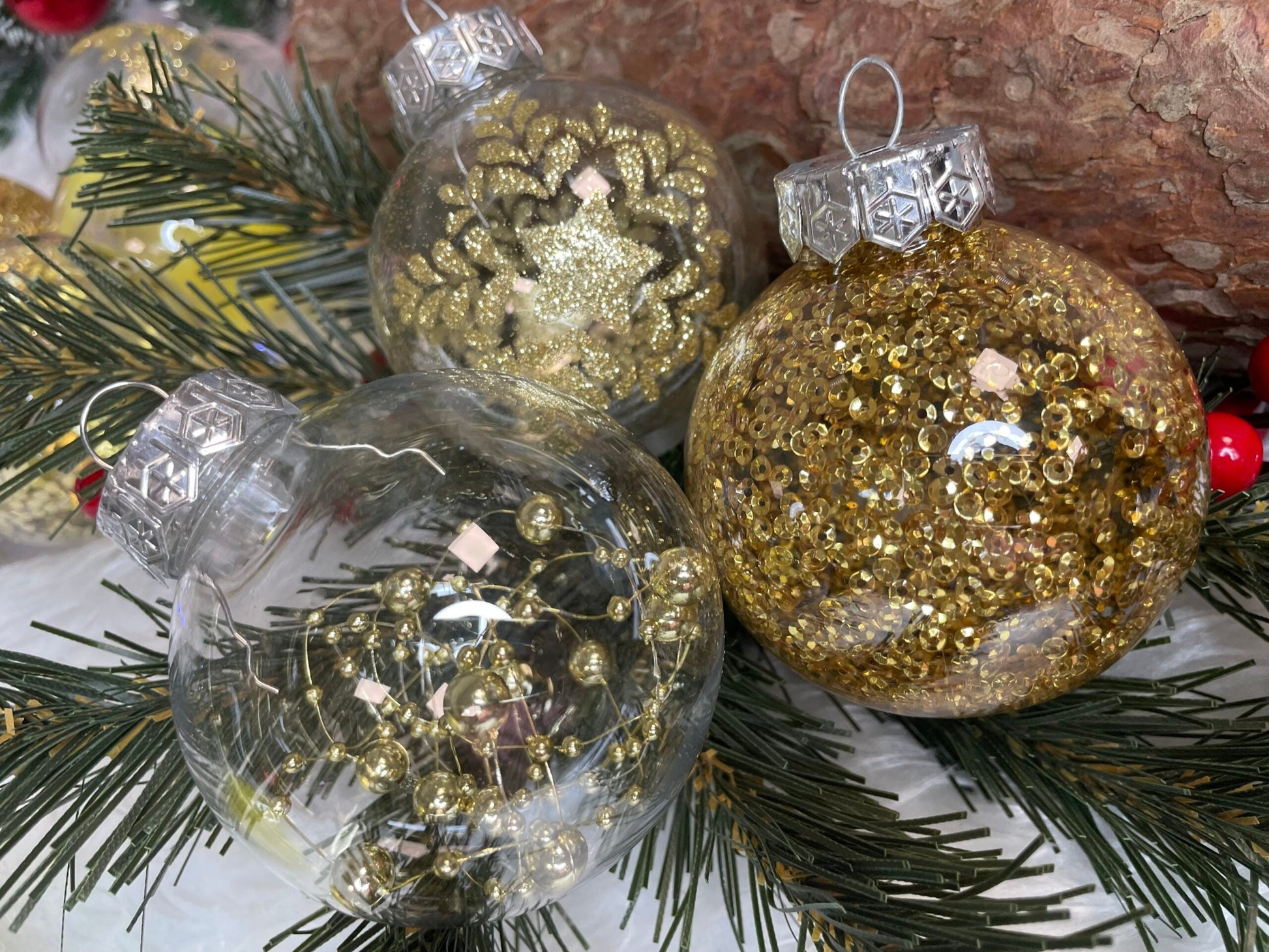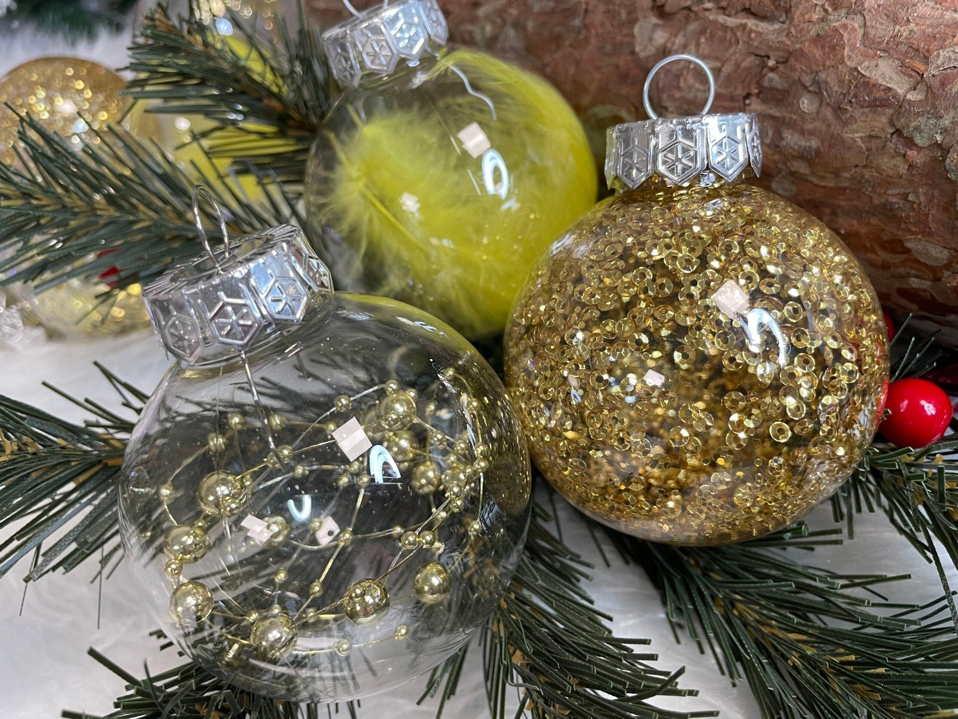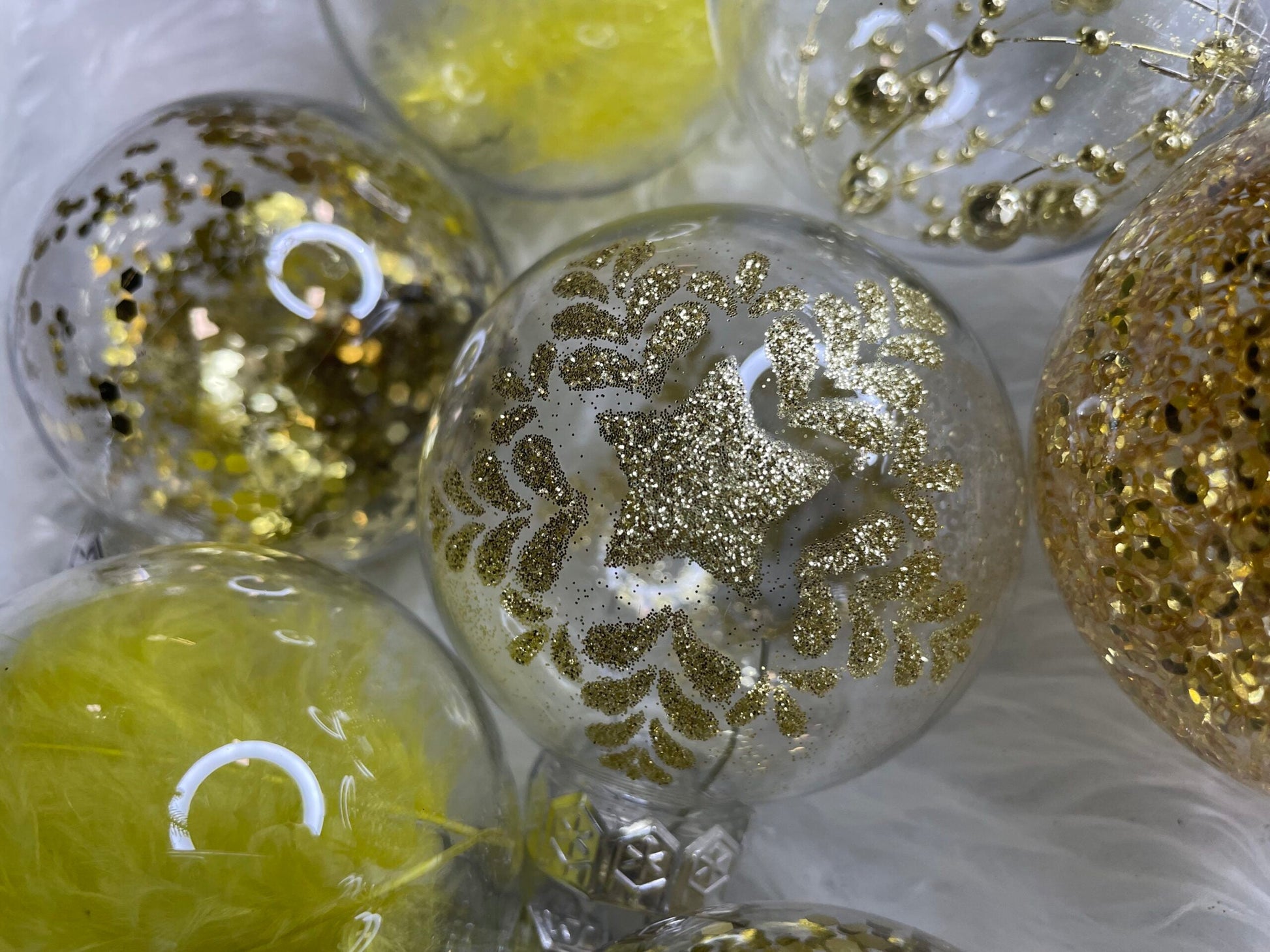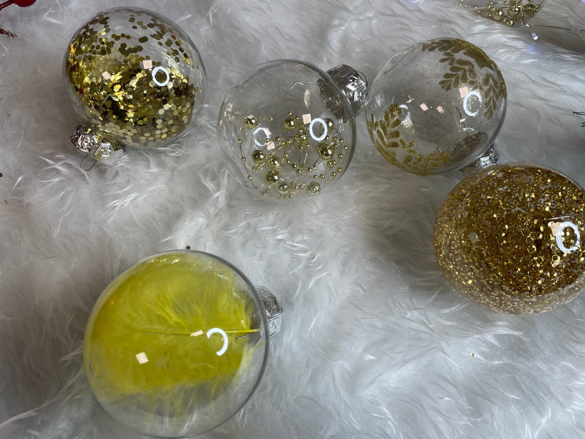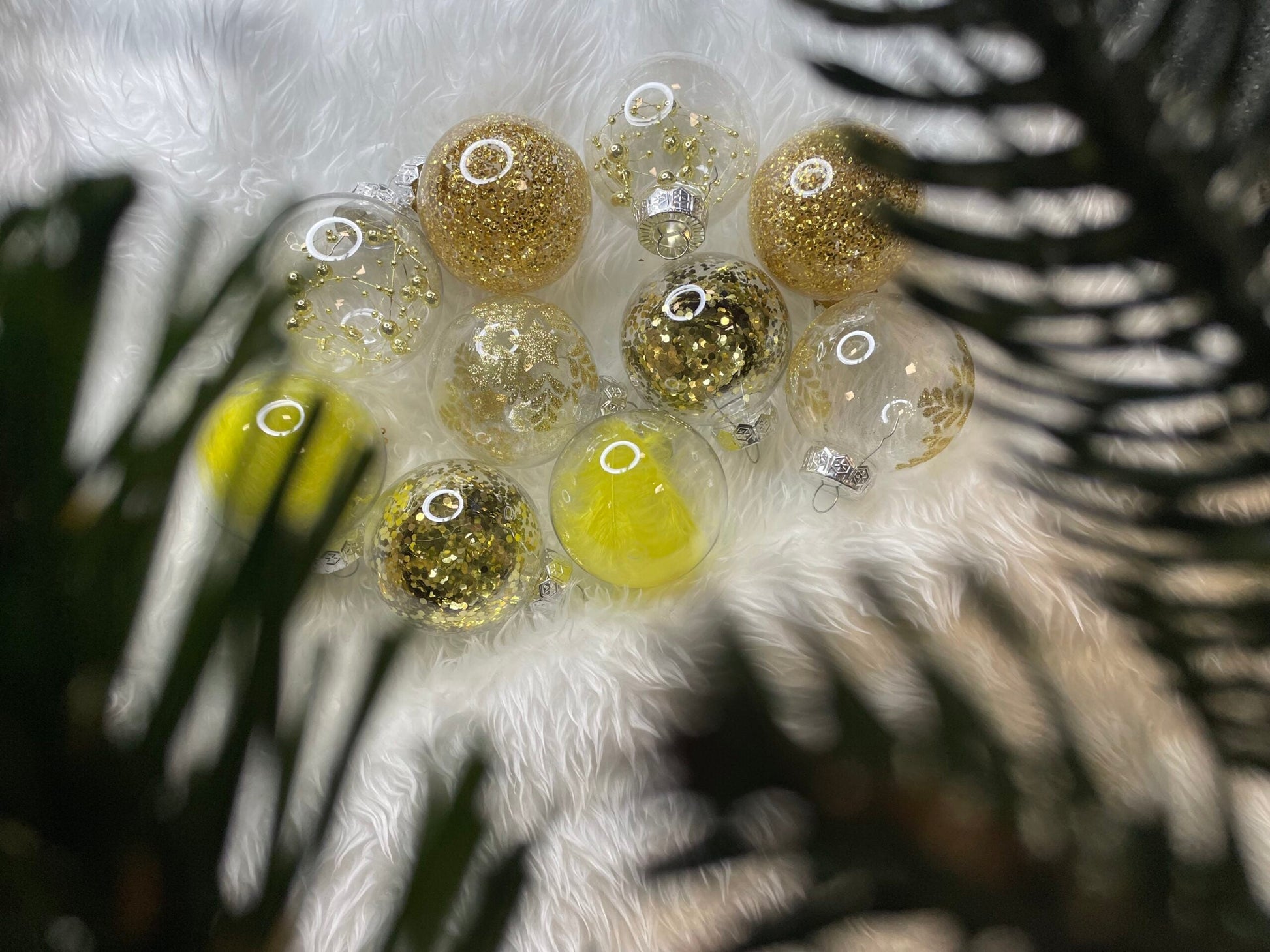 Set globuri de Craciun Inedit, 30 bucati, 7cm, transparente si auriu
