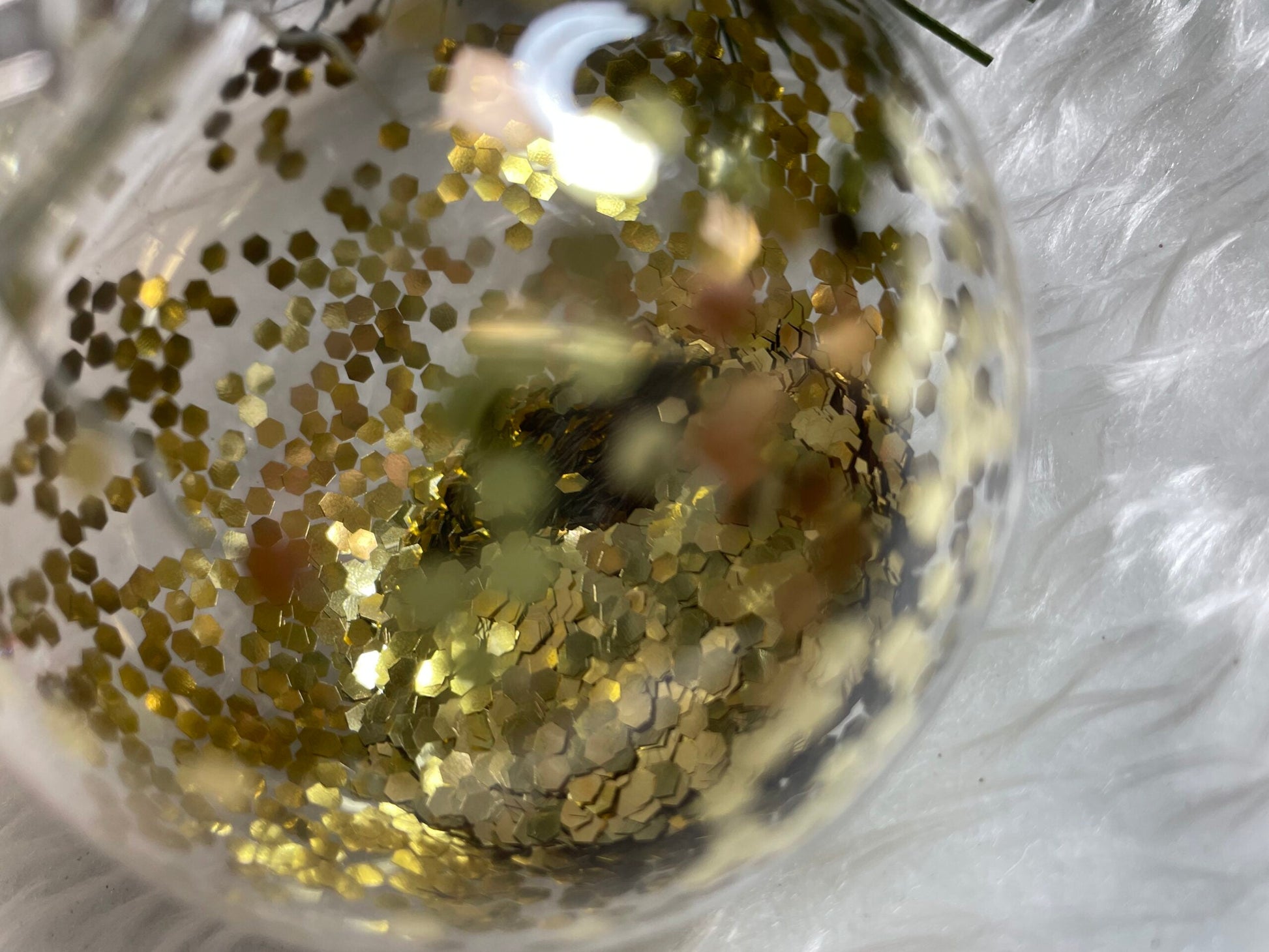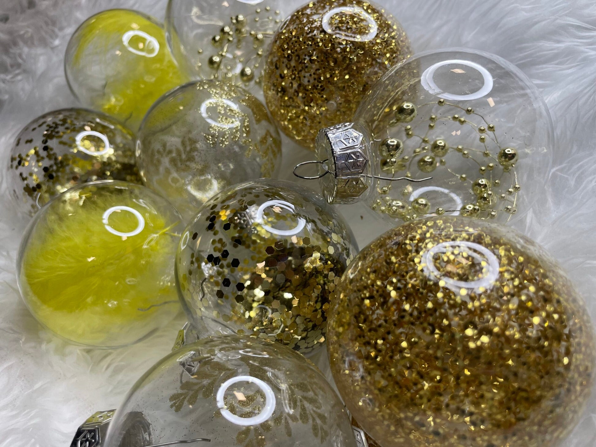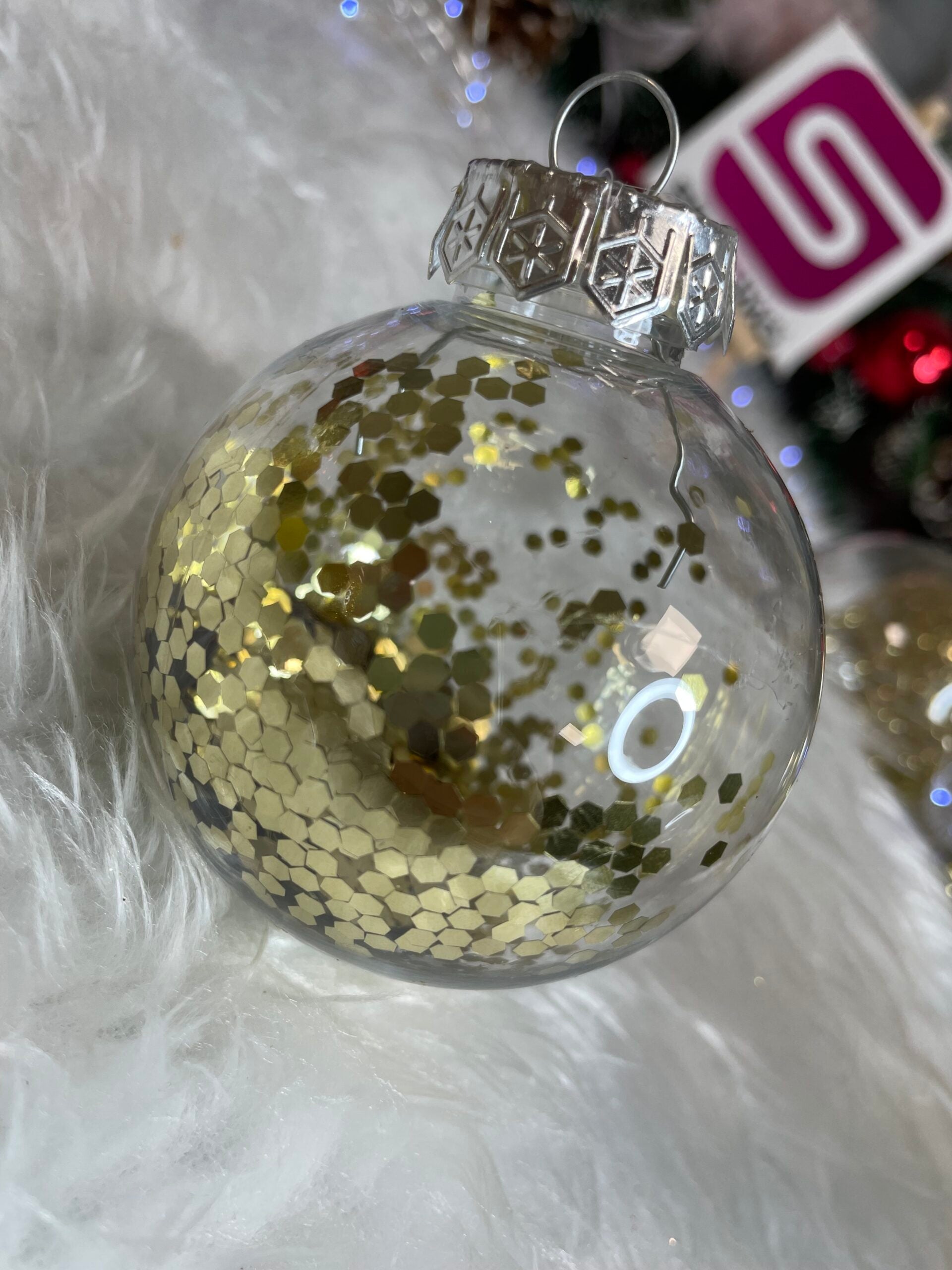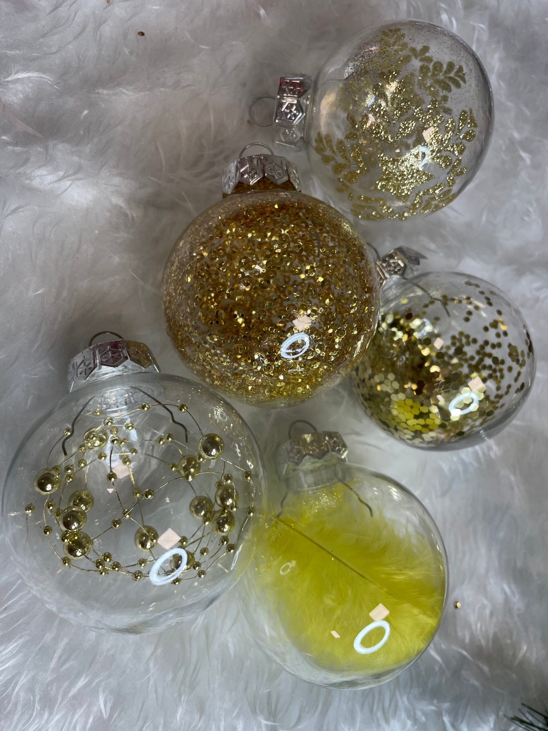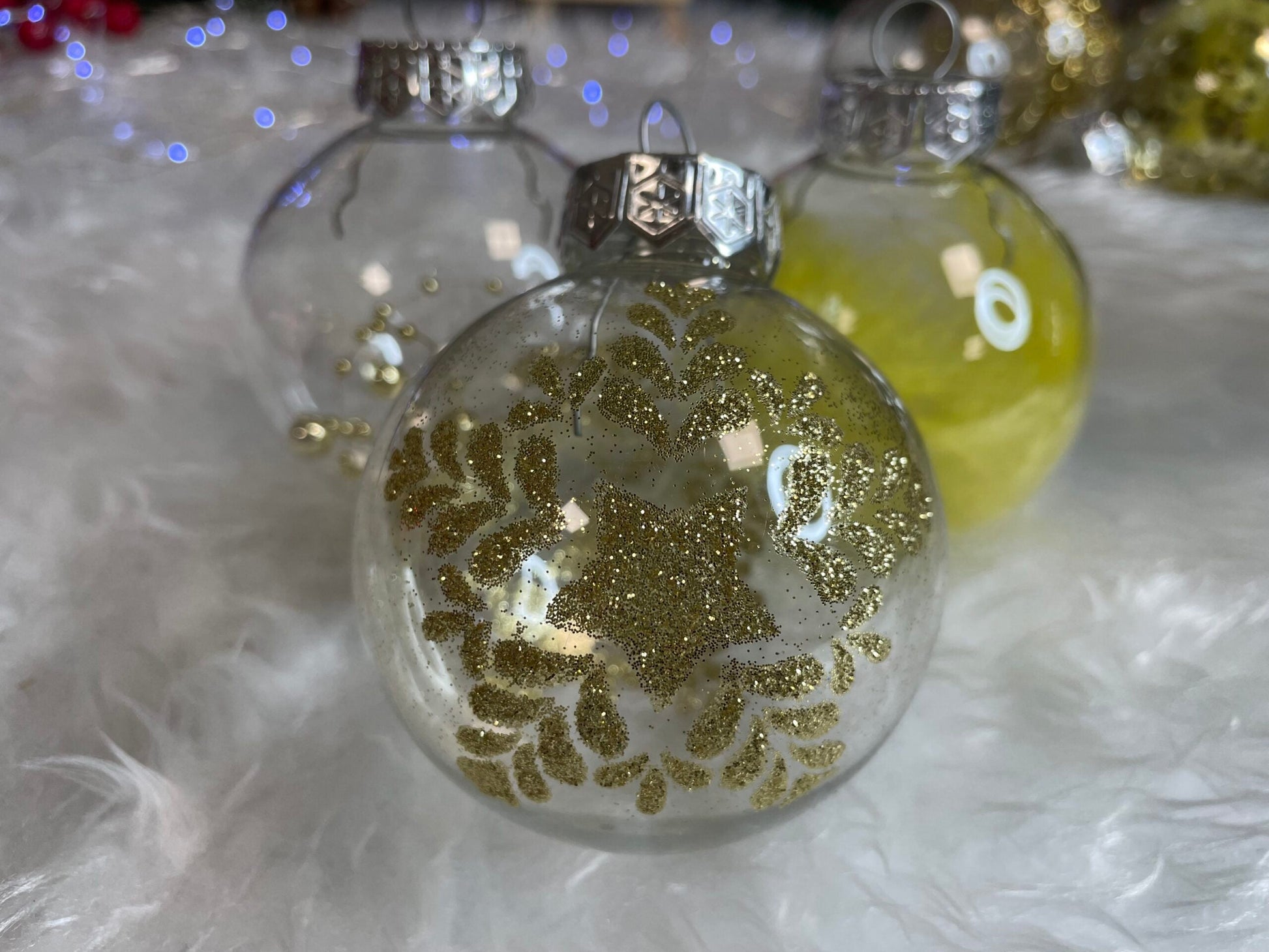 Set globuri de Craciun Inedit, 30 bucati, 7cm, transparente si auriu