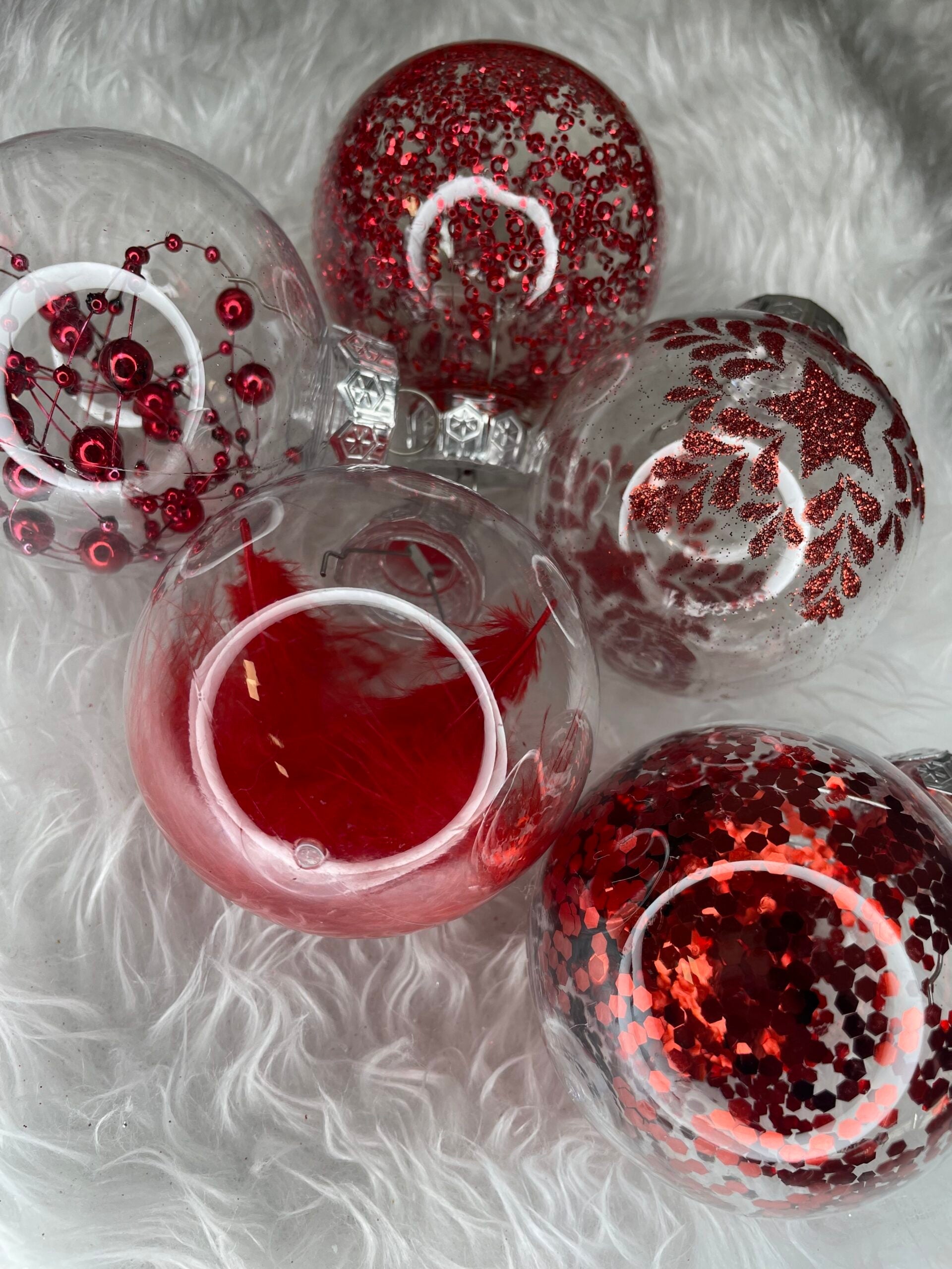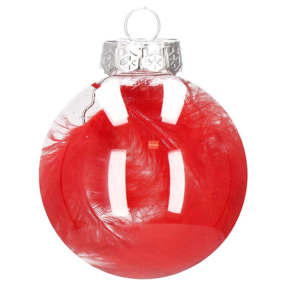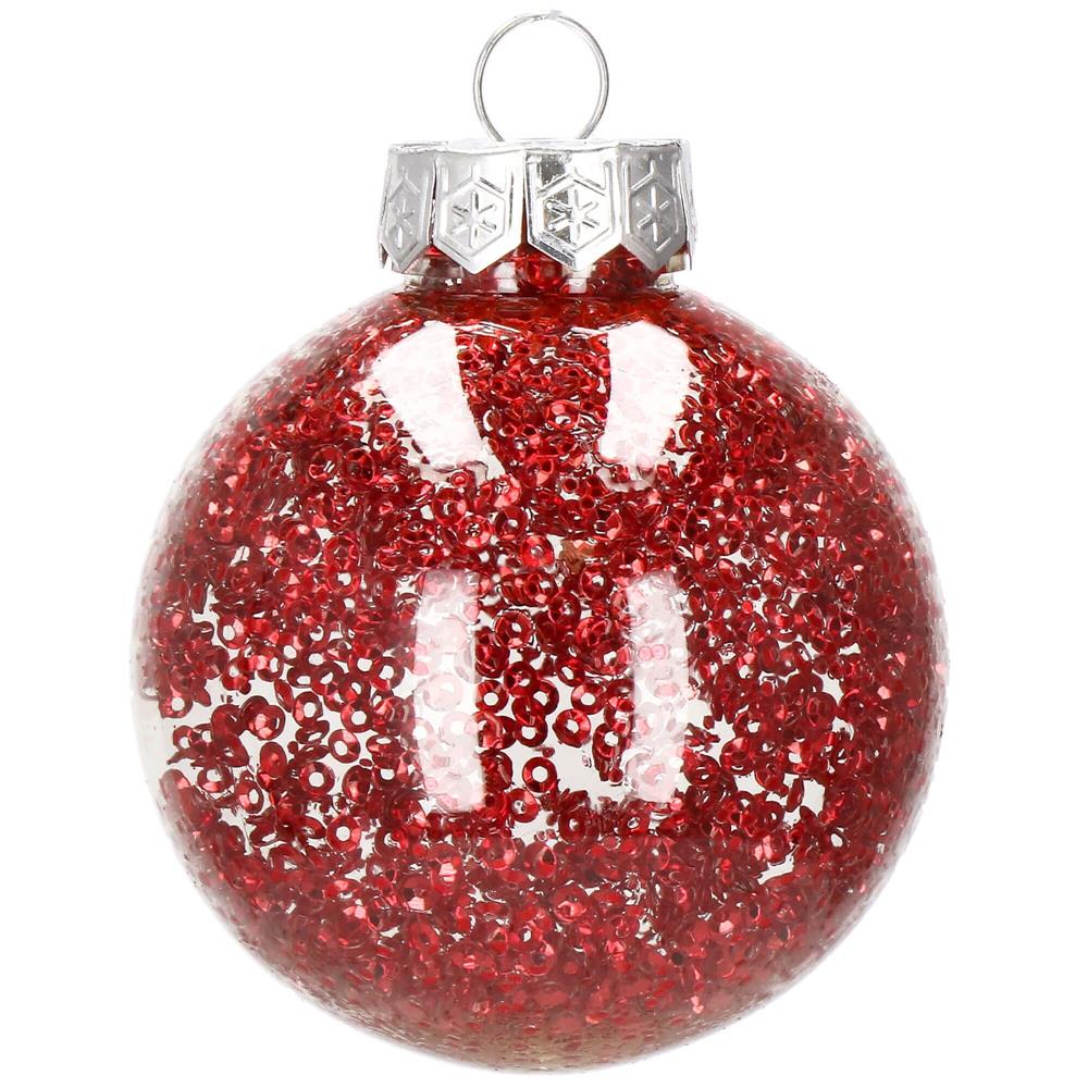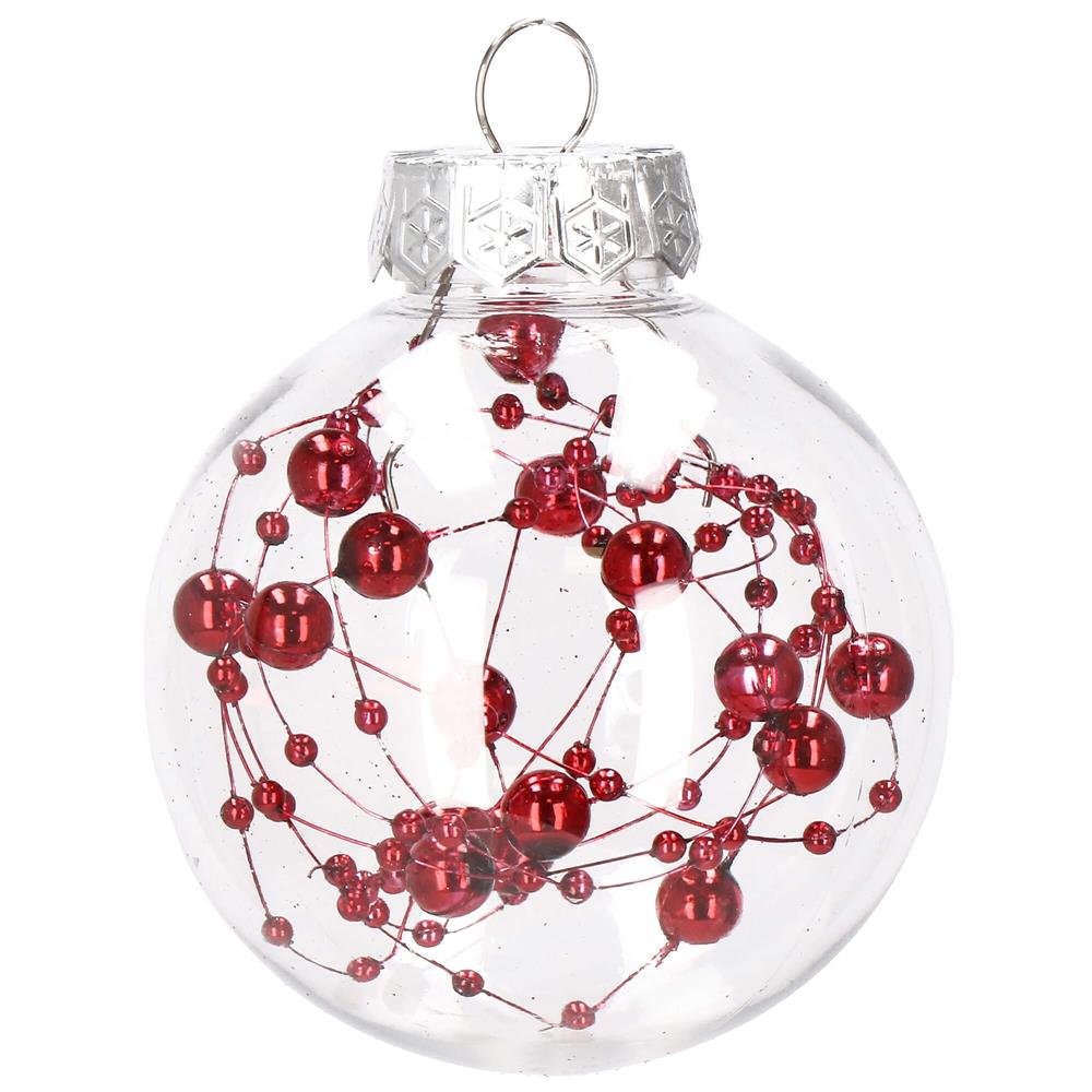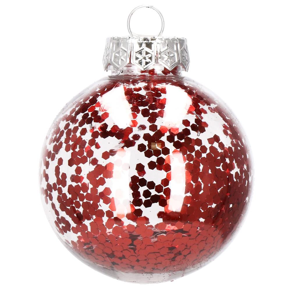 Set globuri de Craciun Inedit, 30 bucati, 7cm, transparente si rosu