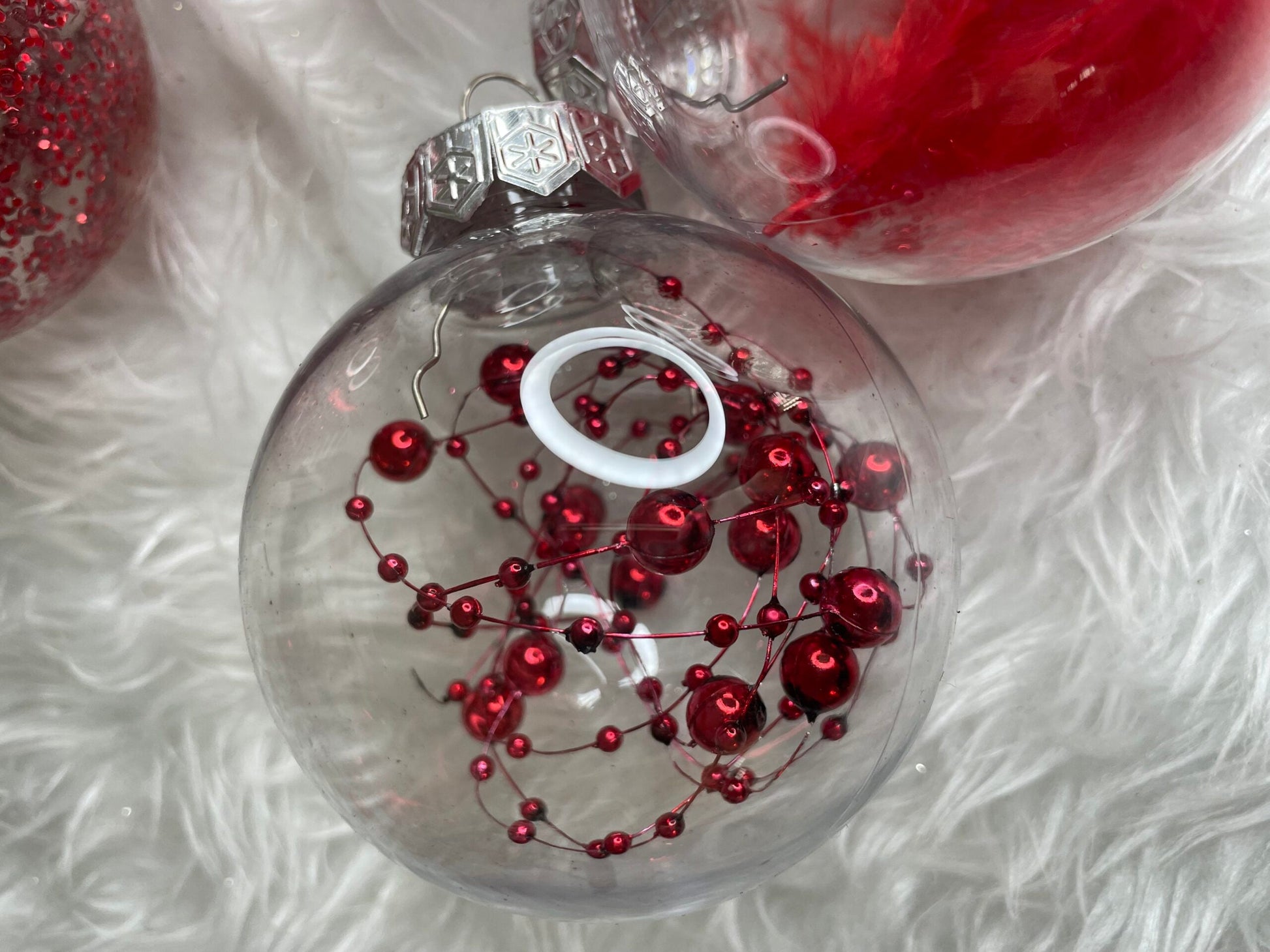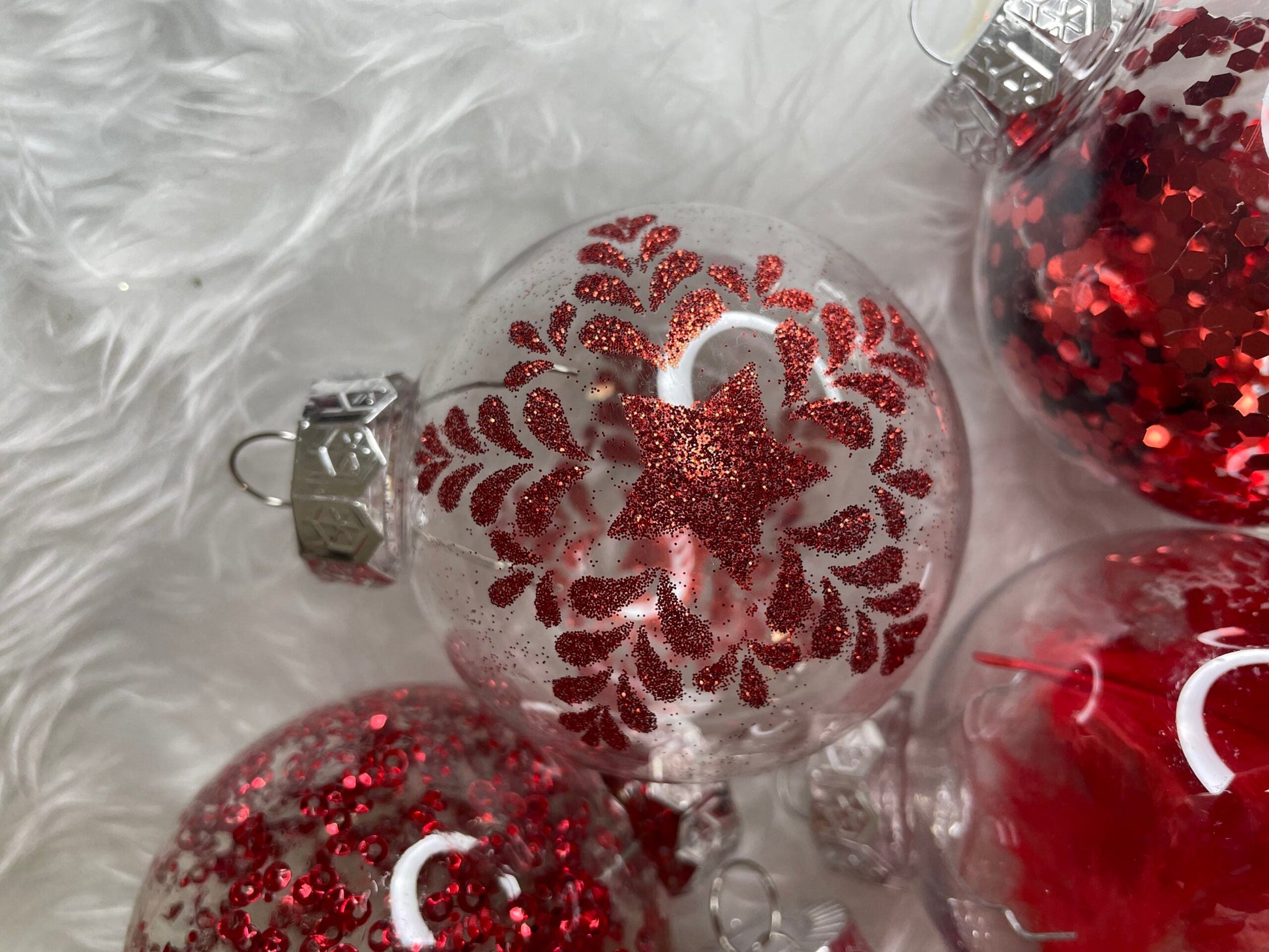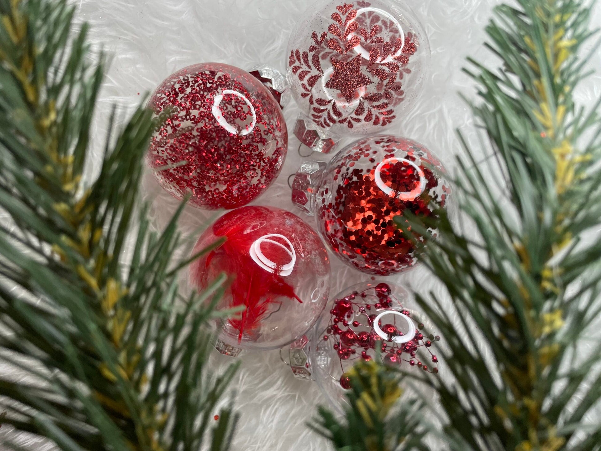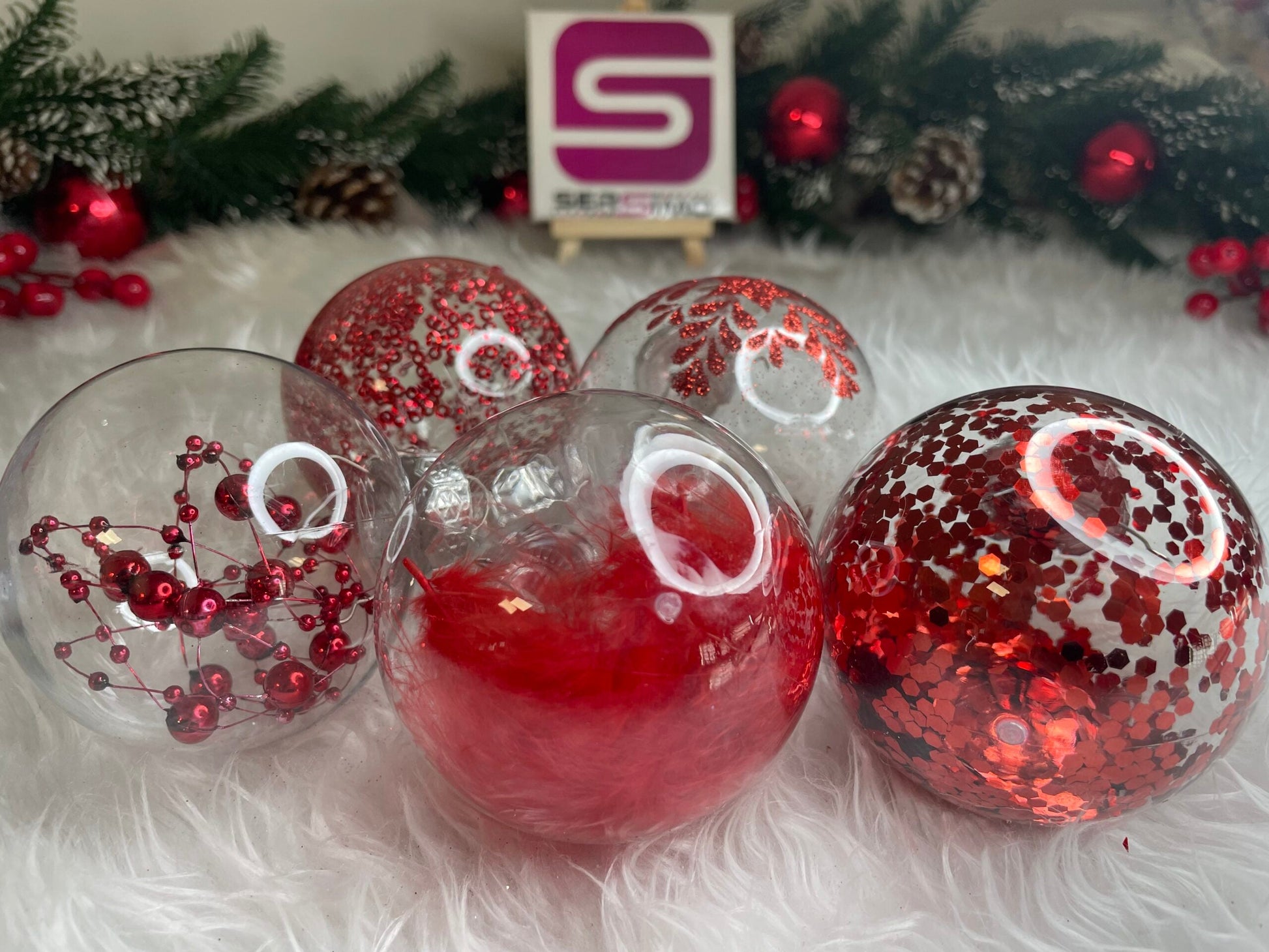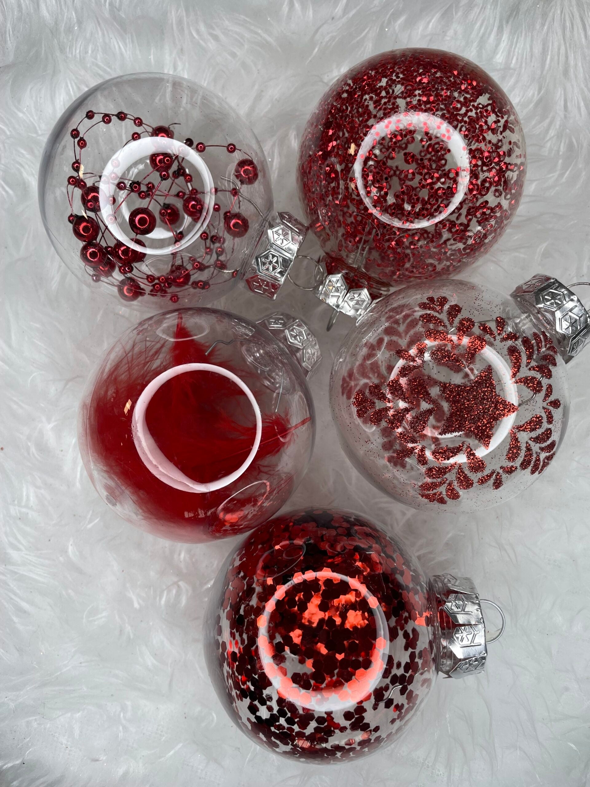 Set globuri de Craciun Inedit, 30 bucati, 7cm, transparente si rosu