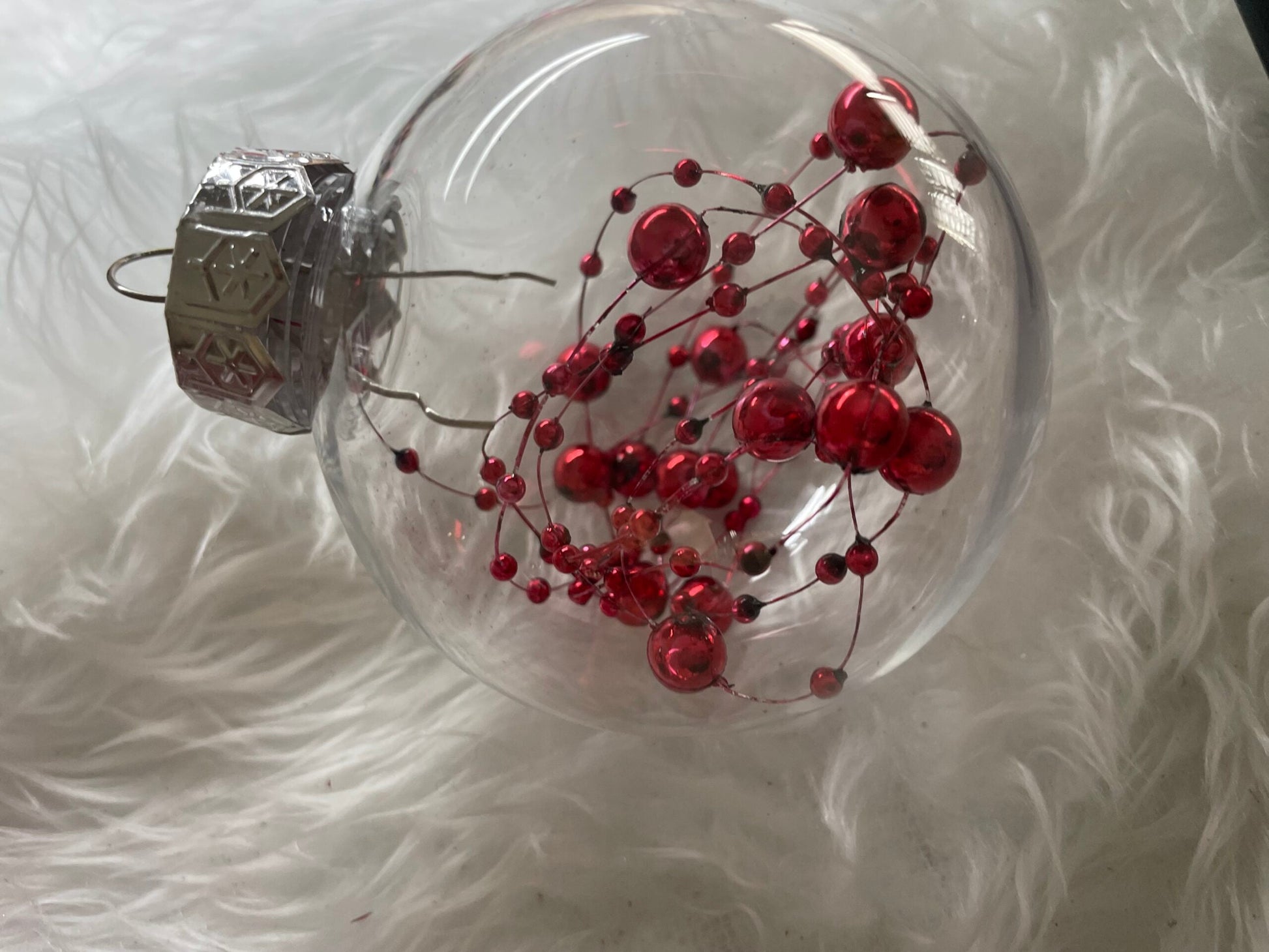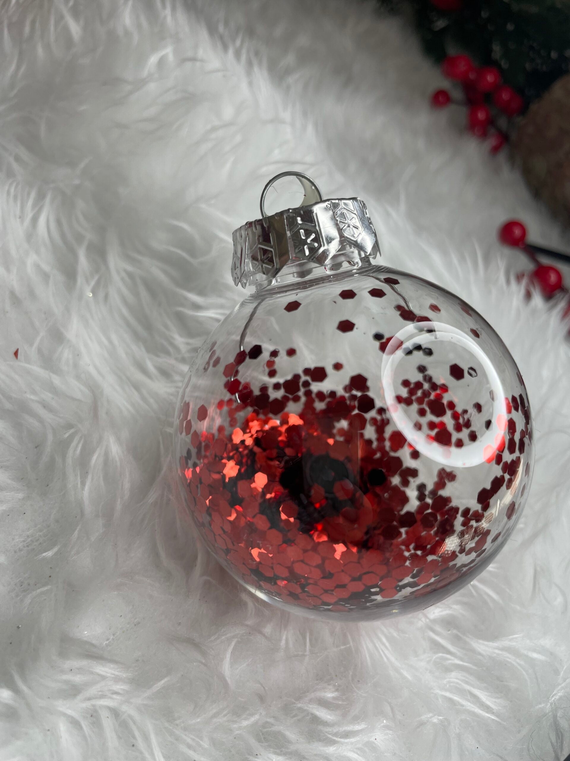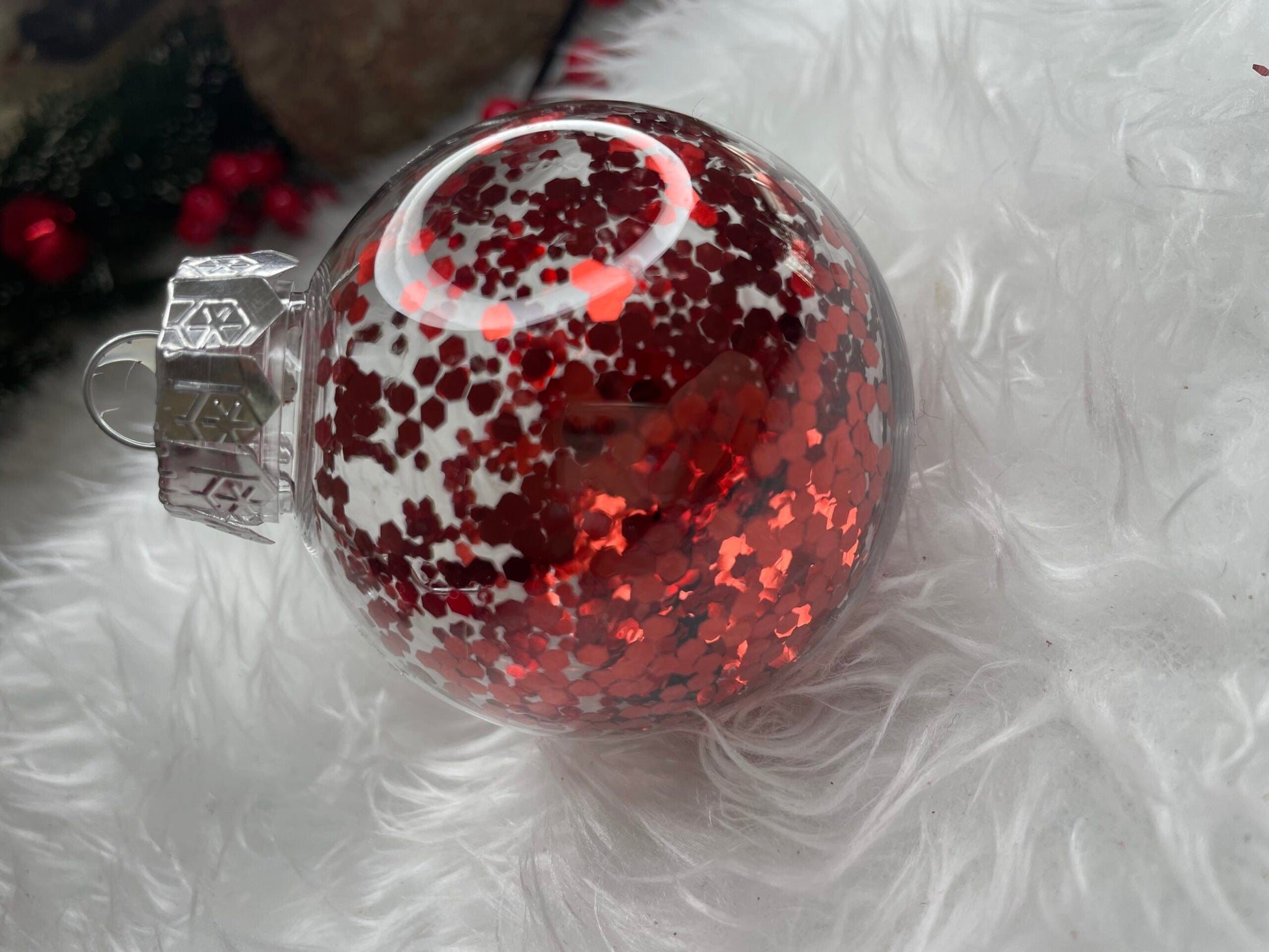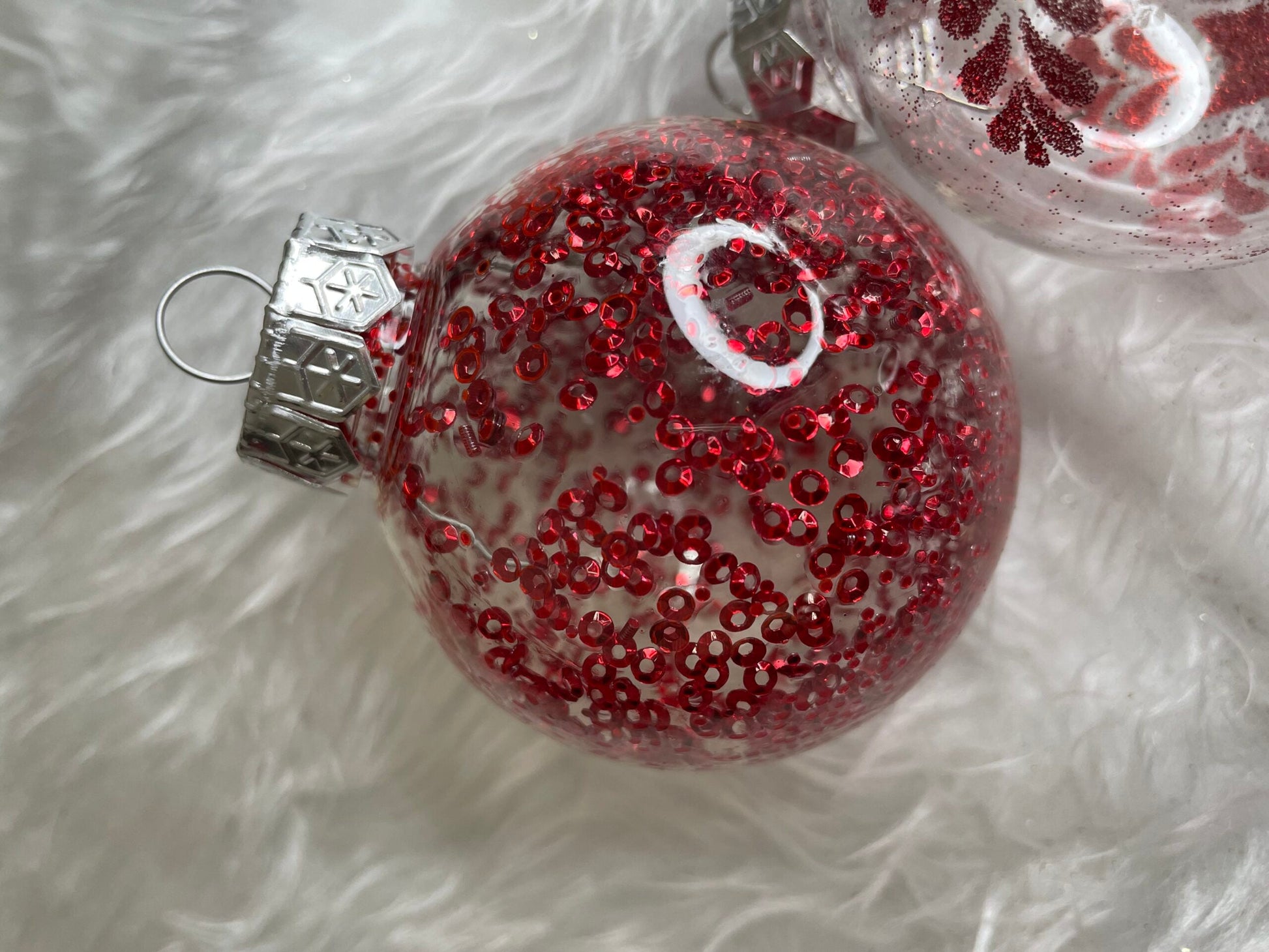 Set globuri de Craciun Inedit, 30 bucati, 7cm, transparente si rosu