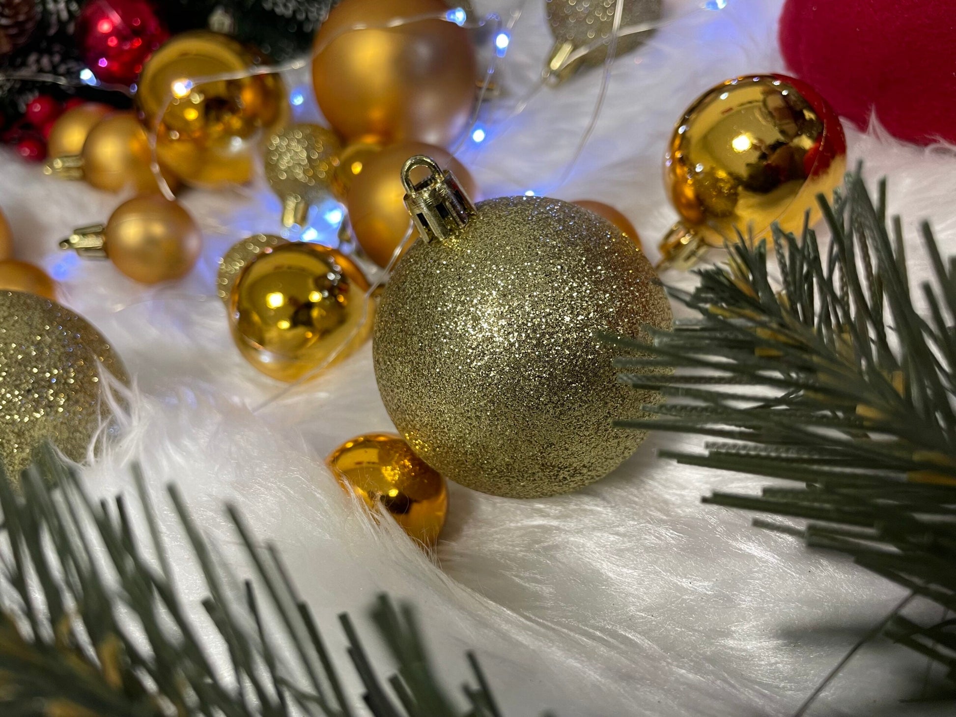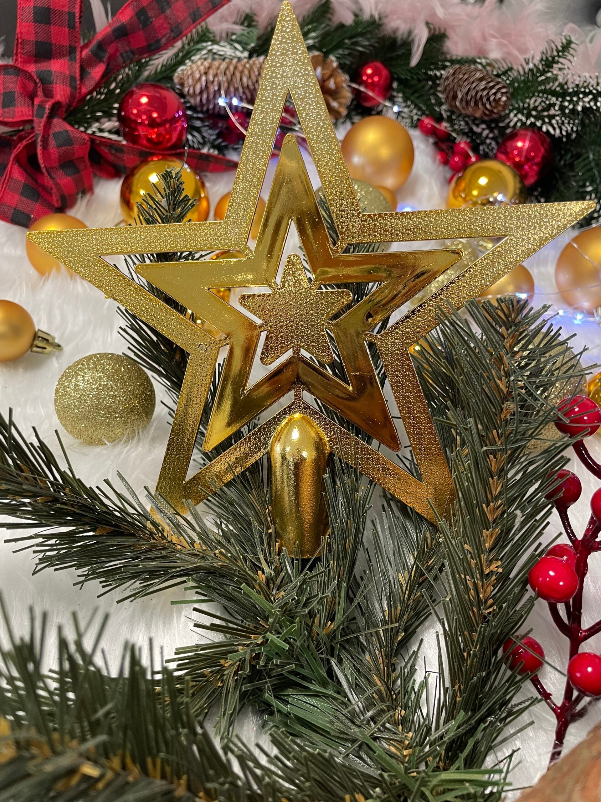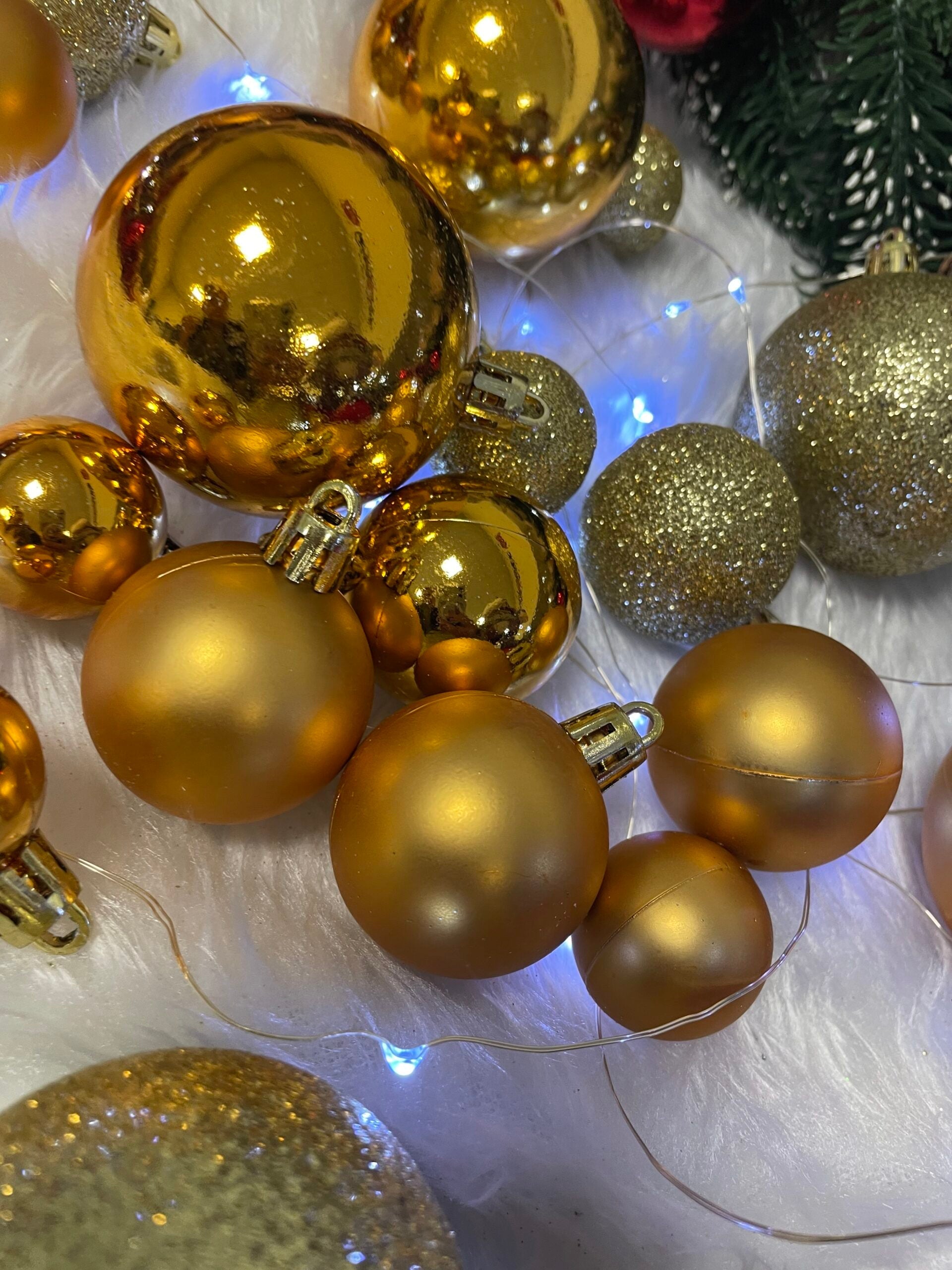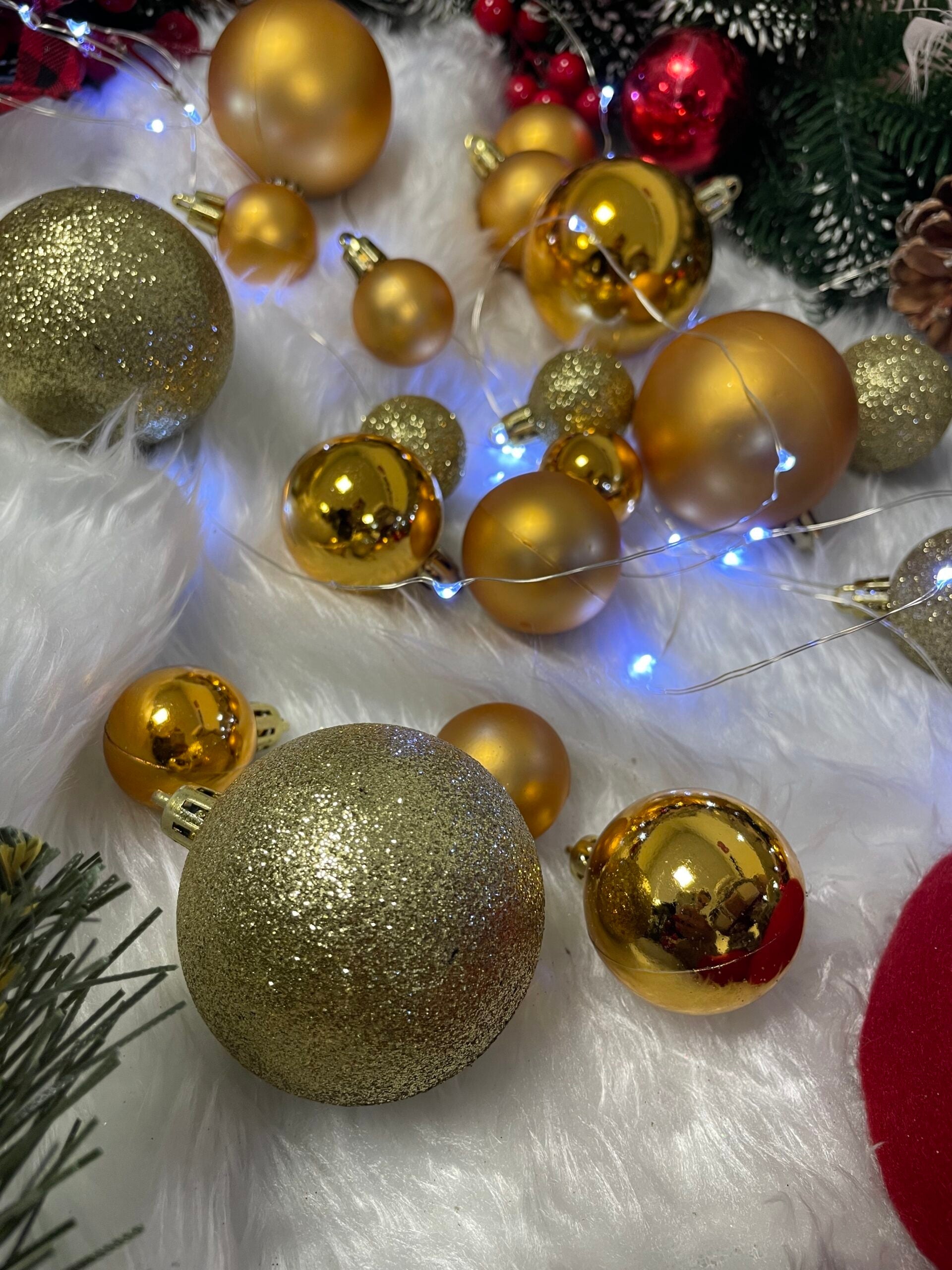 Set globuri si decoratiuni de Craciun, 100 piese, diverse dimensiuni cu stea, auriu