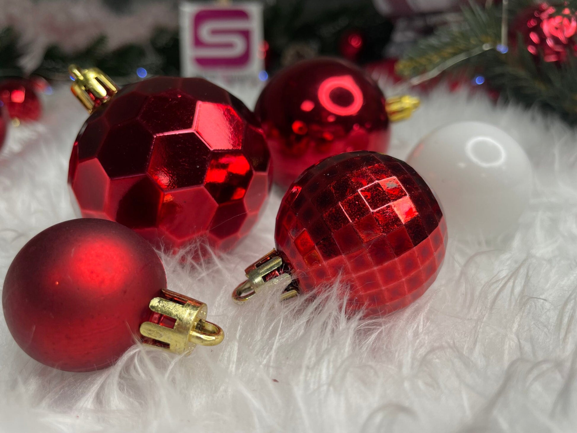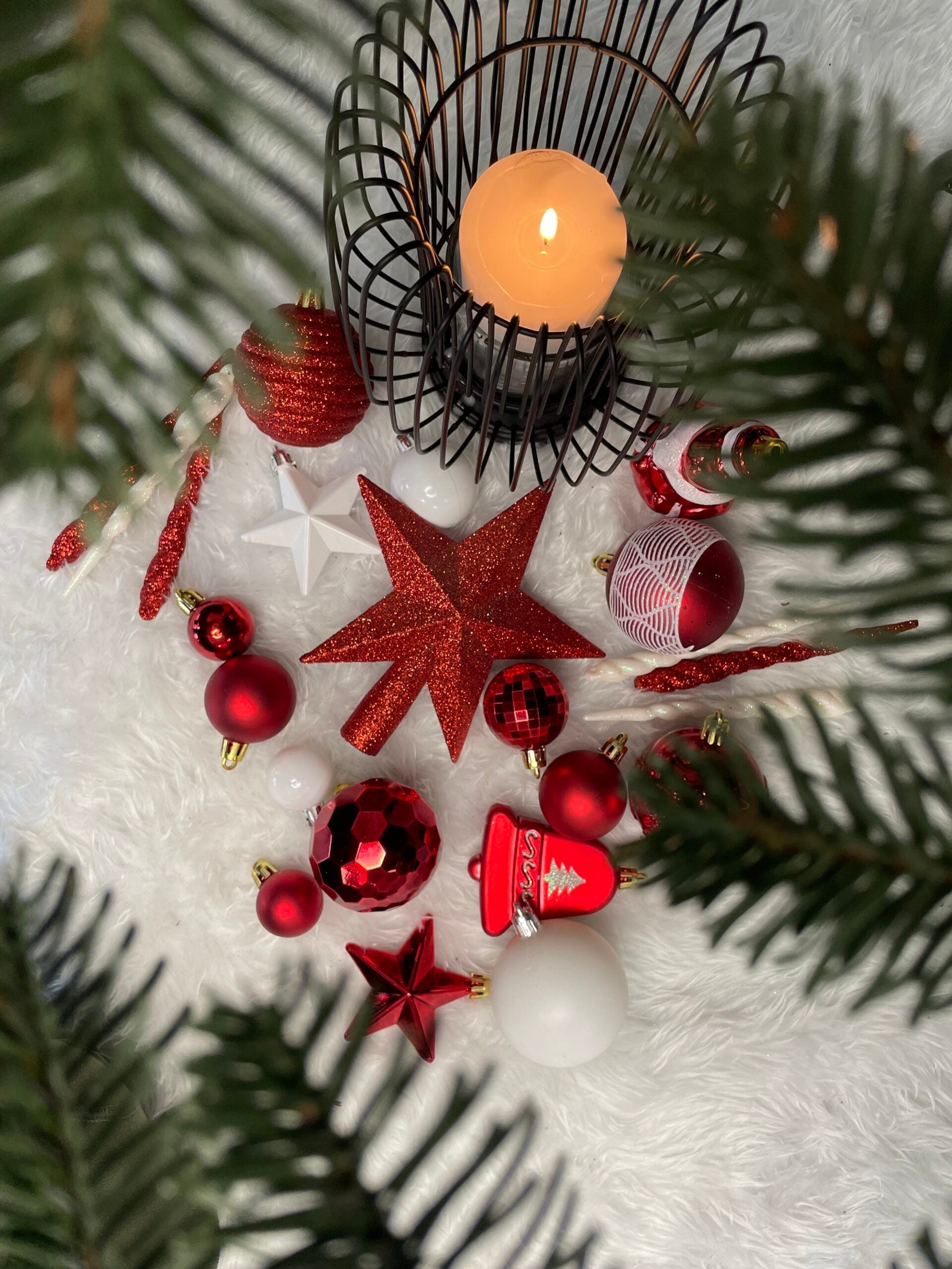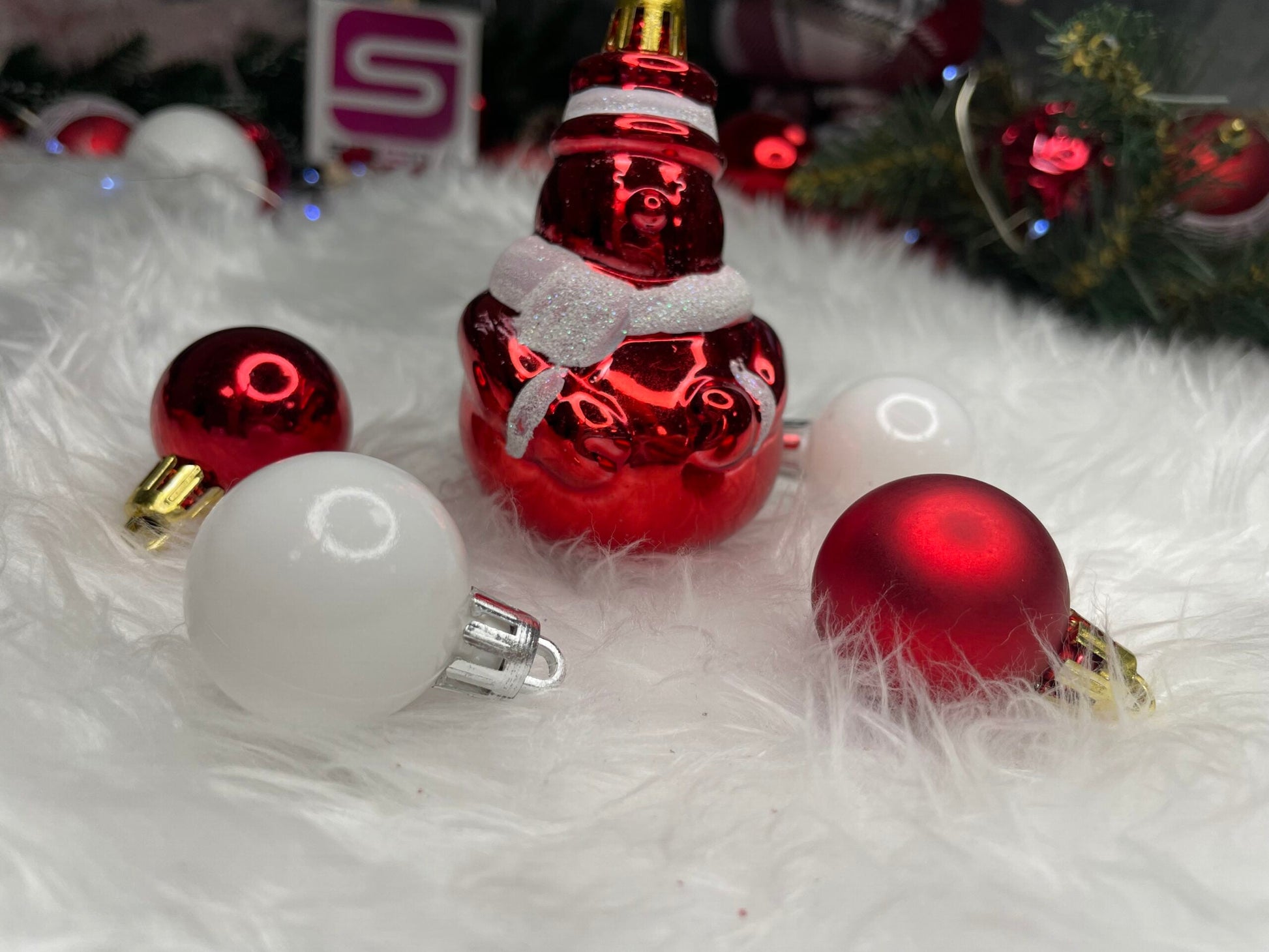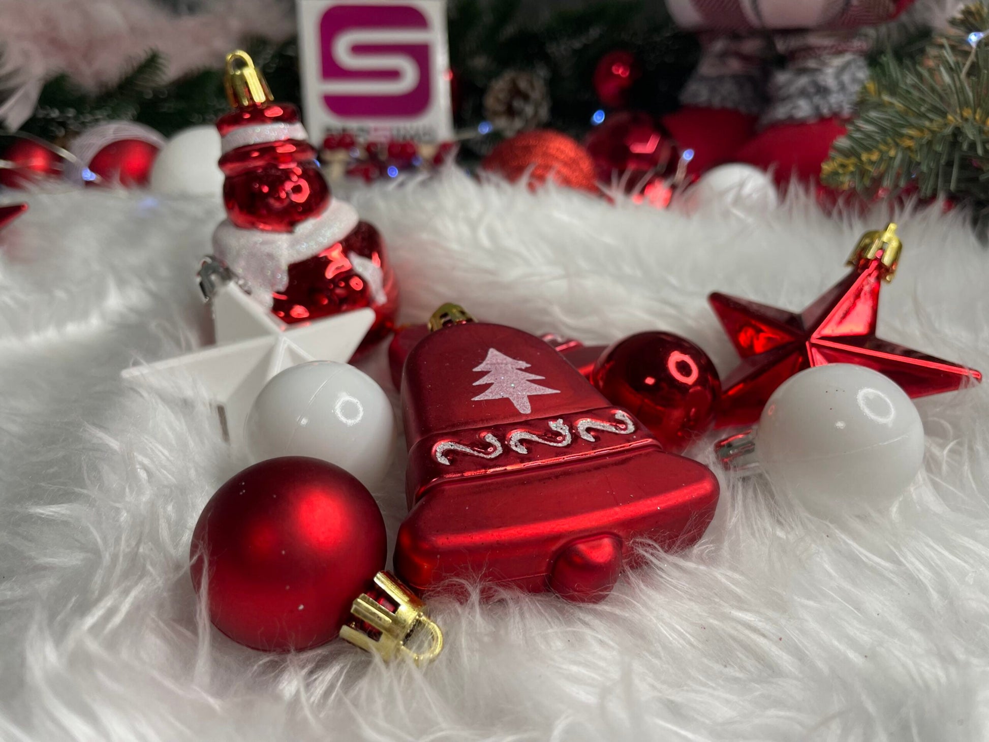 Set globuri si decoratiuni de Craciun, 105 piese, diverse dimensiuni, alb rosu