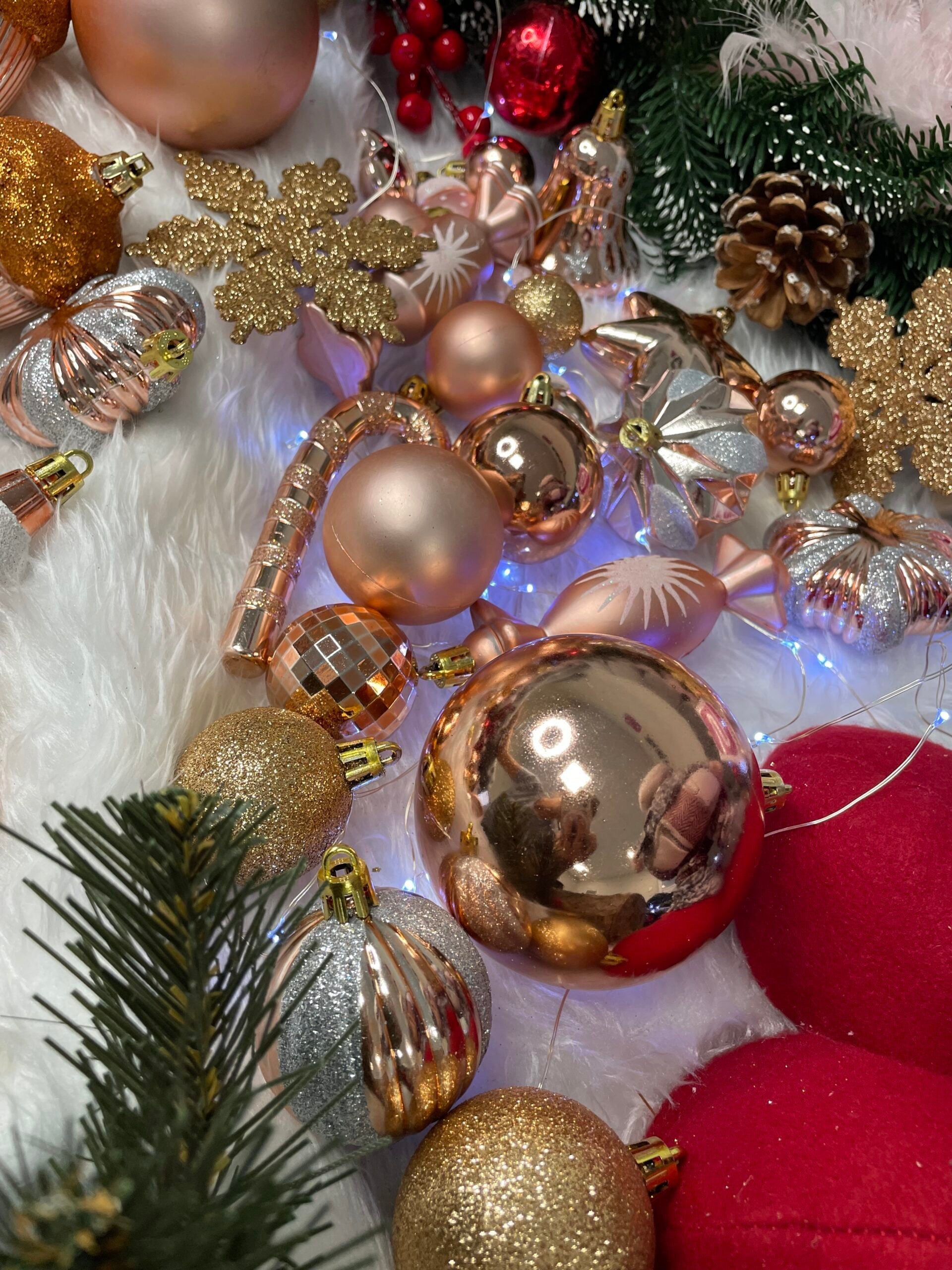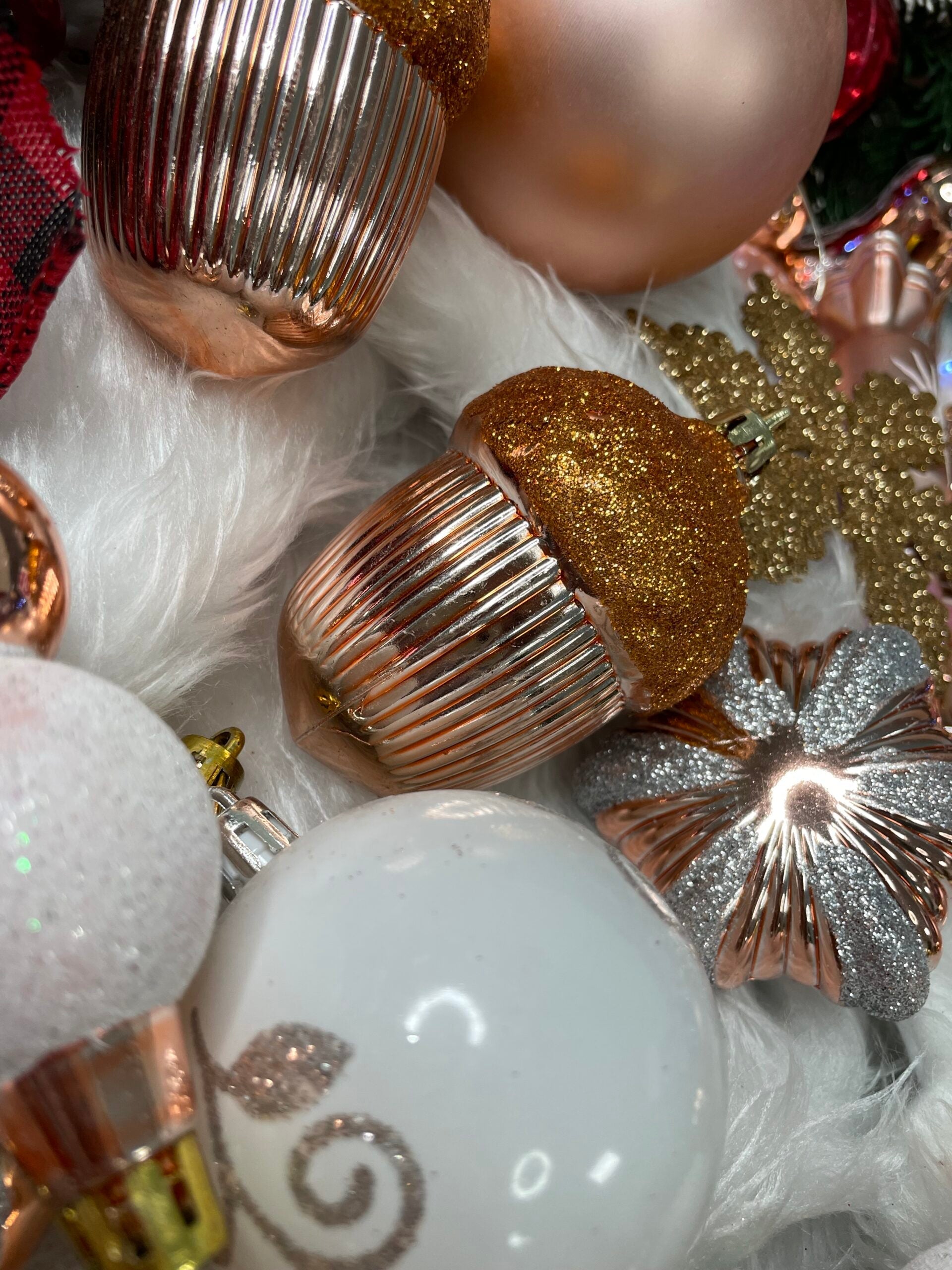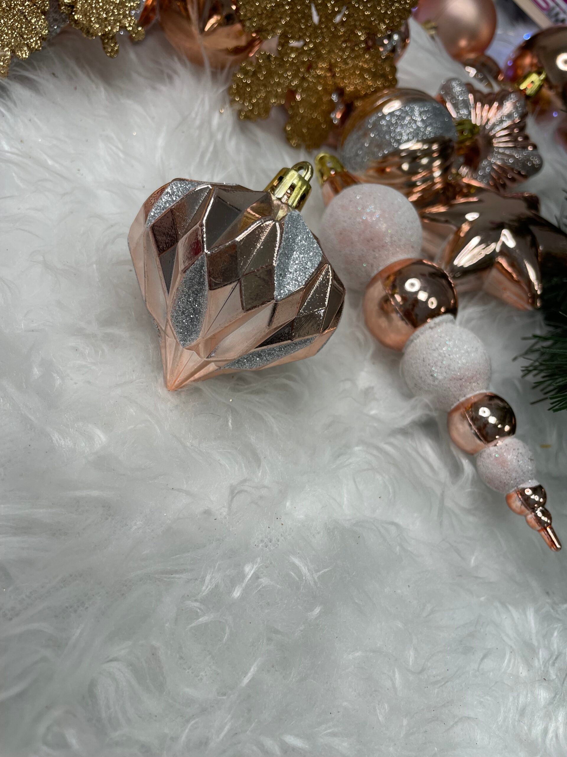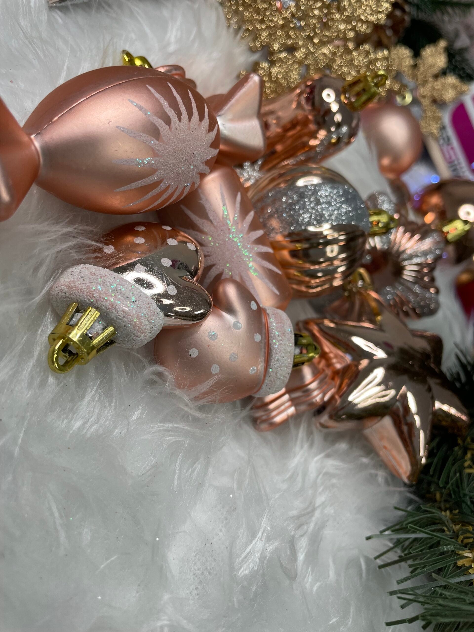 Set globuri si decoratiuni de Craciun, 152 piese, diverse dimensiuni, roz auriu