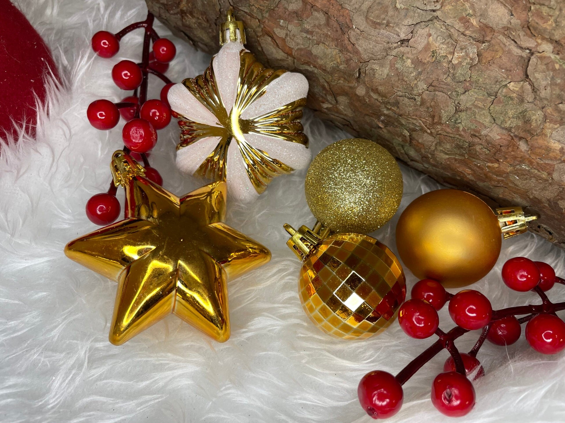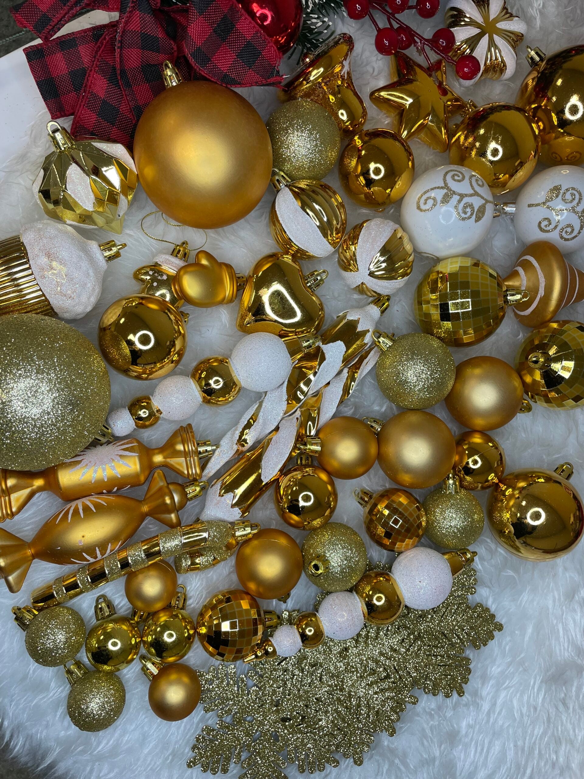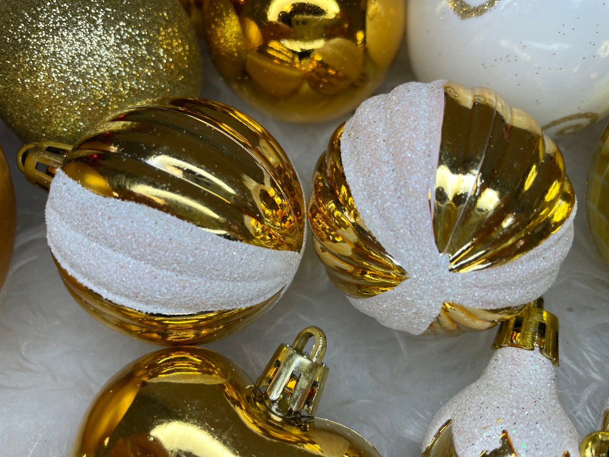 Set globuri si decoratiuni de Craciun, 155 piese, diverse dimensiuni, auriu