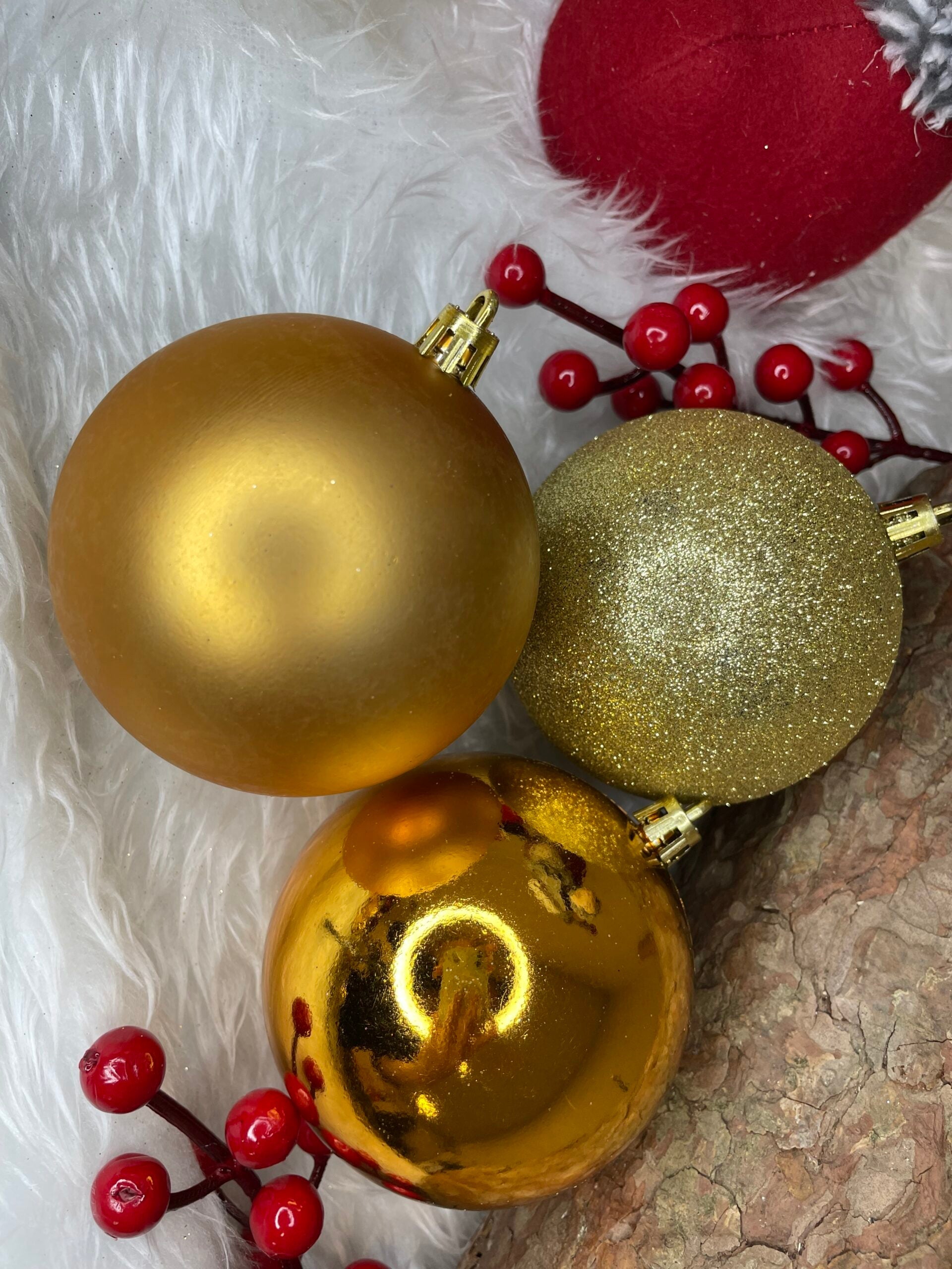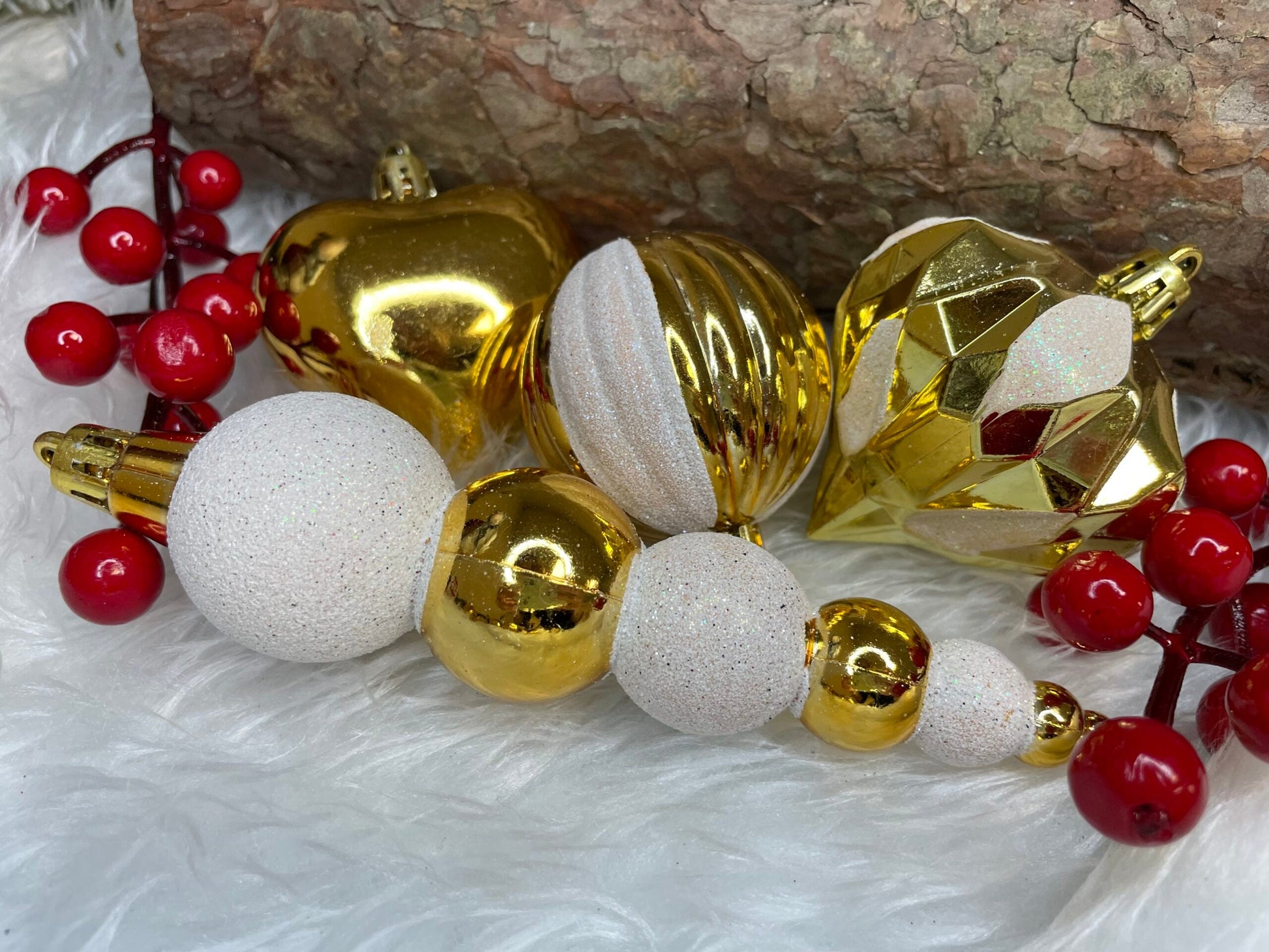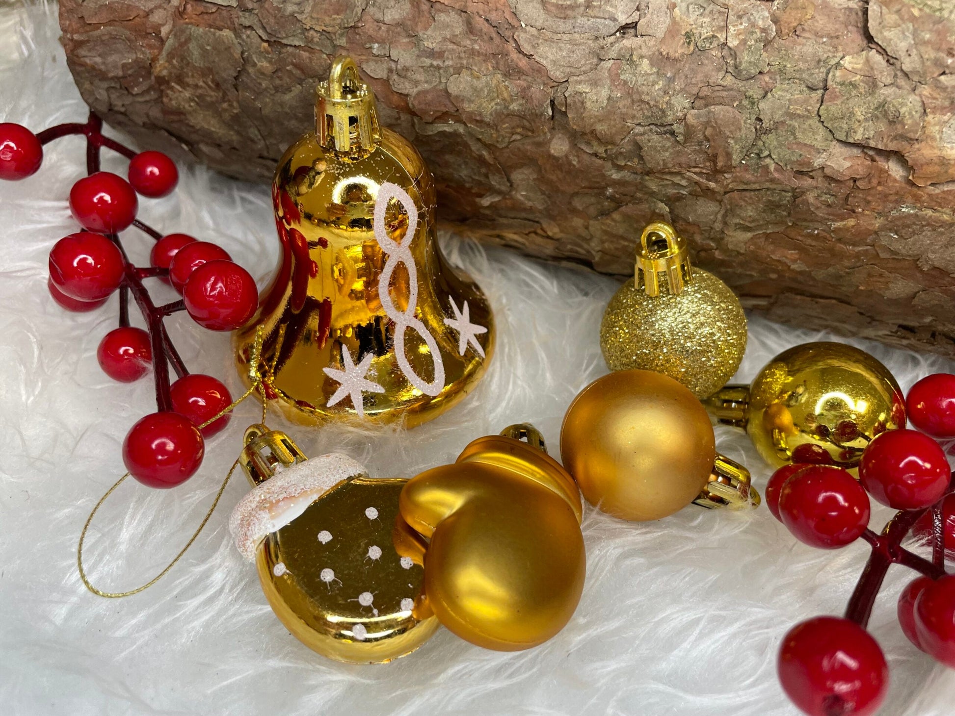 Set globuri si decoratiuni de Craciun, 155 piese, diverse dimensiuni, auriu