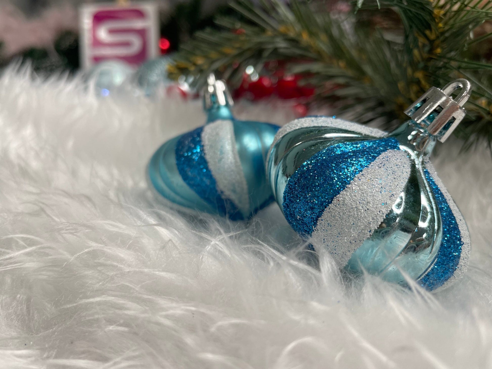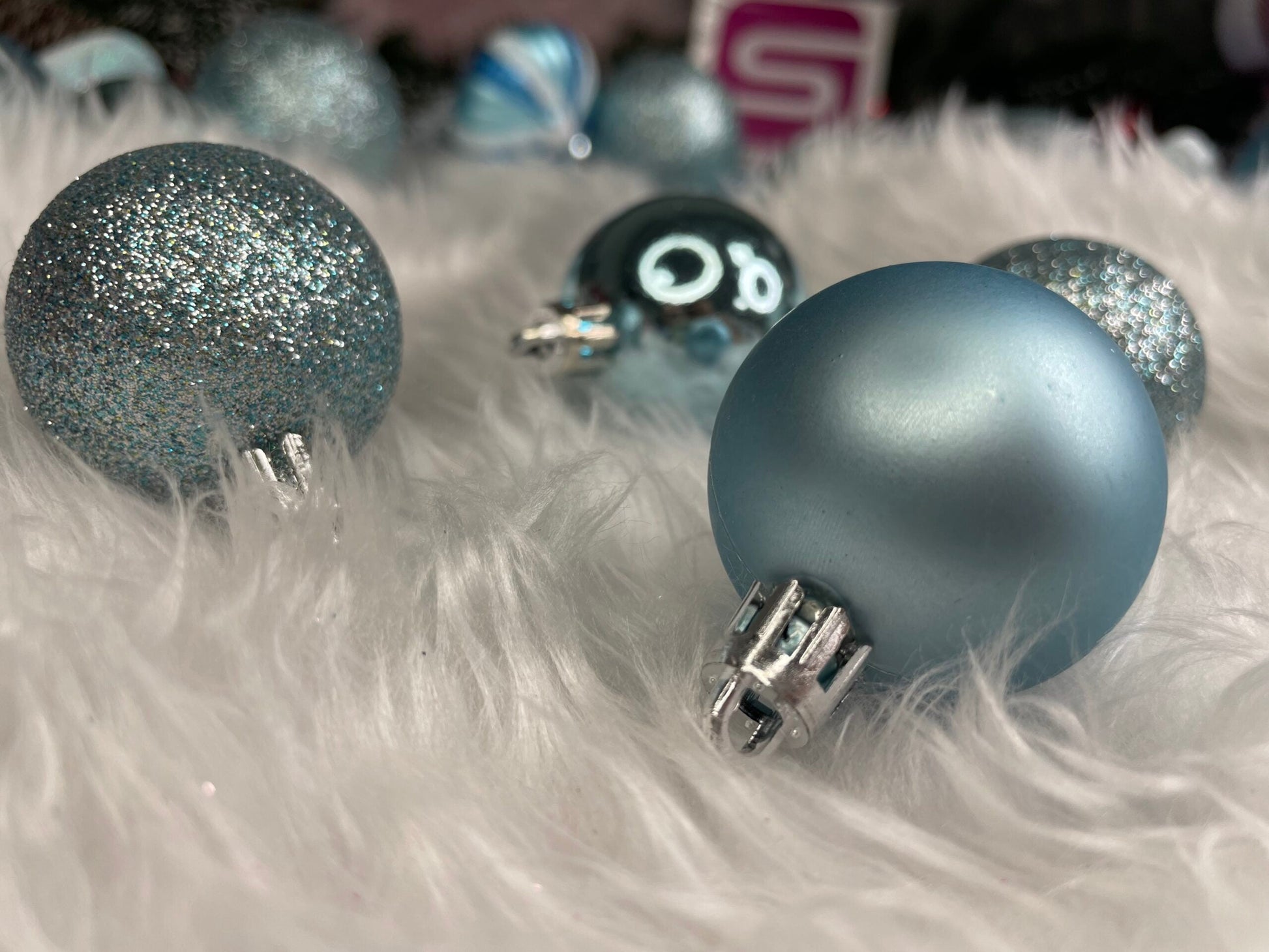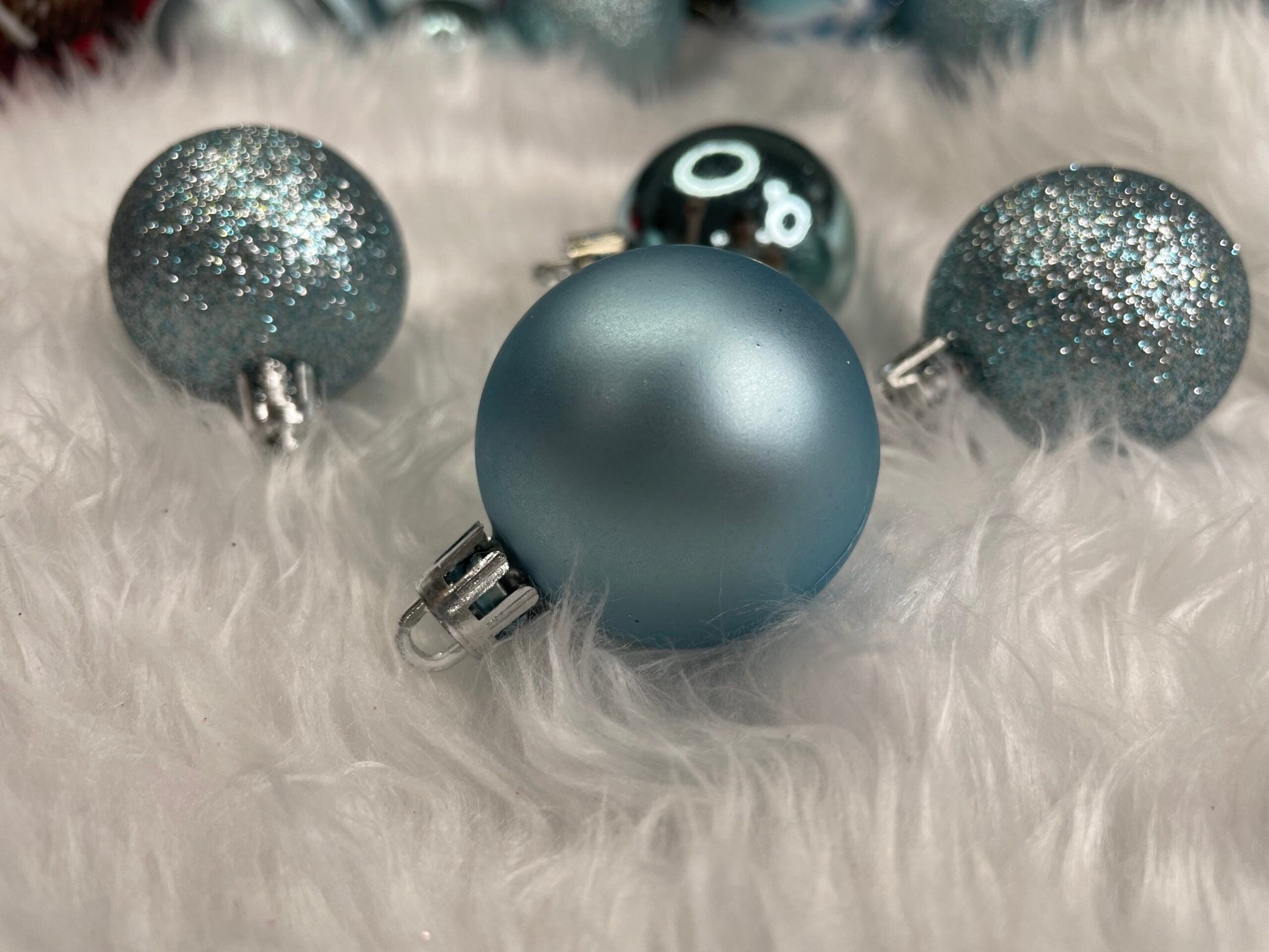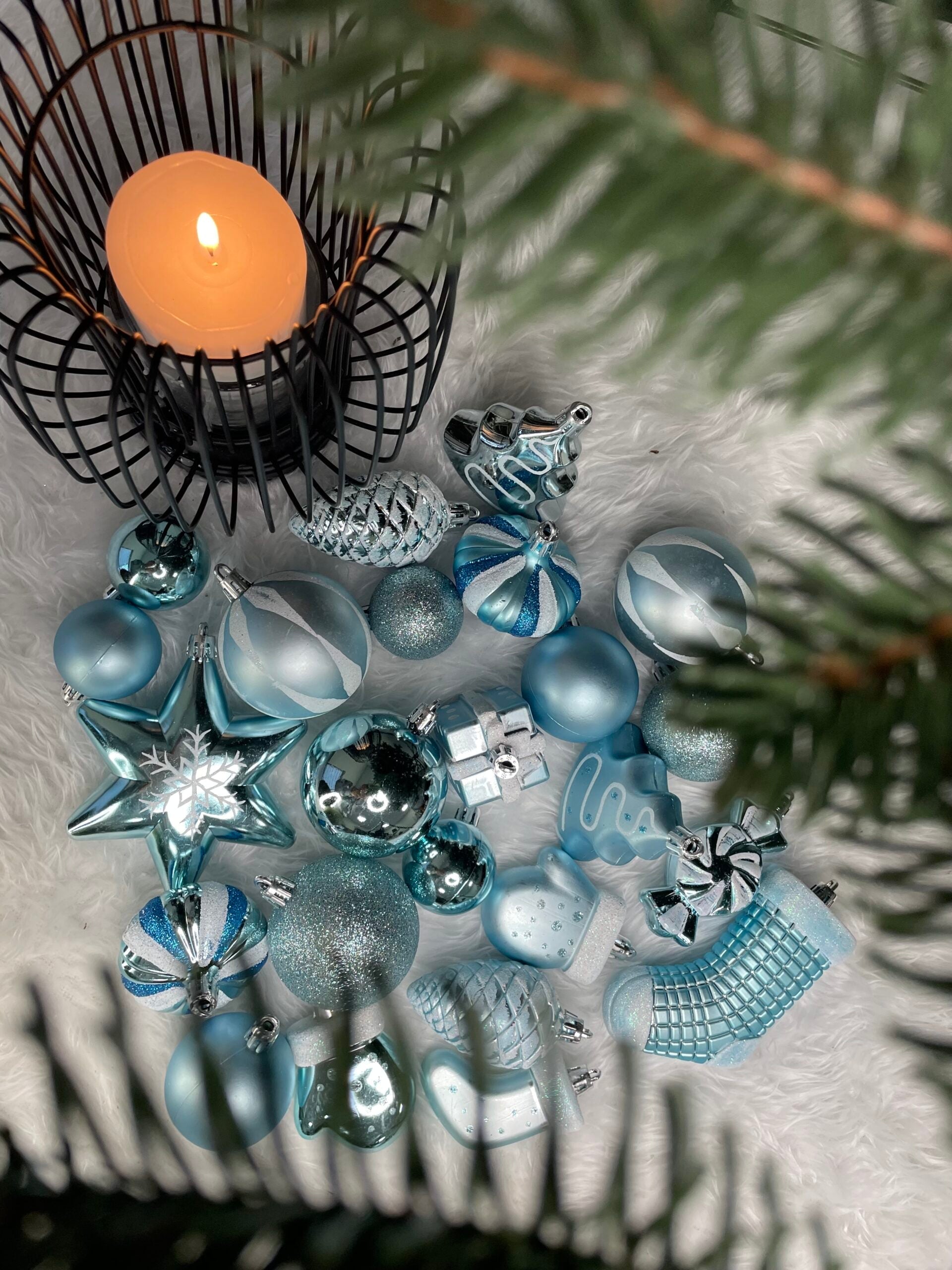 Set globuri si decoratiuni de Craciun, 77 piese, diverse dimensiuni, albastru