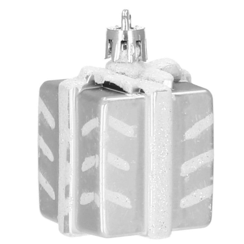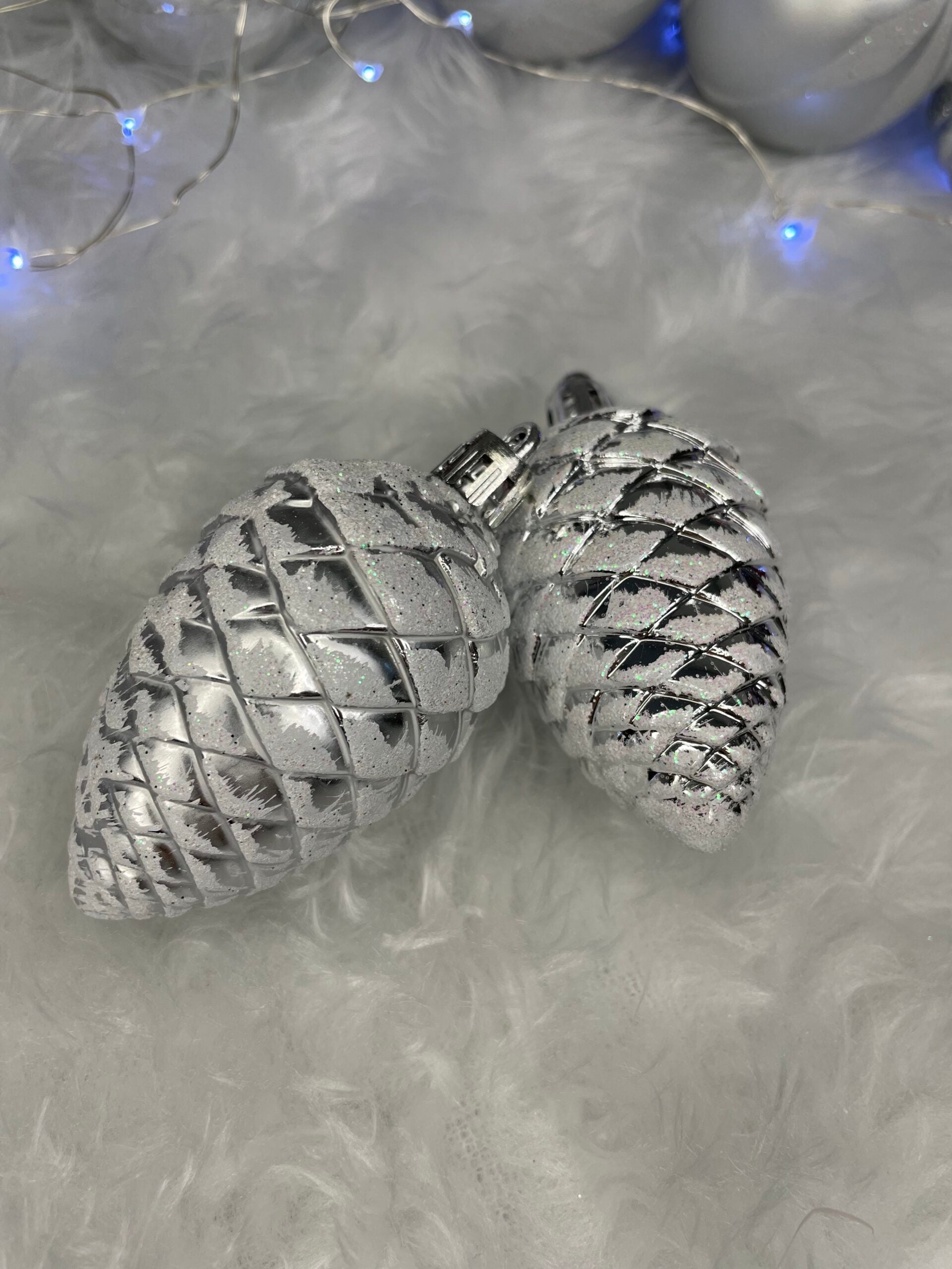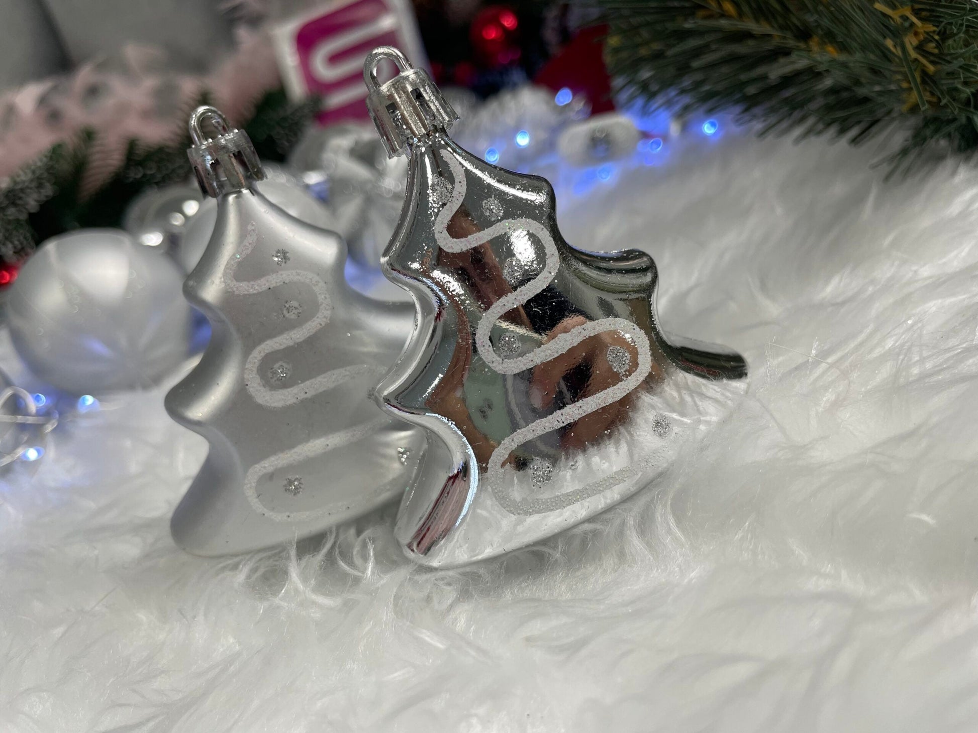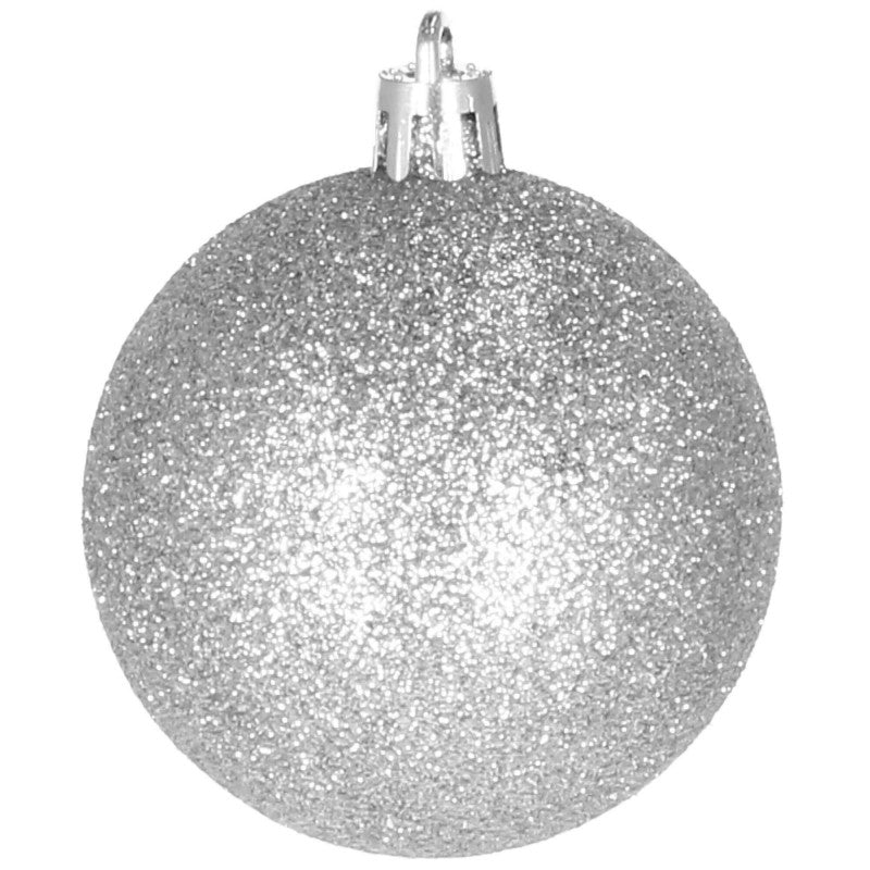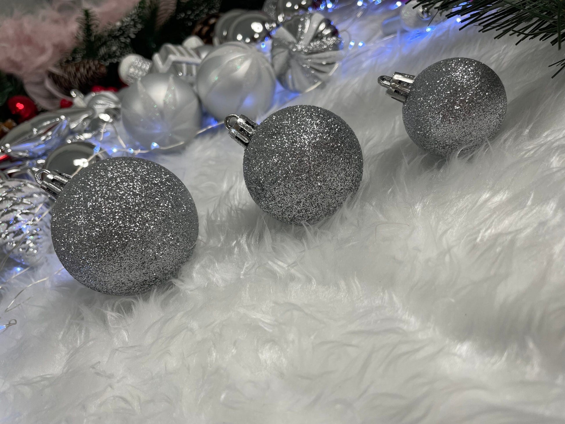 Set globuri si decoratiuni de Craciun, 77 piese, diverse dimensiuni, argintiu