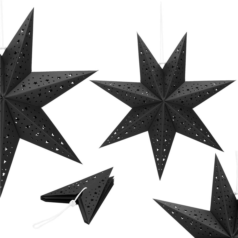 Stea decorativa 3D din hartie ajurata, 50cm, neagra